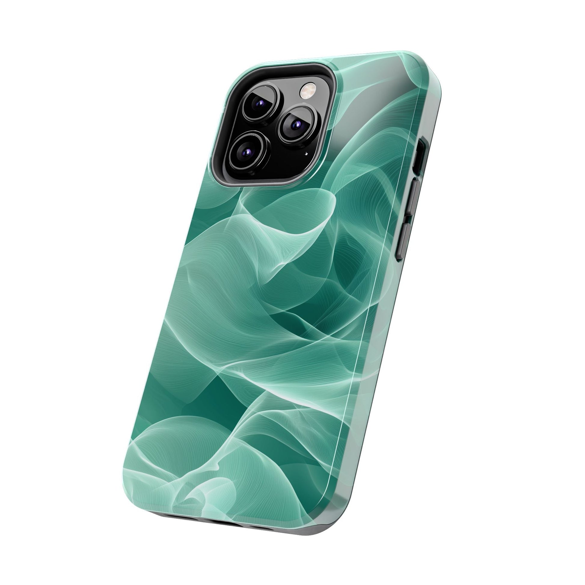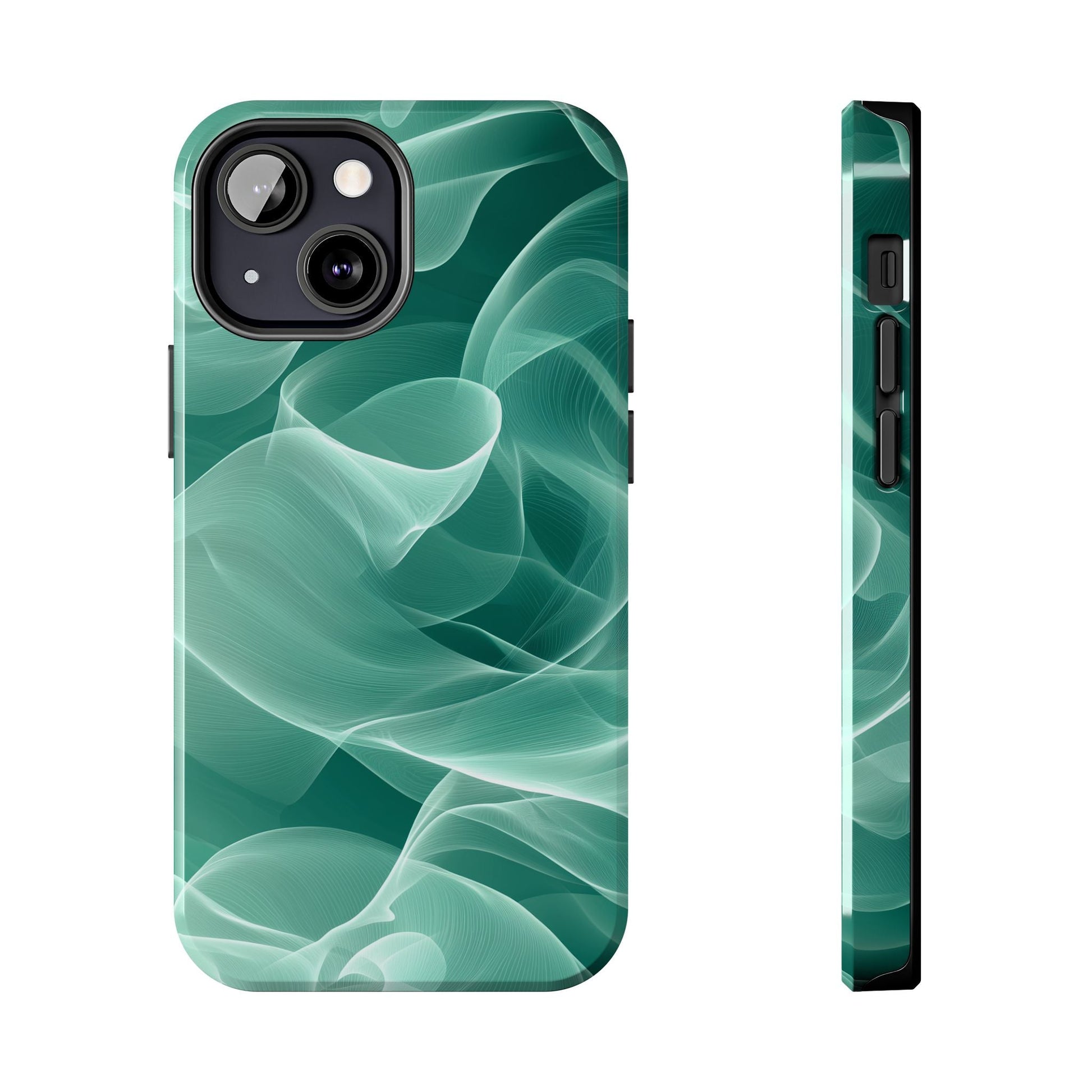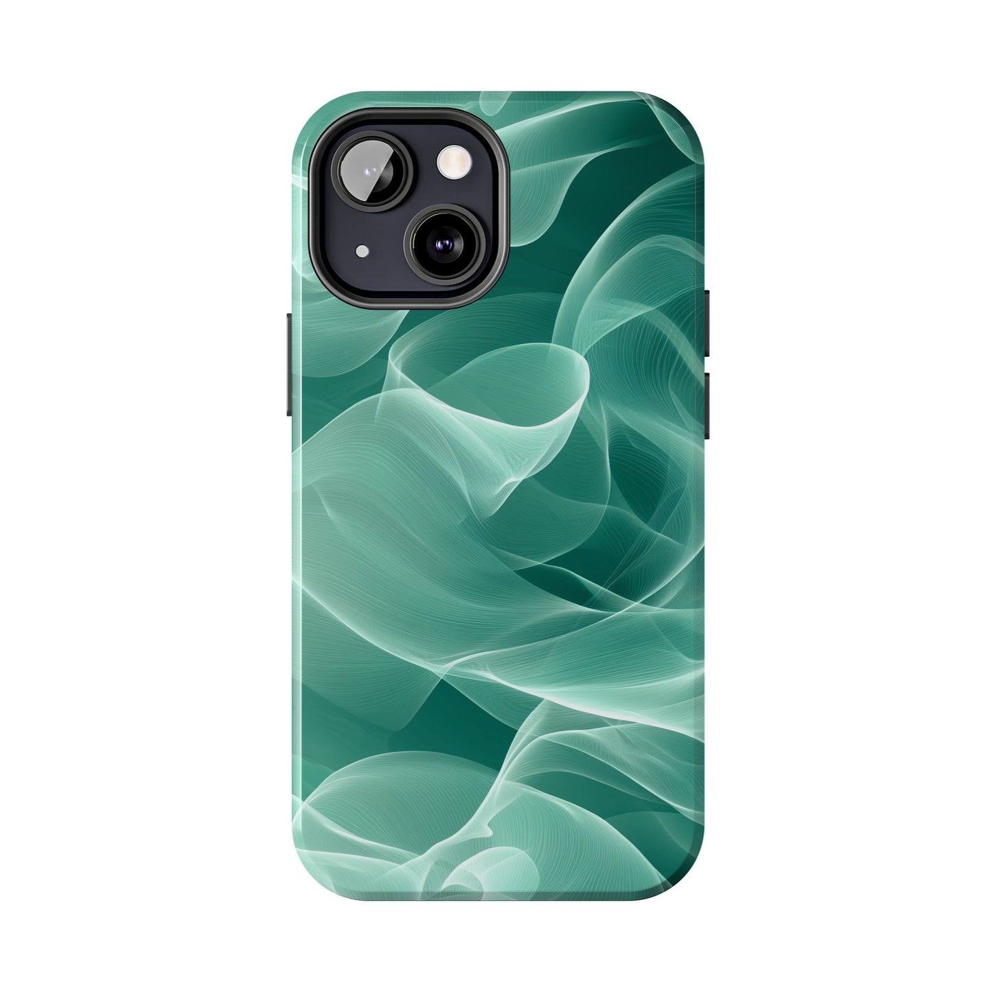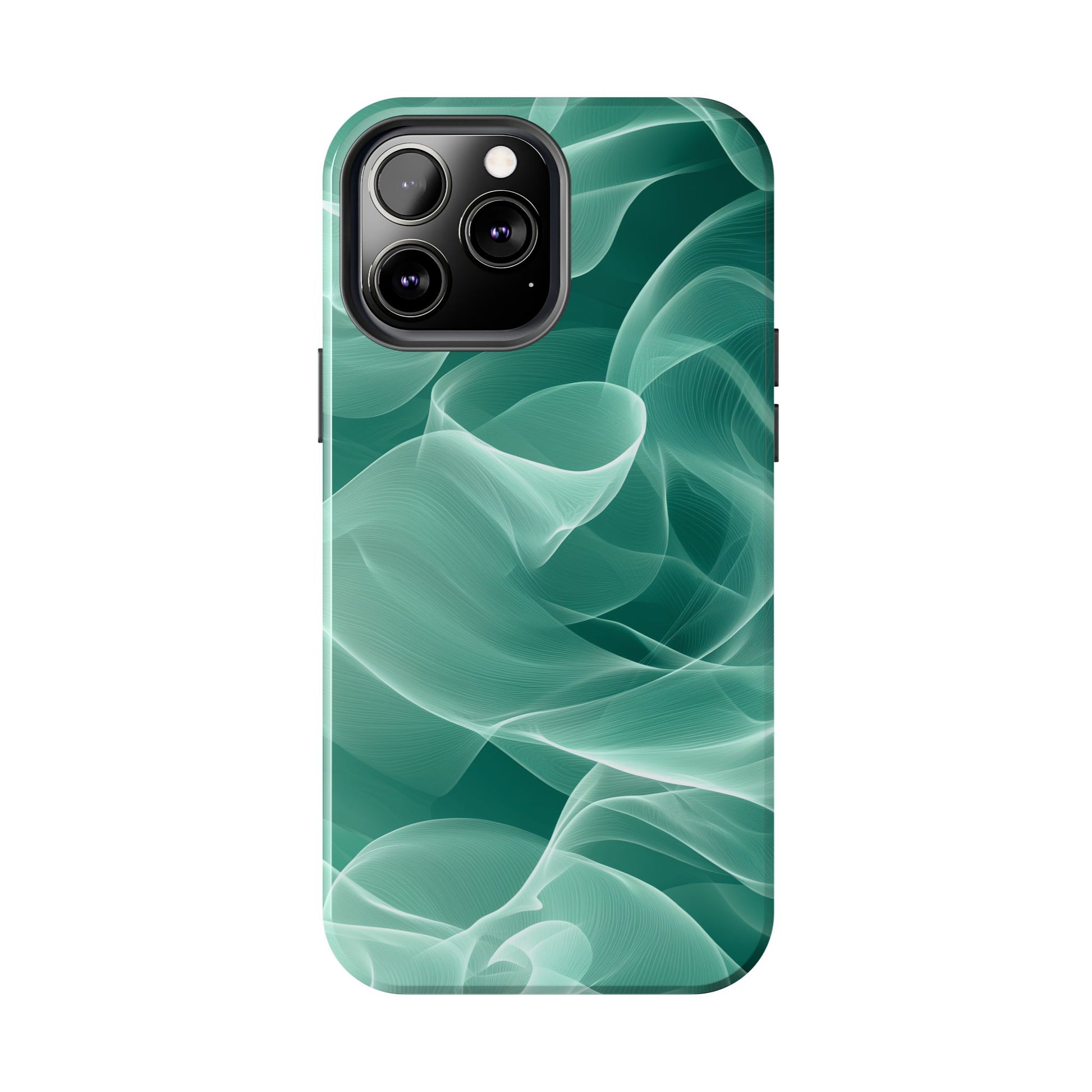 Turn your phone into a work of art with the Emerald Flow iPhone Case. The dynamic, fabric-inspired waves add a luxurious and ethereal aesthetic, making it the perfect accessory for those who enjoy a touch of nature's elegance in their everyday style.