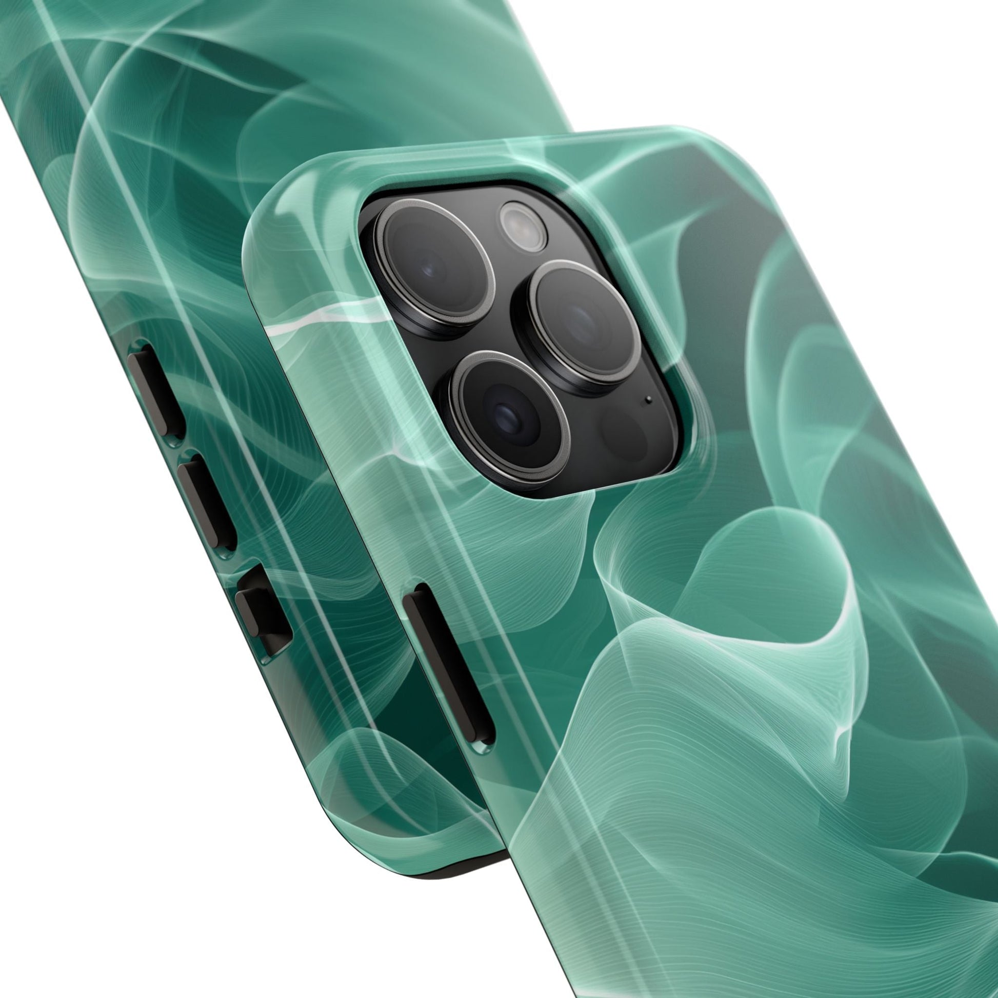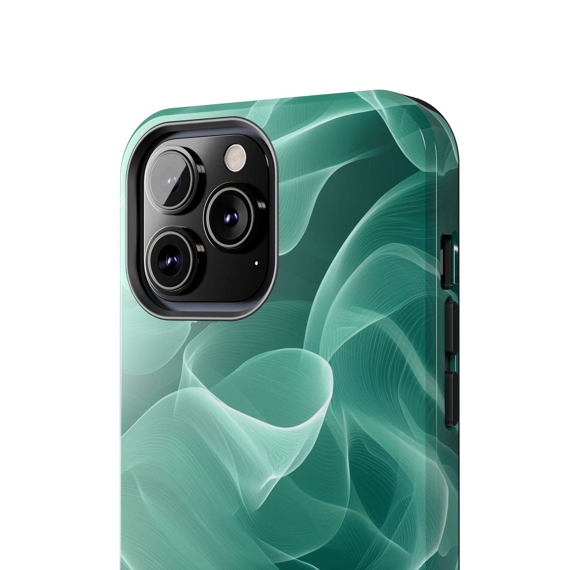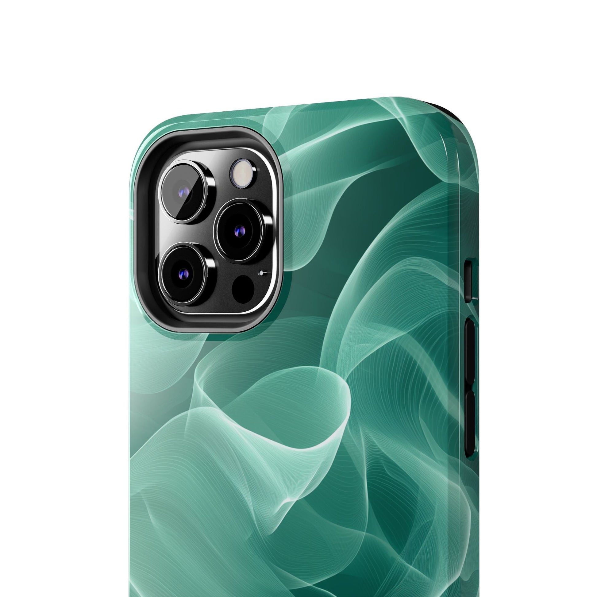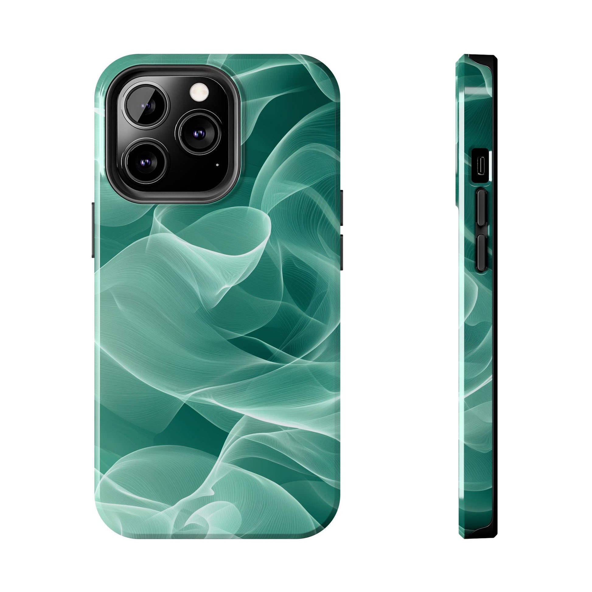 Turn your phone into a work of art with the Emerald Flow iPhone Case. The dynamic, fabric-inspired waves add a luxurious and ethereal aesthetic, making it the perfect accessory for those who enjoy a touch of nature's elegance in their everyday style.