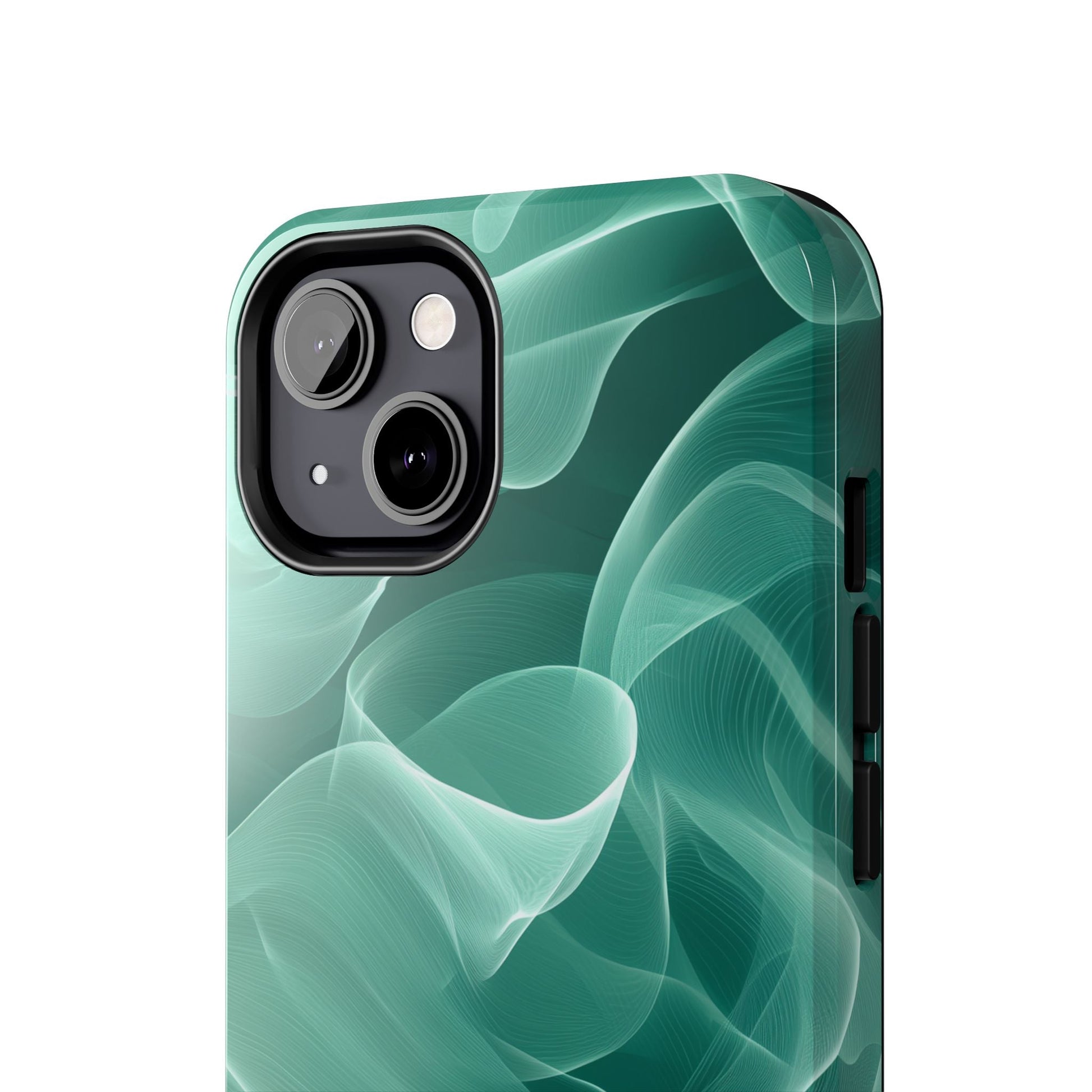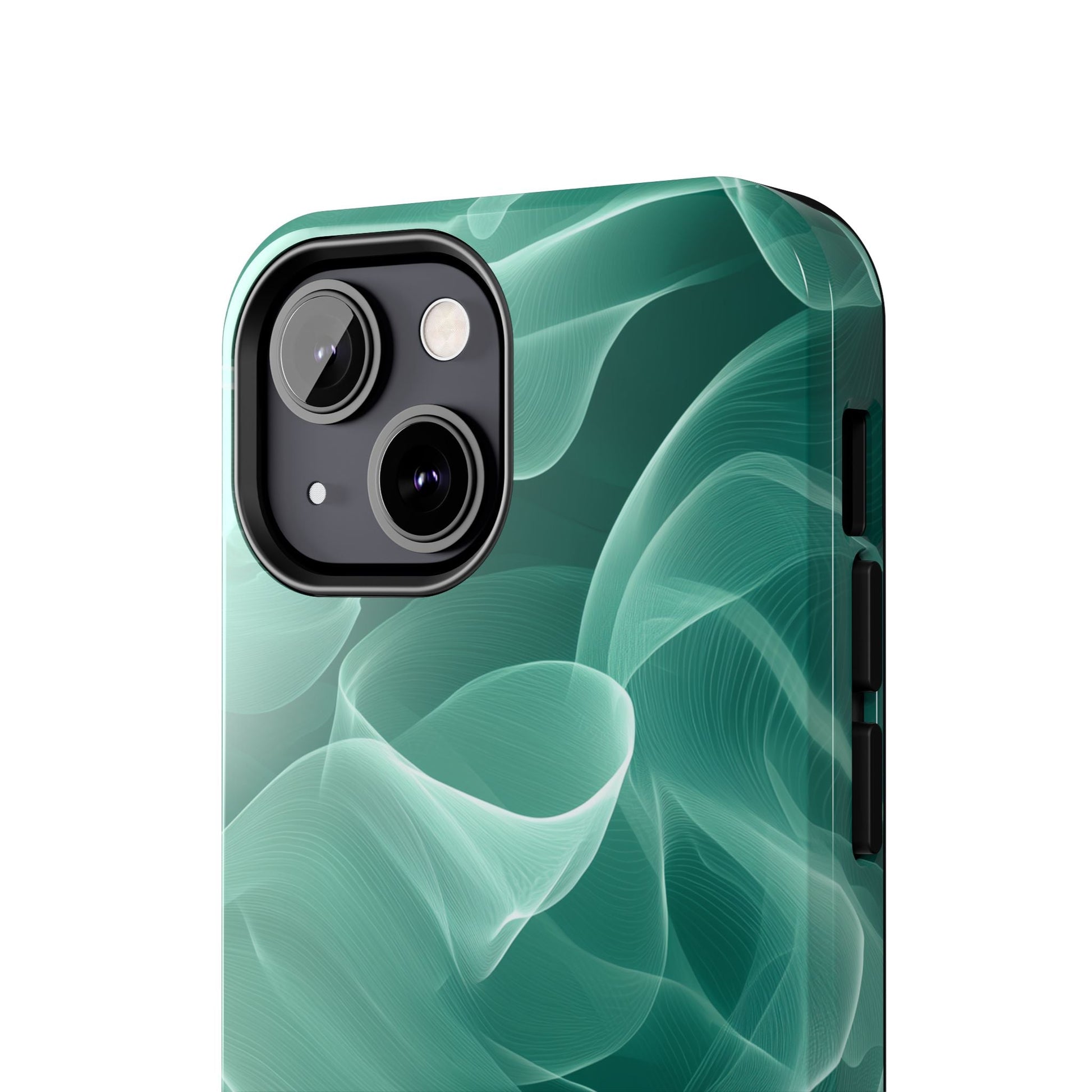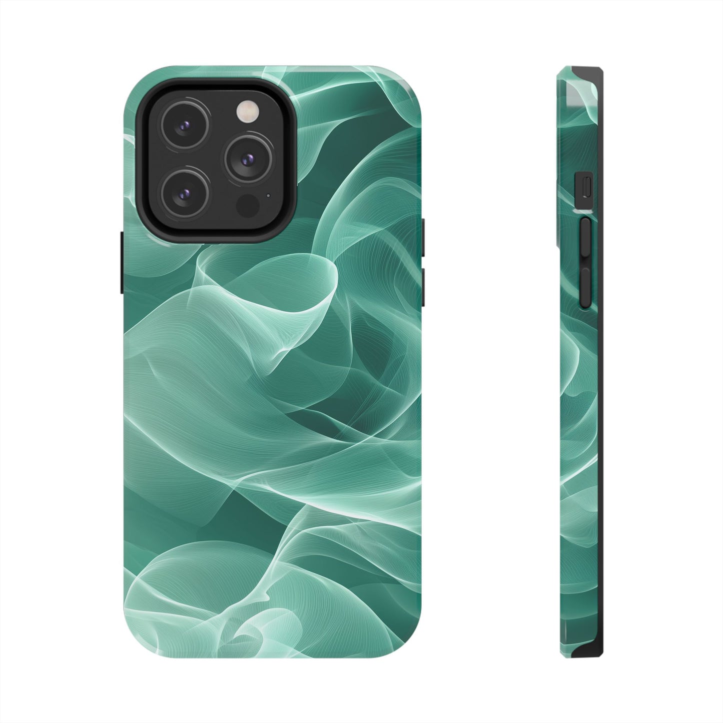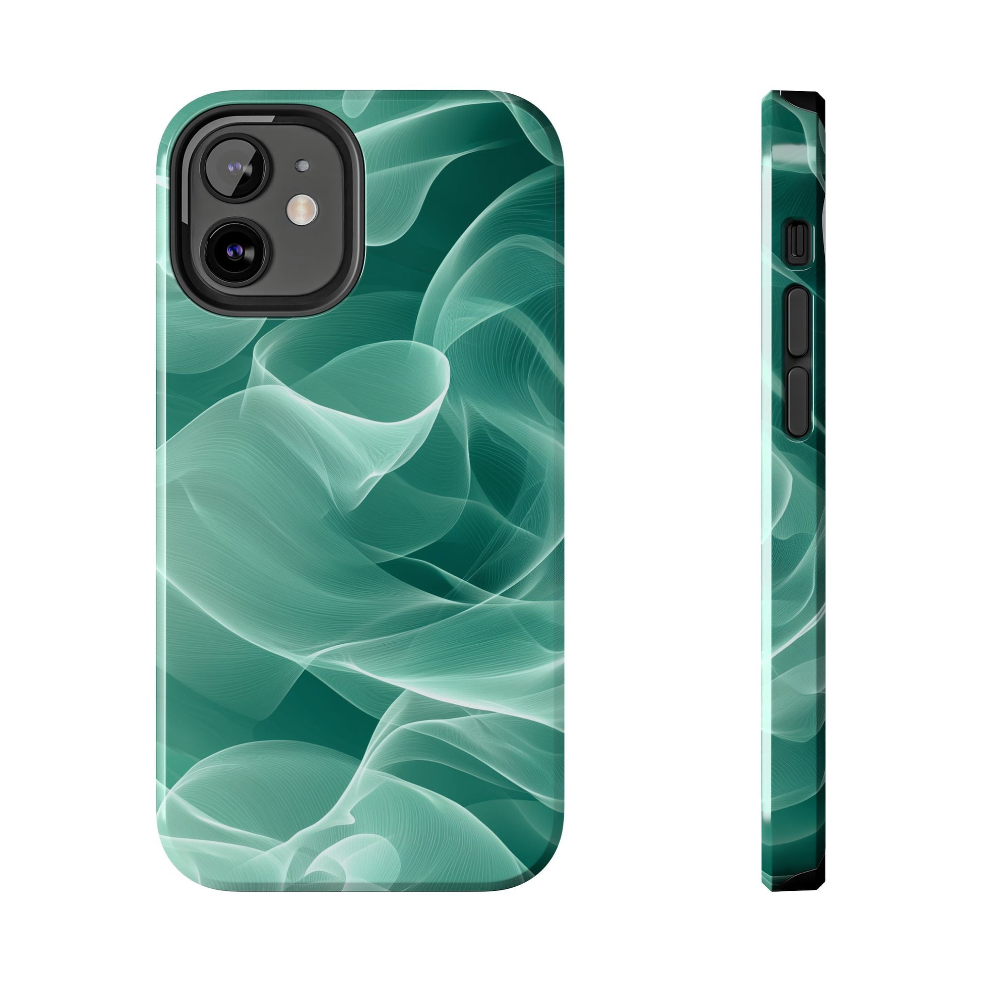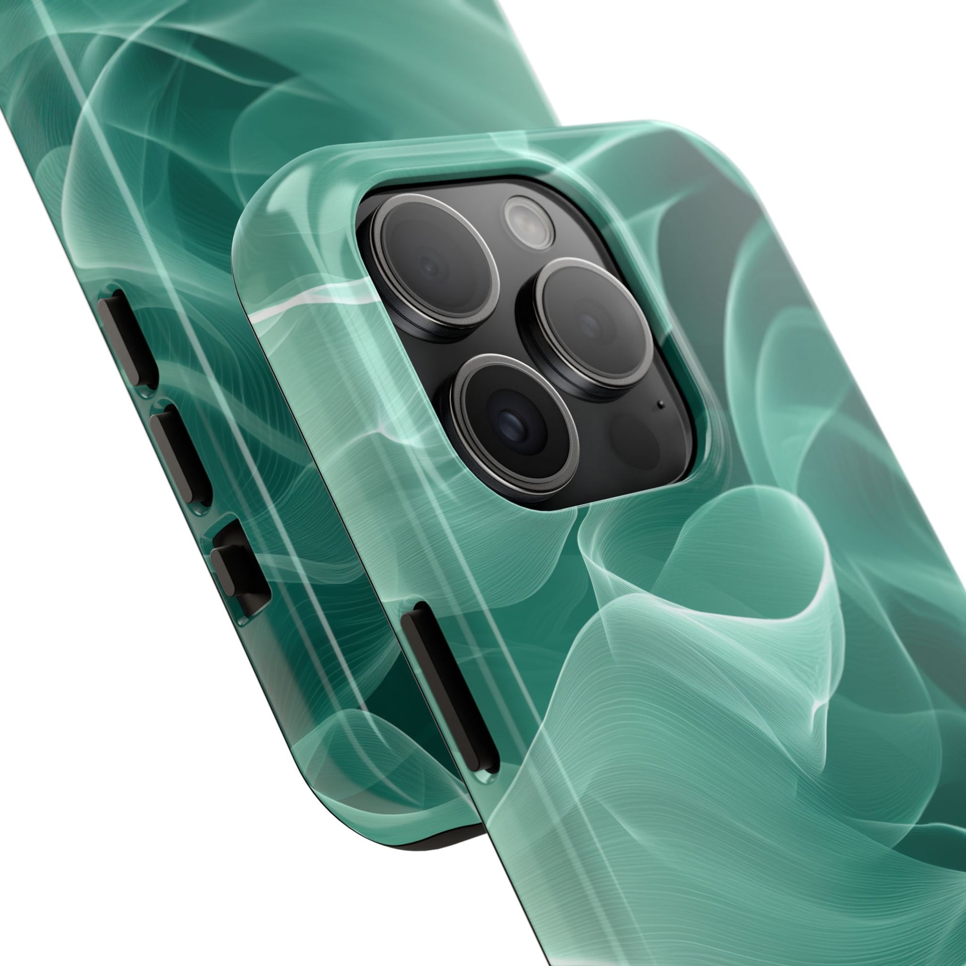 Turn your phone into a work of art with the Emerald Flow iPhone Case. The dynamic, fabric-inspired waves add a luxurious and ethereal aesthetic, making it the perfect accessory for those who enjoy a touch of nature's elegance in their everyday style.