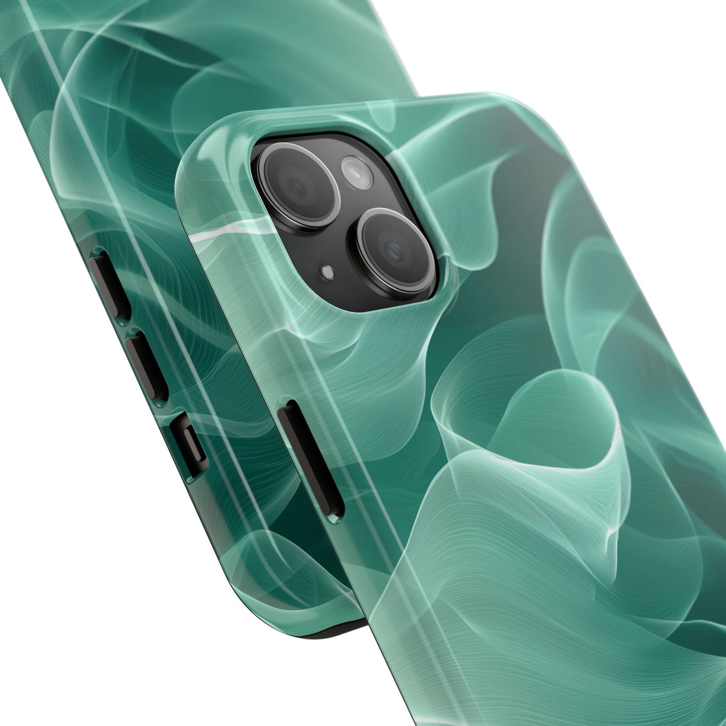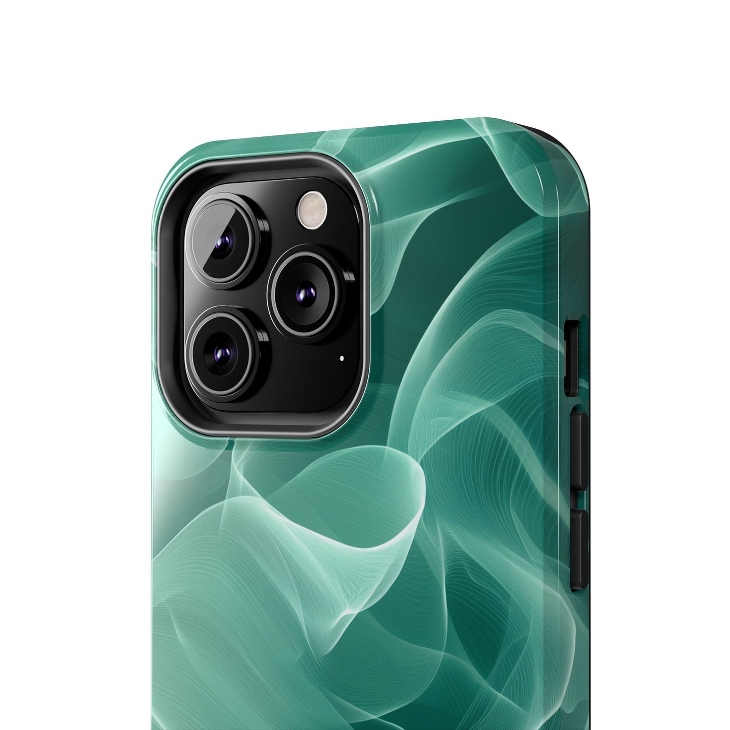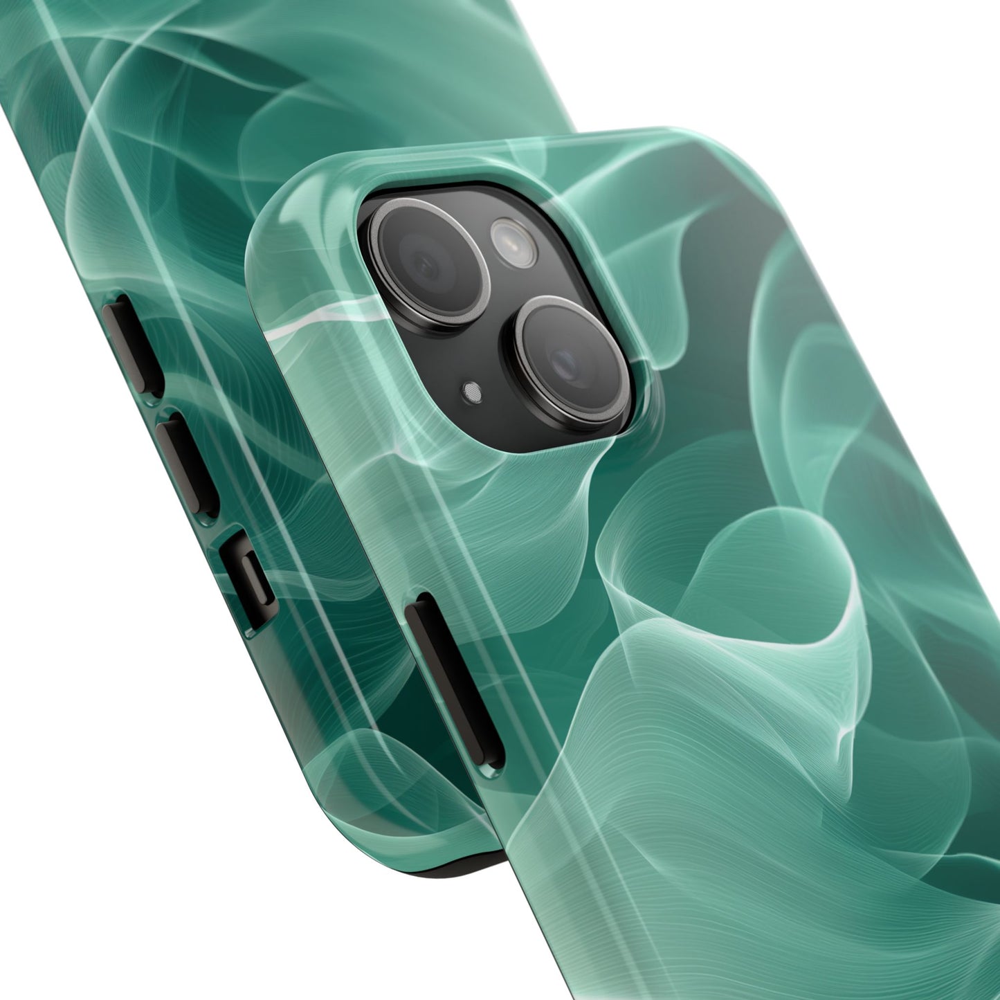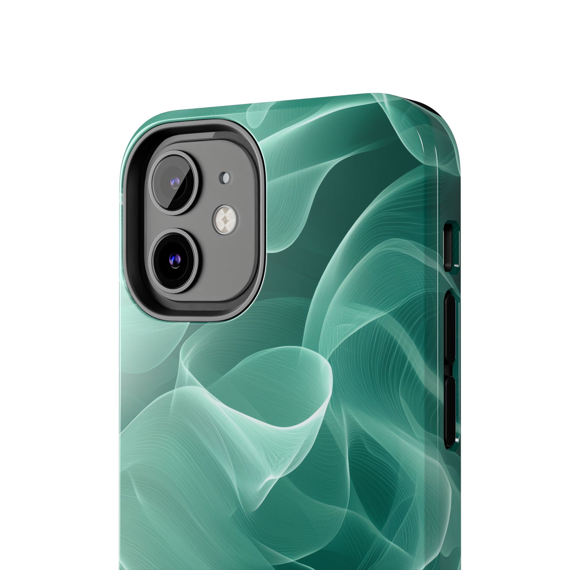 Turn your phone into a work of art with the Emerald Flow iPhone Case. The dynamic, fabric-inspired waves add a luxurious and ethereal aesthetic, making it the perfect accessory for those who enjoy a touch of nature's elegance in their everyday style.