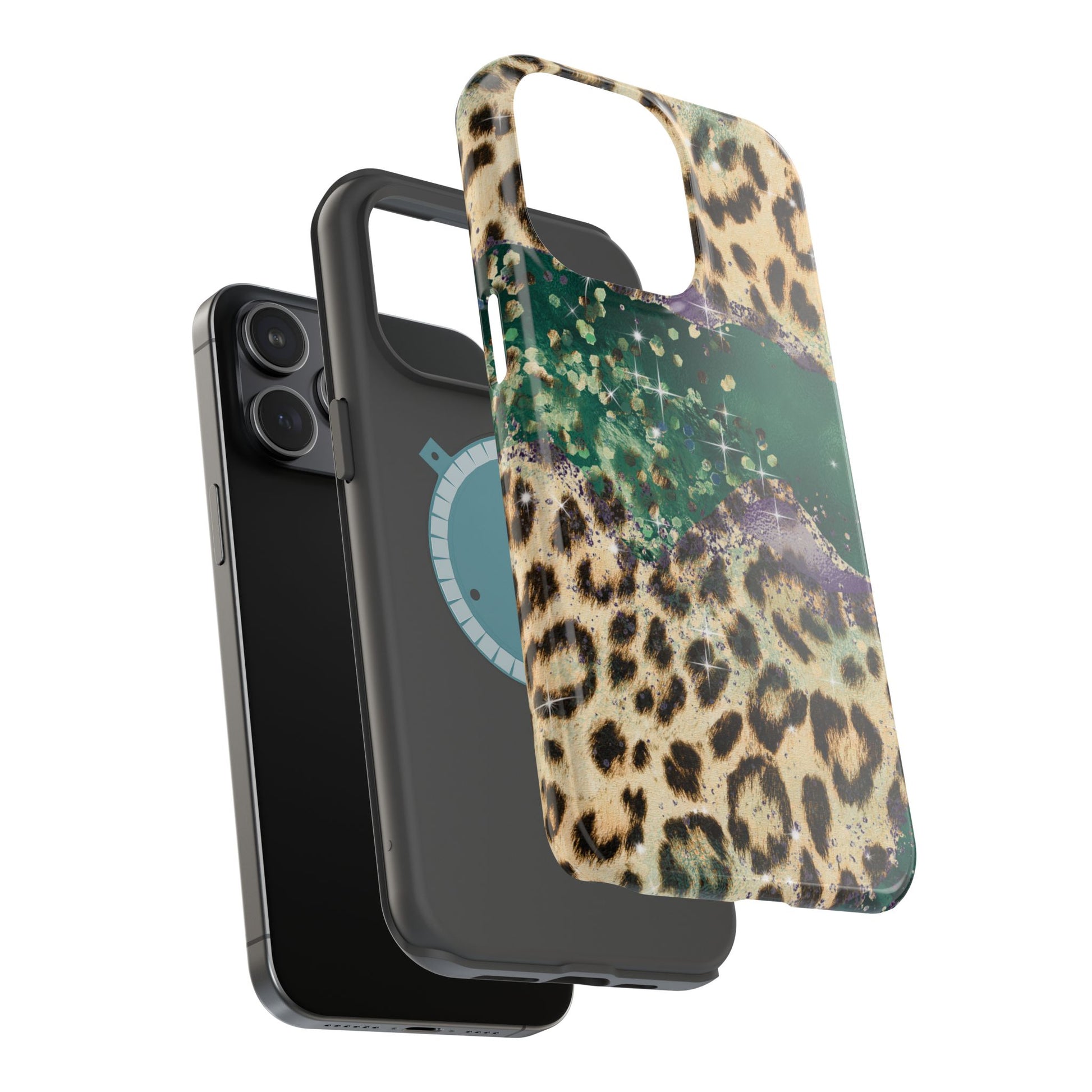 Unleash your wild side with our Emerald Glitter Leopard Print MagSafe iPhone Case! This fierce design features a chic mix of gold and black leopard spots overlaid with a shimmering emerald and purple glitter background. Perfect for those who love bold style, this case brings together animal print glam with eye-catching sparkle. Built with a tough, shock-absorbing layer, it’s as protective as it is stylish, keeping your iPhone safe while adding a dash of luxury to your look. Stand out with a case that’s made to be noticed!