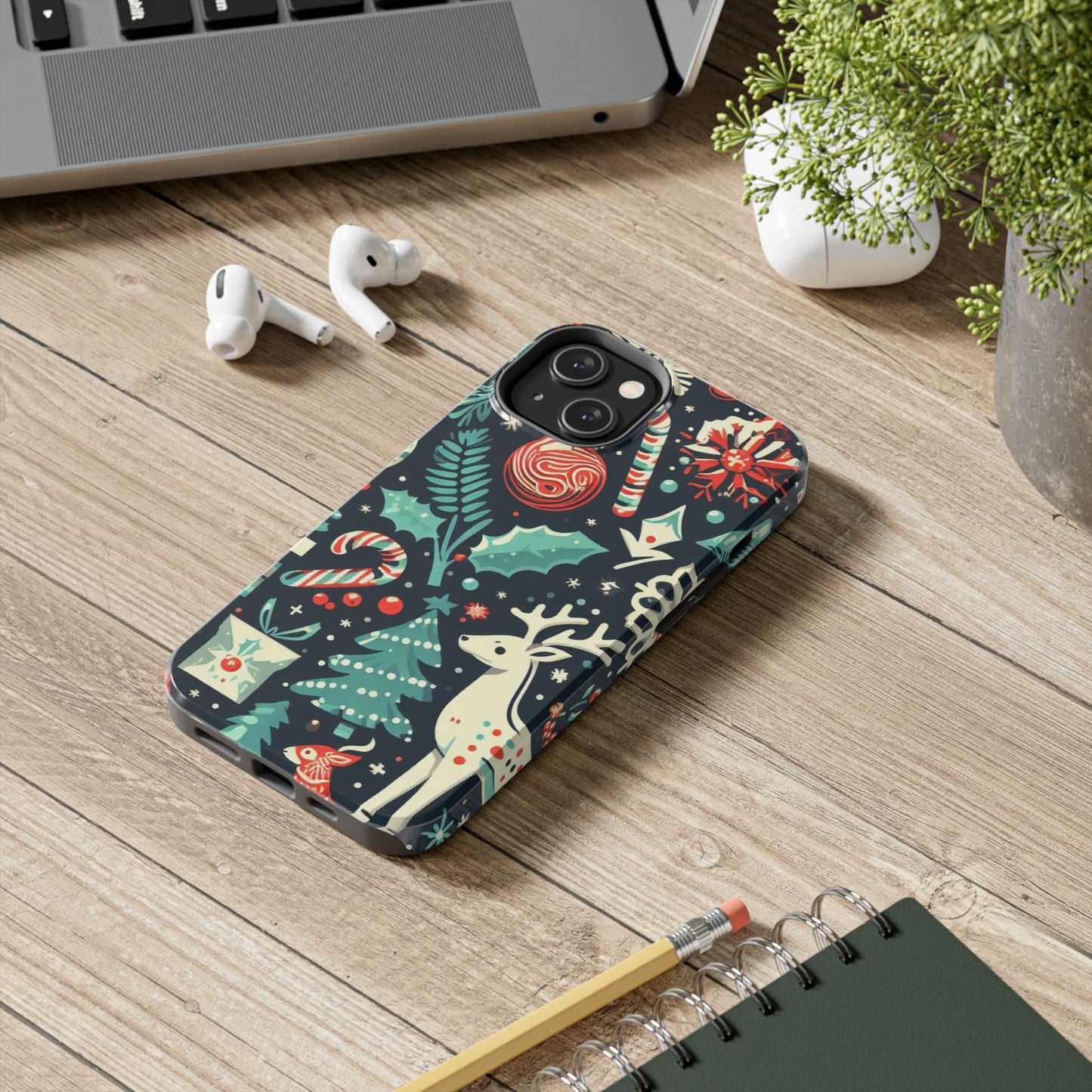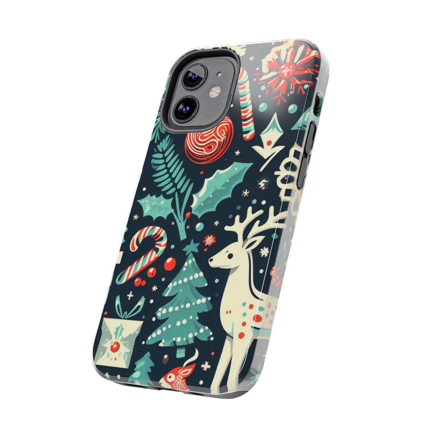 Get into the holiday spirit with our Festive Woodland Holiday iPhone Case, featuring a playful, vintage-inspired Christmas design with reindeer, snowflakes, candy canes, and ornaments in classic red, green, and cream tones. This cheerful, wintery pattern brings a nostalgic vibe, perfect for s...