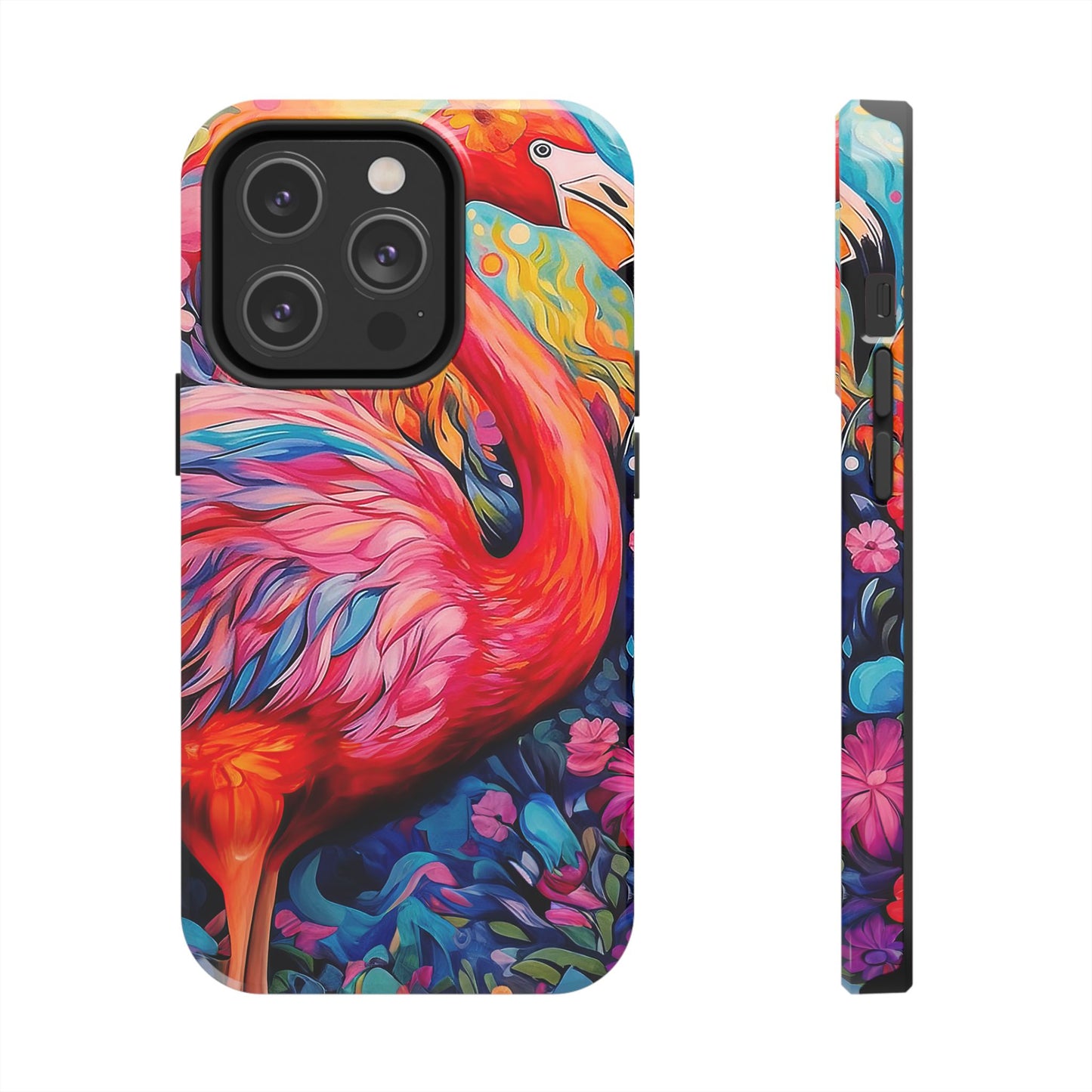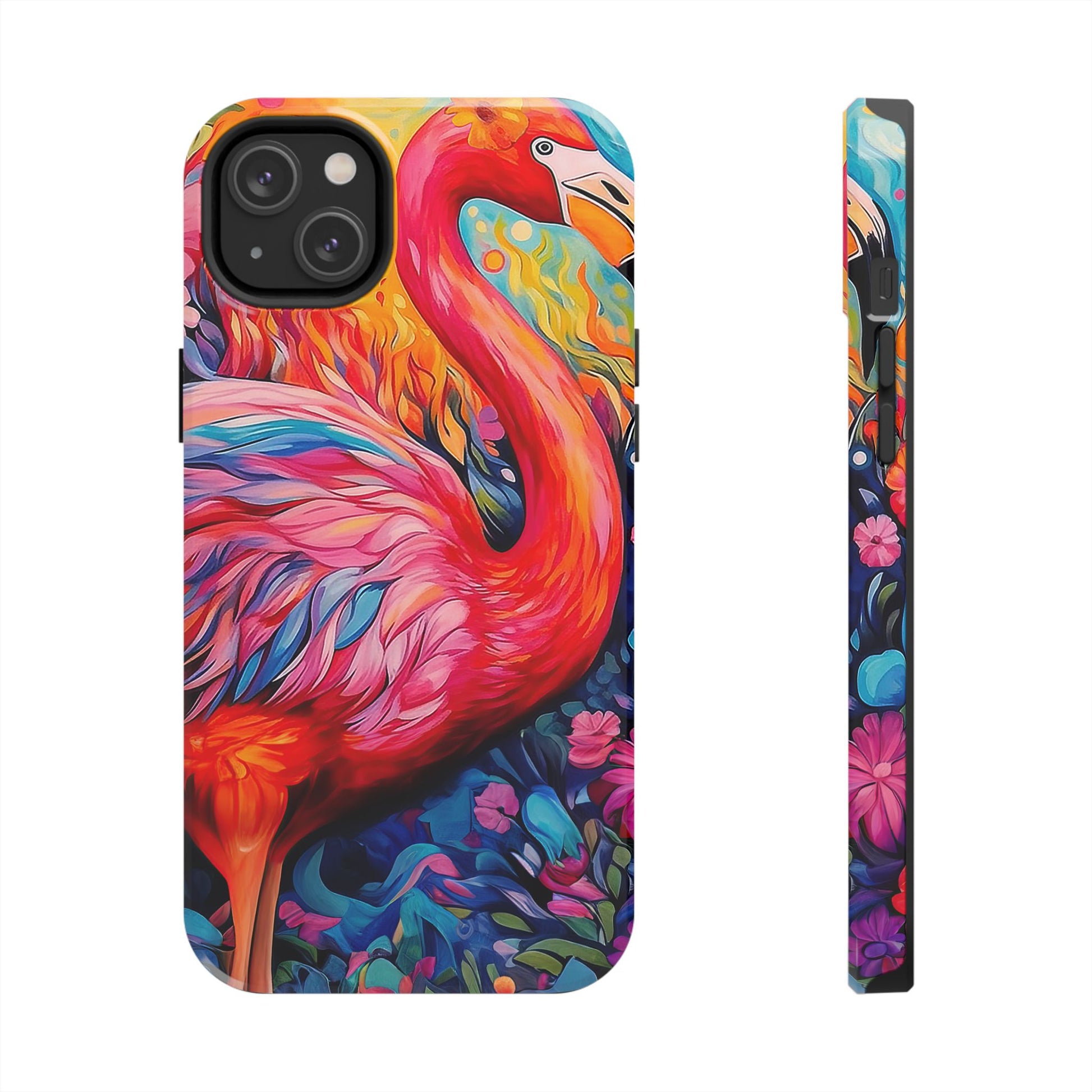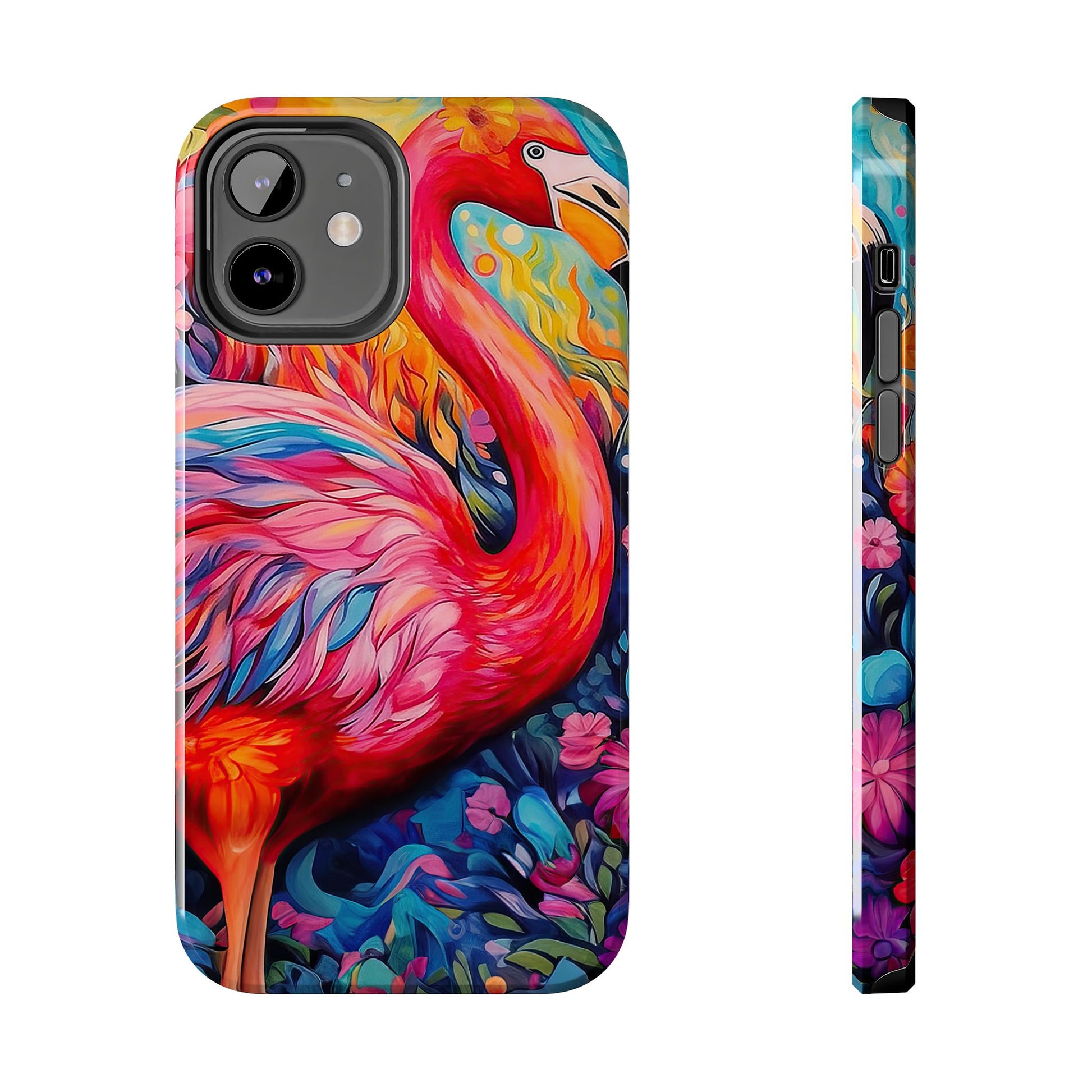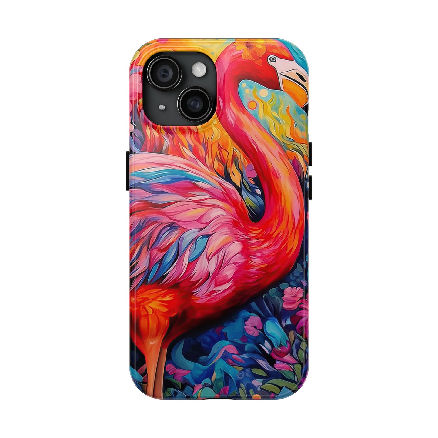 Turn heads with the Flamingo Fiesta iPhone Cases. Bursting with tropical vibes, this artistic design features a flamboyant flamingo amidst a garden of bold and colorful flowers.