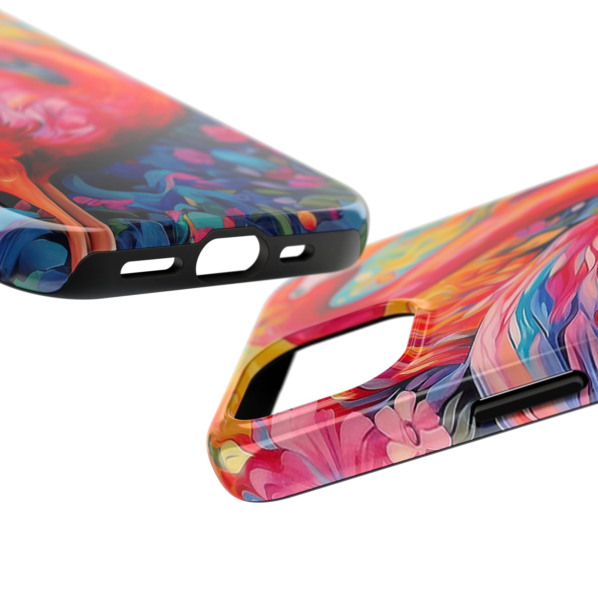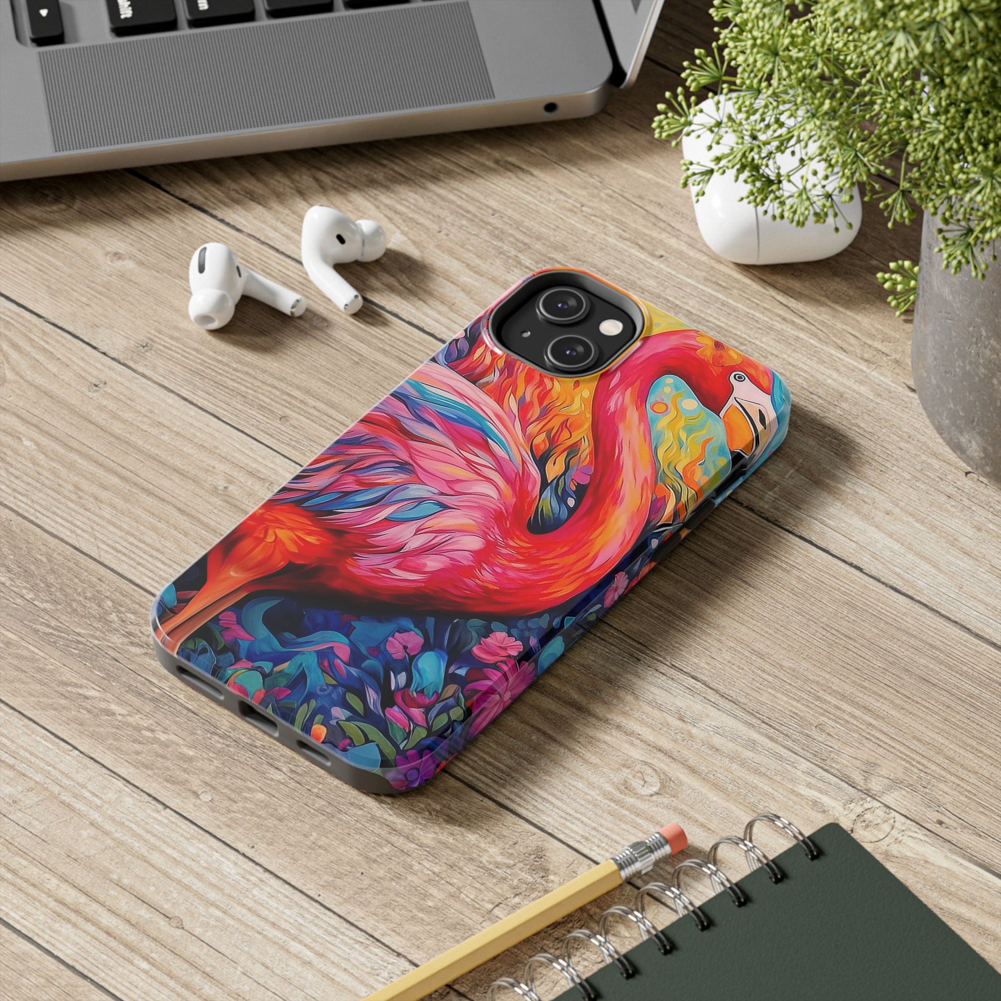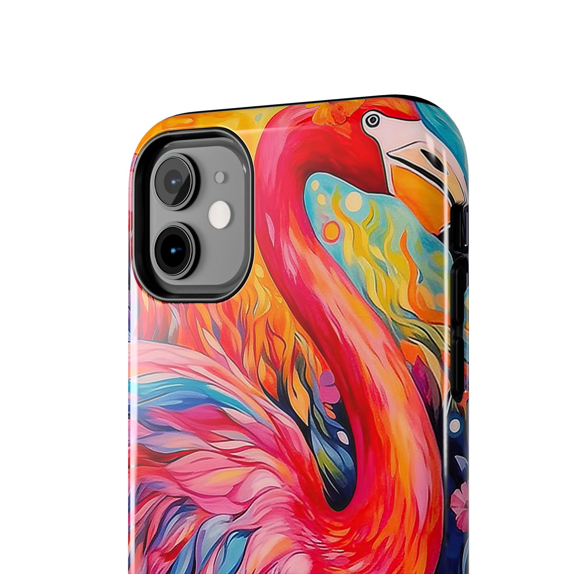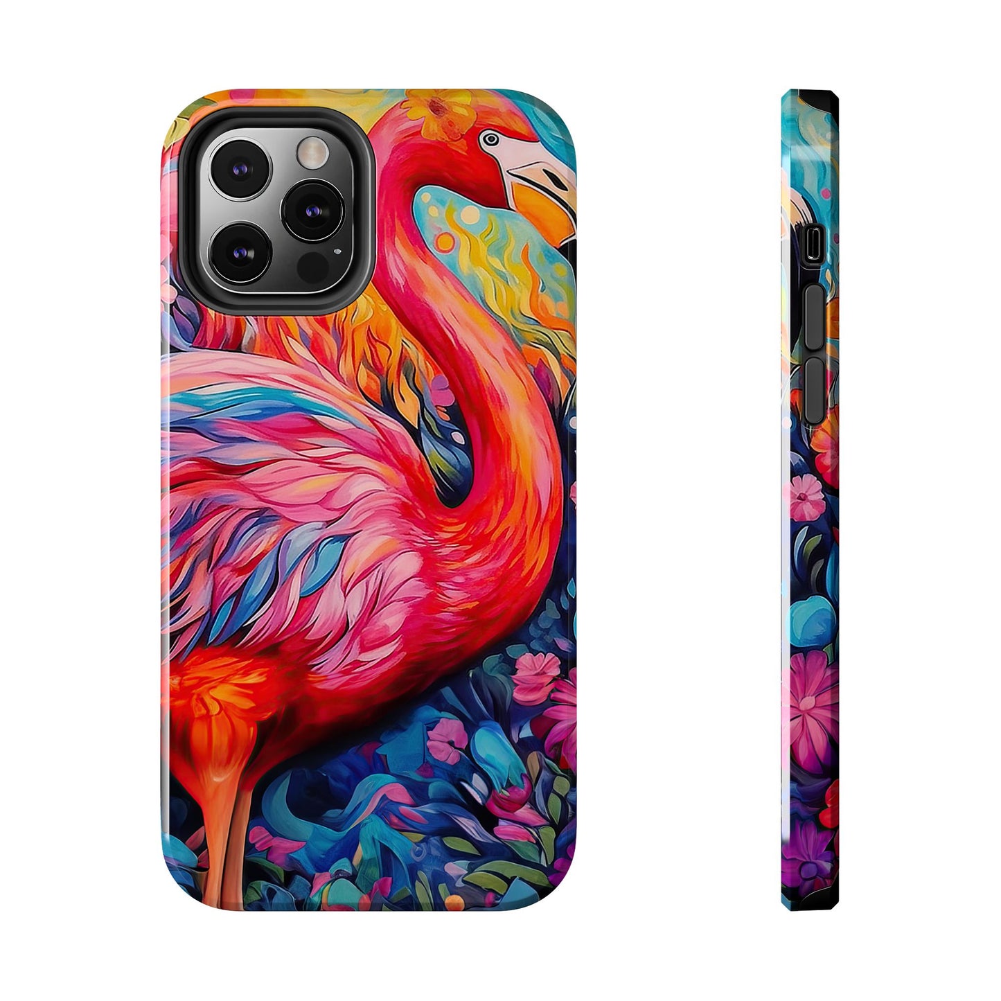 Turn heads with the Flamingo Fiesta iPhone Cases. Bursting with tropical vibes, this artistic design features a flamboyant flamingo amidst a garden of bold and colorful flowers.