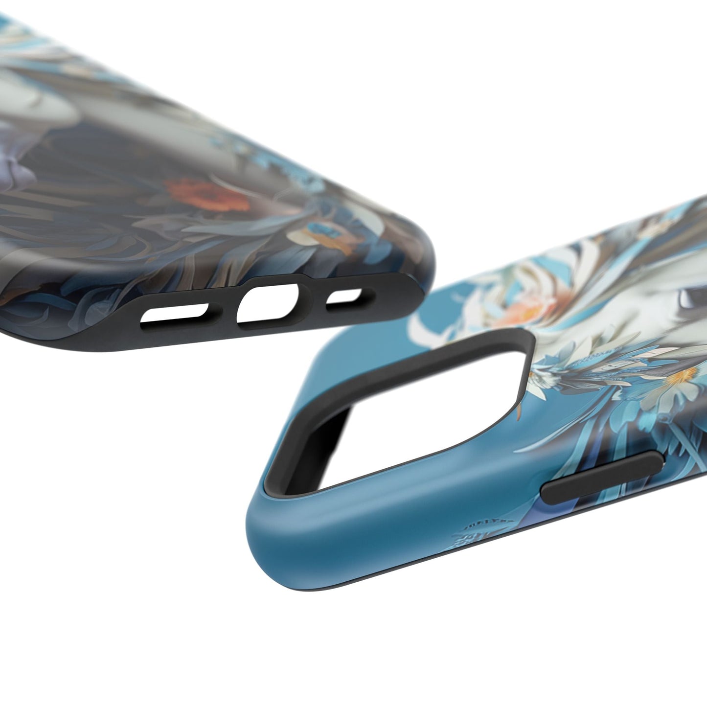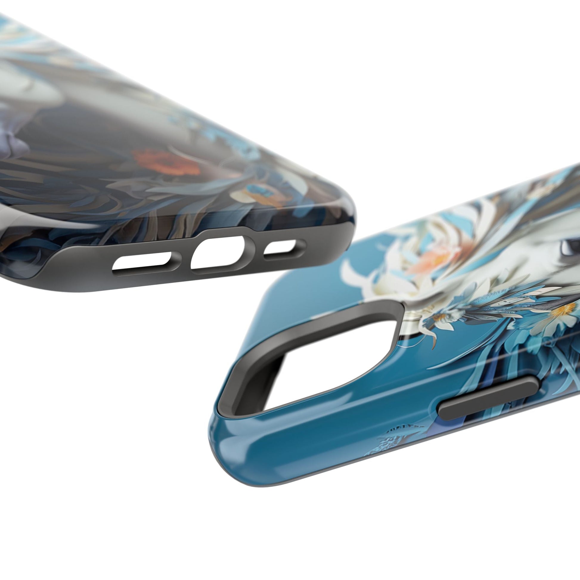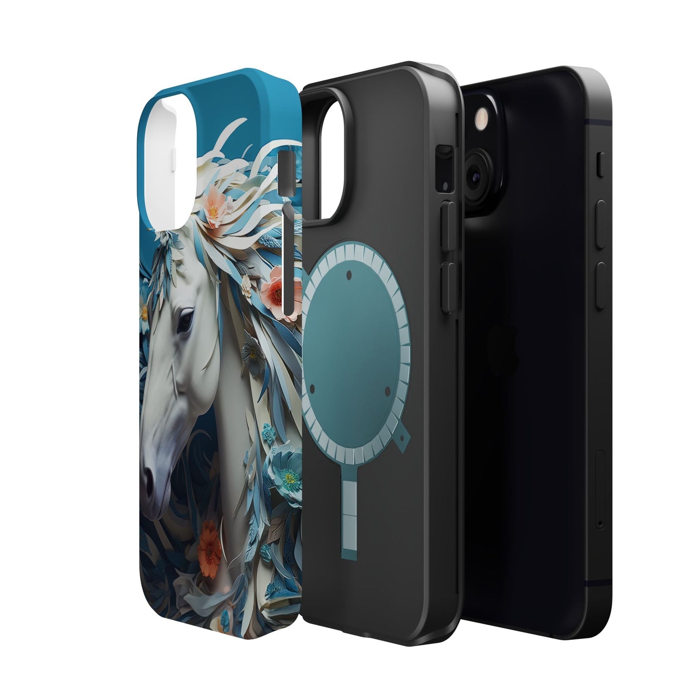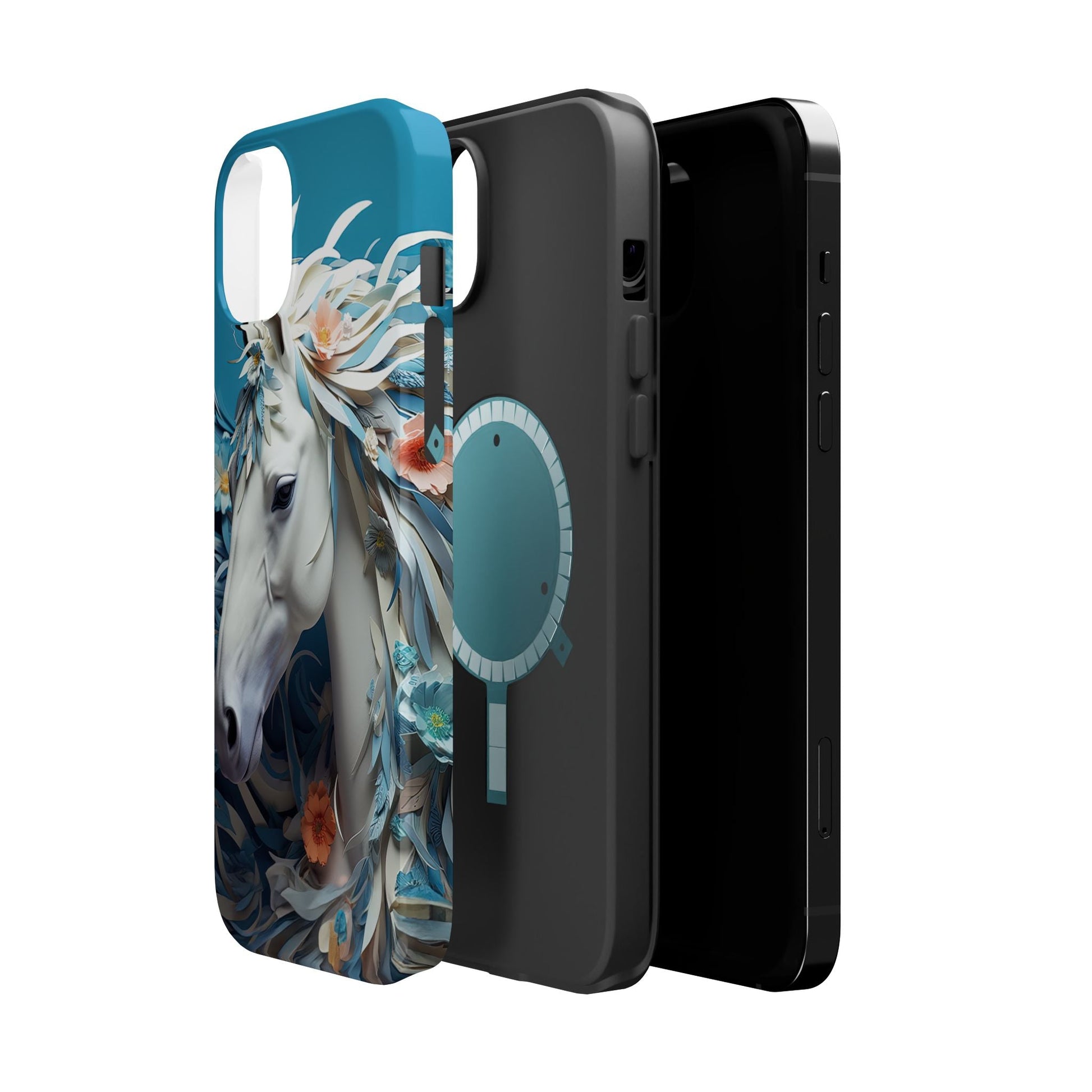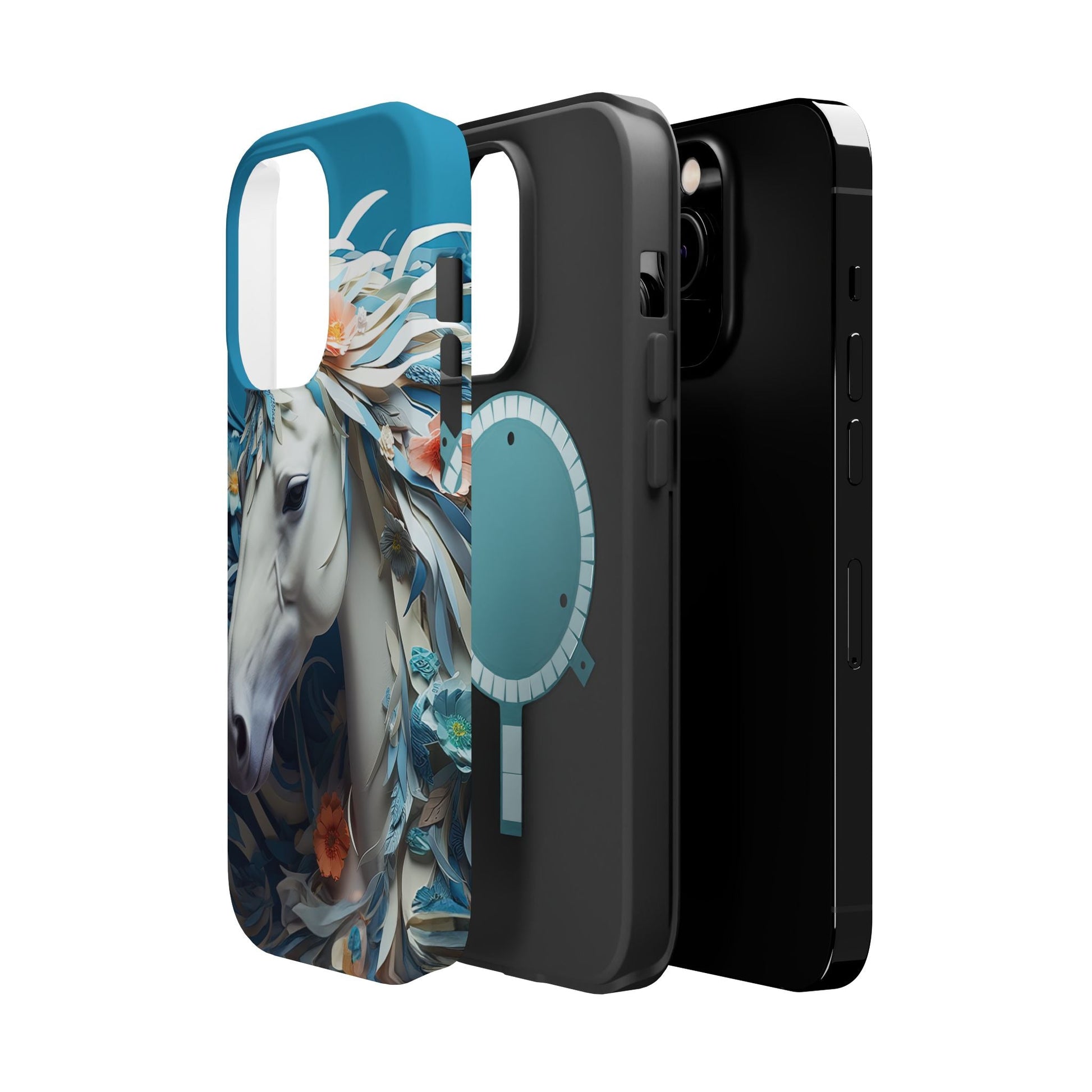 Embrace the beauty of nature with our Floral Horse MagSafe iPhone Case! This enchanting design features a graceful white horse adorned with a vibrant mane of paper flowers, set against a serene blue backdrop. It's a captivating scene that brings a touch of eleganc...