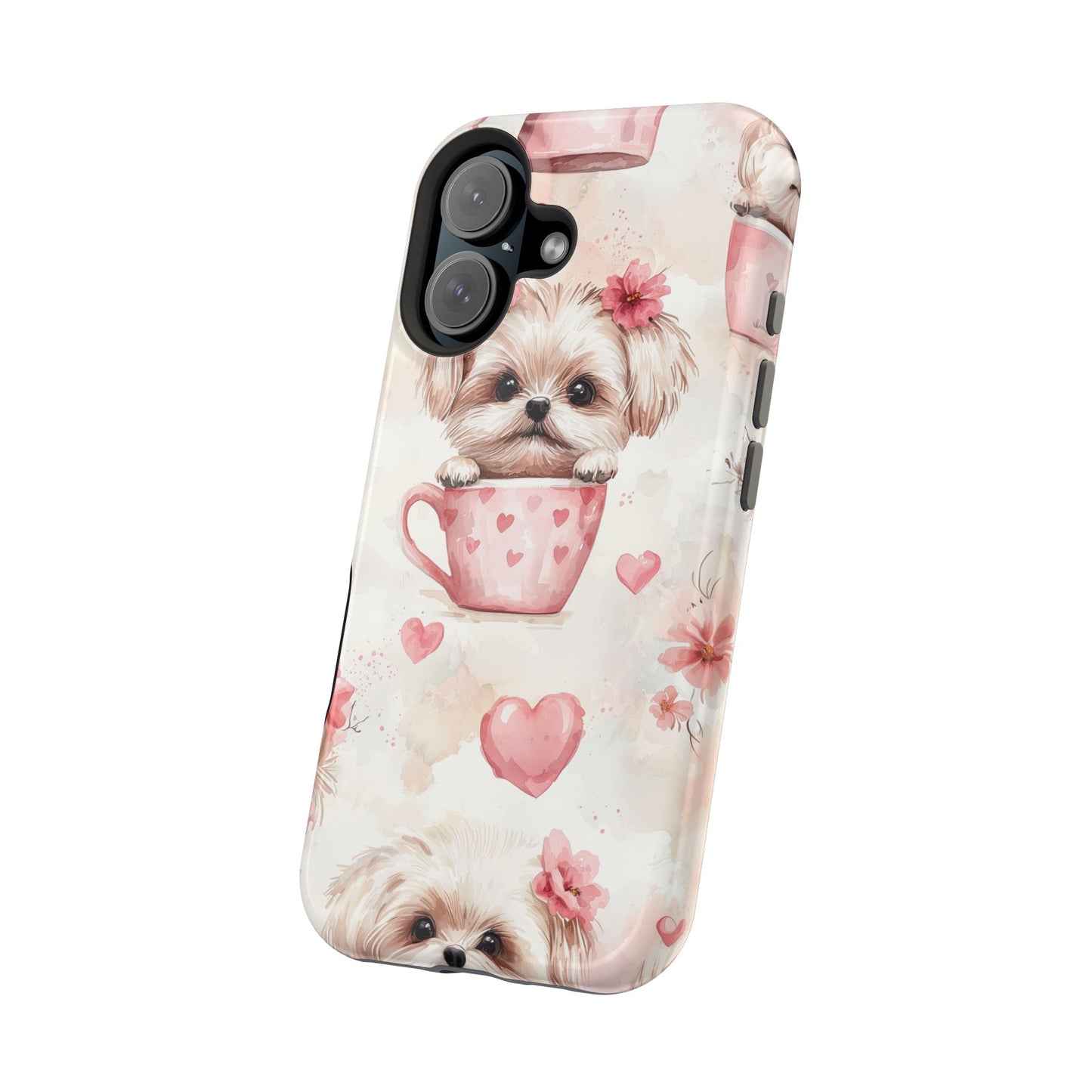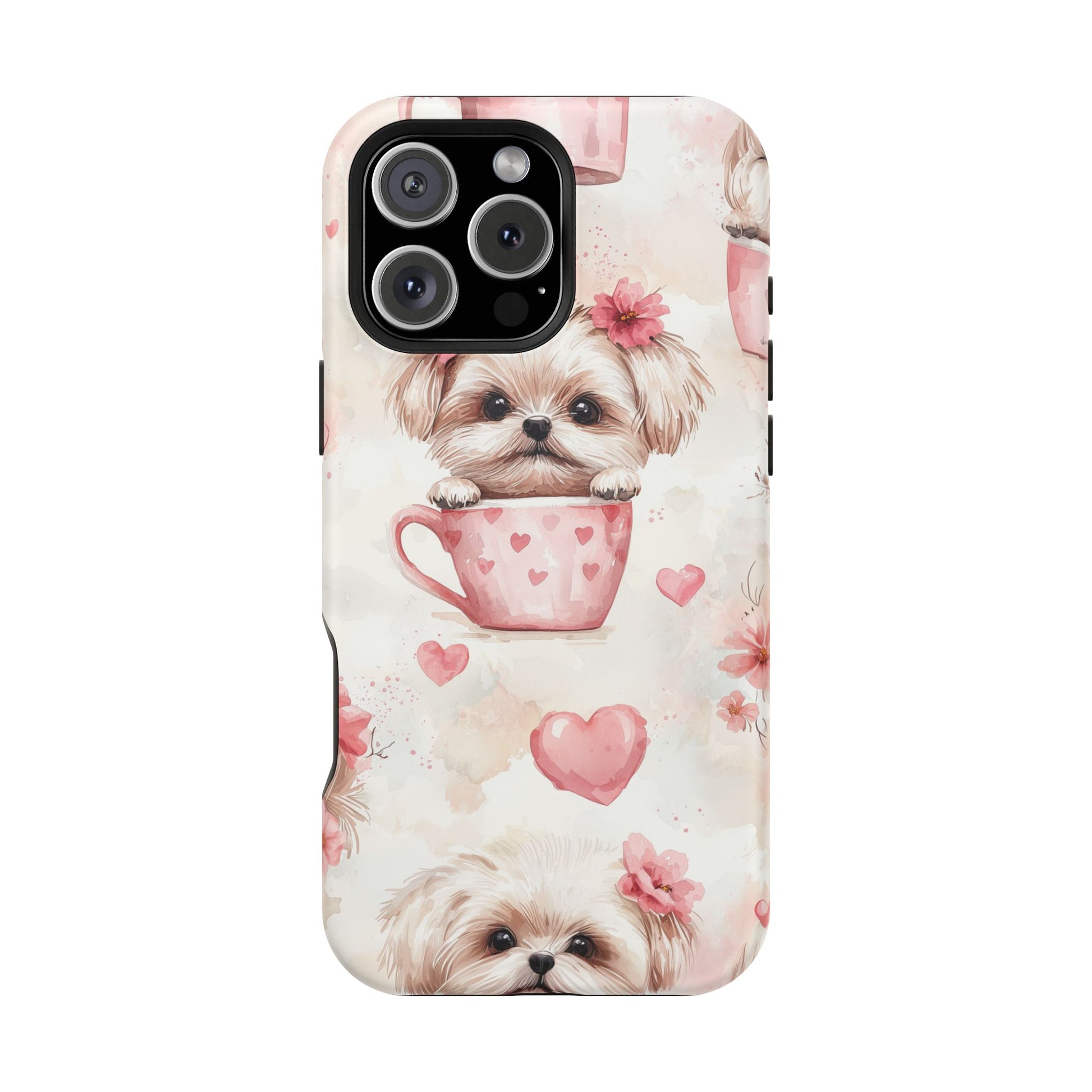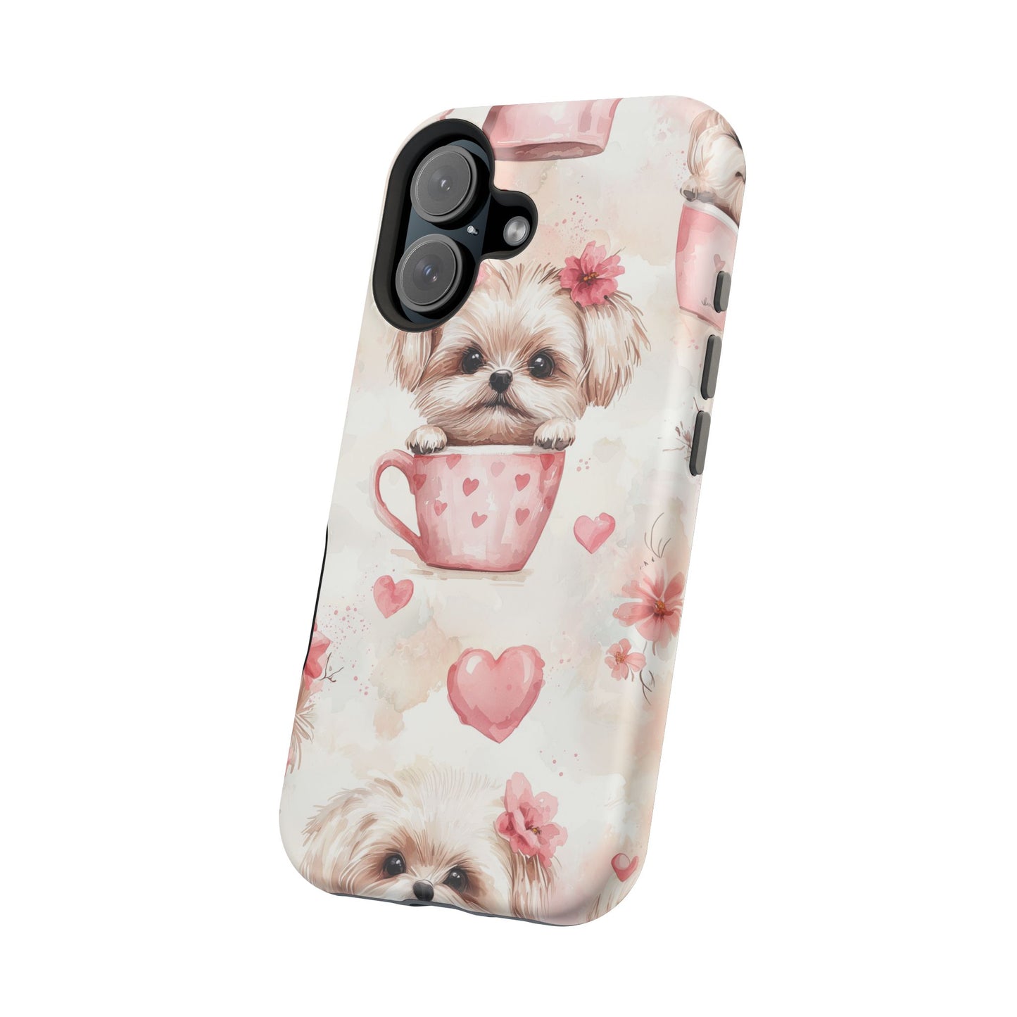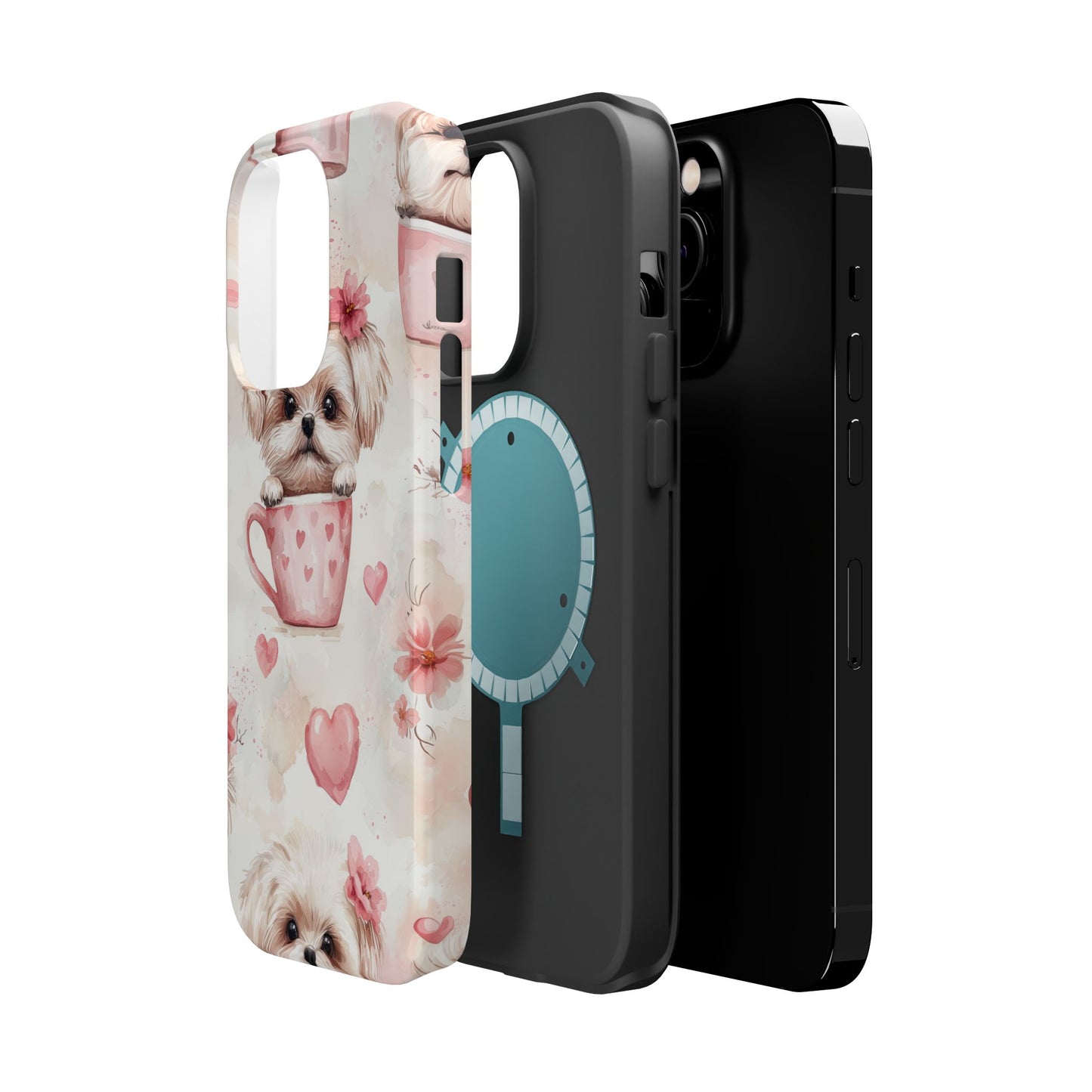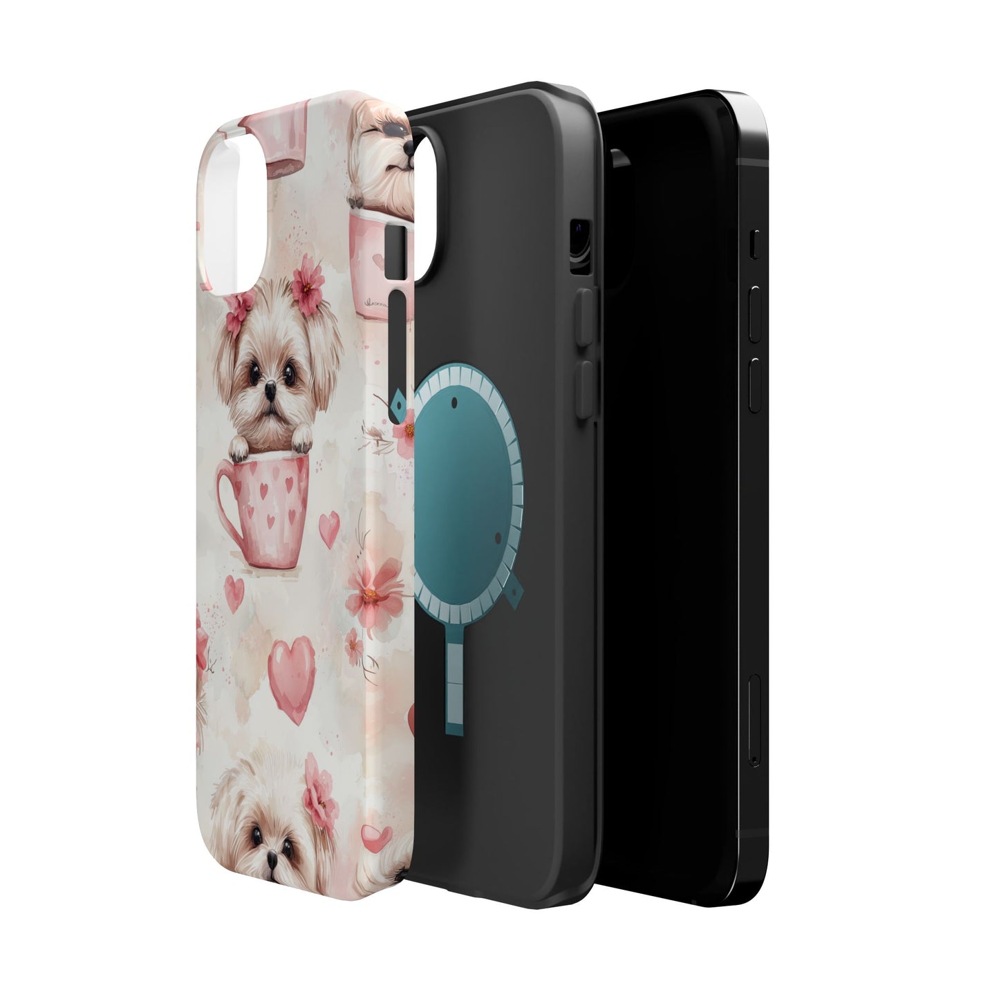 Floral Puppy in Teacup MagSafe iPhone Case – Cute Pink Flower Design, Tough Dual-Layer Protection