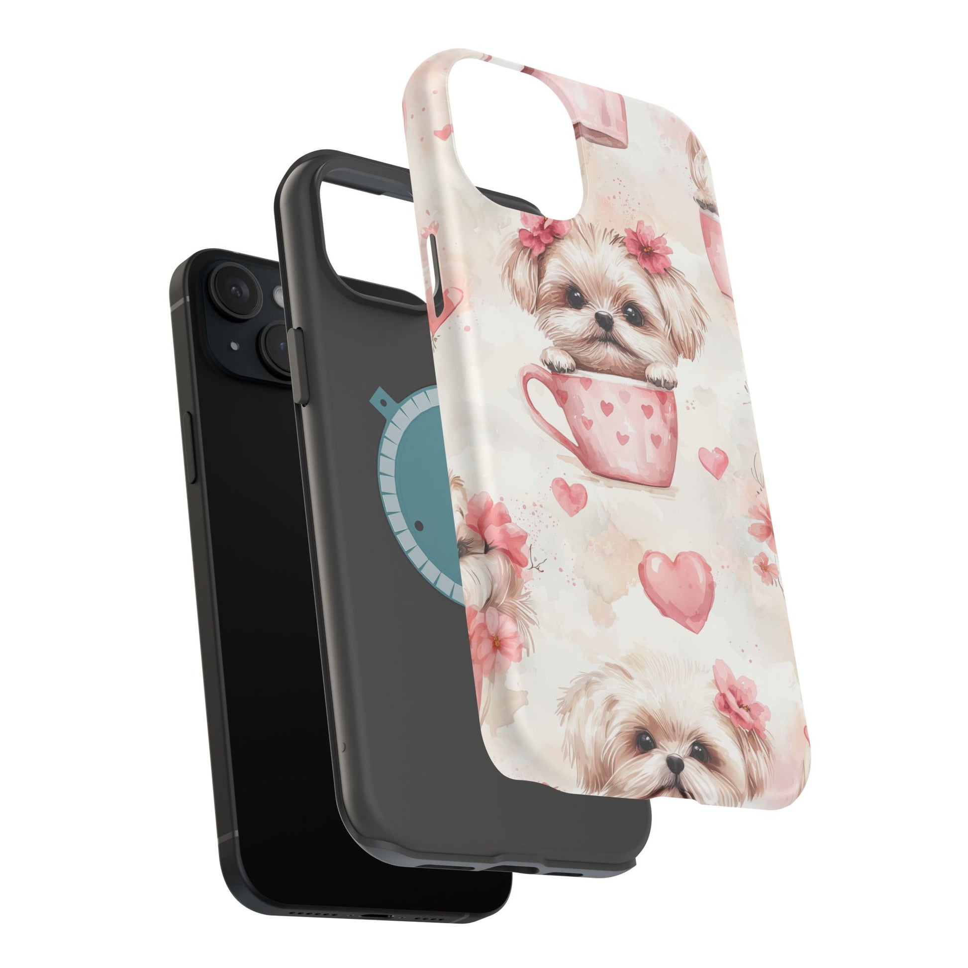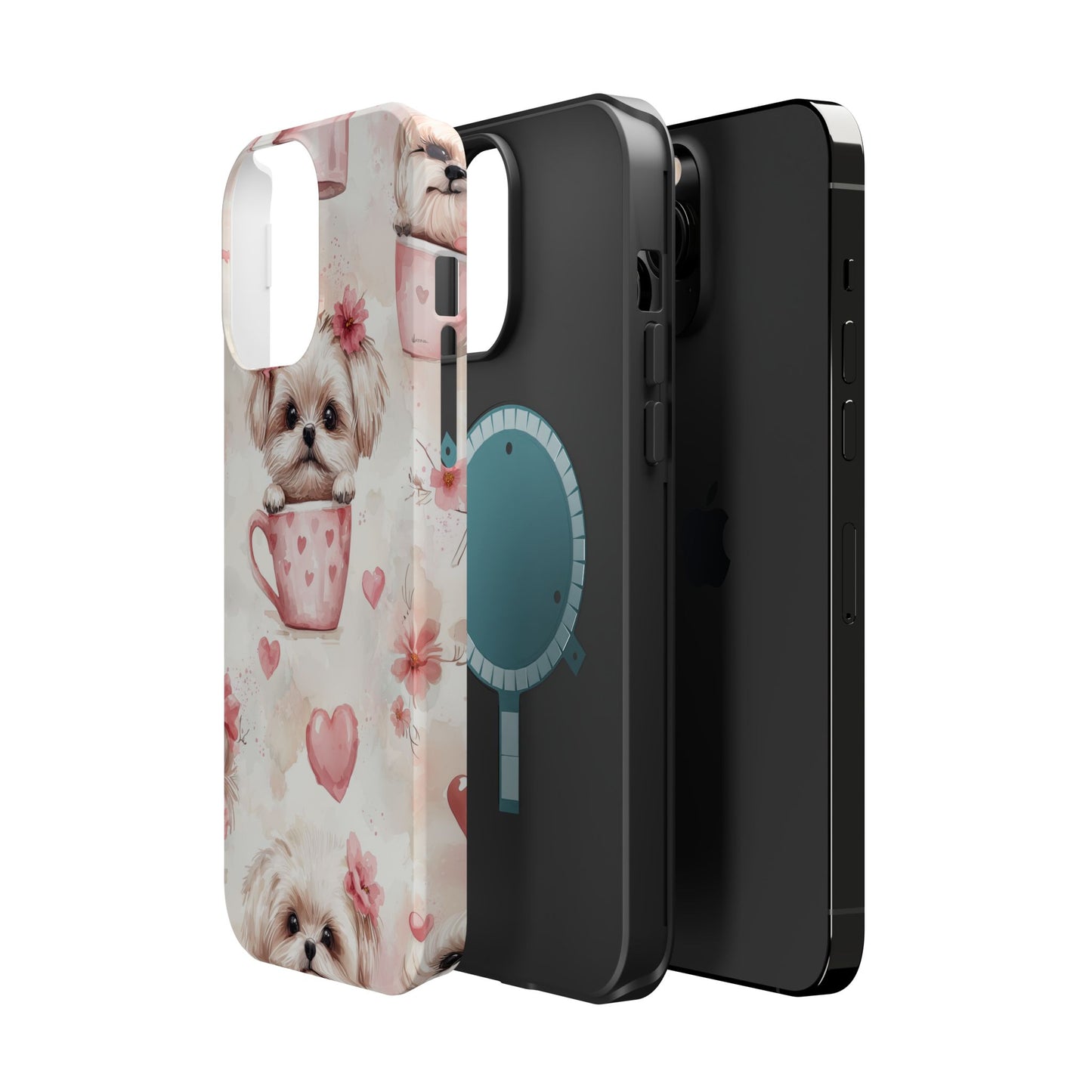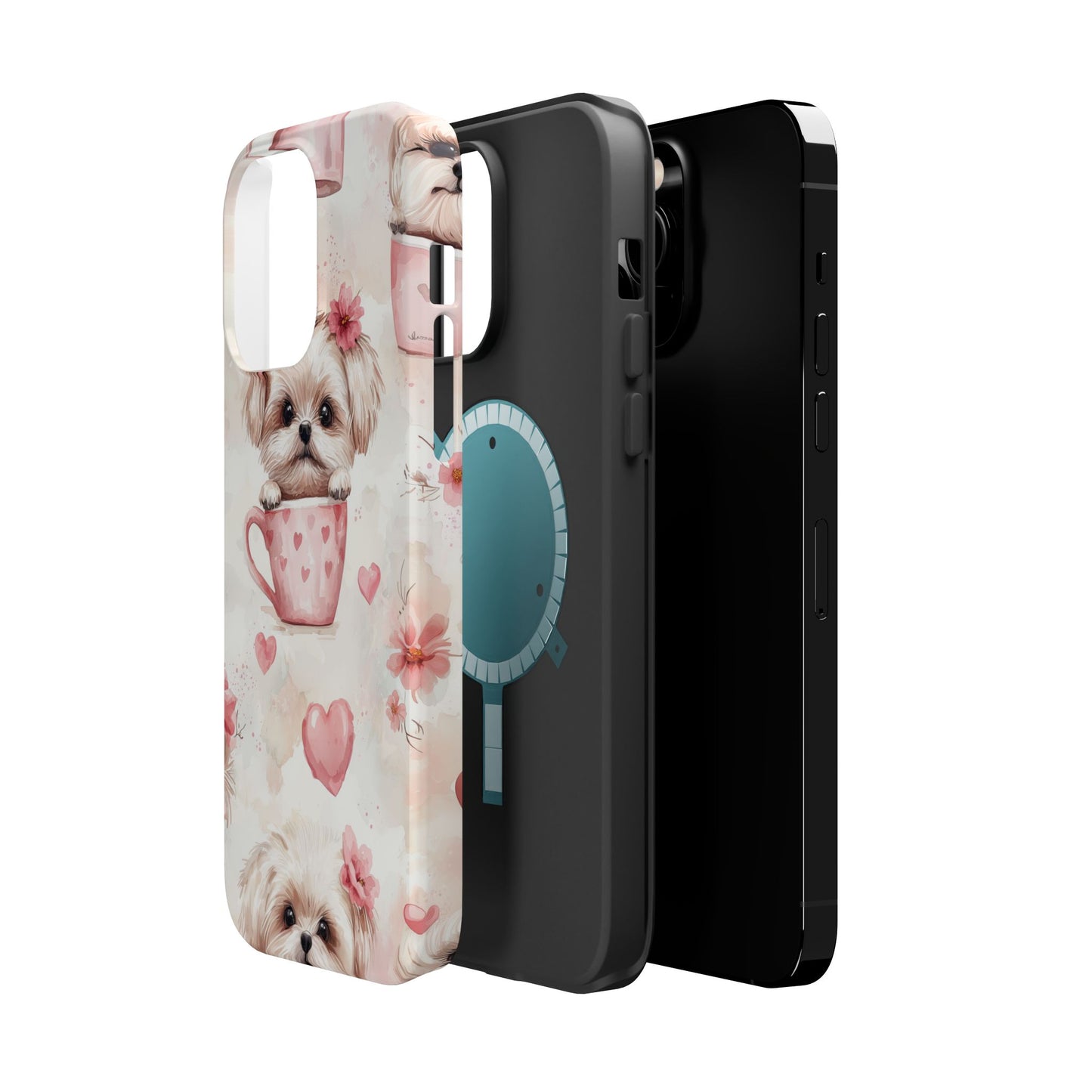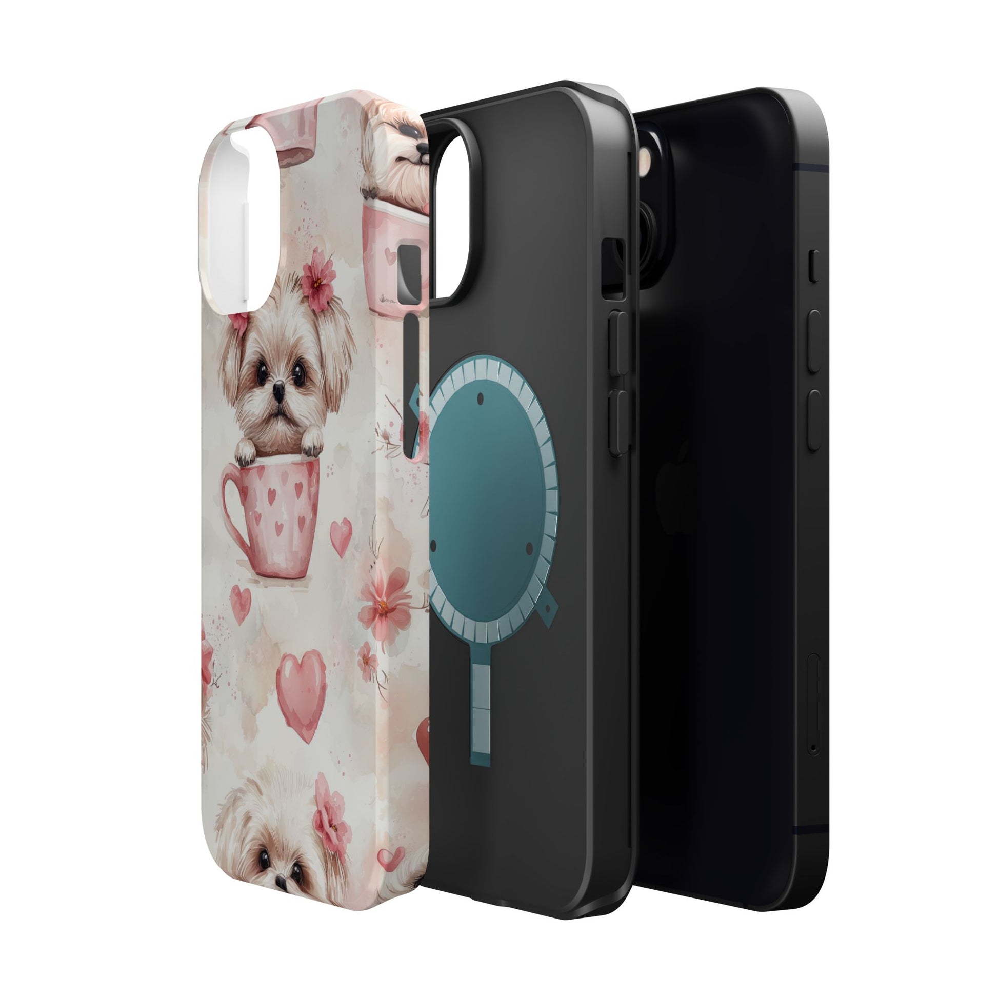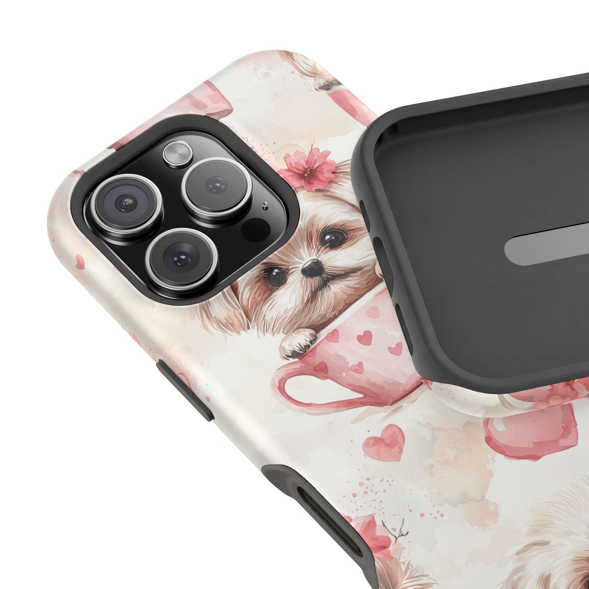Floral Puppy in Teacup MagSafe iPhone Case – Cute Pink Flower Design, Tough Dual-Layer Protection