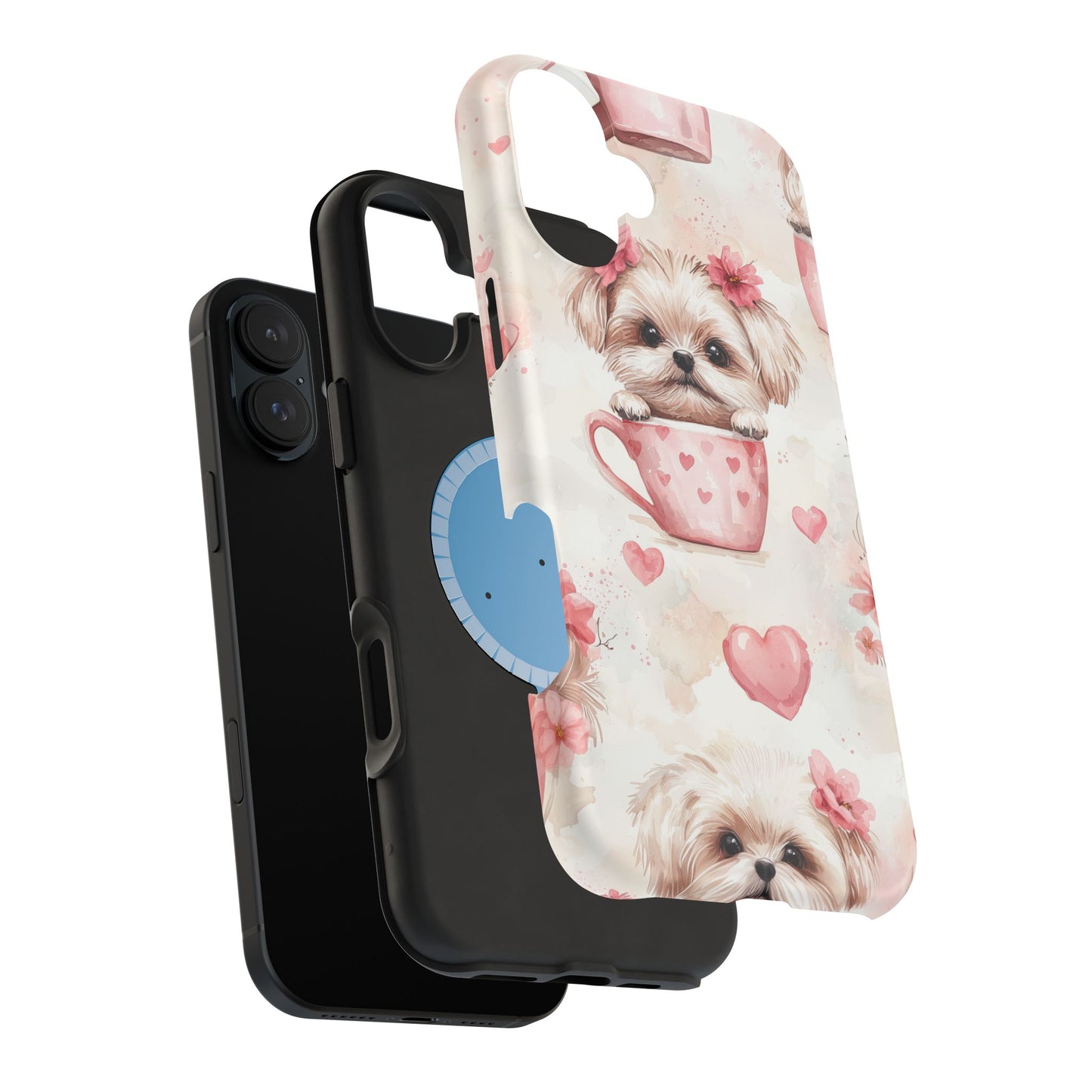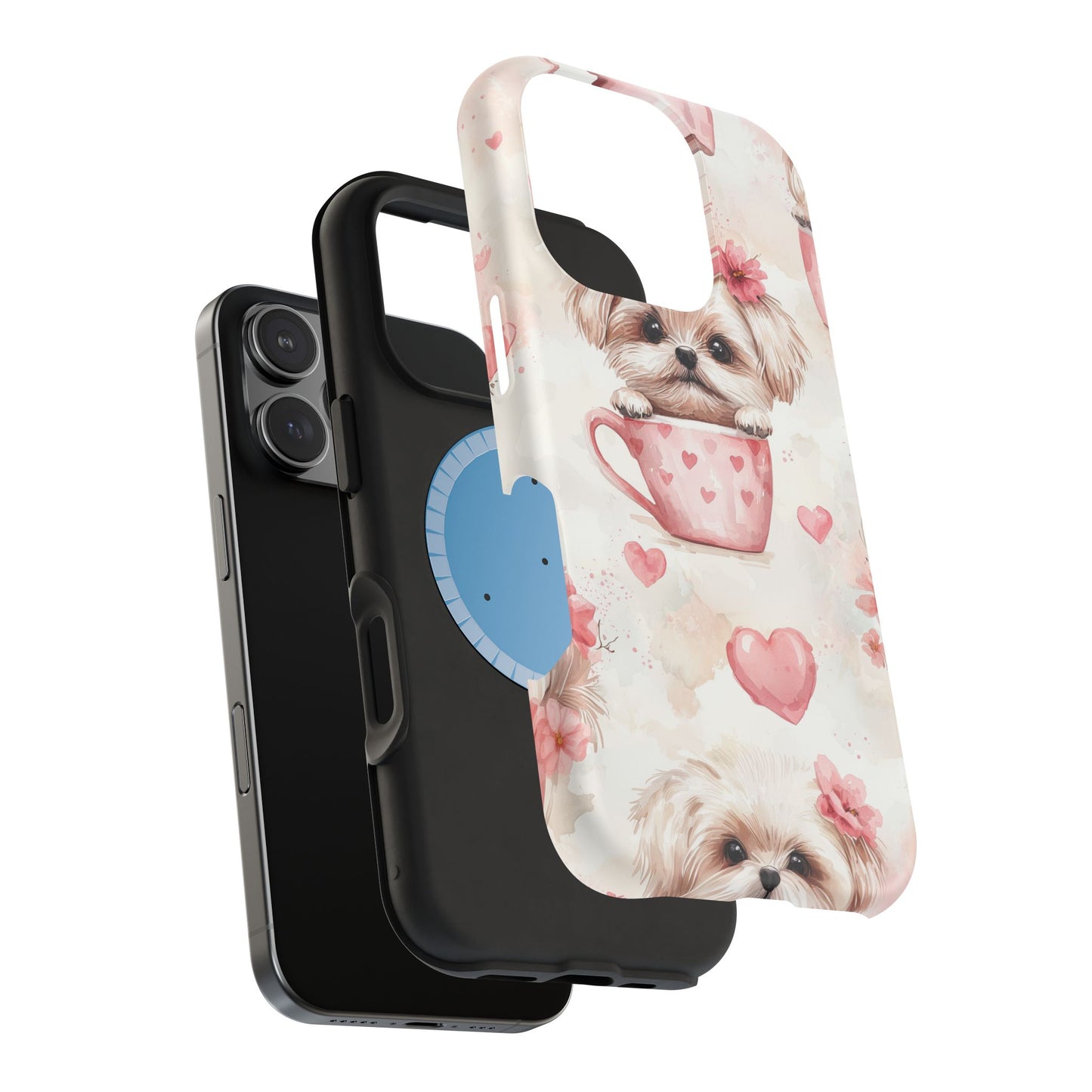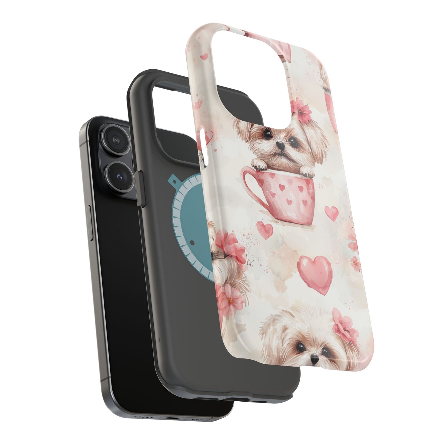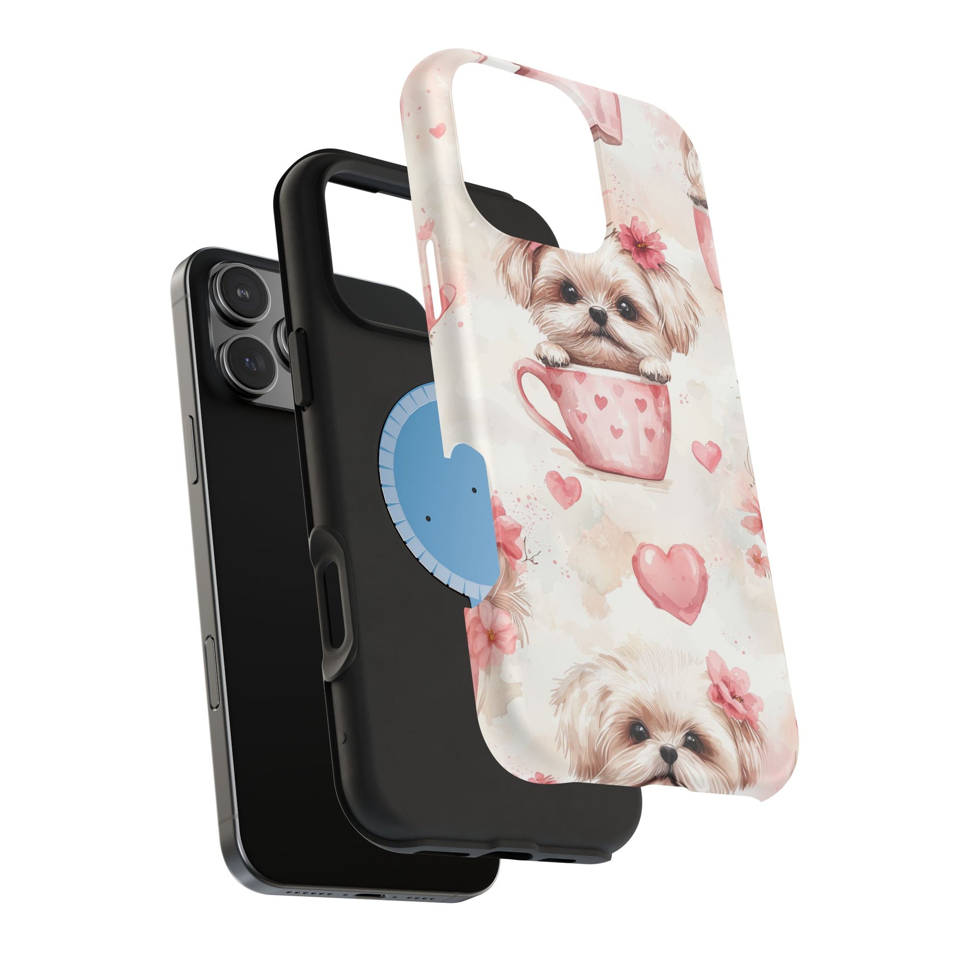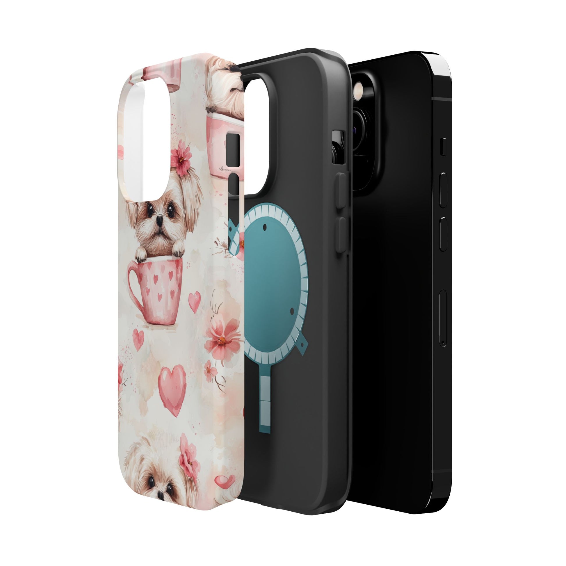 Floral Puppy in Teacup MagSafe iPhone Case – Cute Pink Flower Design, Tough Dual-Layer Protection