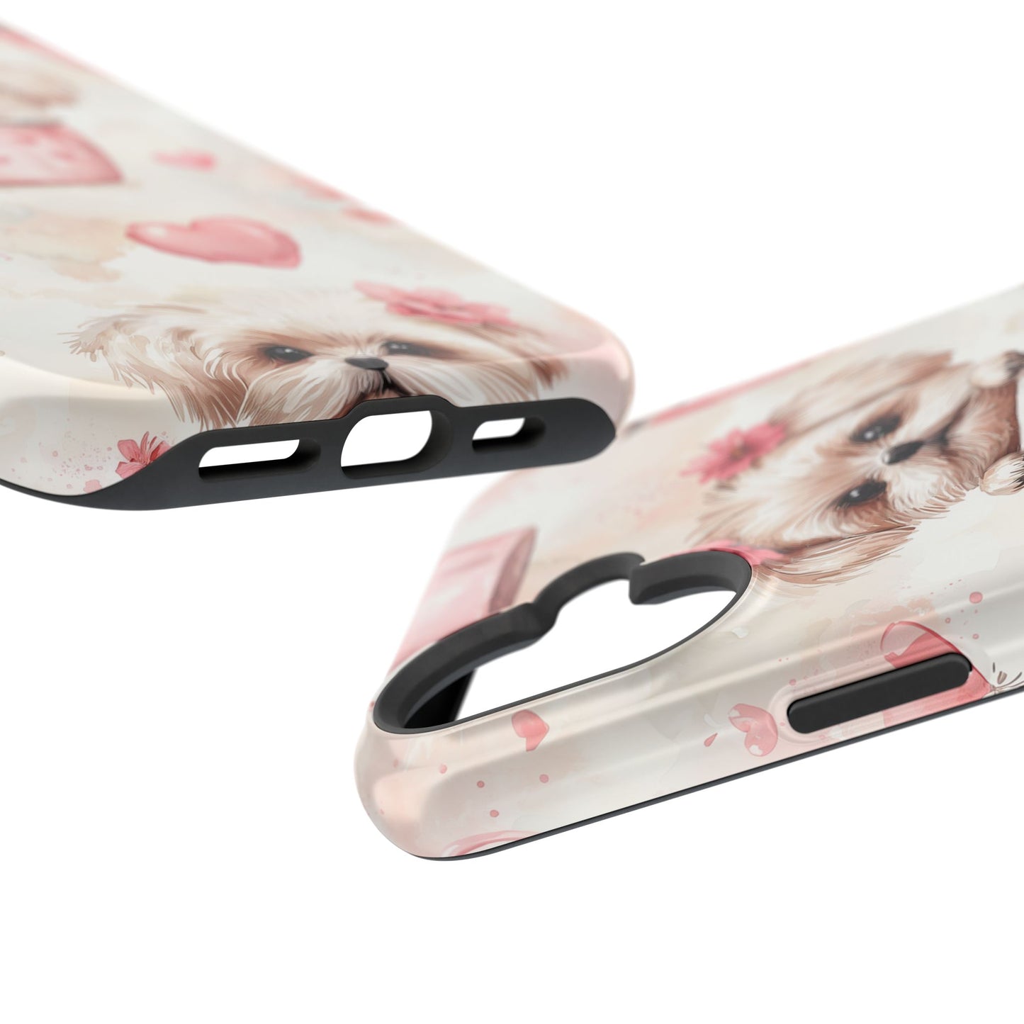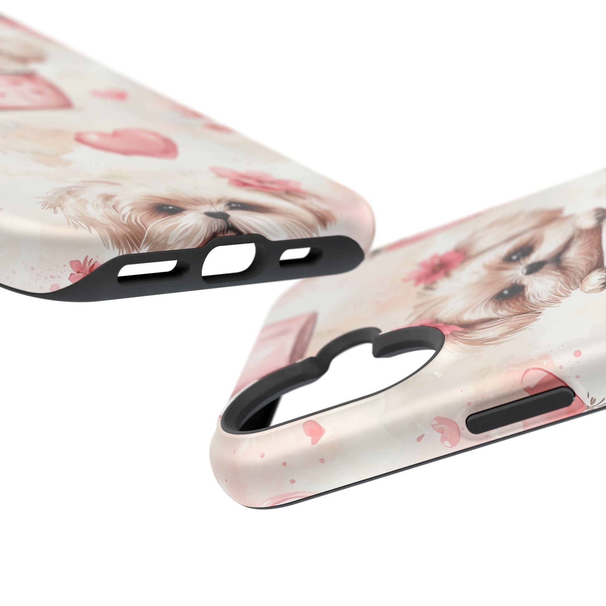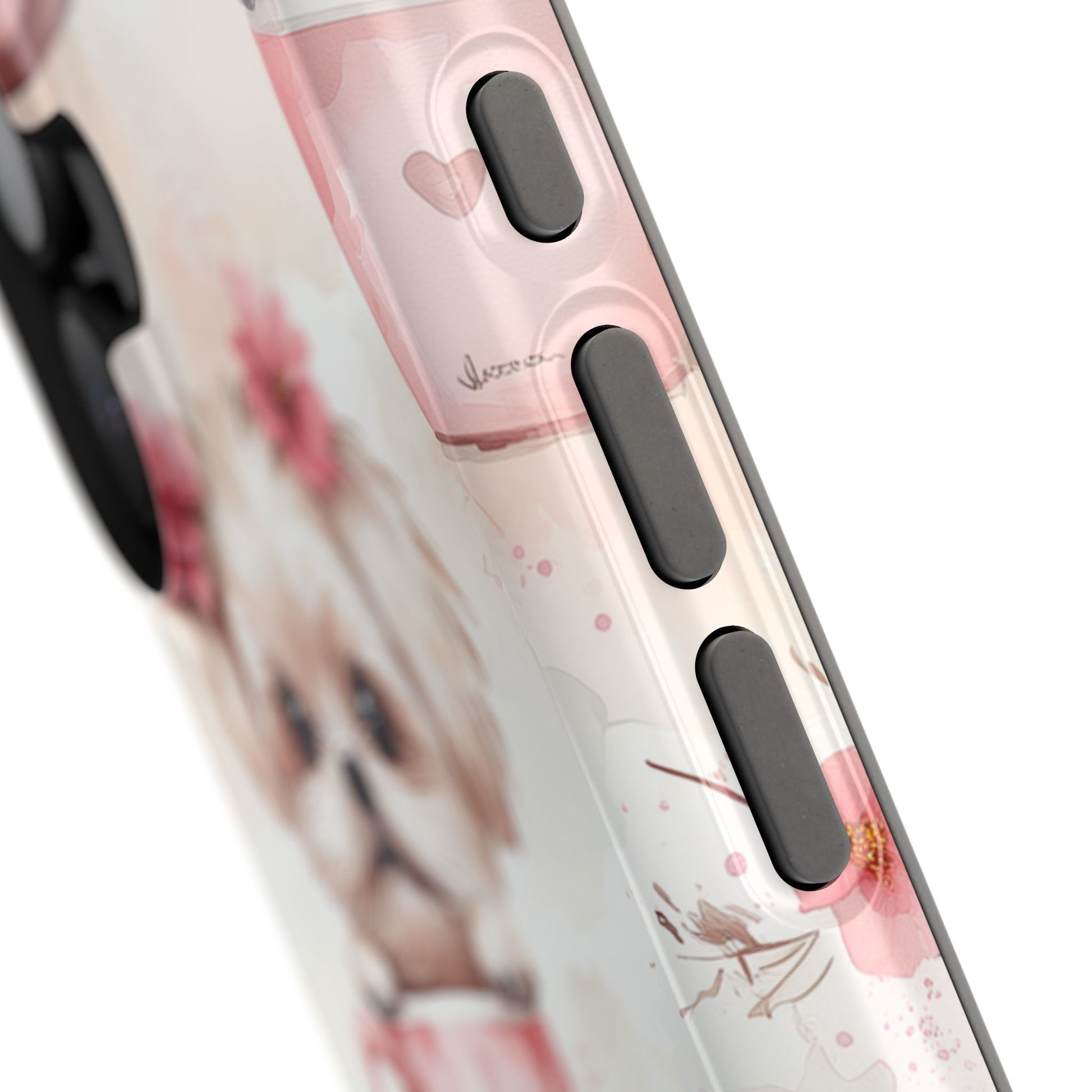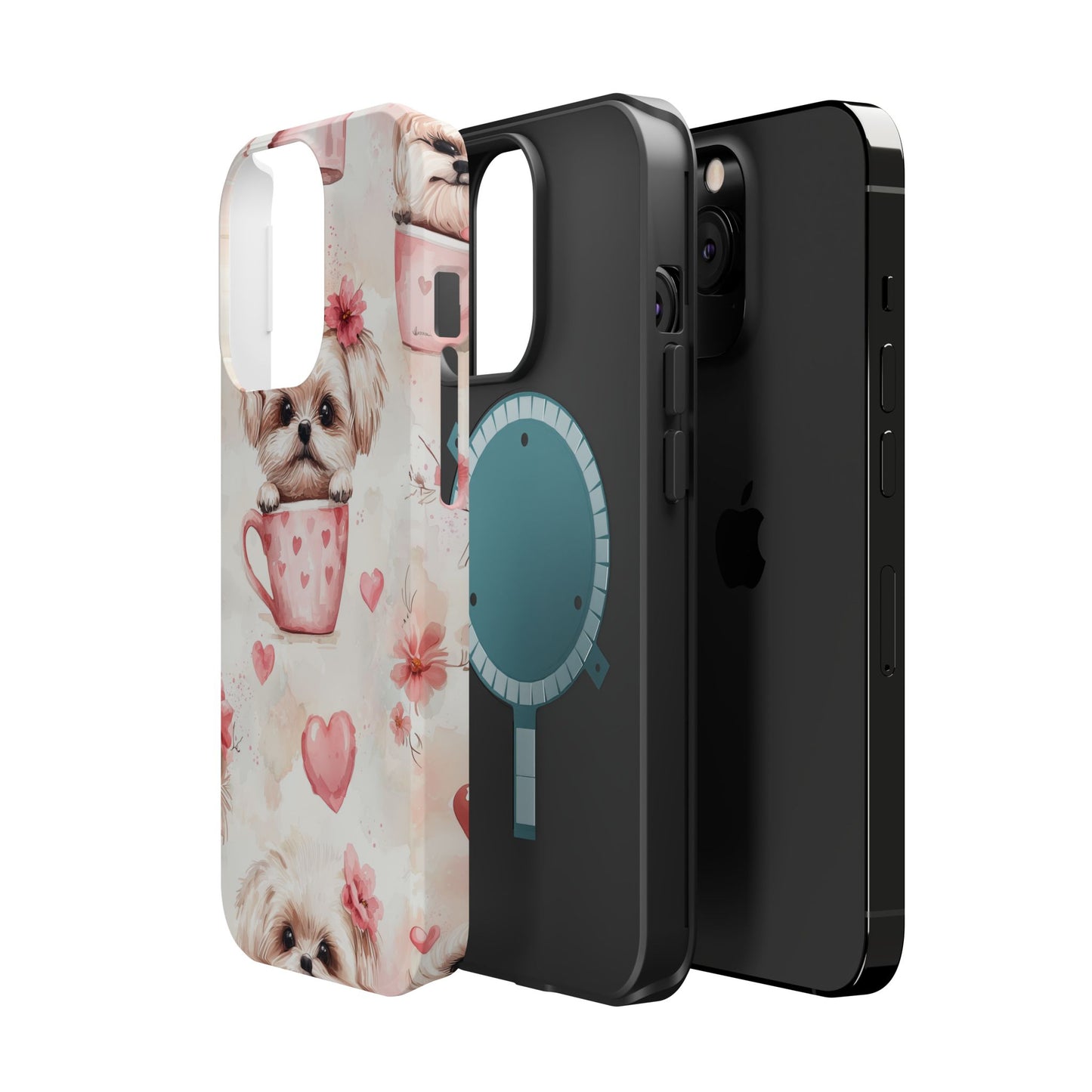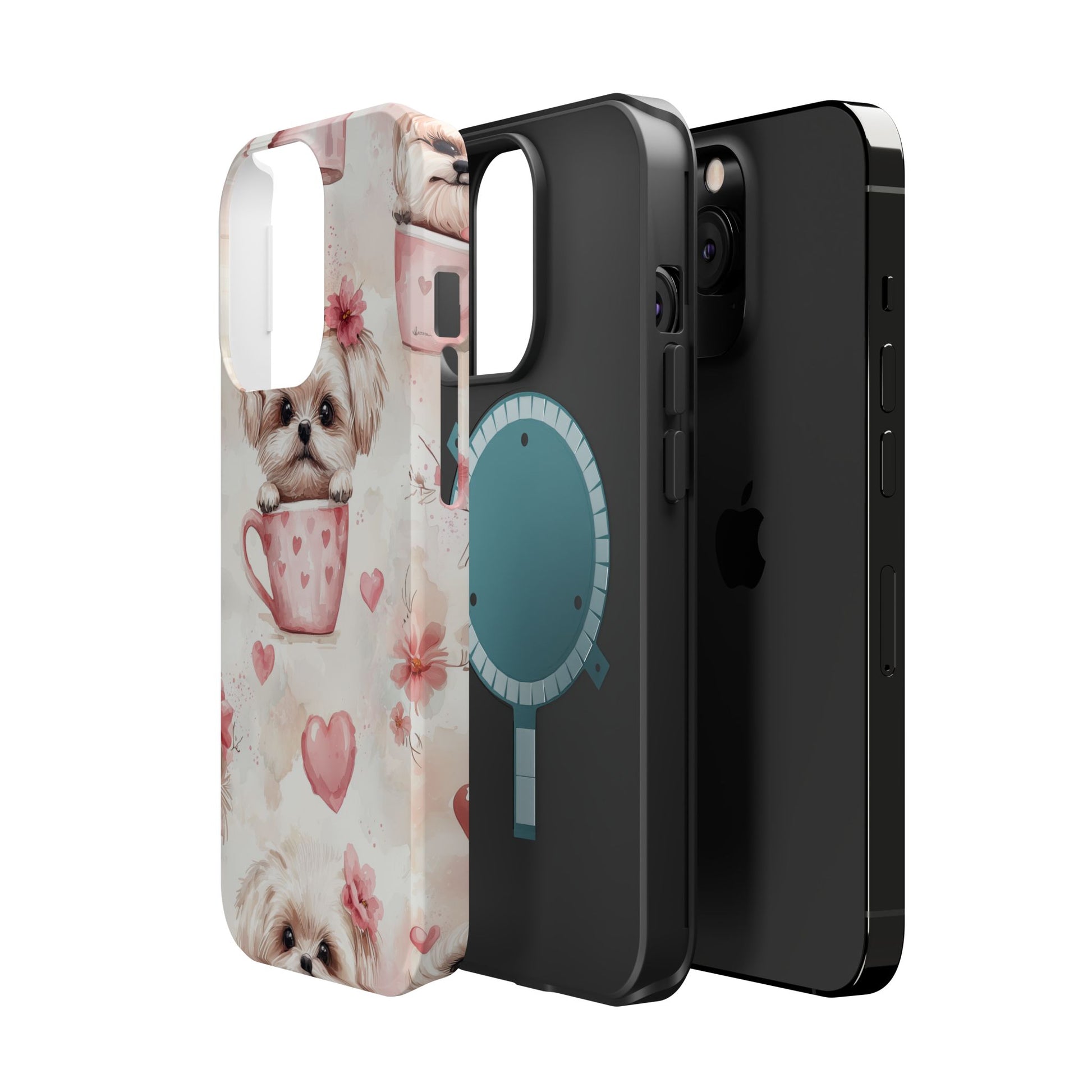Floral Puppy in Teacup MagSafe iPhone Case – Cute Pink Flower Design, Tough Dual-Layer Protection