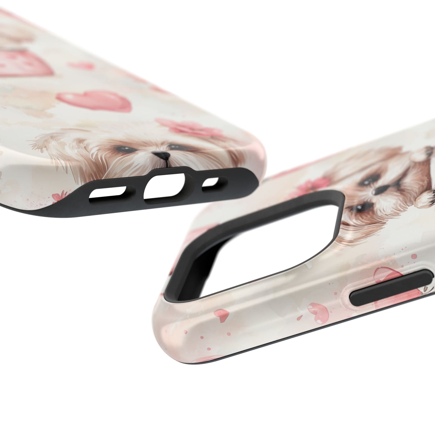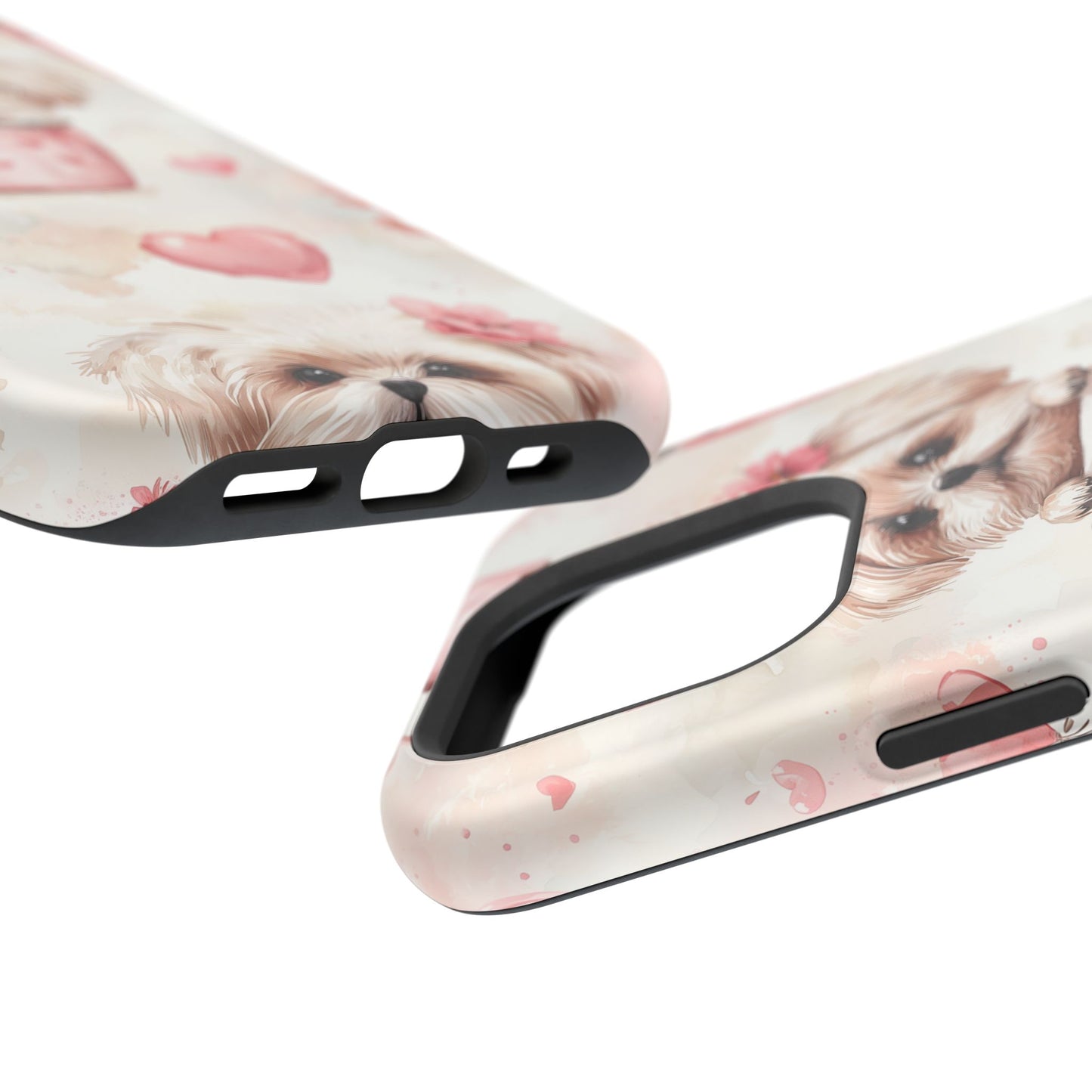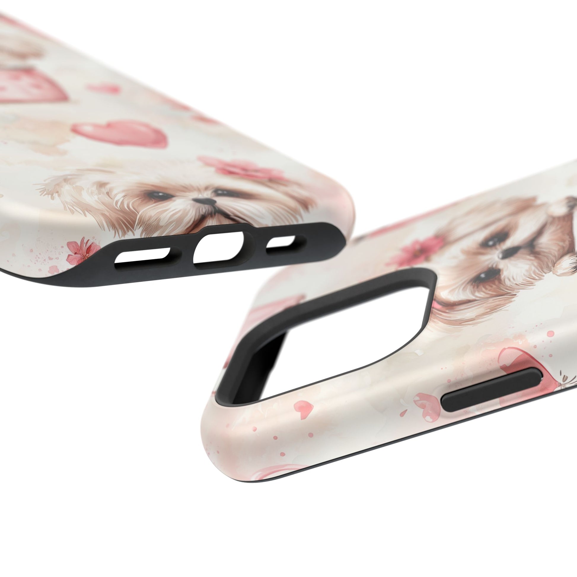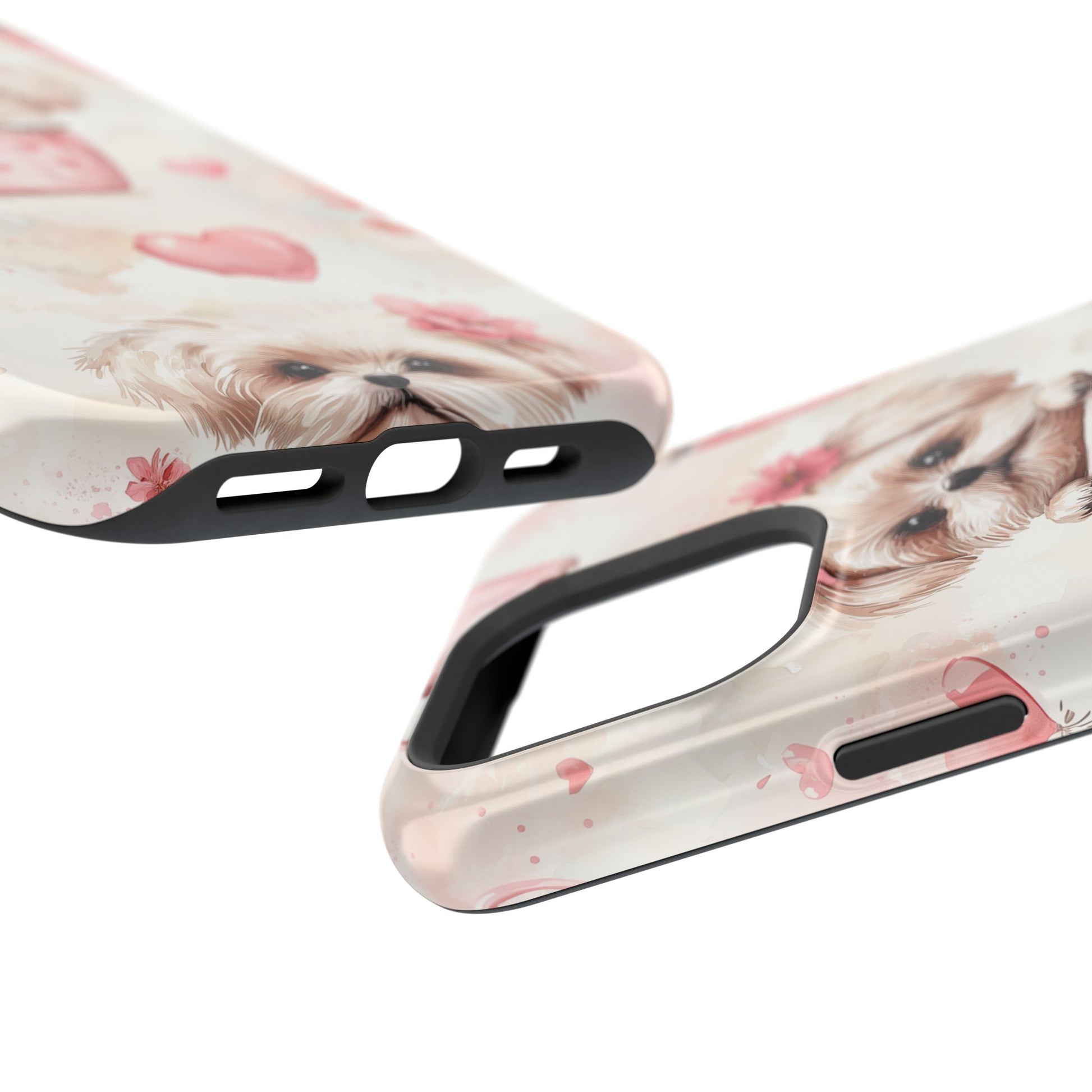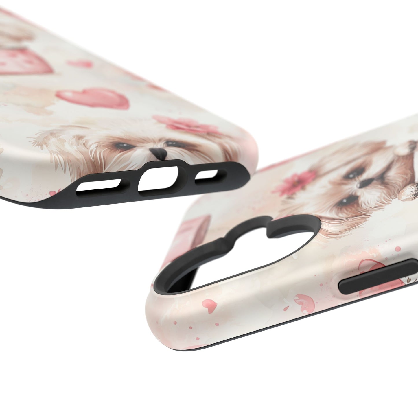 Floral Puppy in Teacup MagSafe iPhone Case – Cute Pink Flower Design, Tough Dual-Layer Protection