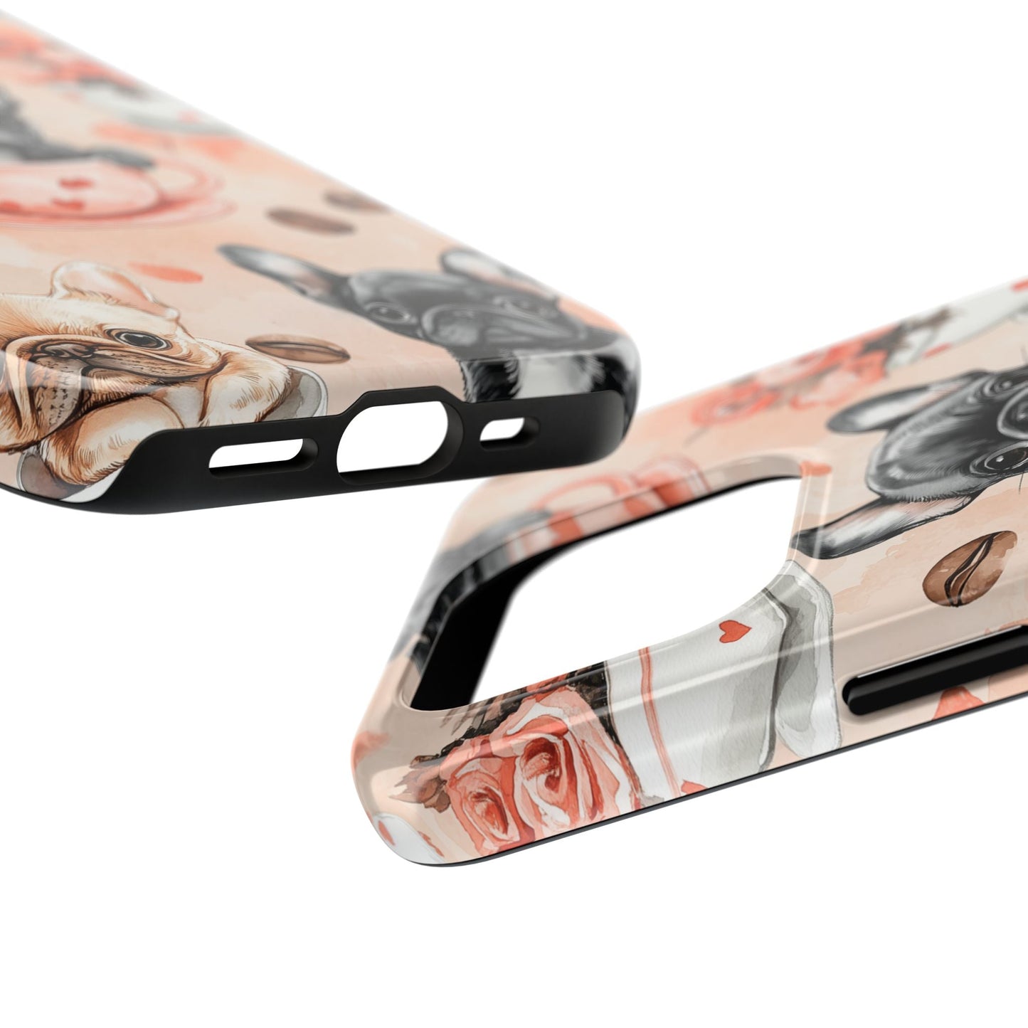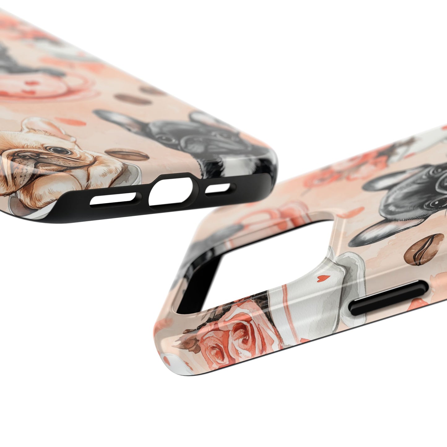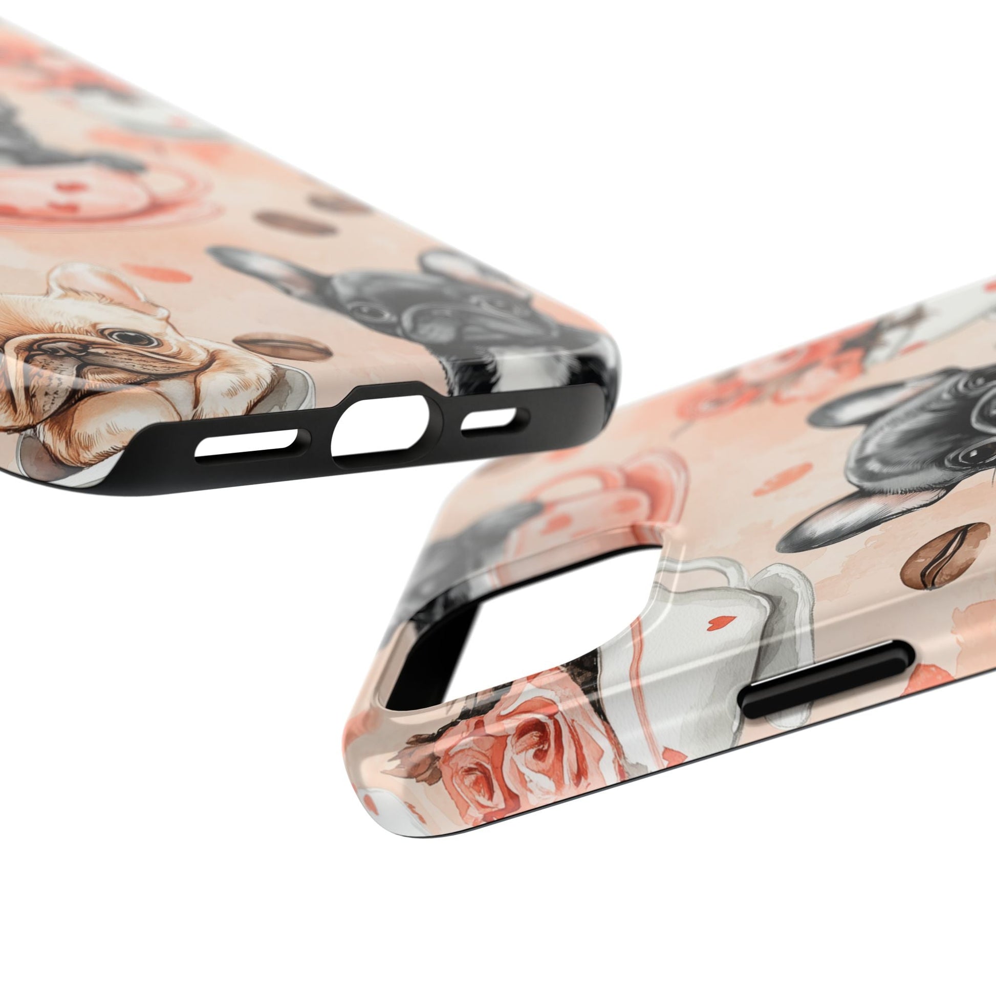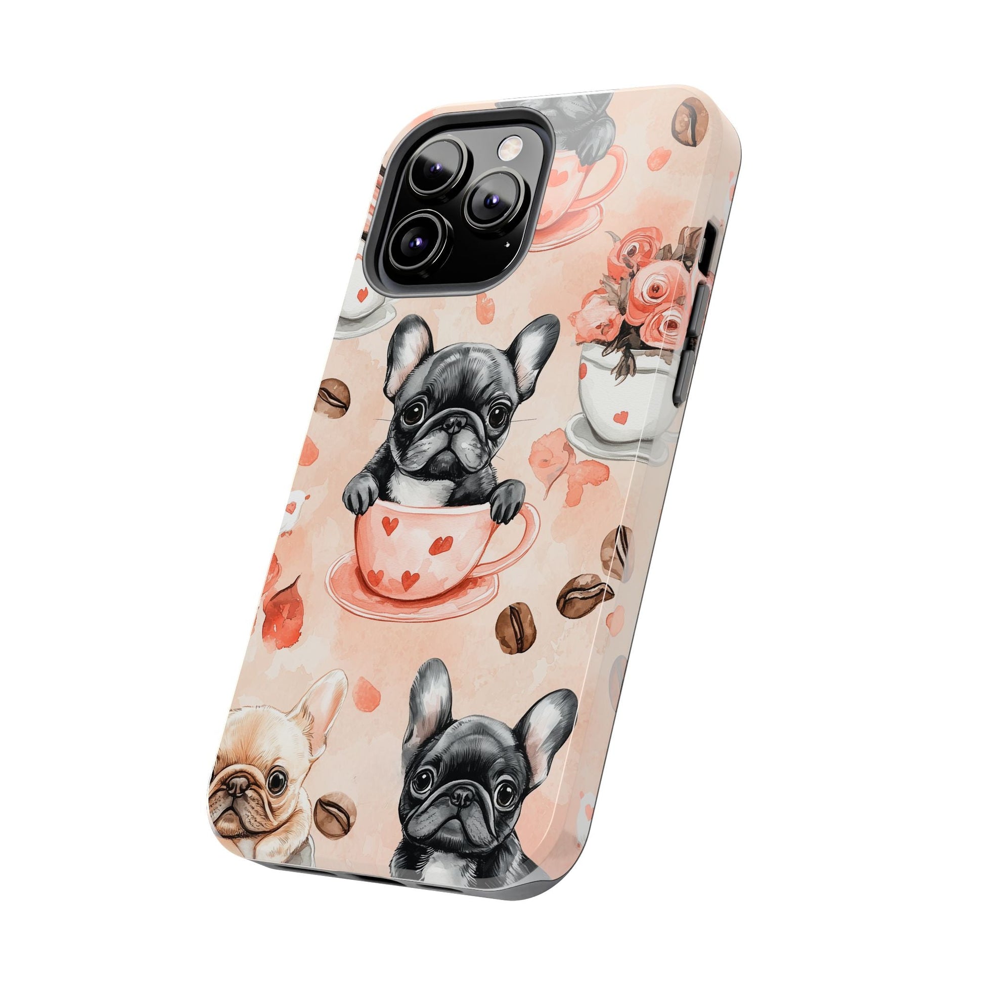 Show off your love for French Bulldogs with this adorable French Bulldogs in Heart iPhone case! Featuring charming black and tan Frenchies nestled in heart-decorated teacups, surrounded by delicate roses, coffee beans, and watercolor-style hearts, this case offers a playful yet elegant touch to your phone. Perfect for dog lovers who enjoy a whimsical, feminine vibe, the slim yet durable case ensures your phone stays safe from everyday bumps and drops while looking stylish.