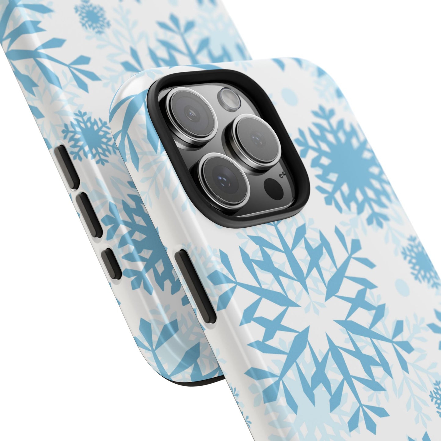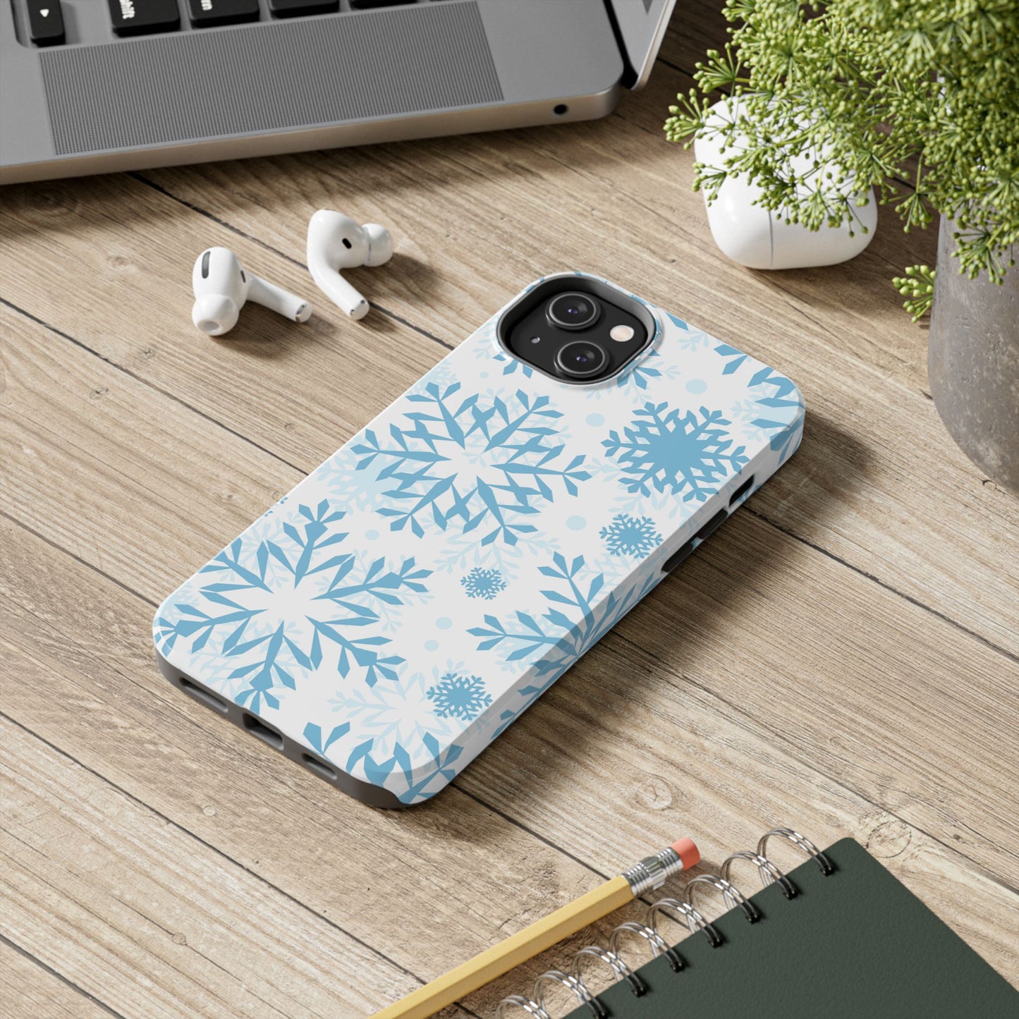 Frosty Blue Snowflakes iPhone Case – Shockproof, Smooth Matte Finish, Dual-Layer Design
