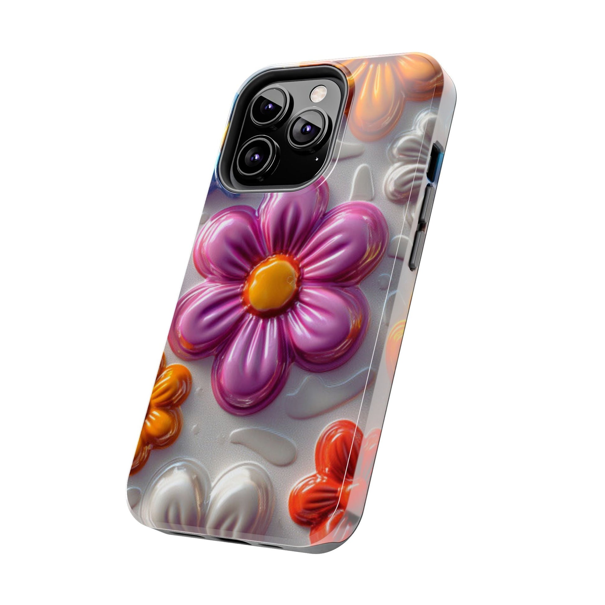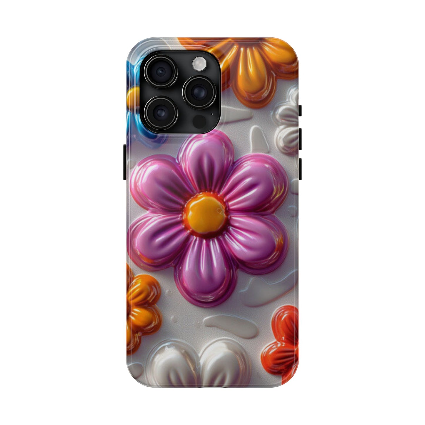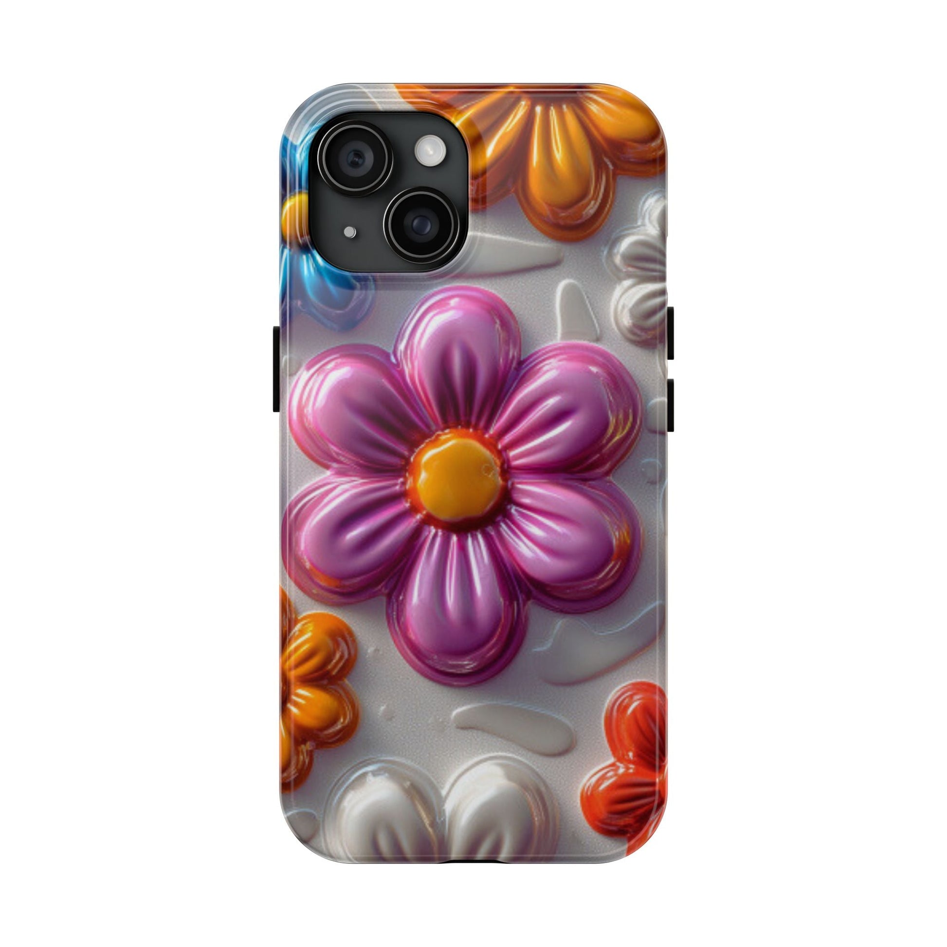 Brighten up your day with this Glossy 3D Floral iPhone Case, featuring a fun and vibrant design of raised, glossy flowers in bold shades of pink, blue, orange, and white. This playful, colorful pattern adds a touch of whimsy while keeping your phone stylish and well-protected. The sturdy, impact-resistant case offers superior defense against scratches, bumps, and daily wear and tear, making it both functional and fashionable. Perfect for anyone who loves a cheerful, retro-inspired floral vibe!