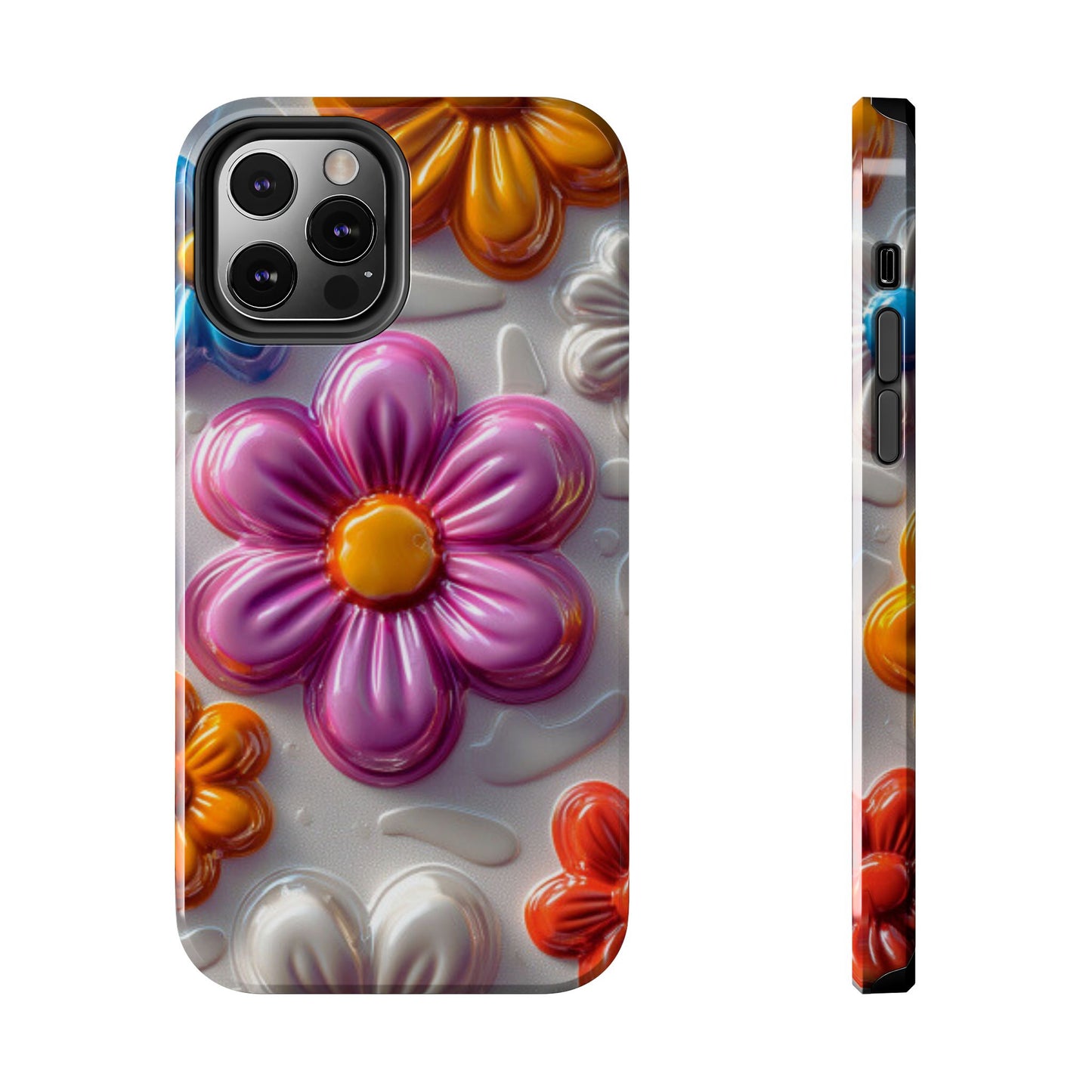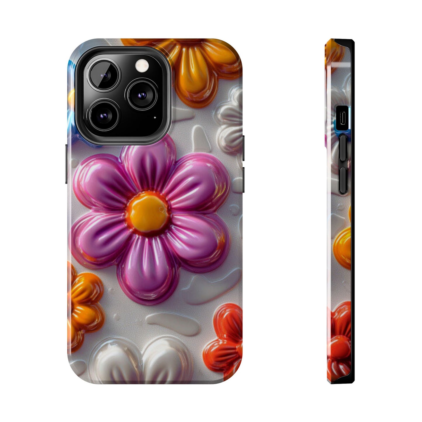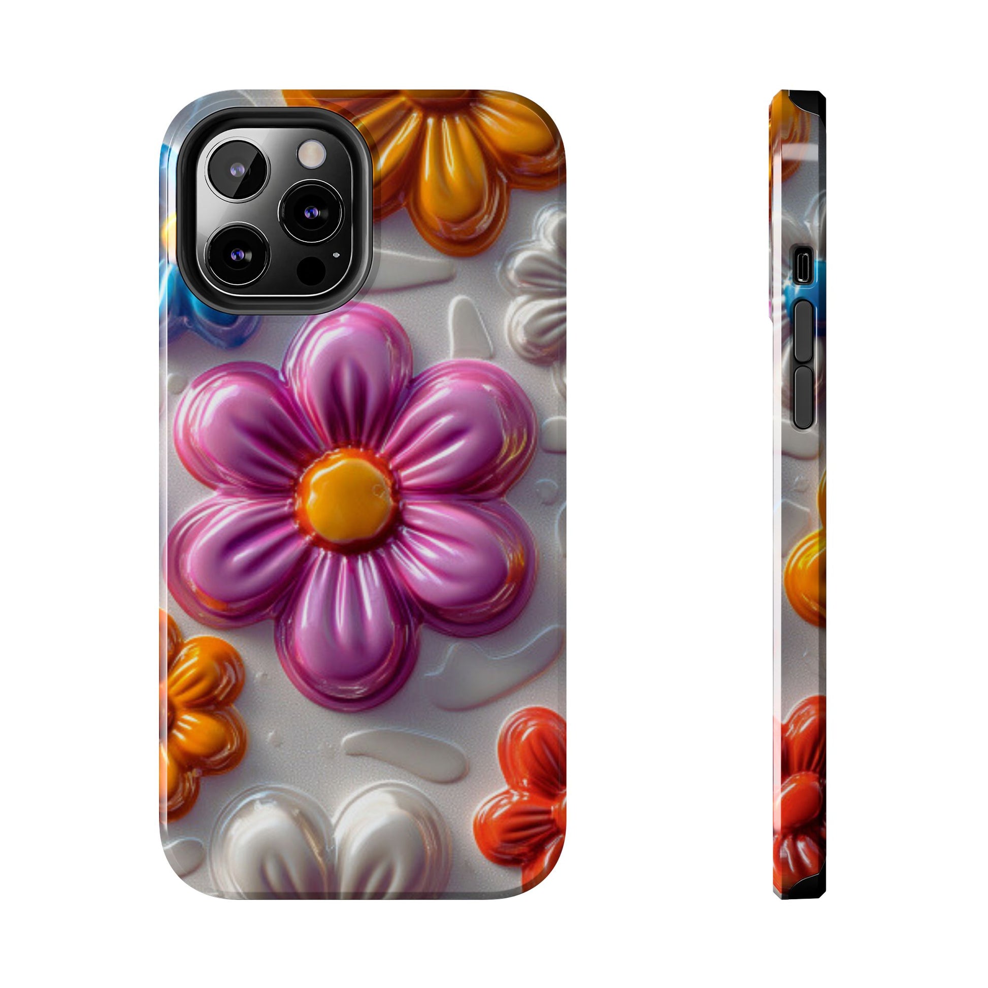 Brighten up your day with this Glossy 3D Floral iPhone Case, featuring a fun and vibrant design of raised, glossy flowers in bold shades of pink, blue, orange, and white. This playful, colorful pattern adds a touch of whimsy while keeping your phone stylish and well-protected. The sturdy, impact-resistant case offers superior defense against scratches, bumps, and daily wear and tear, making it both functional and fashionable. Perfect for anyone who loves a cheerful, retro-inspired floral vibe!