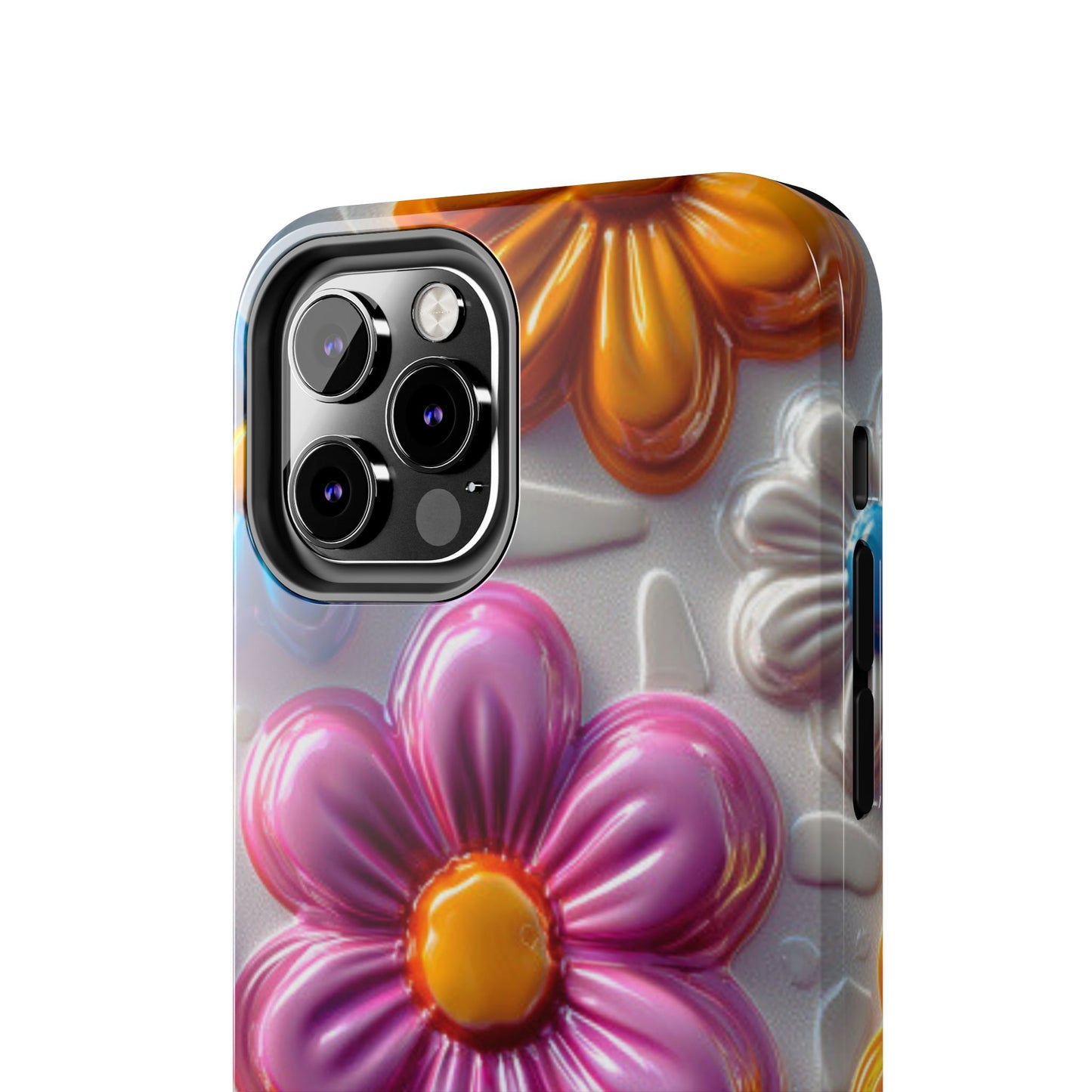 Glossy 3D Floral iPhone Case – Colorful Flower Pattern, Durable Protection