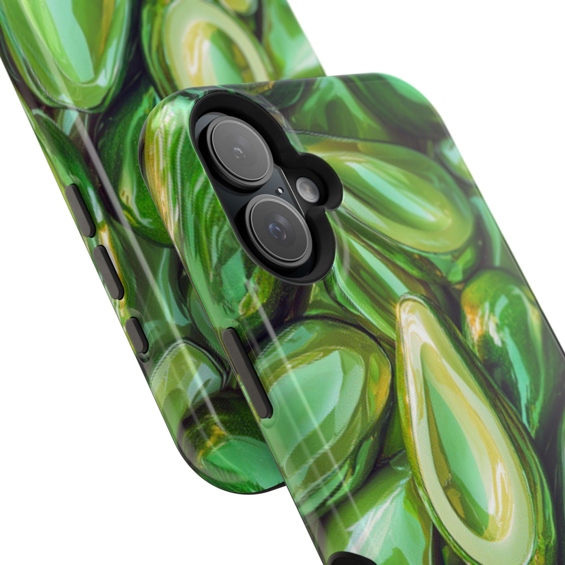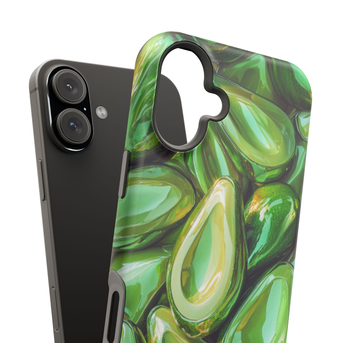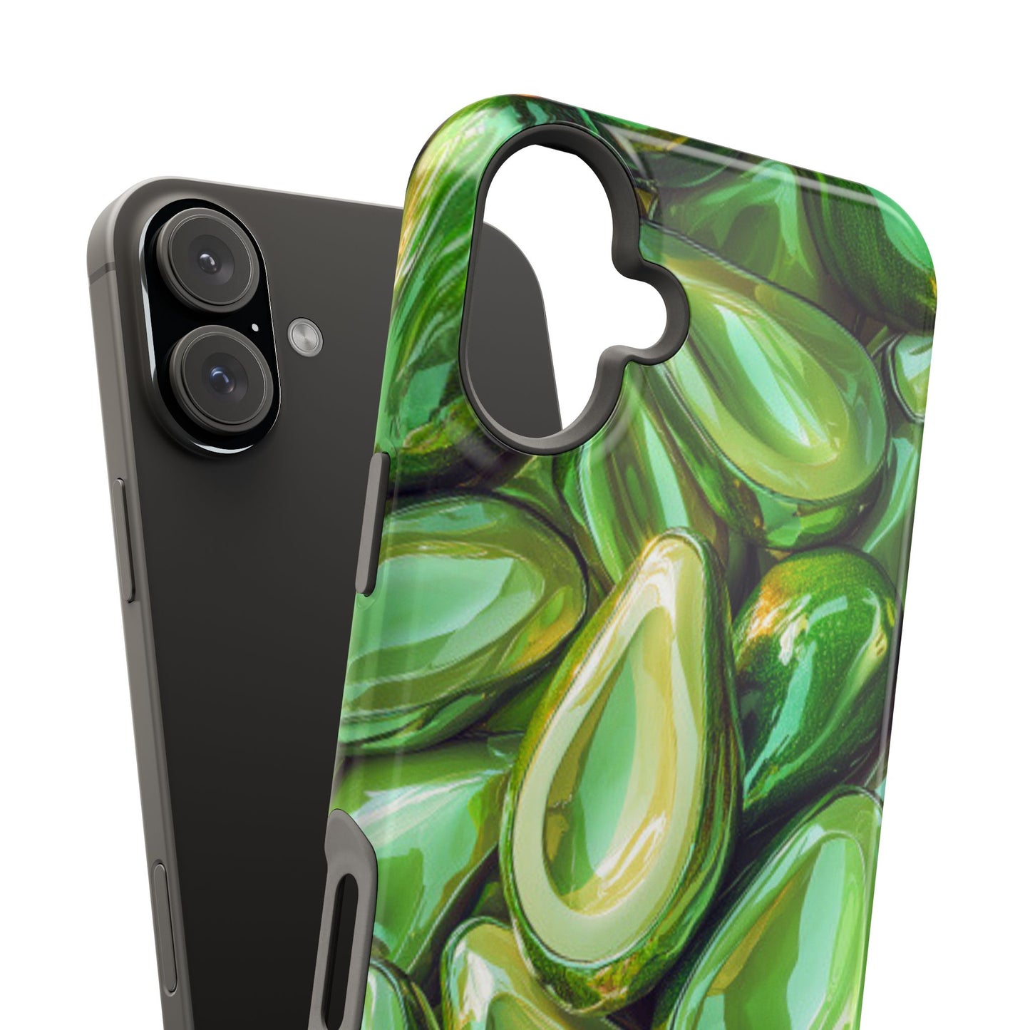 Elevate your phone’s look with our Glossy Avocado MagSafe iPhone case! This sleek design features a striking pattern of shiny, 3D avocado halves, rendered in vibrant shades of green that pop against the smooth background. The glossy finish gives the case a modern and eye-catching look, perfect for avocado lovers and those who appreciate trendy, nature-inspired designs. Made from tough, shock-resistant materials, this case provides top-tier protection while keeping your phone stylish and fun.