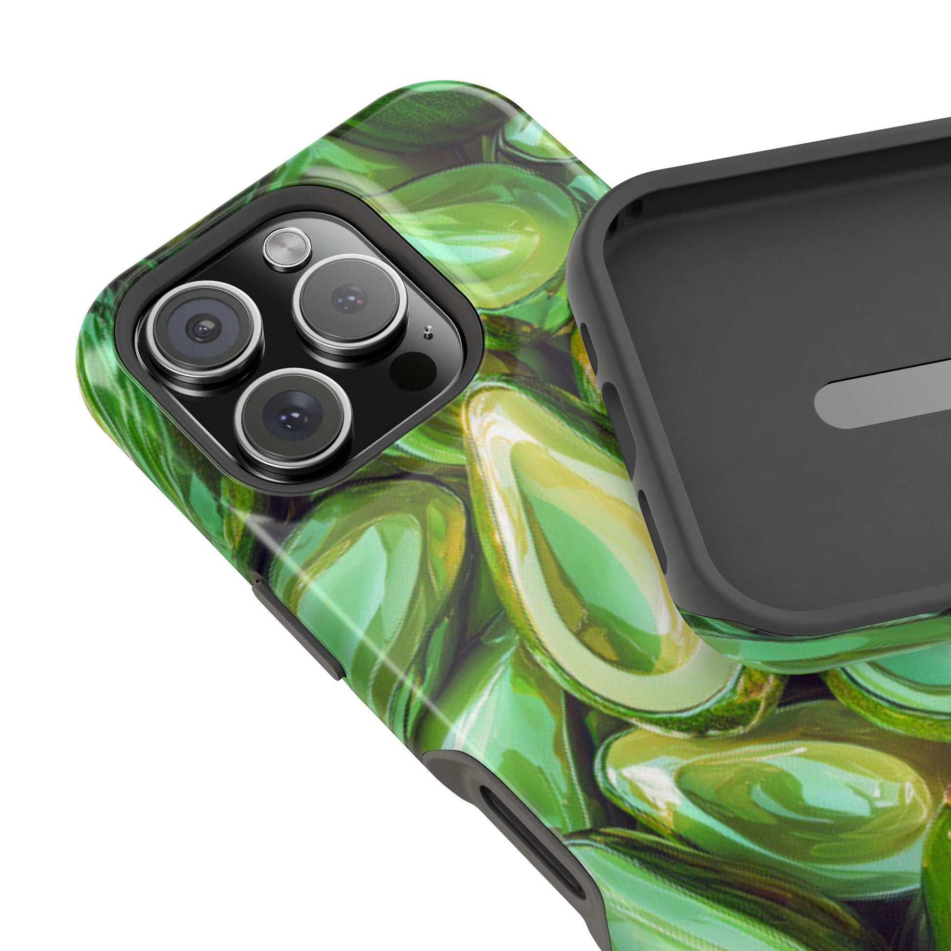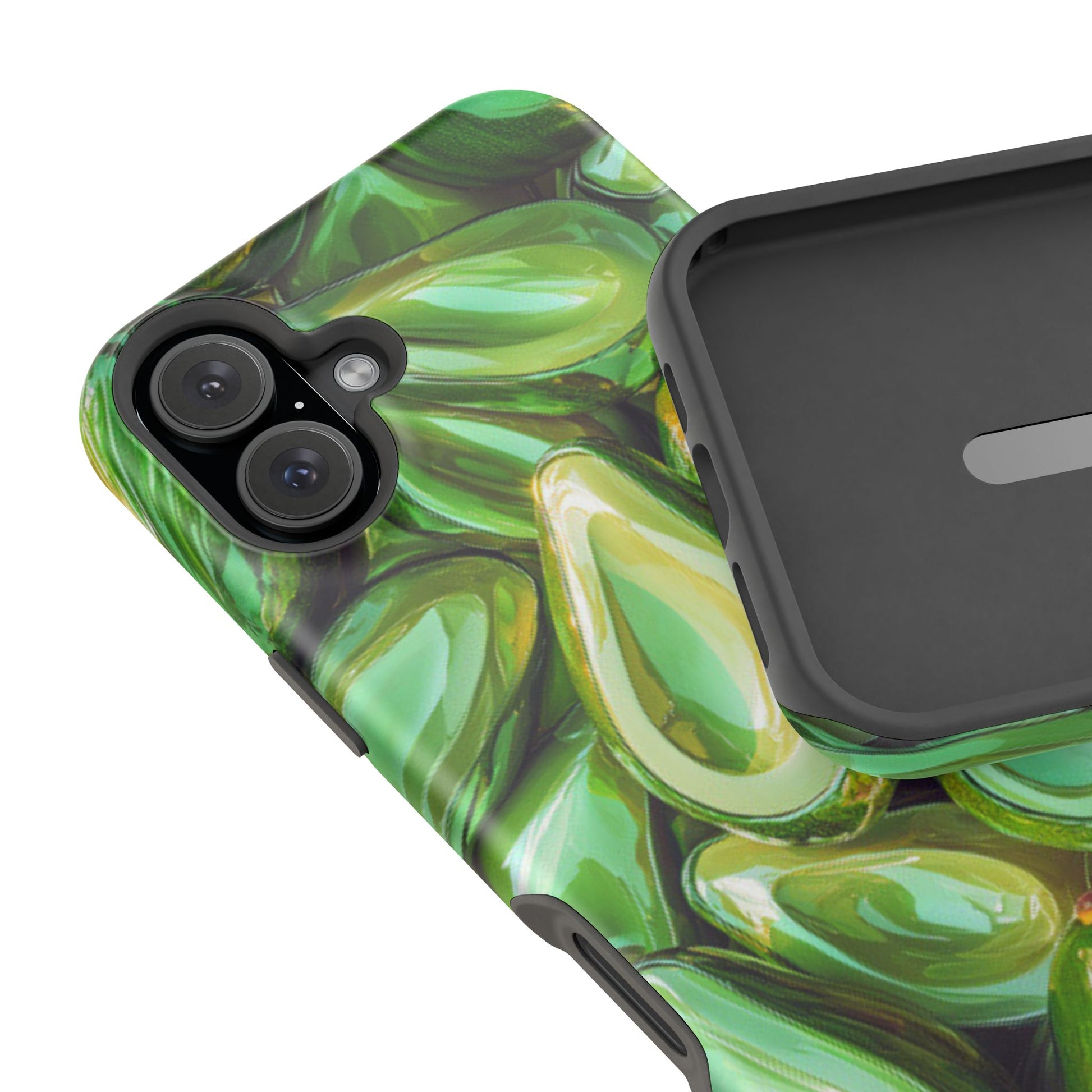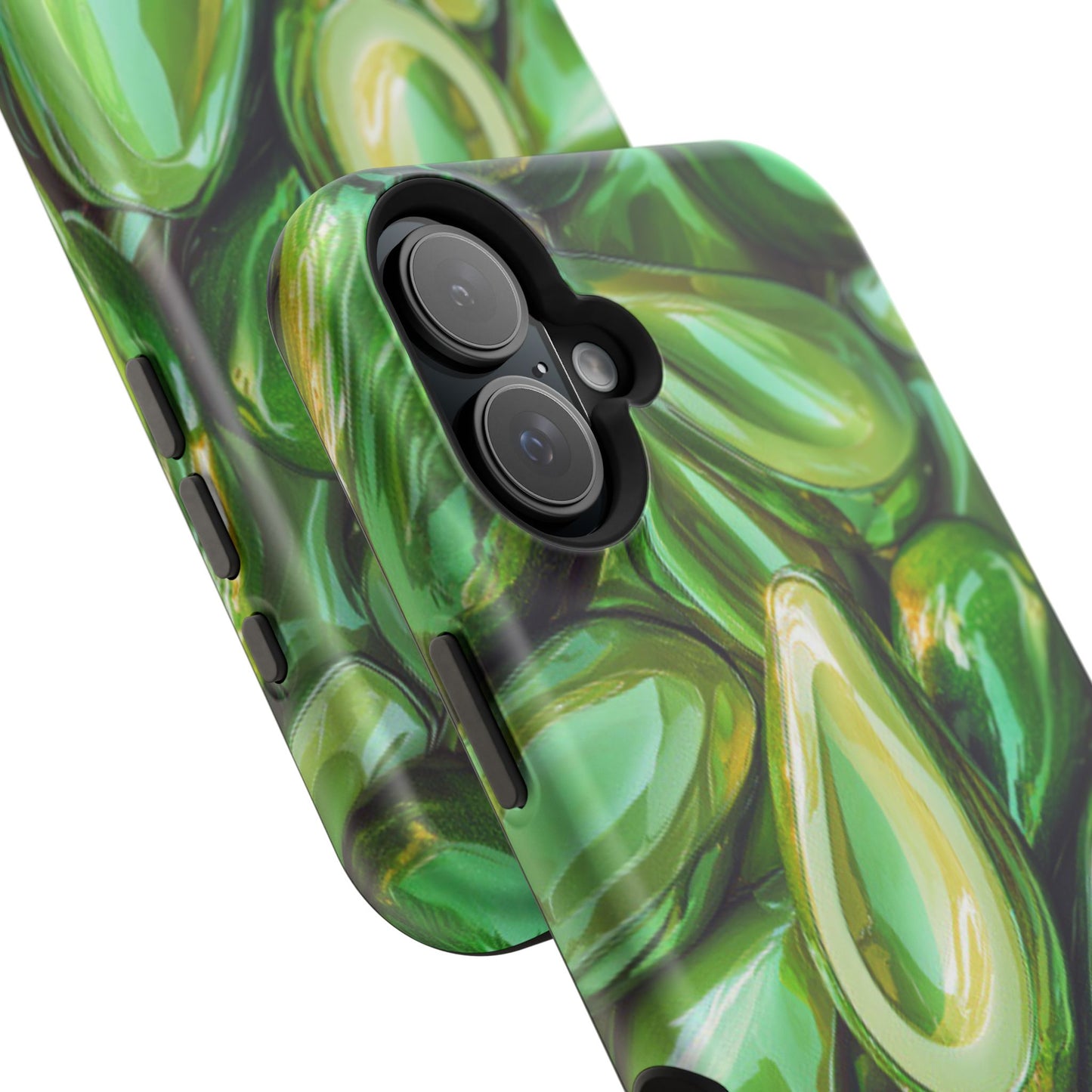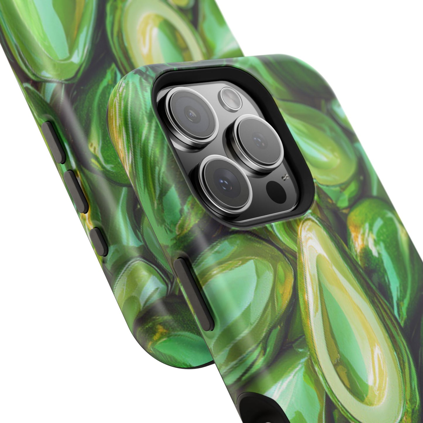 Elevate your phone’s look with our Glossy Avocado MagSafe iPhone case! This sleek design features a striking pattern of shiny, 3D avocado halves, rendered in vibrant shades of green that pop against the smooth background. The glossy finish gives the case a modern and eye-catching look, perfect for avocado lovers and those who appreciate trendy, nature-inspired designs. Made from tough, shock-resistant materials, this case provides top-tier protection while keeping your phone stylish and fun.