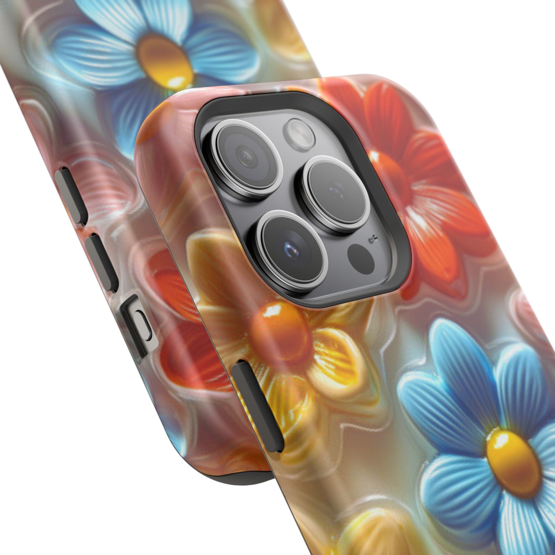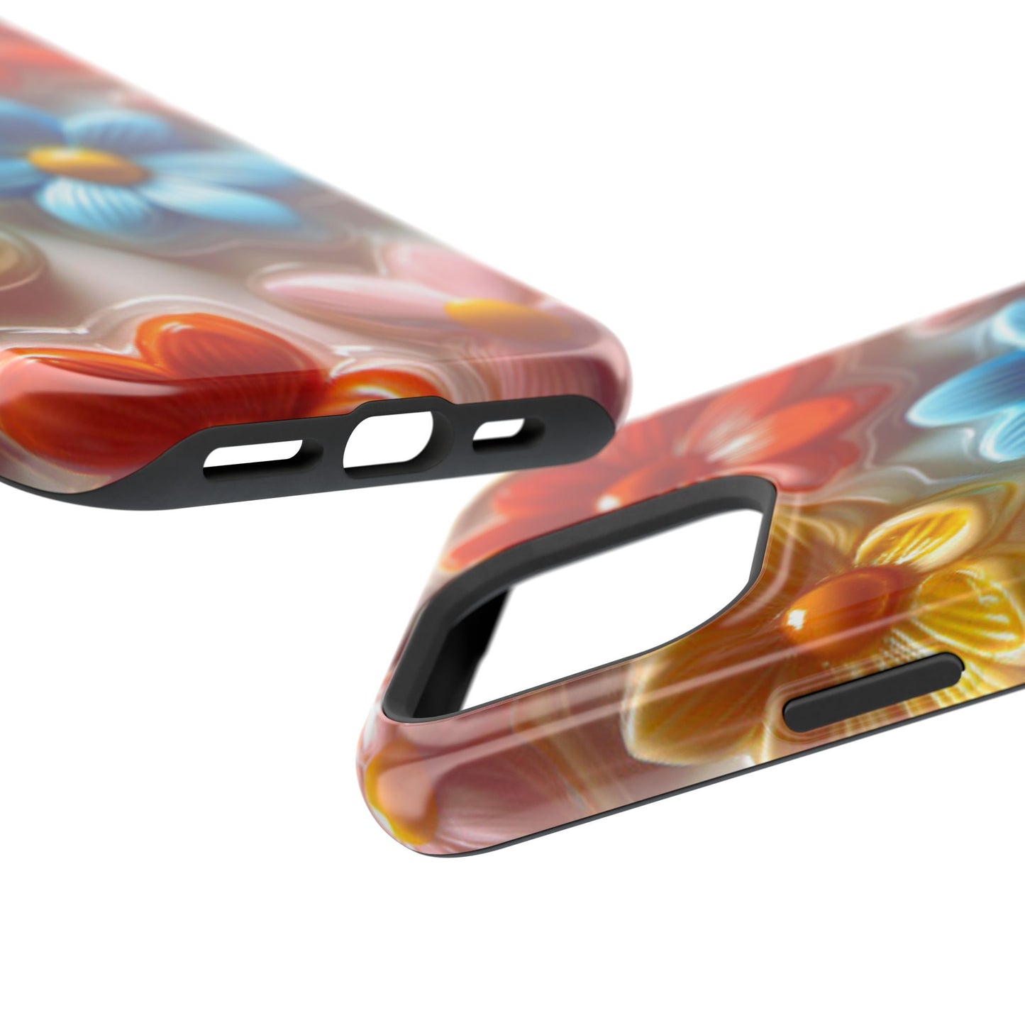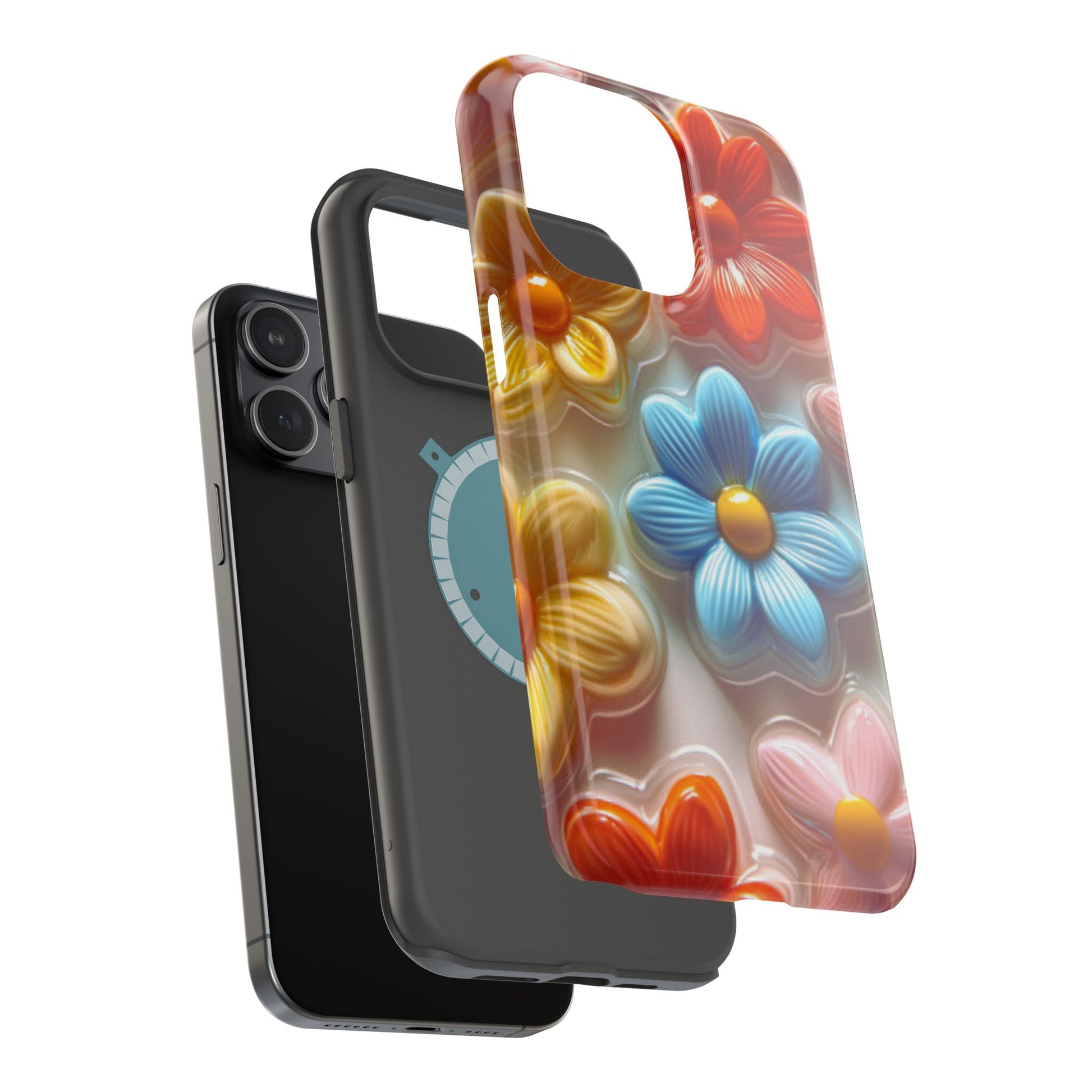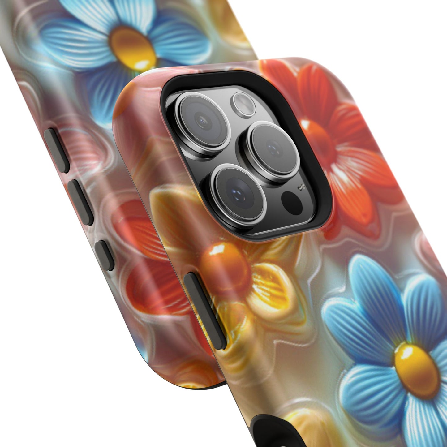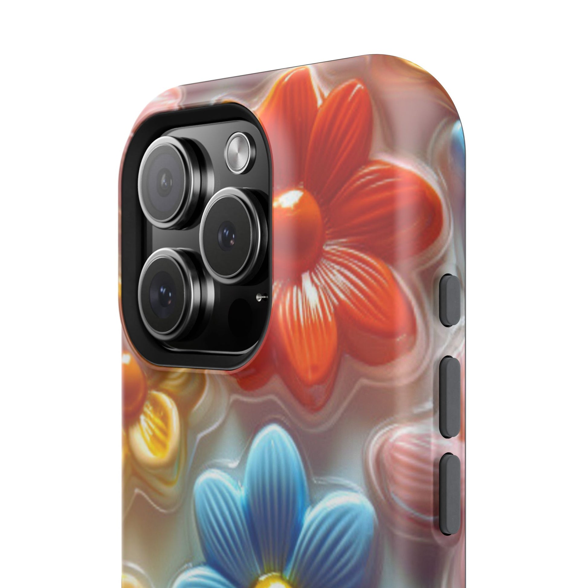 Glossy Retro Flower MagSafe iPhone Case – Colorful 3D Floral Design, Durable Protection