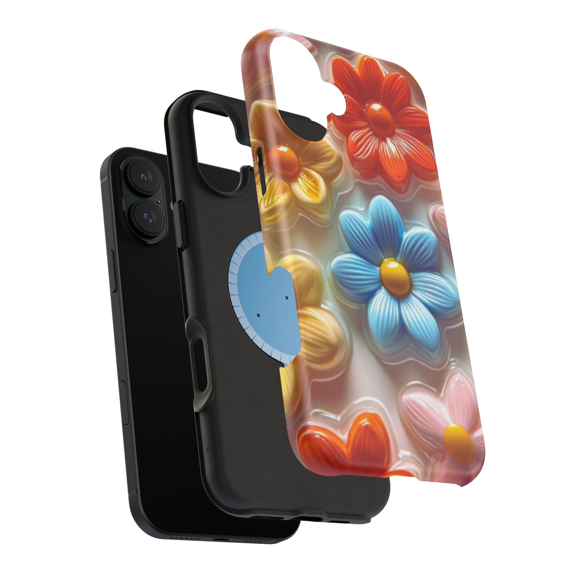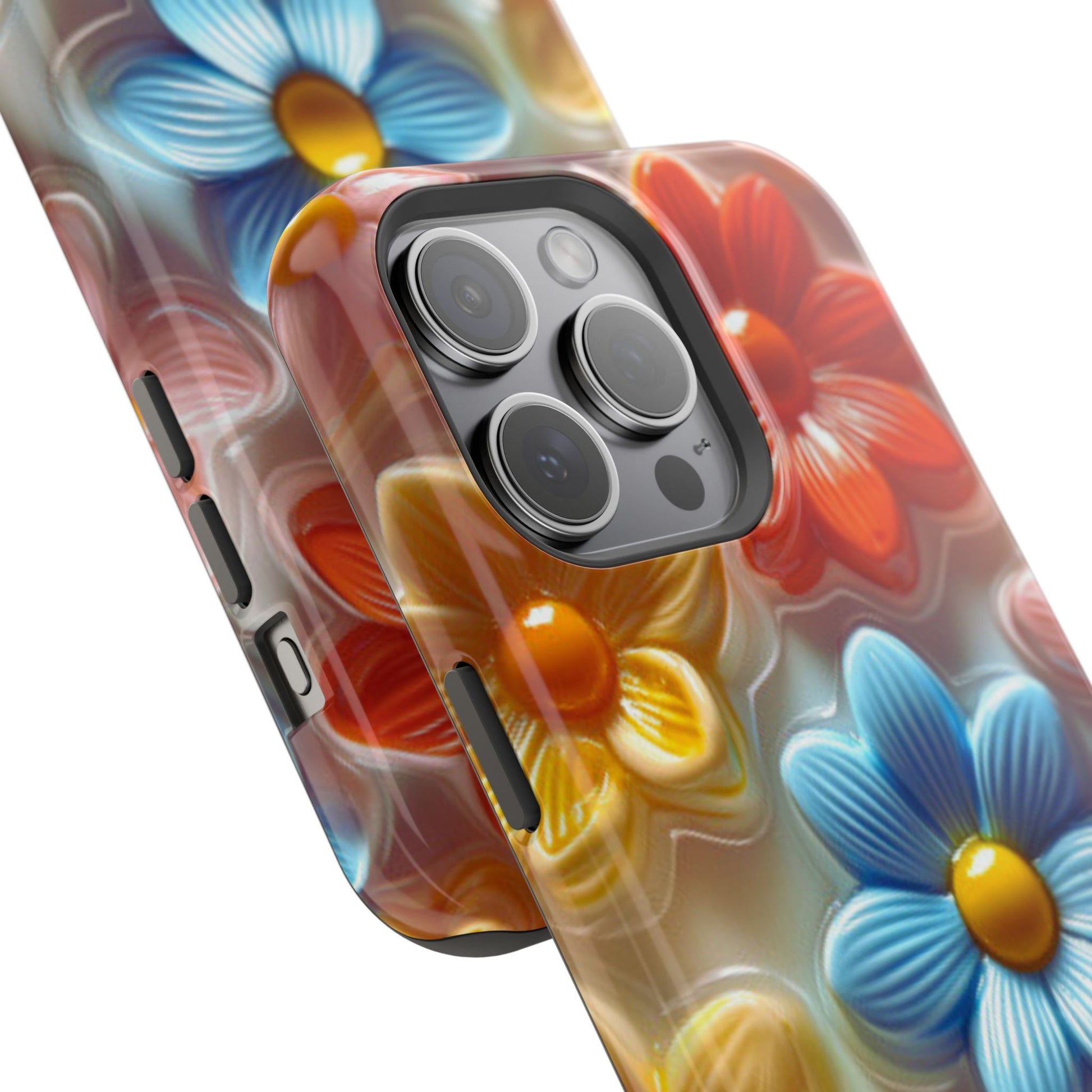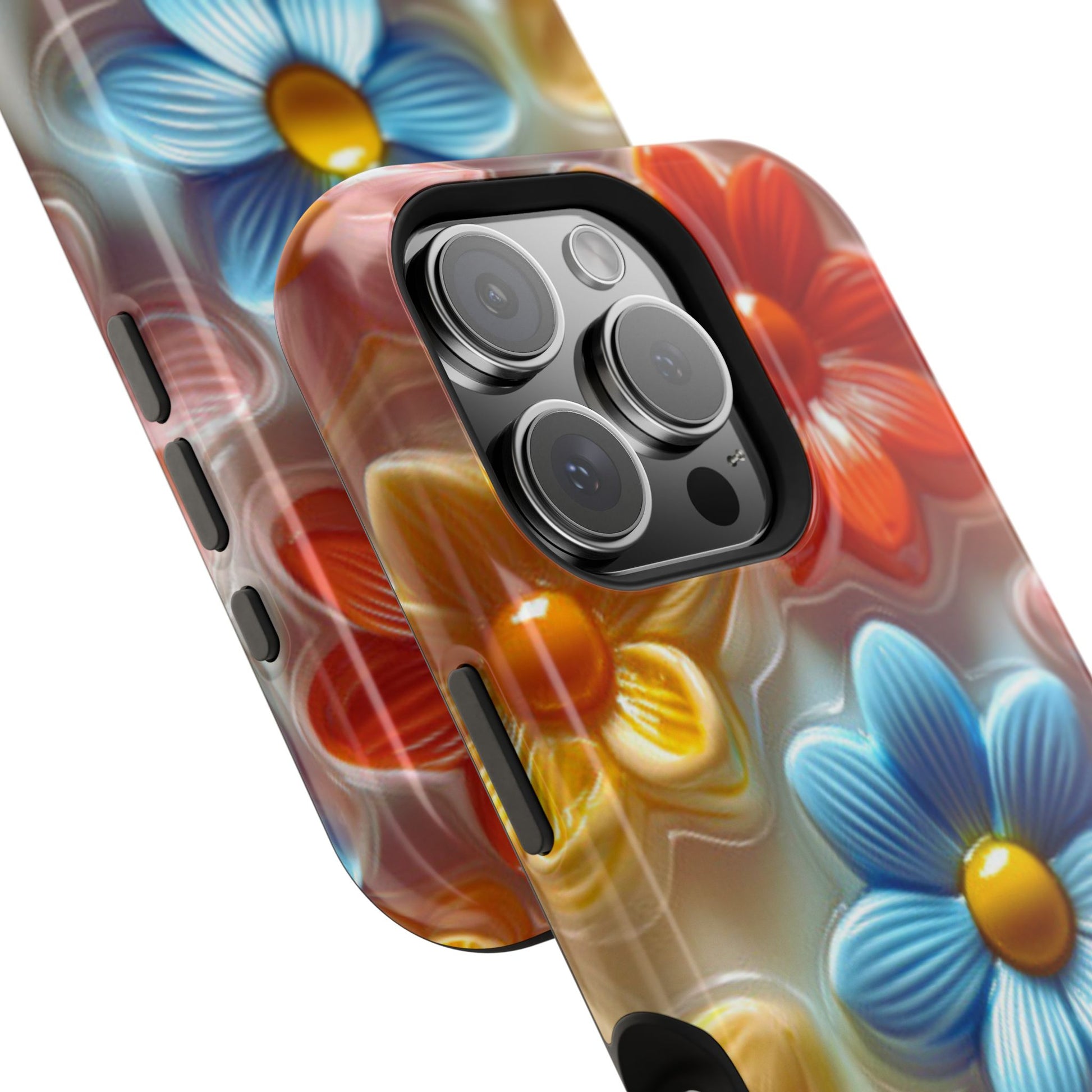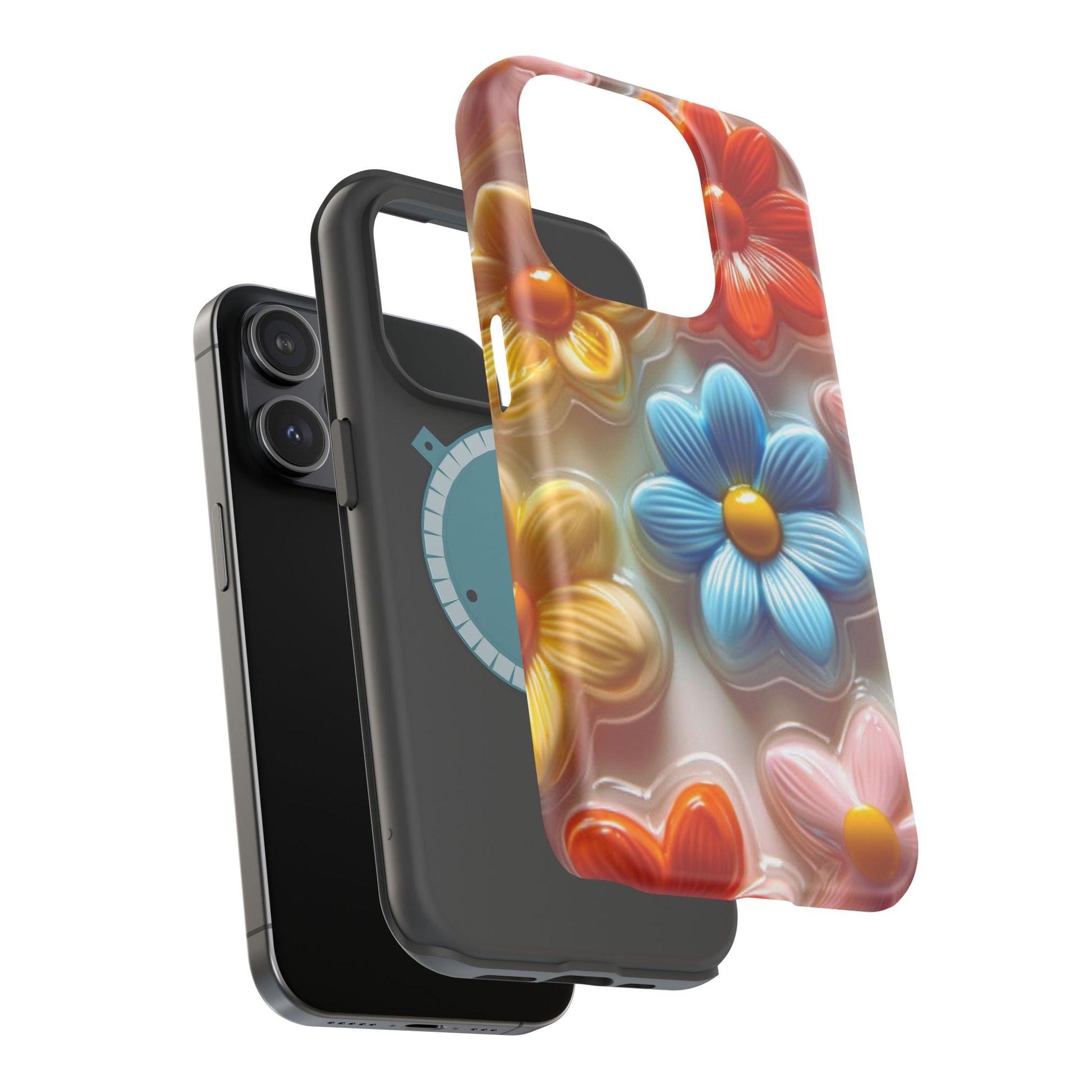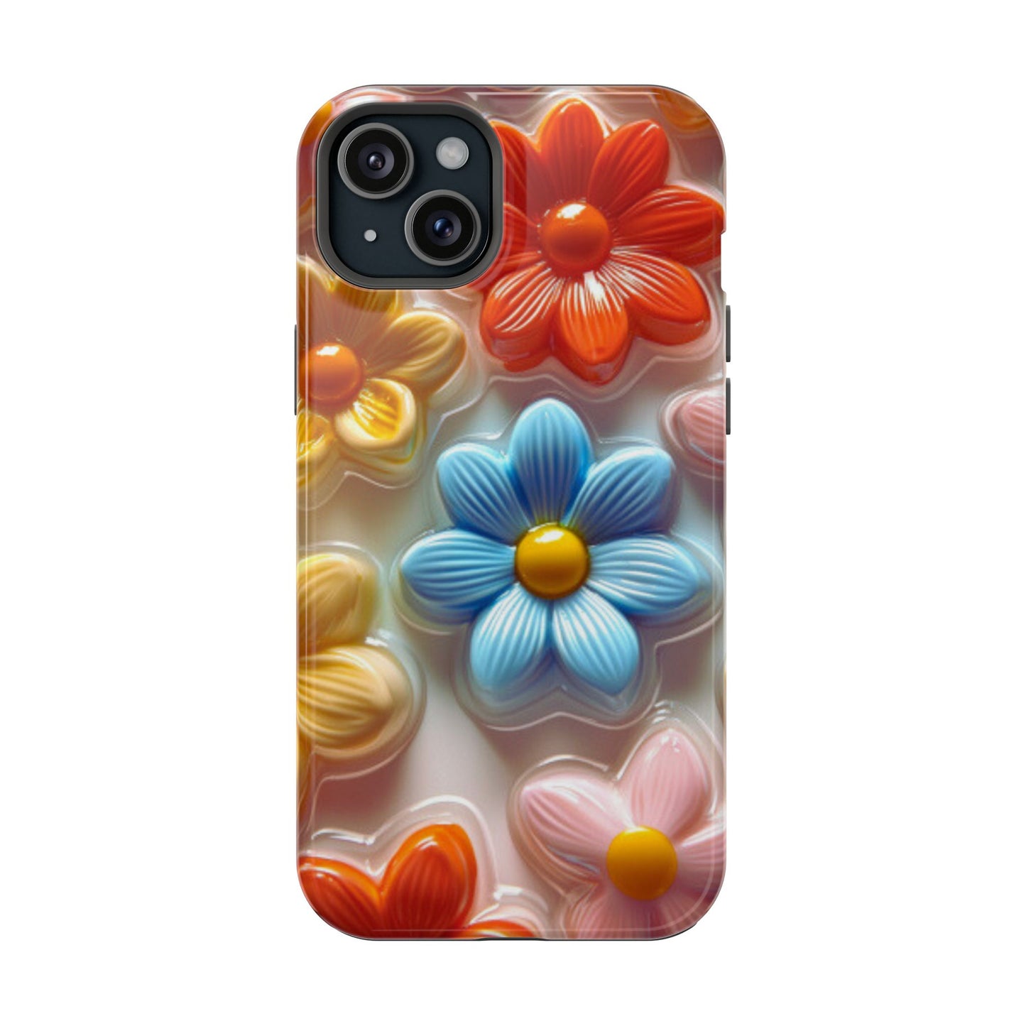 Glossy Retro Flower MagSafe iPhone Case – Colorful 3D Floral Design, Durable Protection
