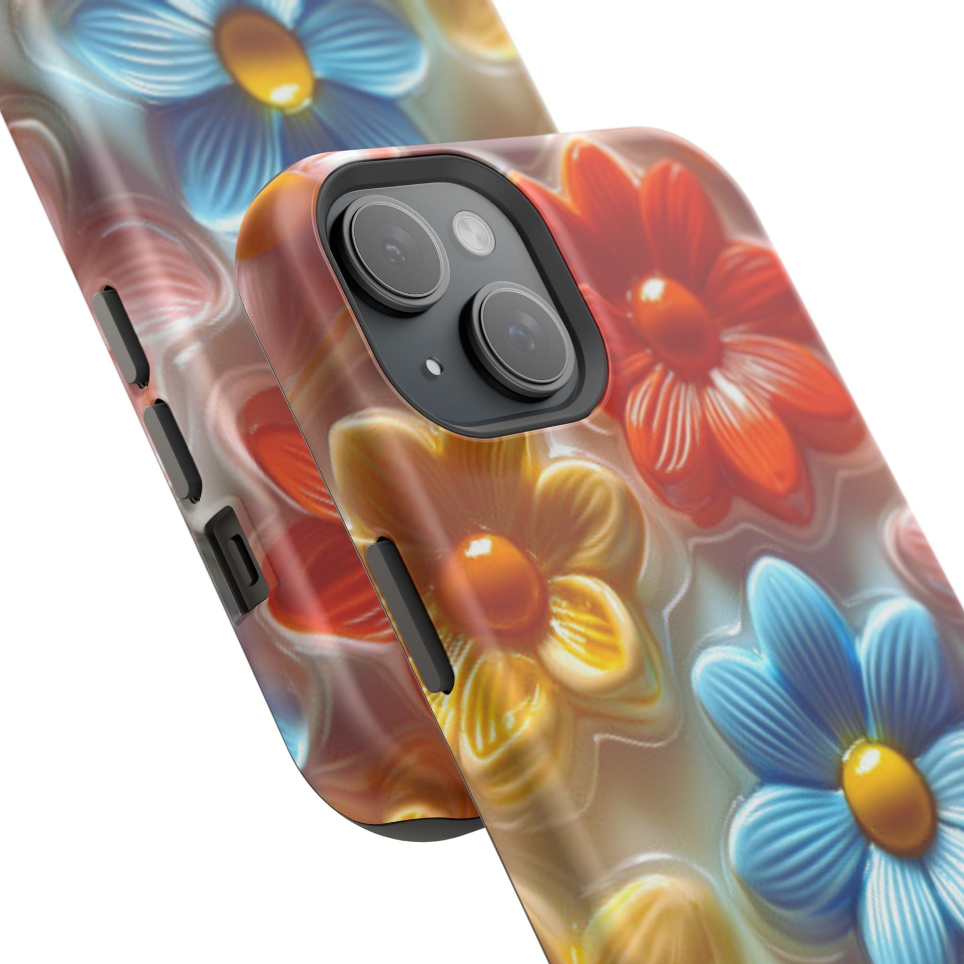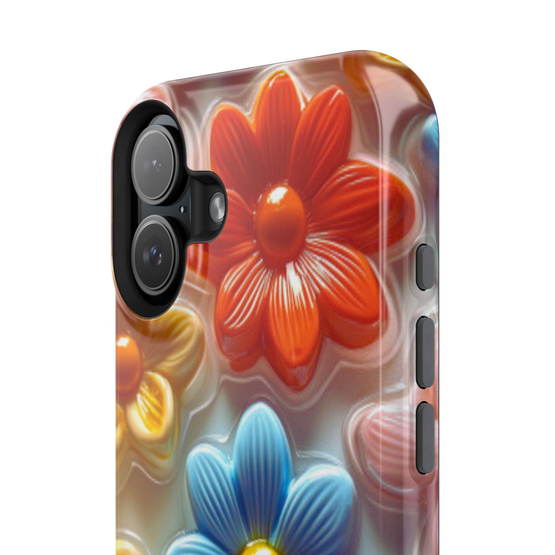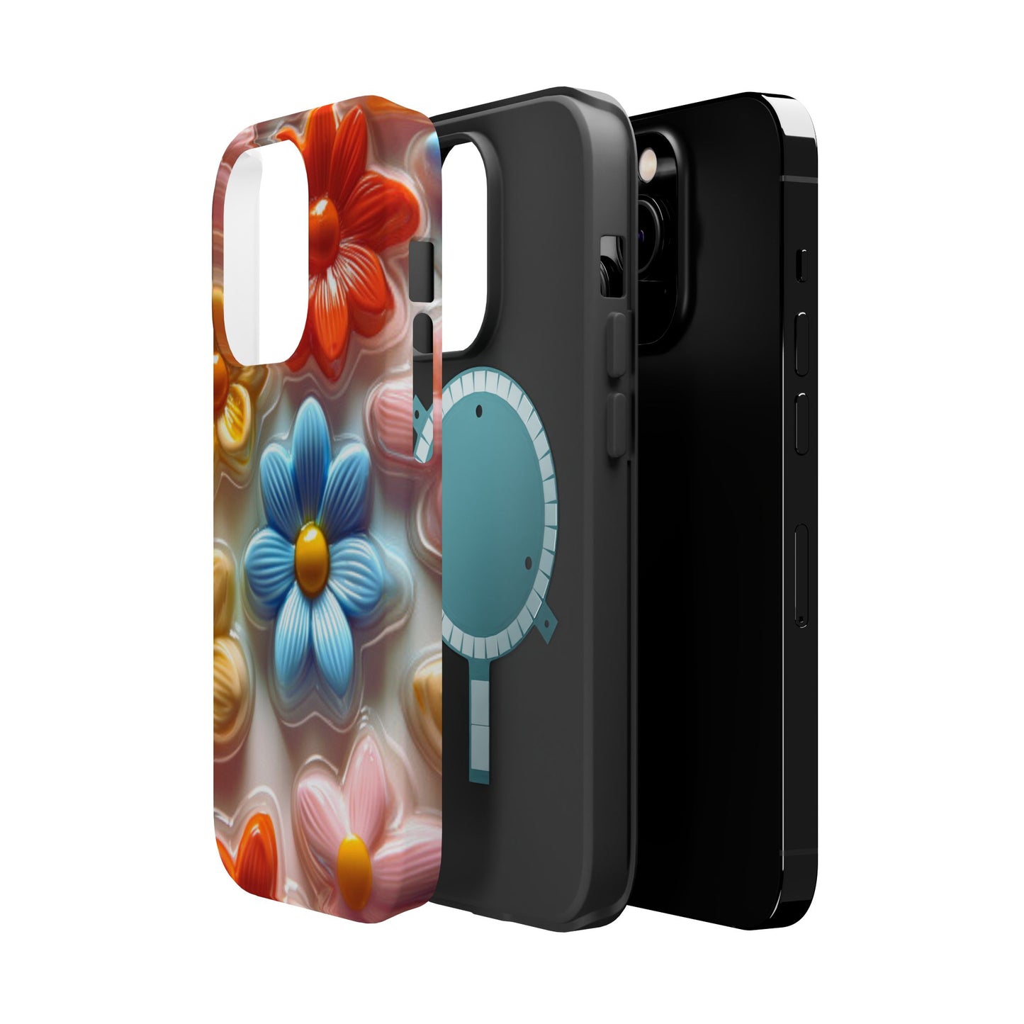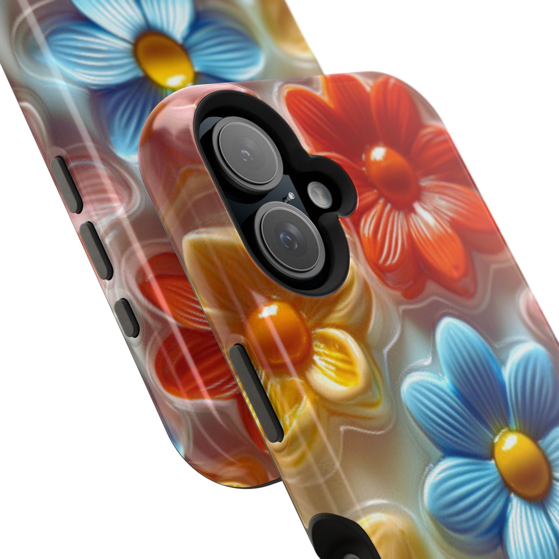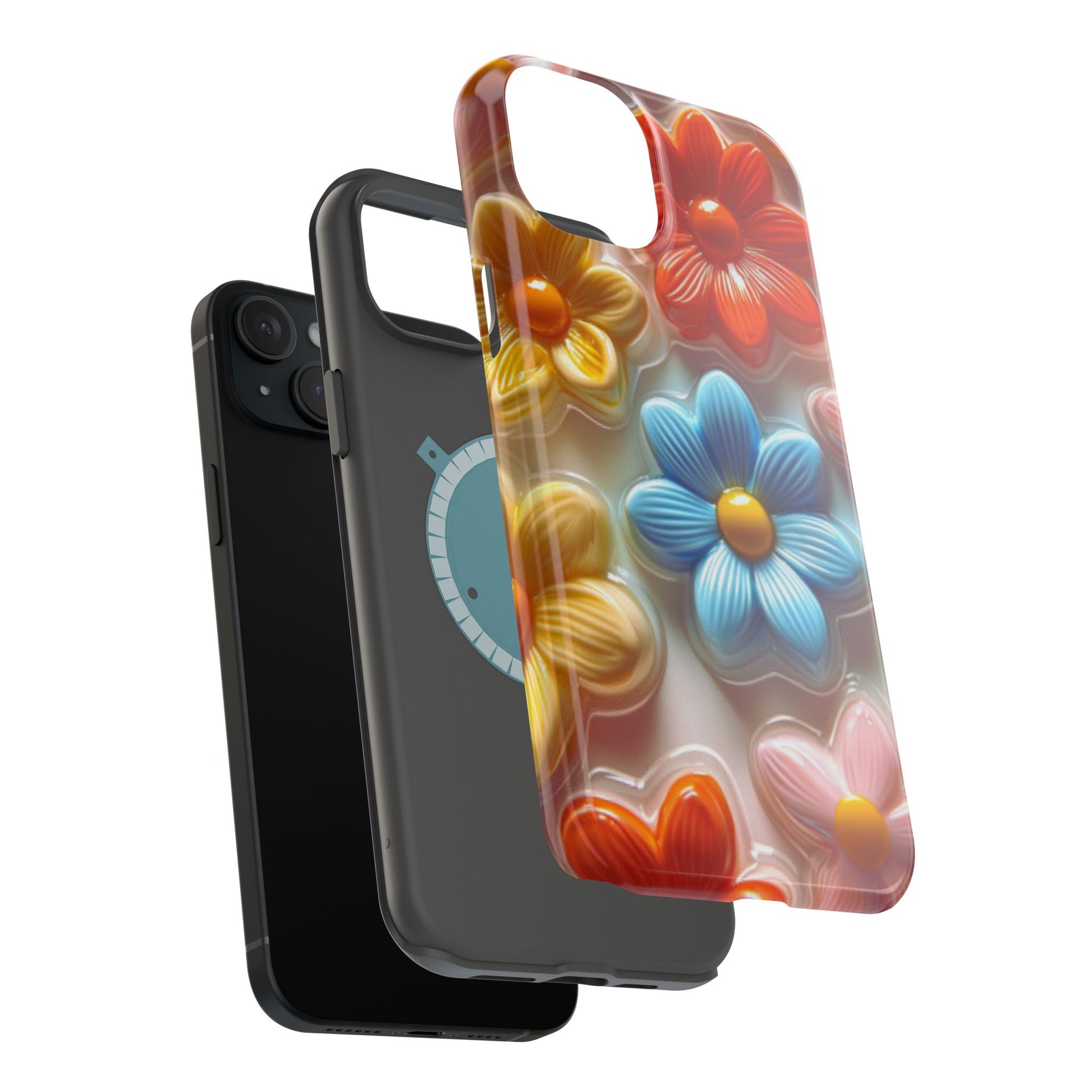 Glossy Retro Flower MagSafe iPhone Case – Colorful 3D Floral Design, Durable Protection