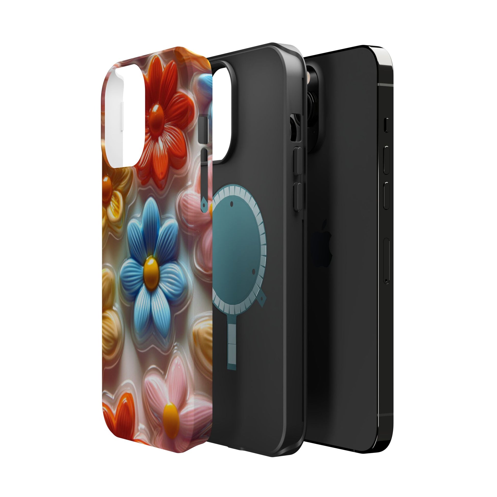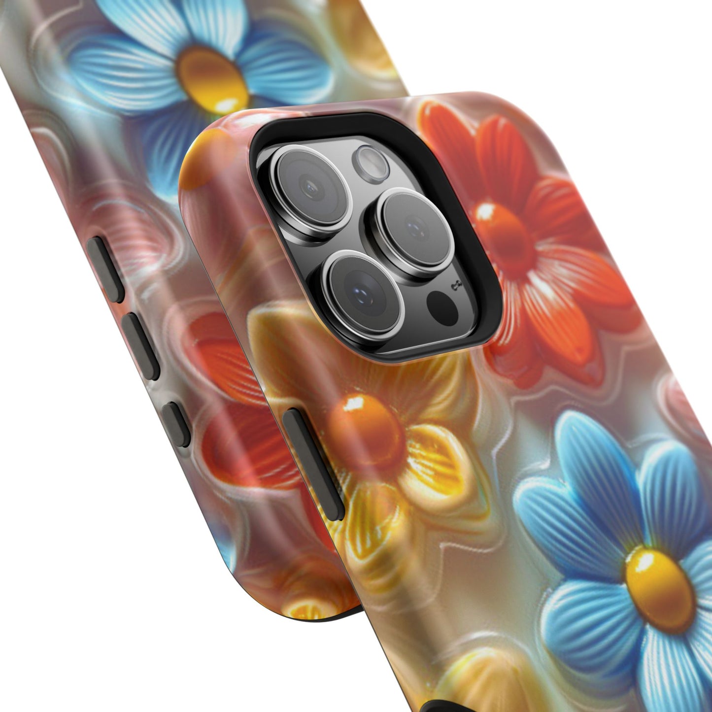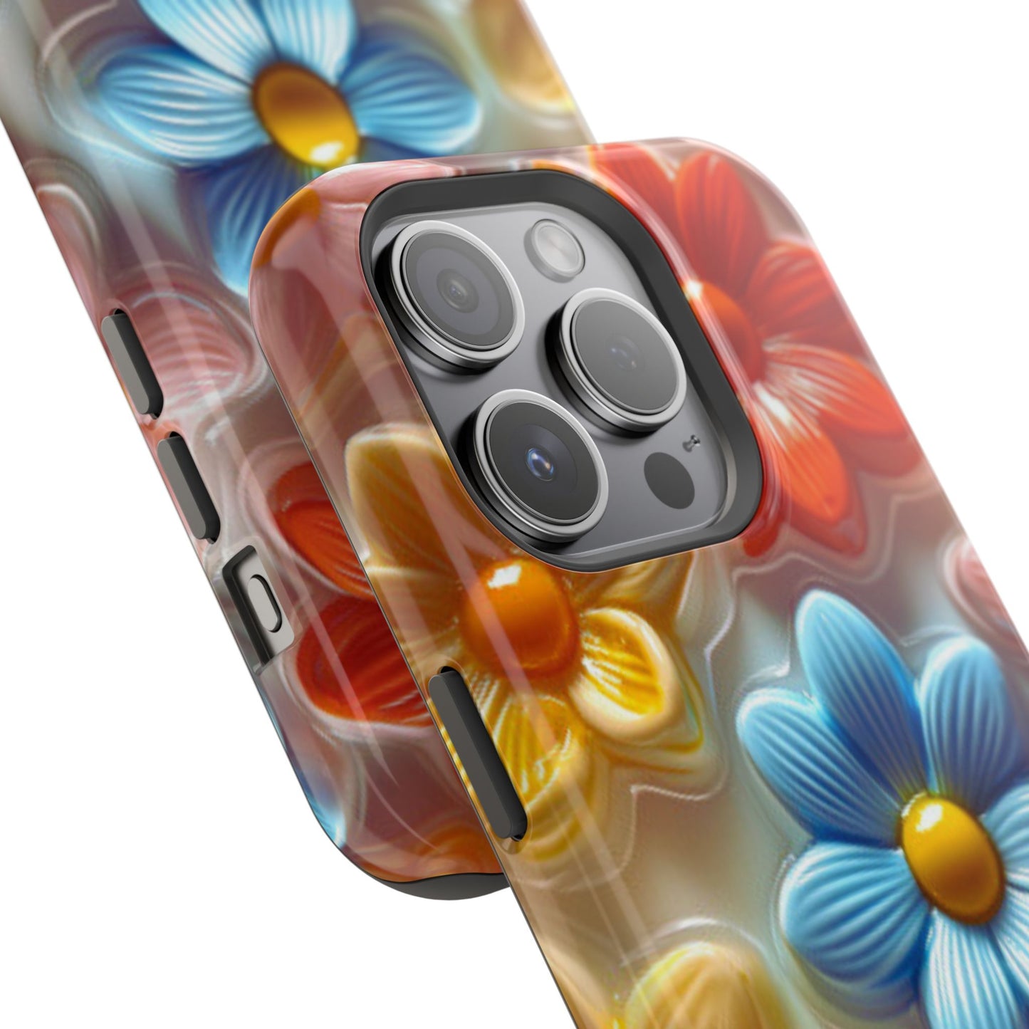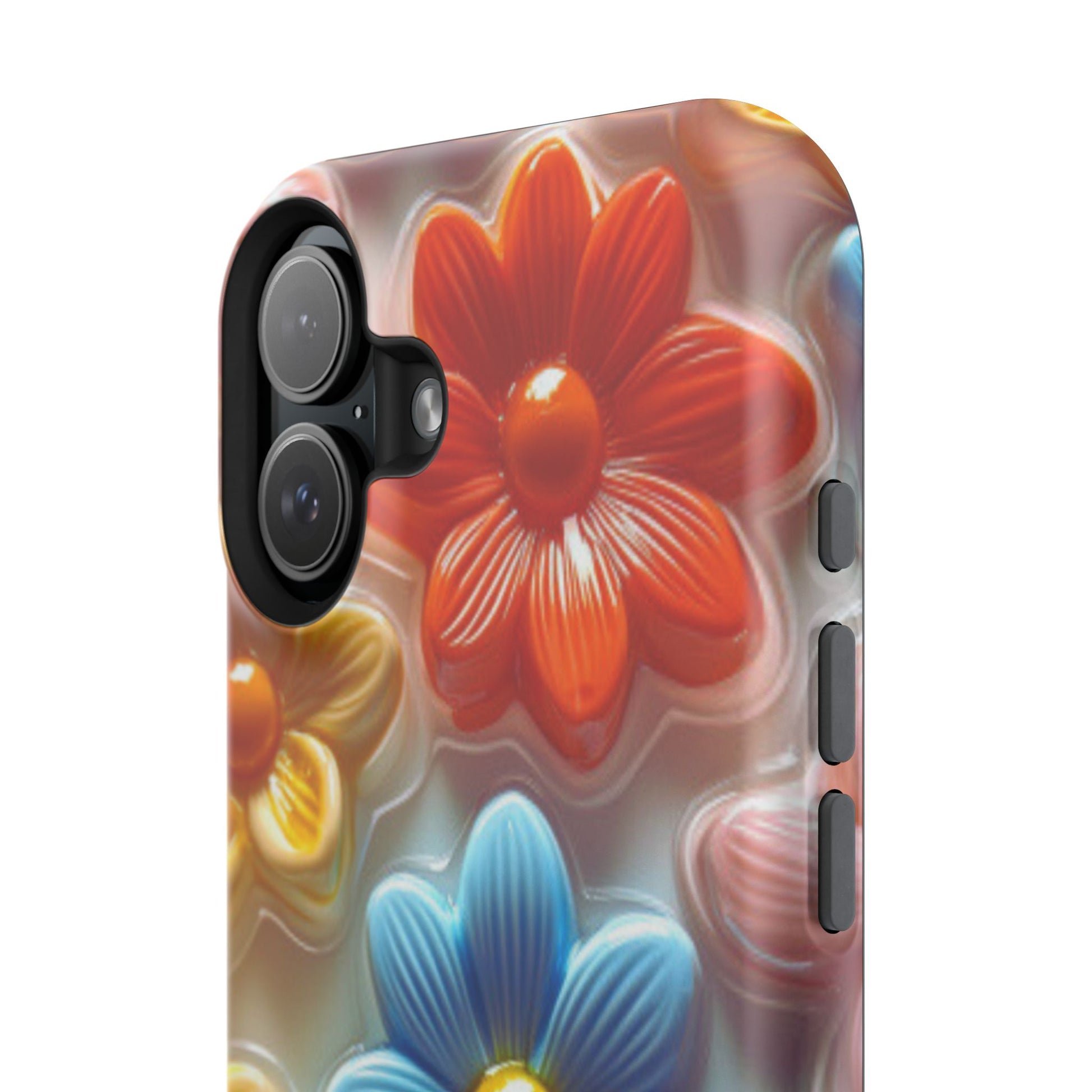 Glossy Retro Flower MagSafe iPhone Case – Colorful 3D Floral Design, Durable Protection