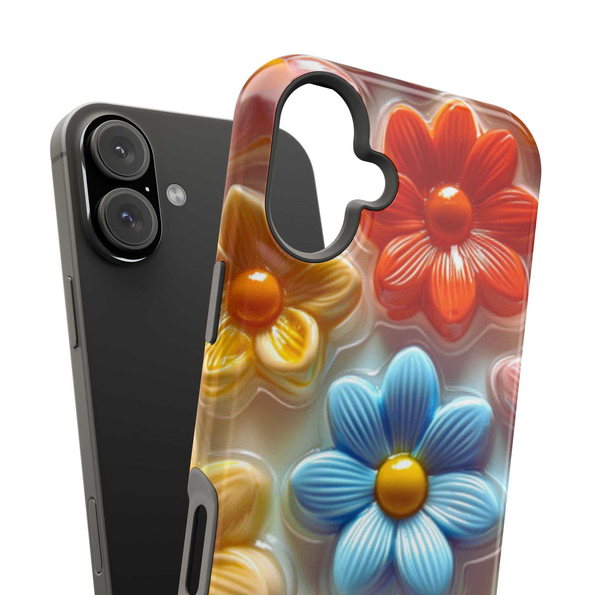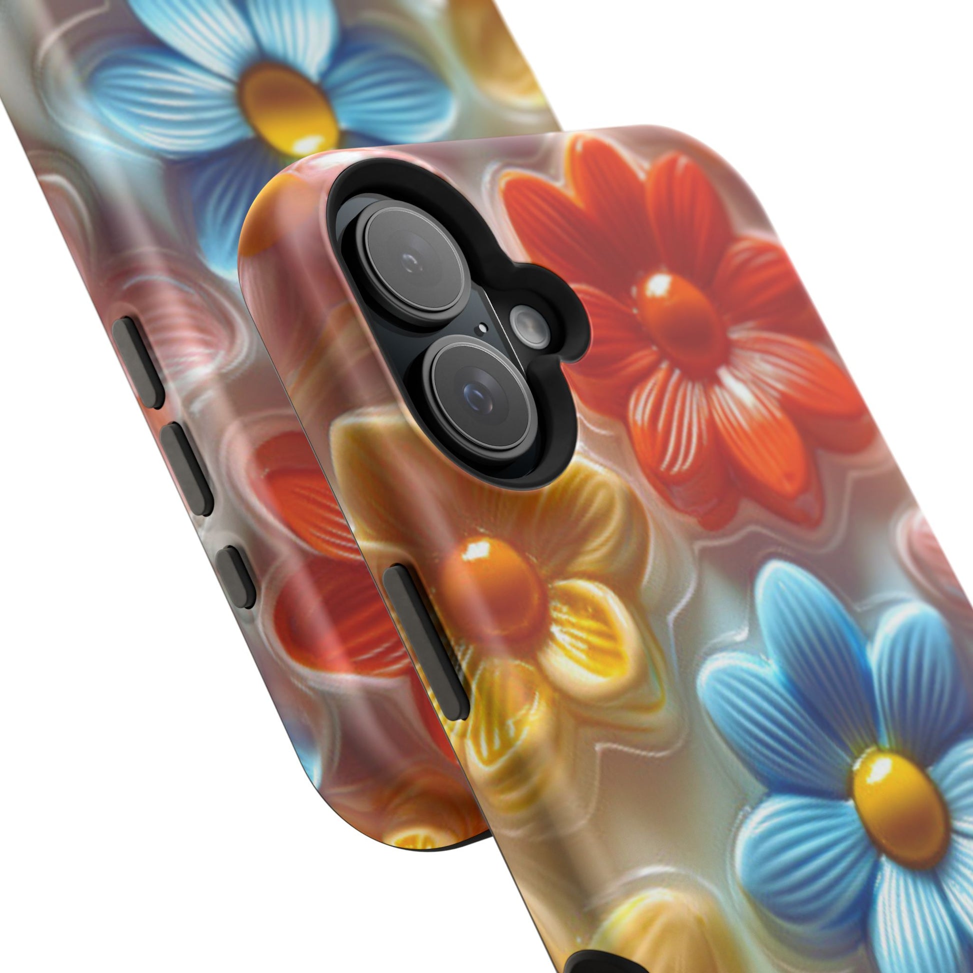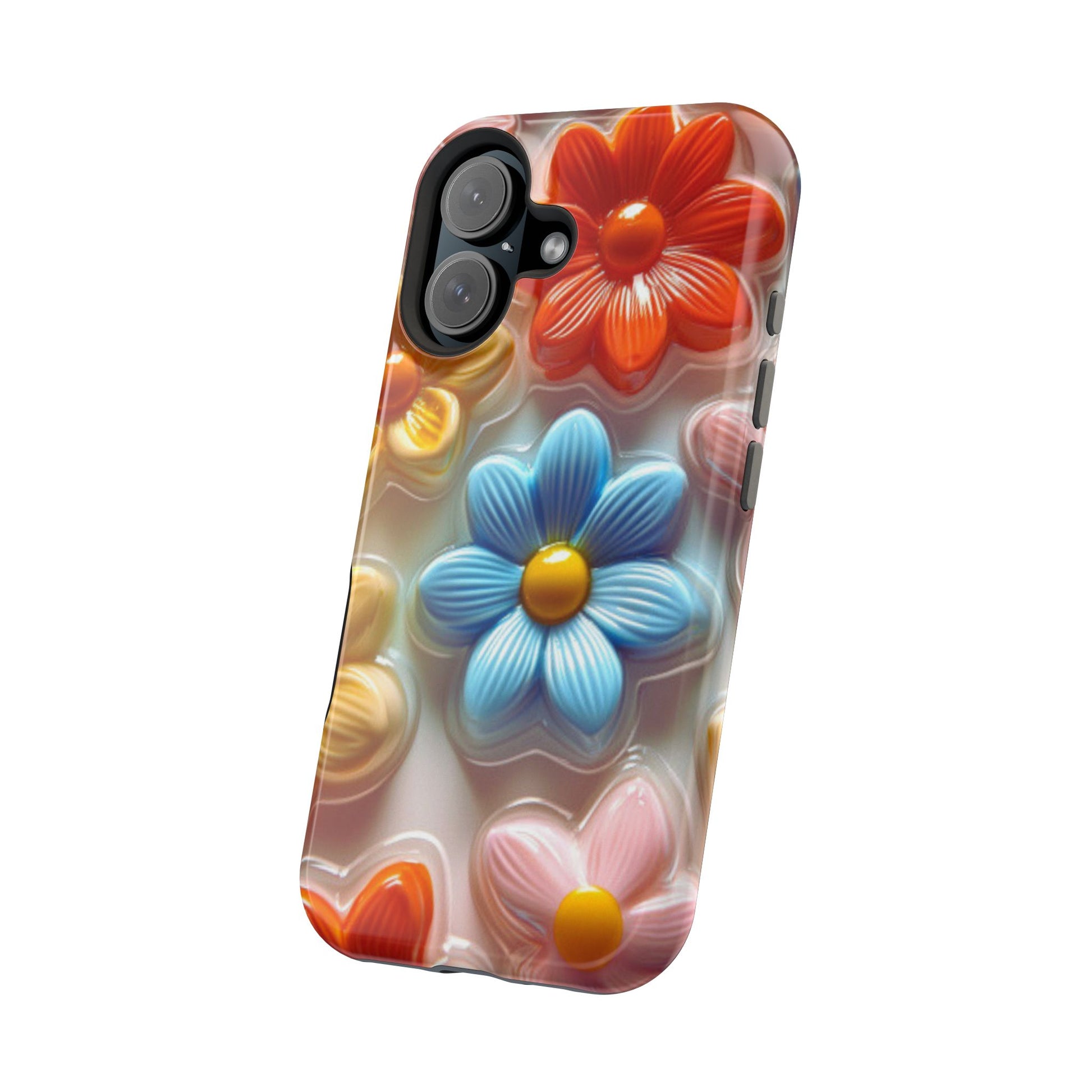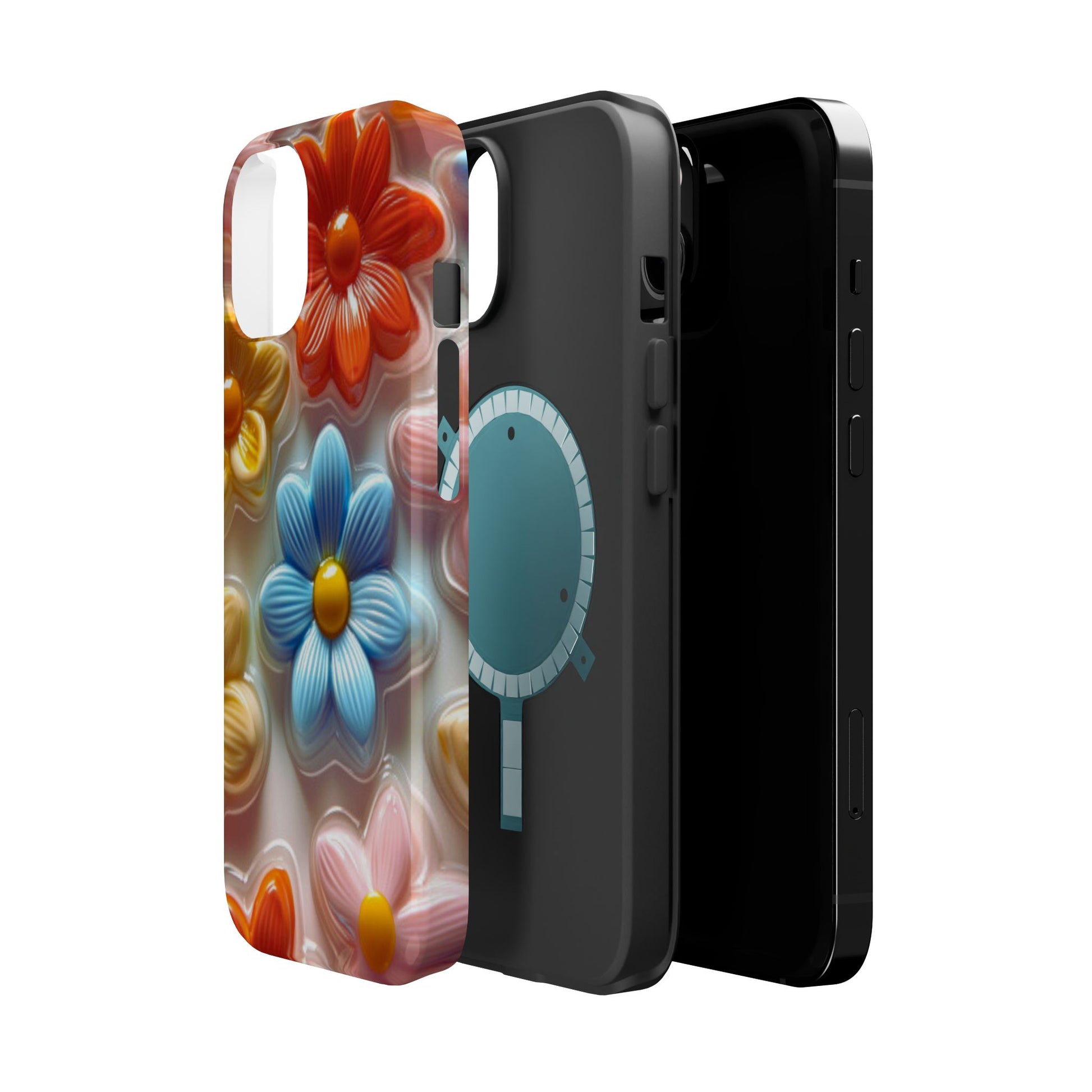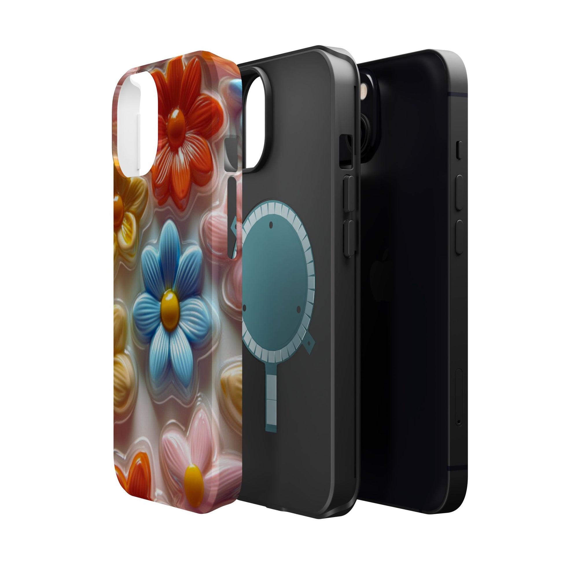 Glossy Retro Flower MagSafe iPhone Case – Colorful 3D Floral Design, Durable Protection