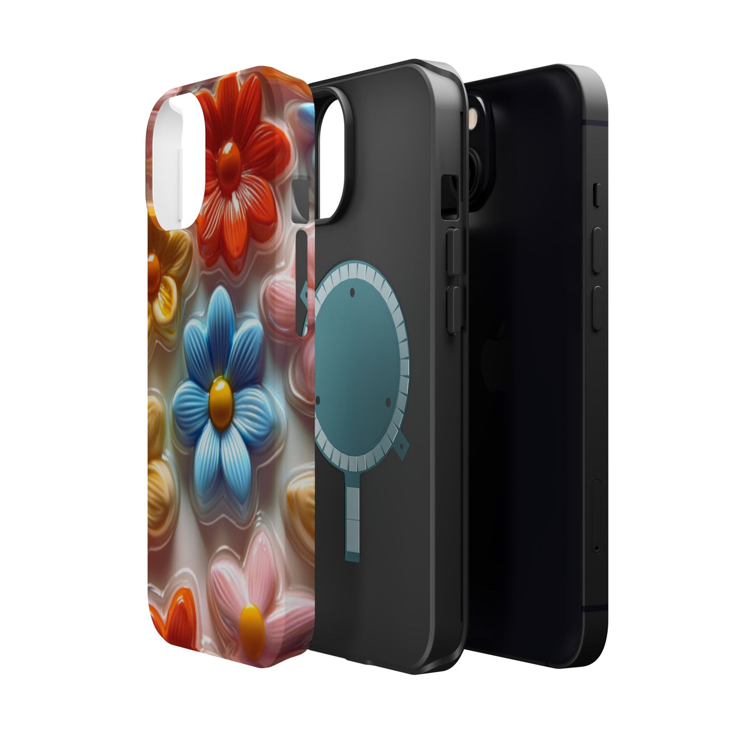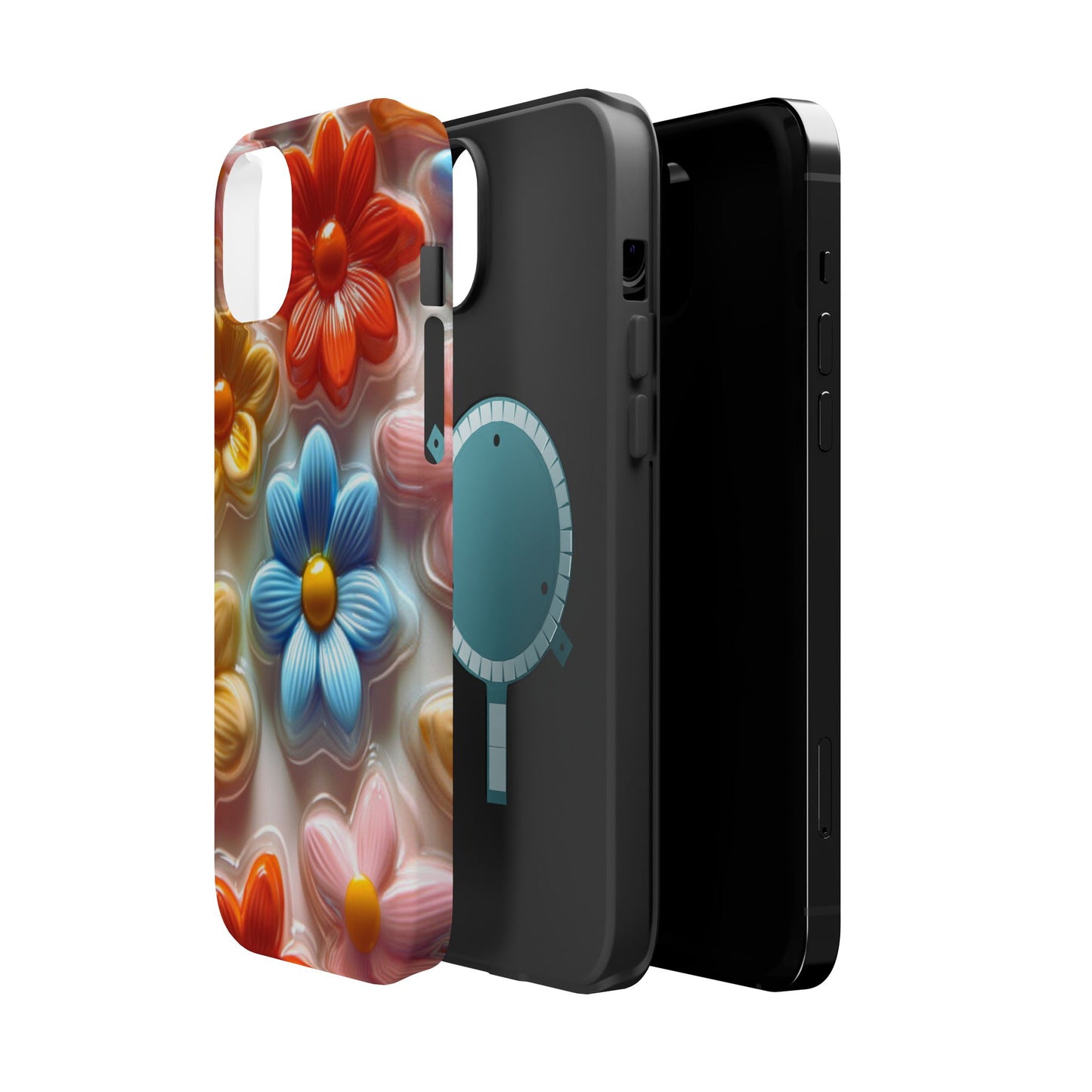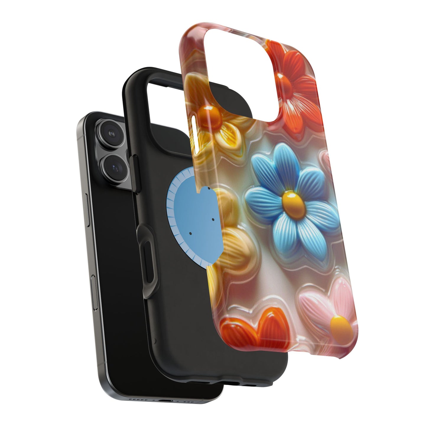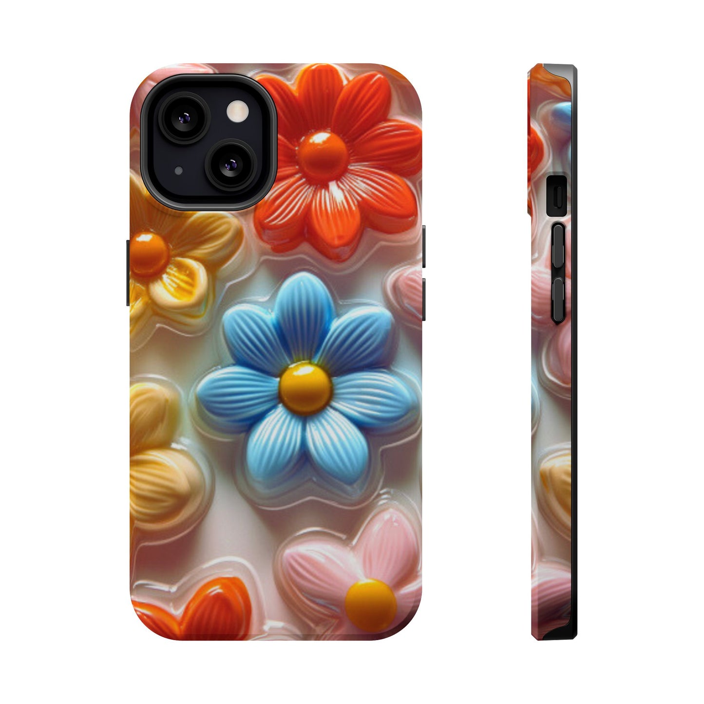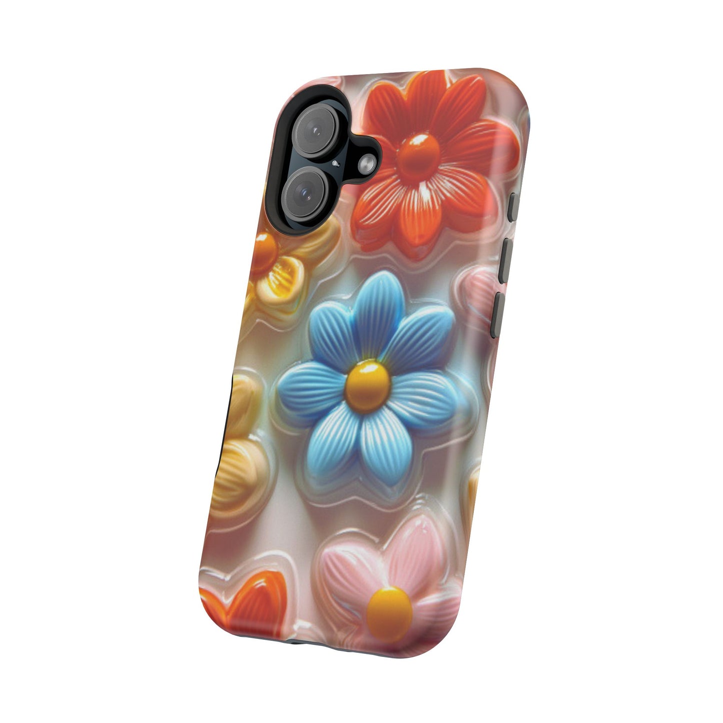 Glossy Retro Flower MagSafe iPhone Case – Colorful 3D Floral Design, Durable Protection