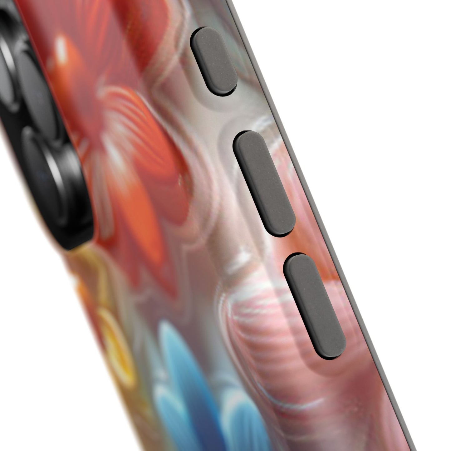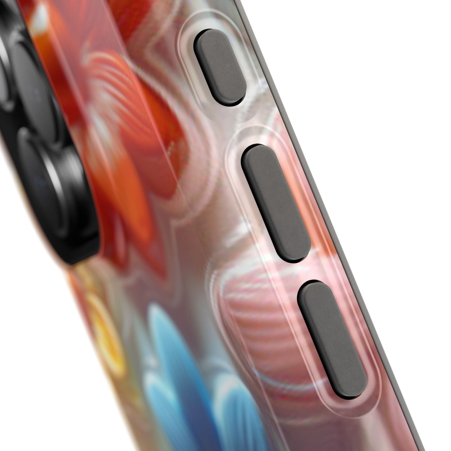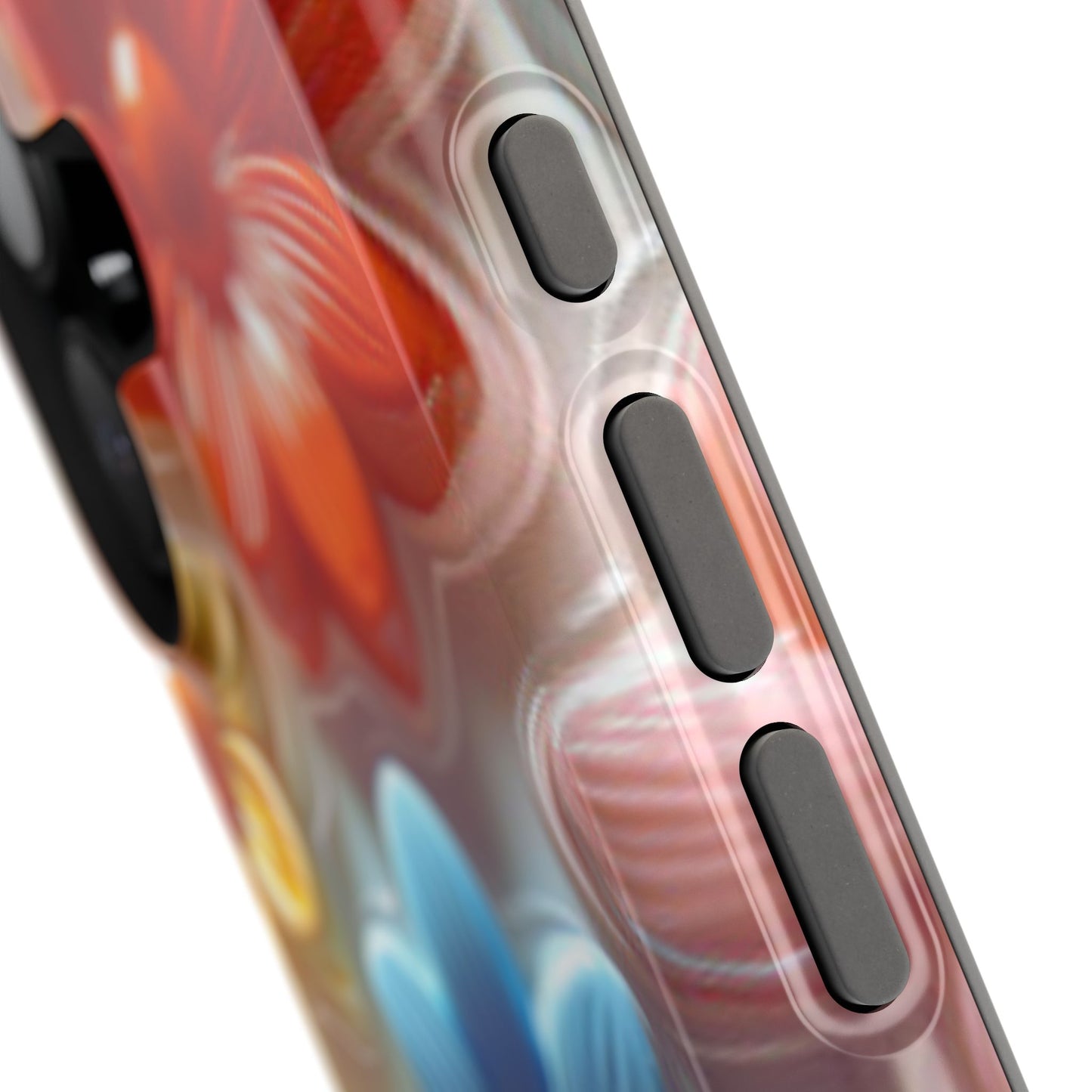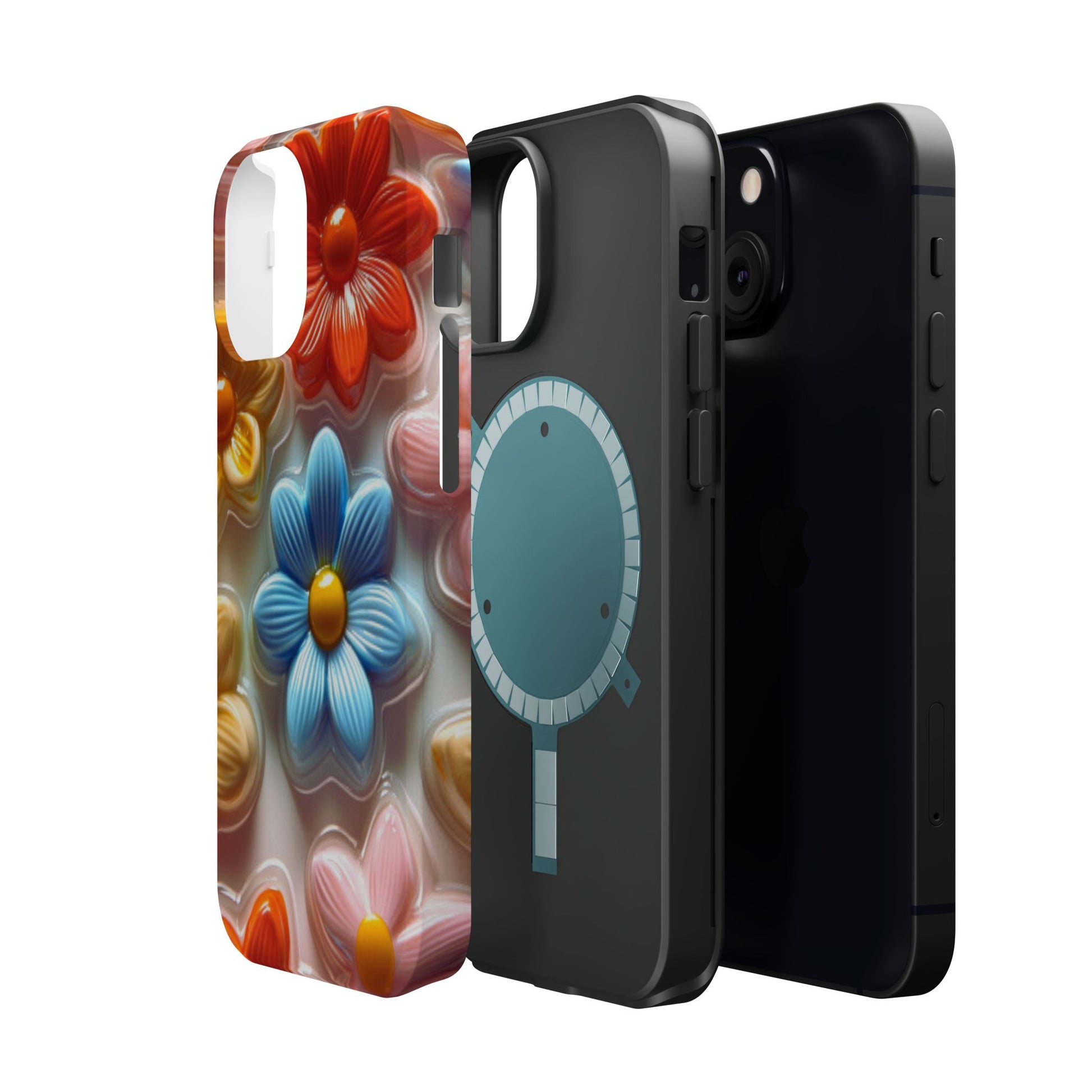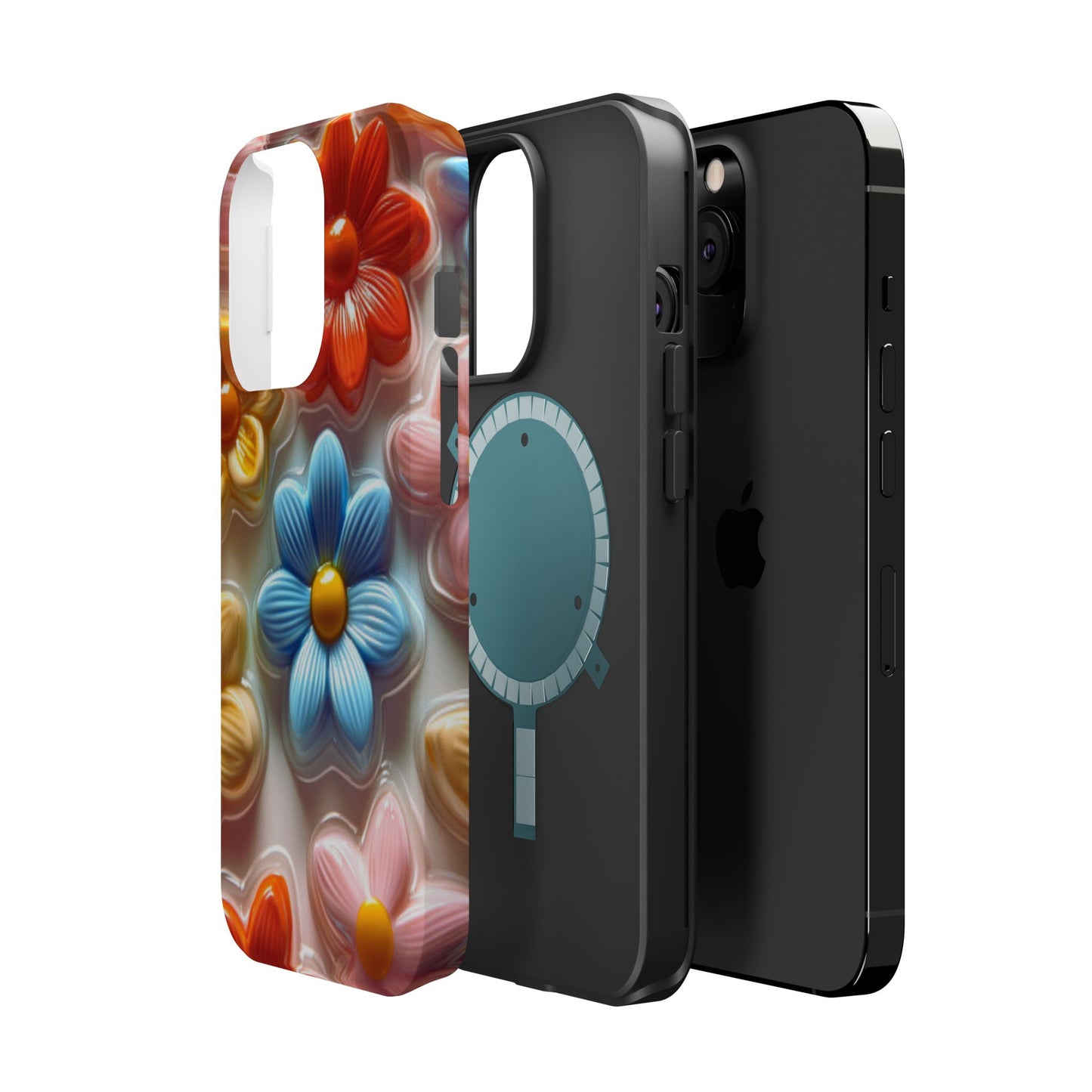 Glossy Retro Flower MagSafe iPhone Case – Colorful 3D Floral Design, Durable Protection