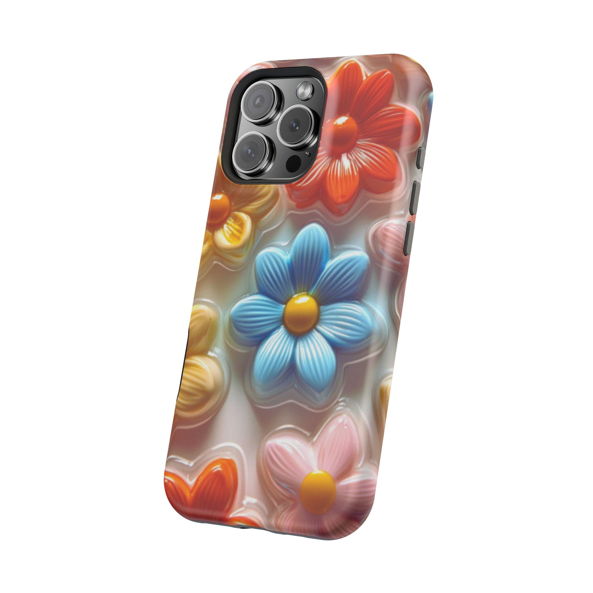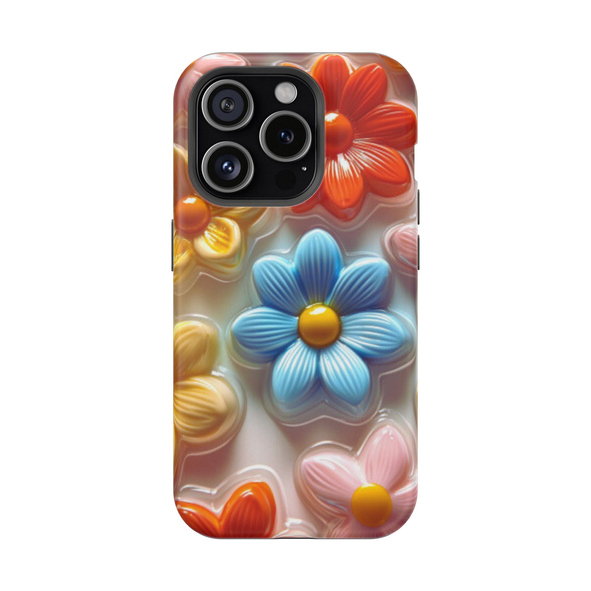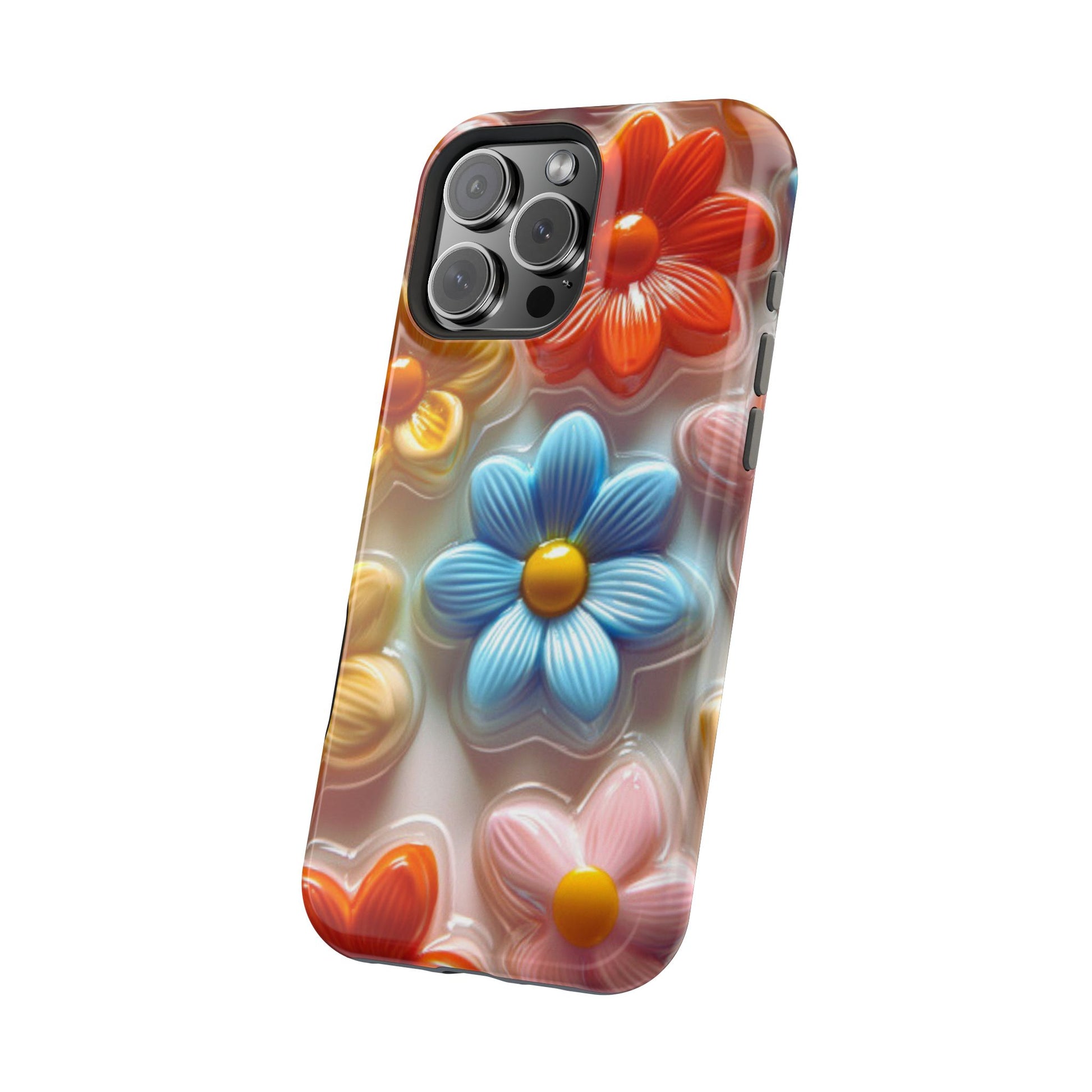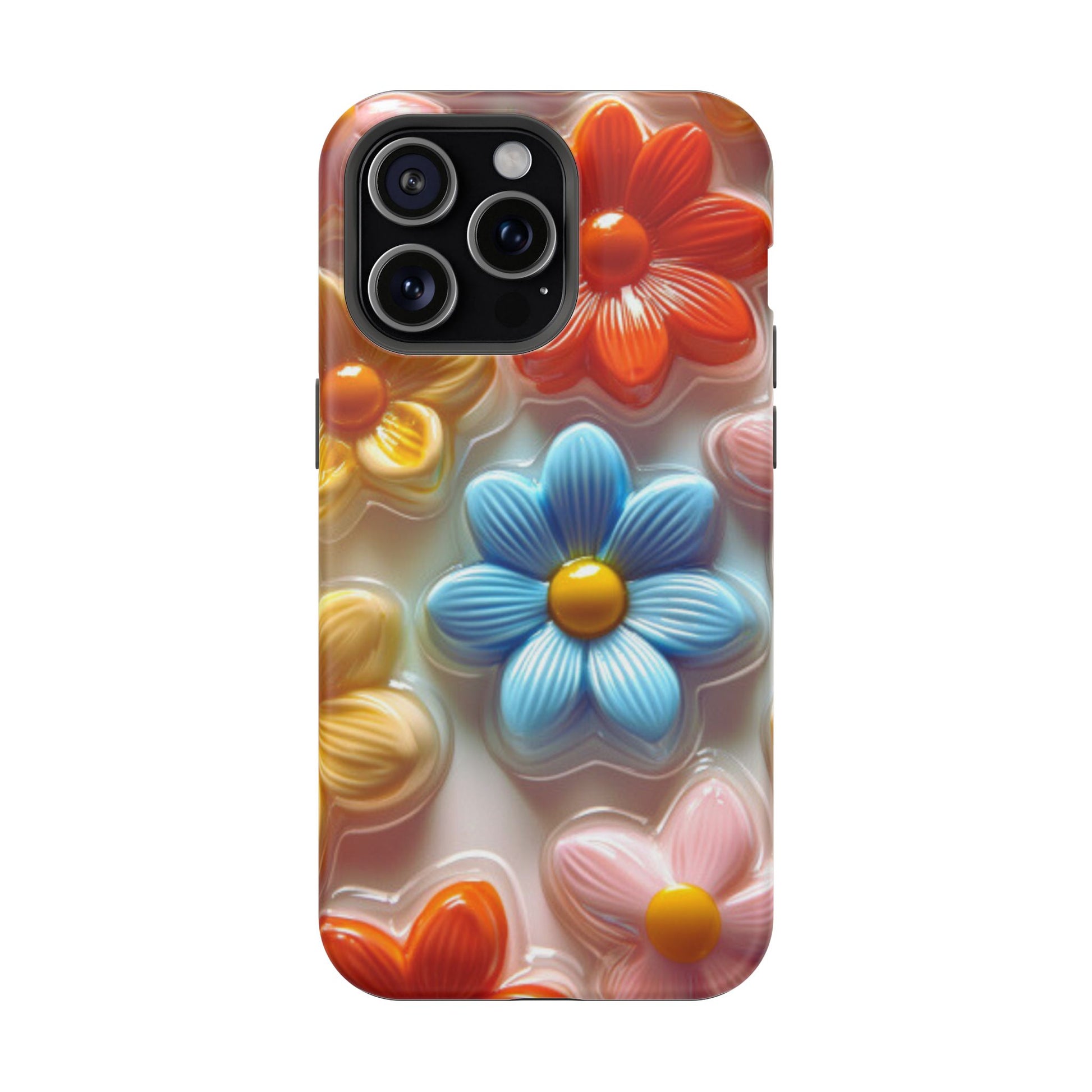 Step into retro vibes with our Glossy Retro Flower MagSafe iPhone case! This case features a playful 3D design of bold, glossy flowers in a rainbow of colors like orange, blue, yellow, and pink. The raised petals add a fun, textured feel while giving your phone a unique vintage flair. Made fro...