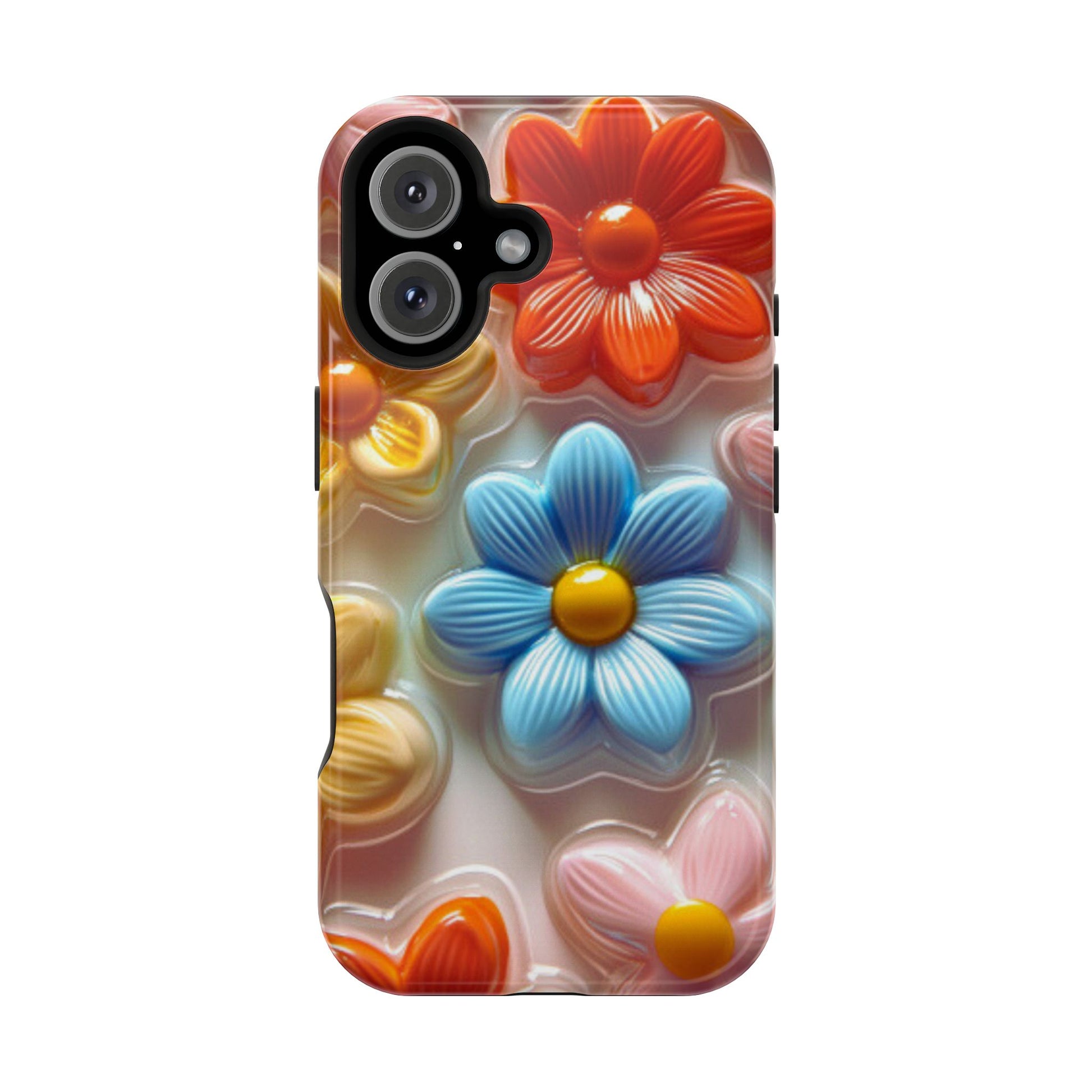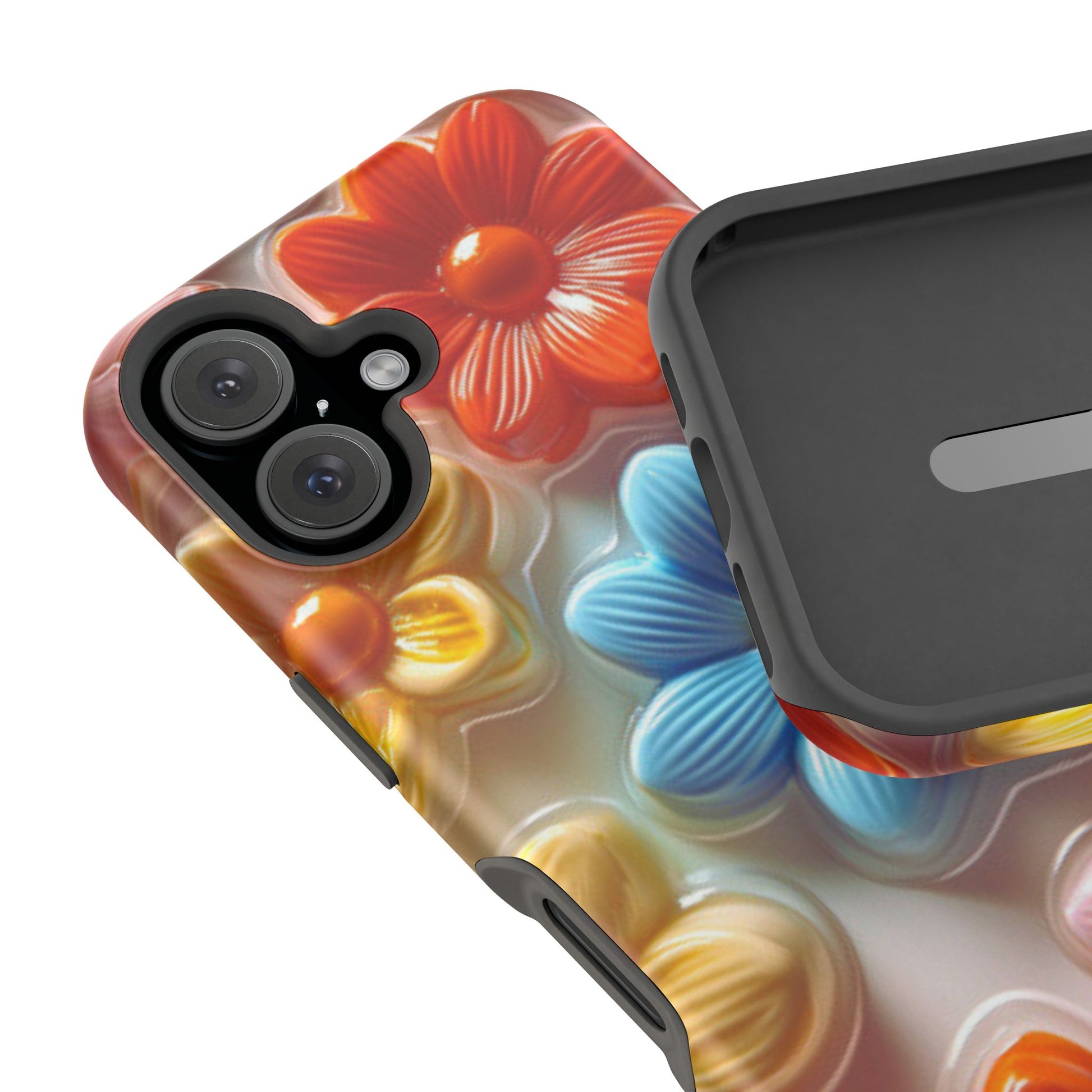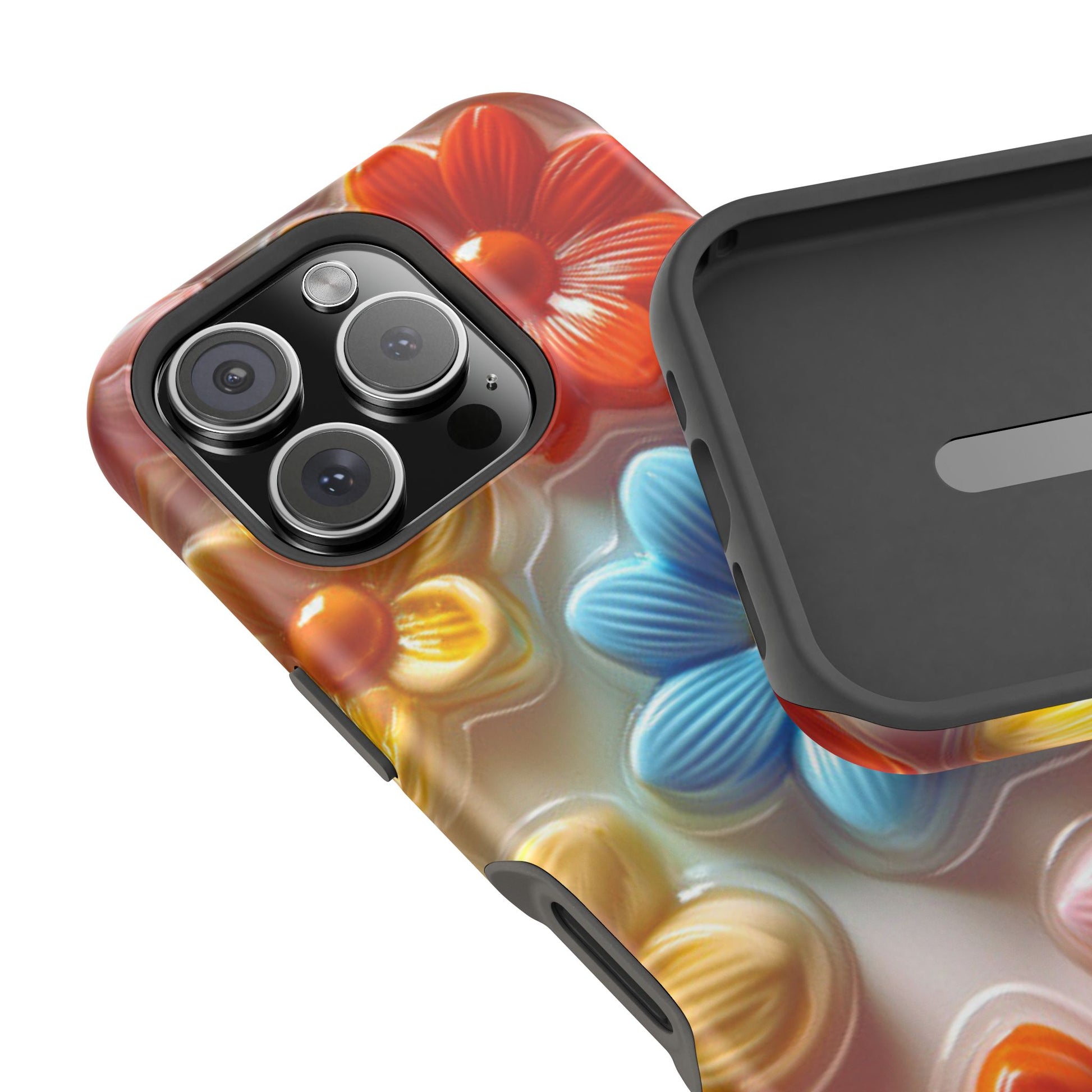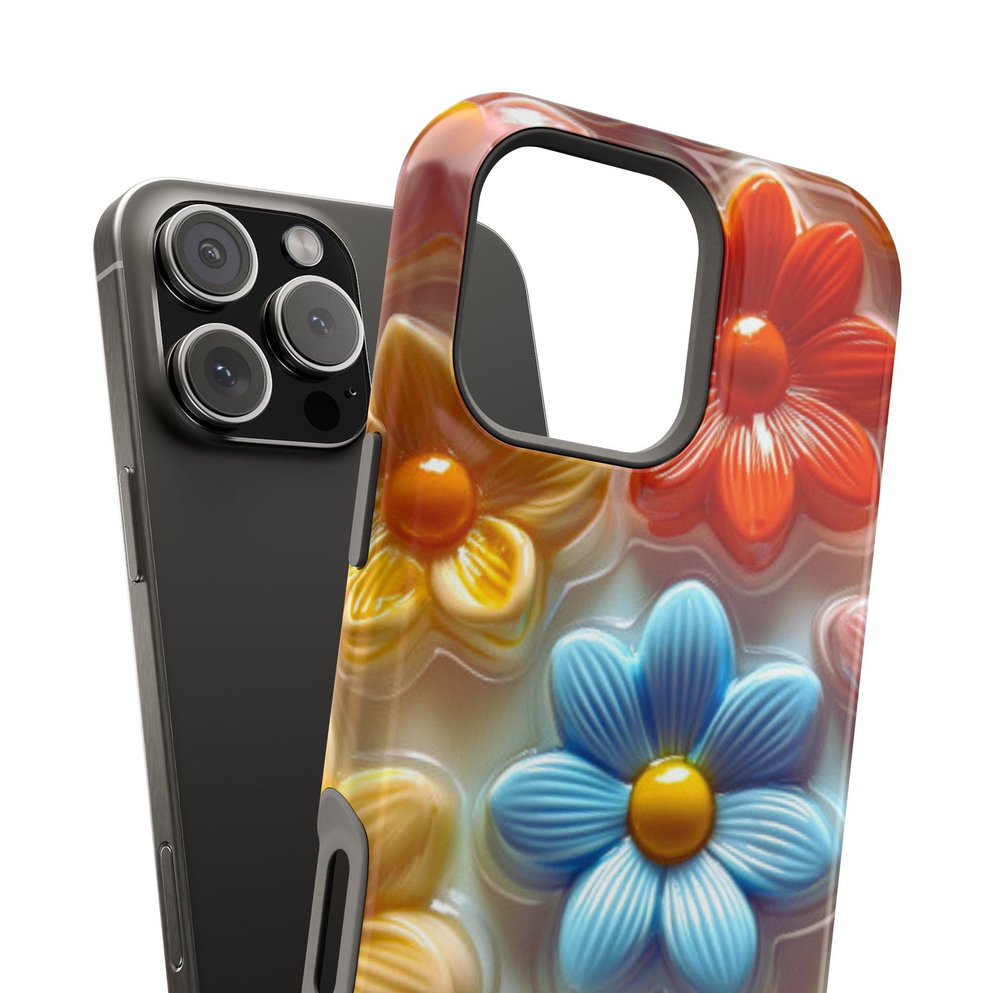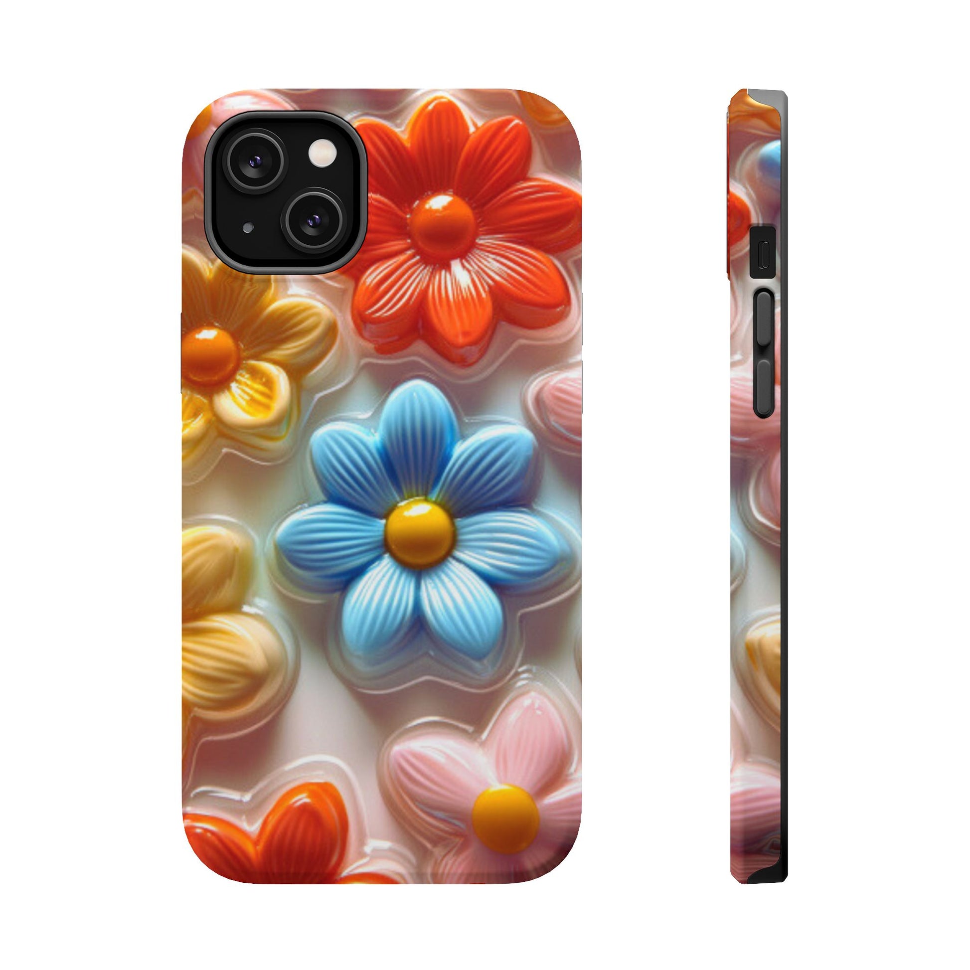 Step into retro vibes with our Glossy Retro Flower MagSafe iPhone case! This case features a playful 3D design of bold, glossy flowers in a rainbow of colors like orange, blue, yellow, and pink. The raised petals add a fun, textured feel while giving your phone a unique vintage flair. Made fro...