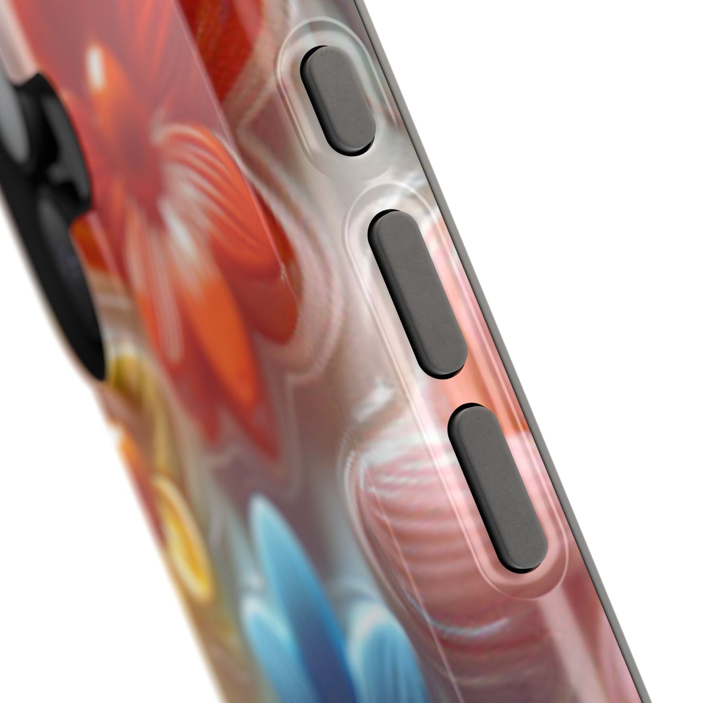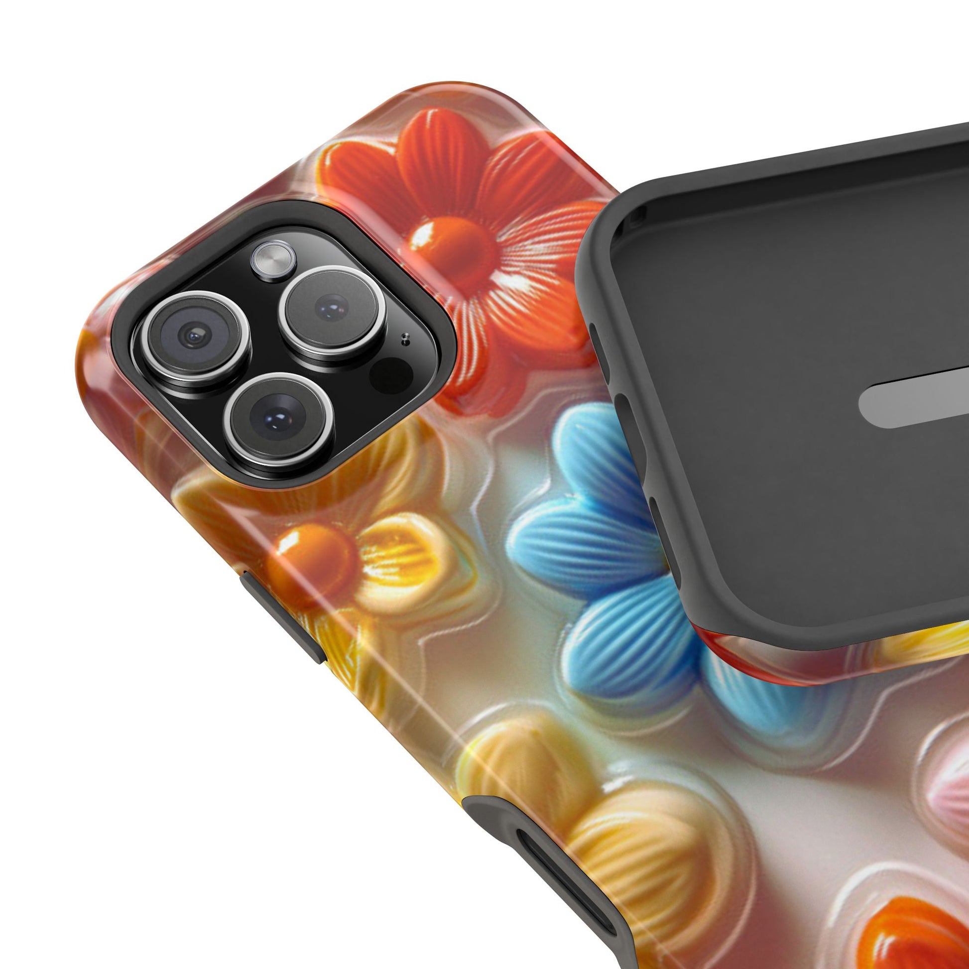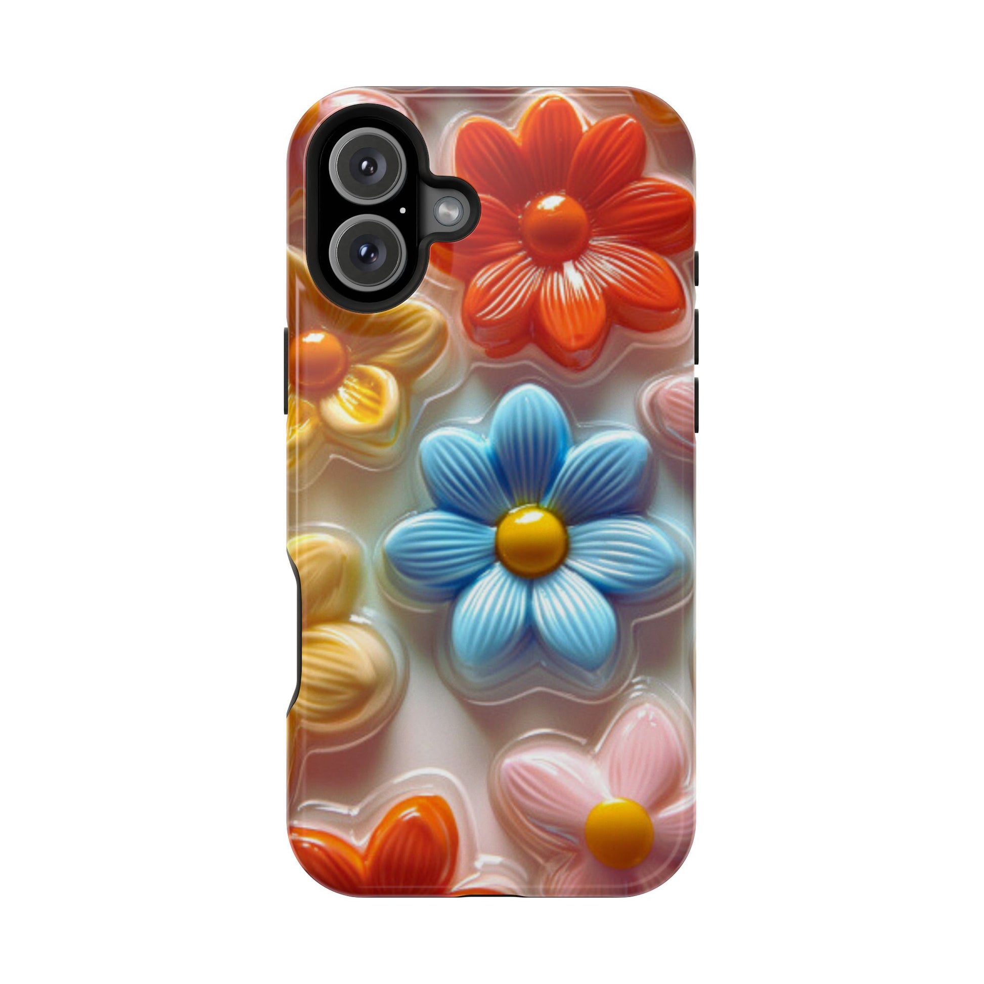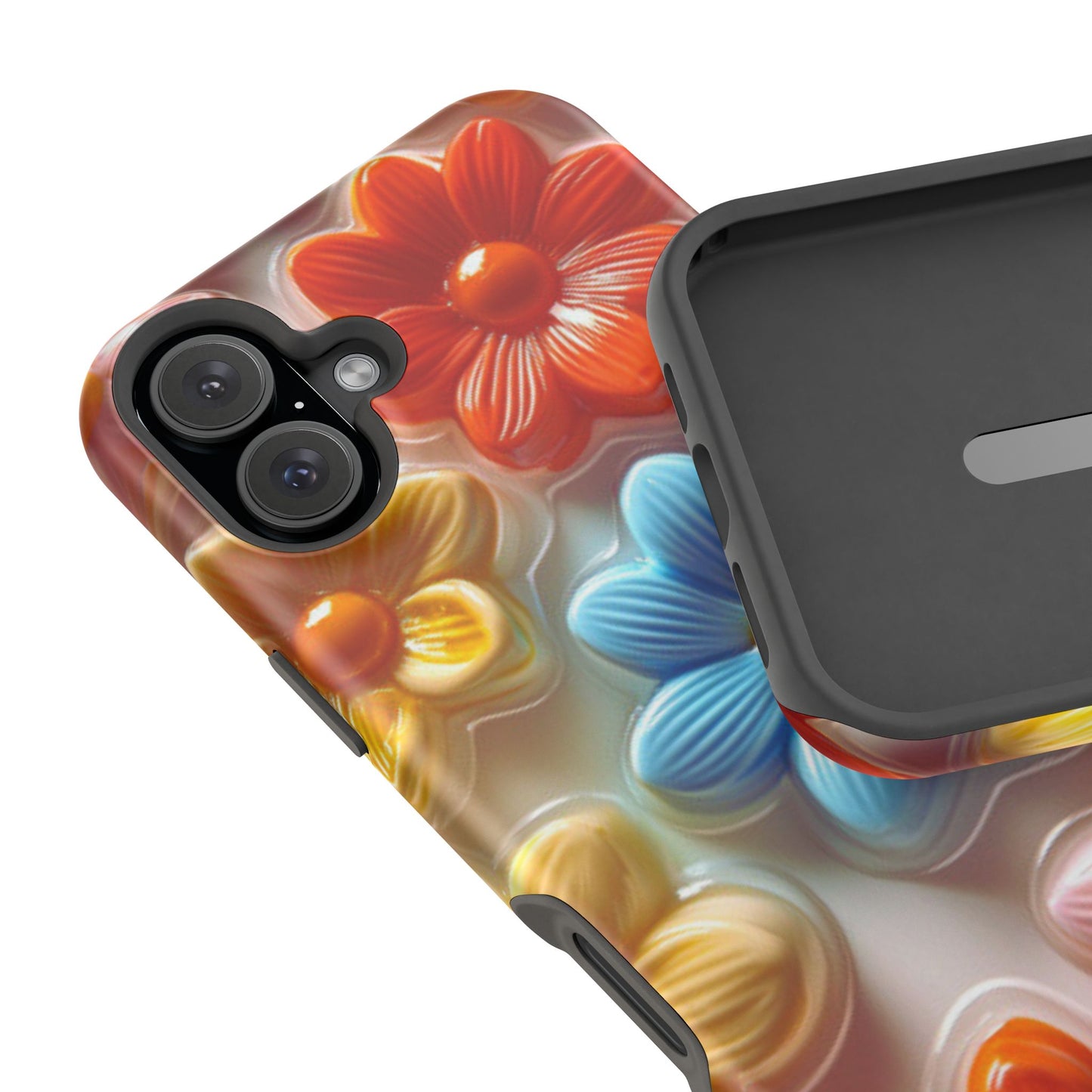 Step into retro vibes with our Glossy Retro Flower MagSafe iPhone case! This case features a playful 3D design of bold, glossy flowers in a rainbow of colors like orange, blue, yellow, and pink. The raised petals add a fun, textured feel while giving your phone a unique vintage flair. Made fro...