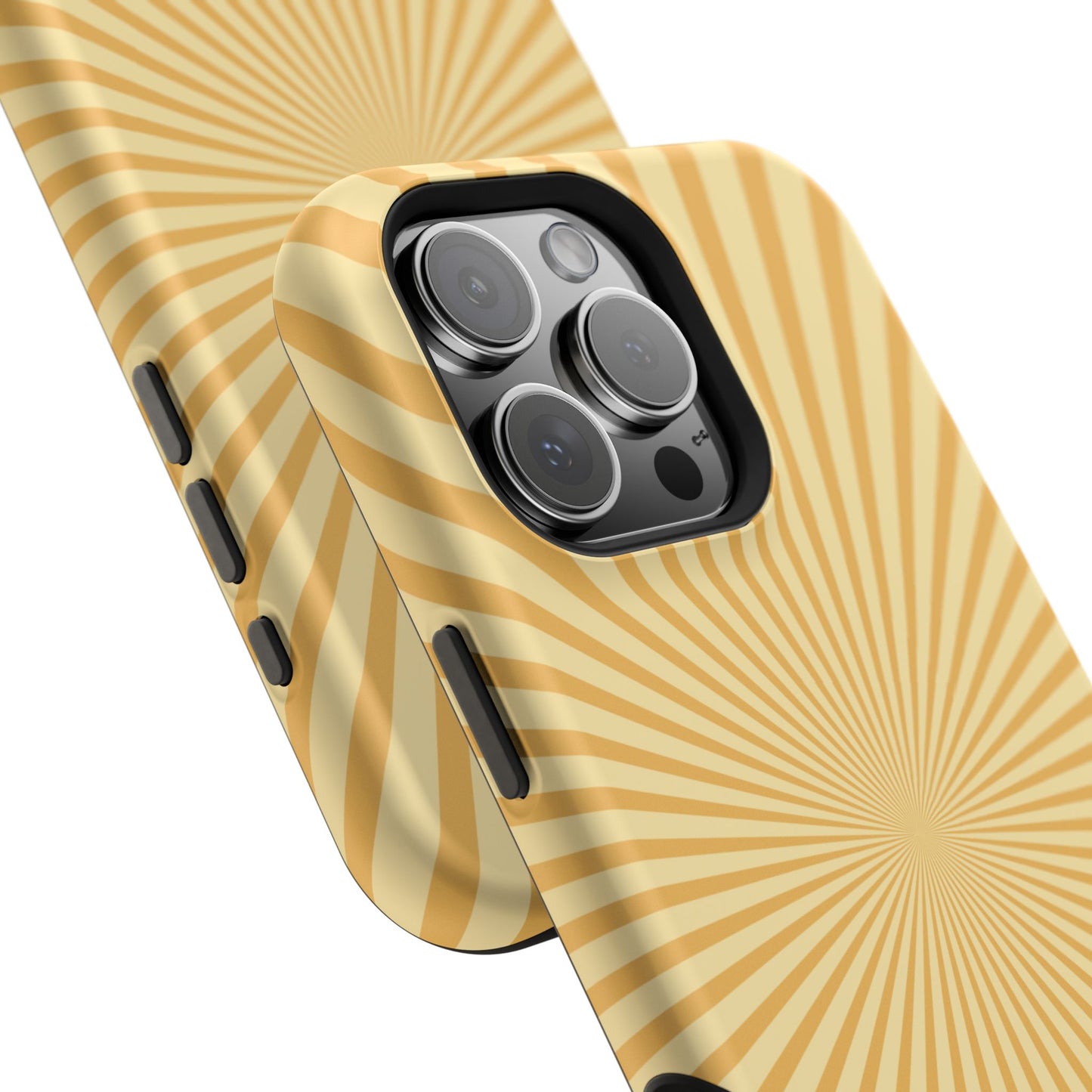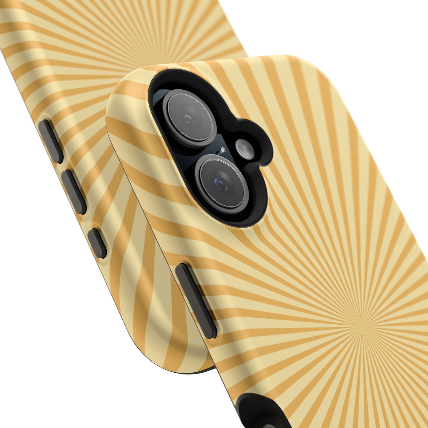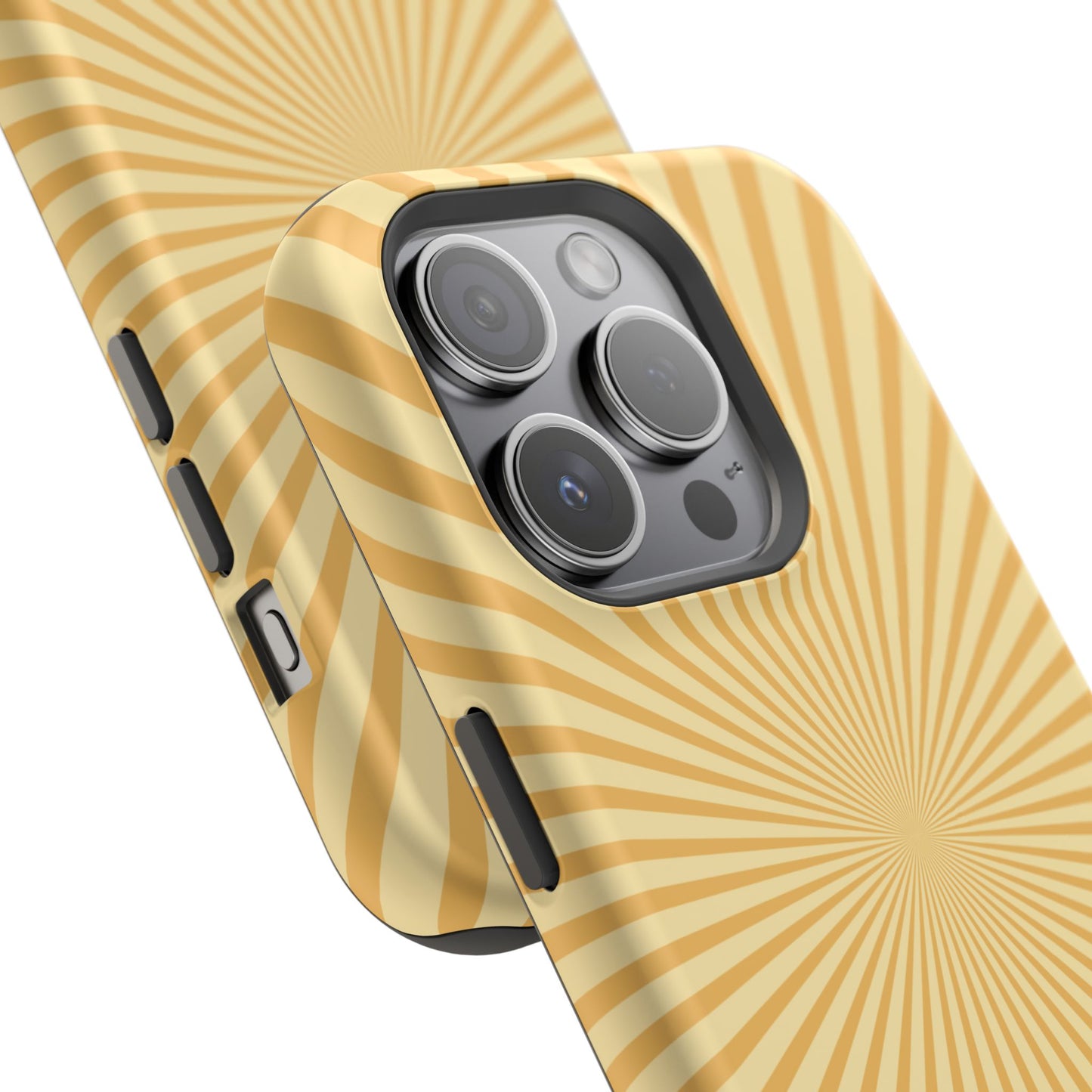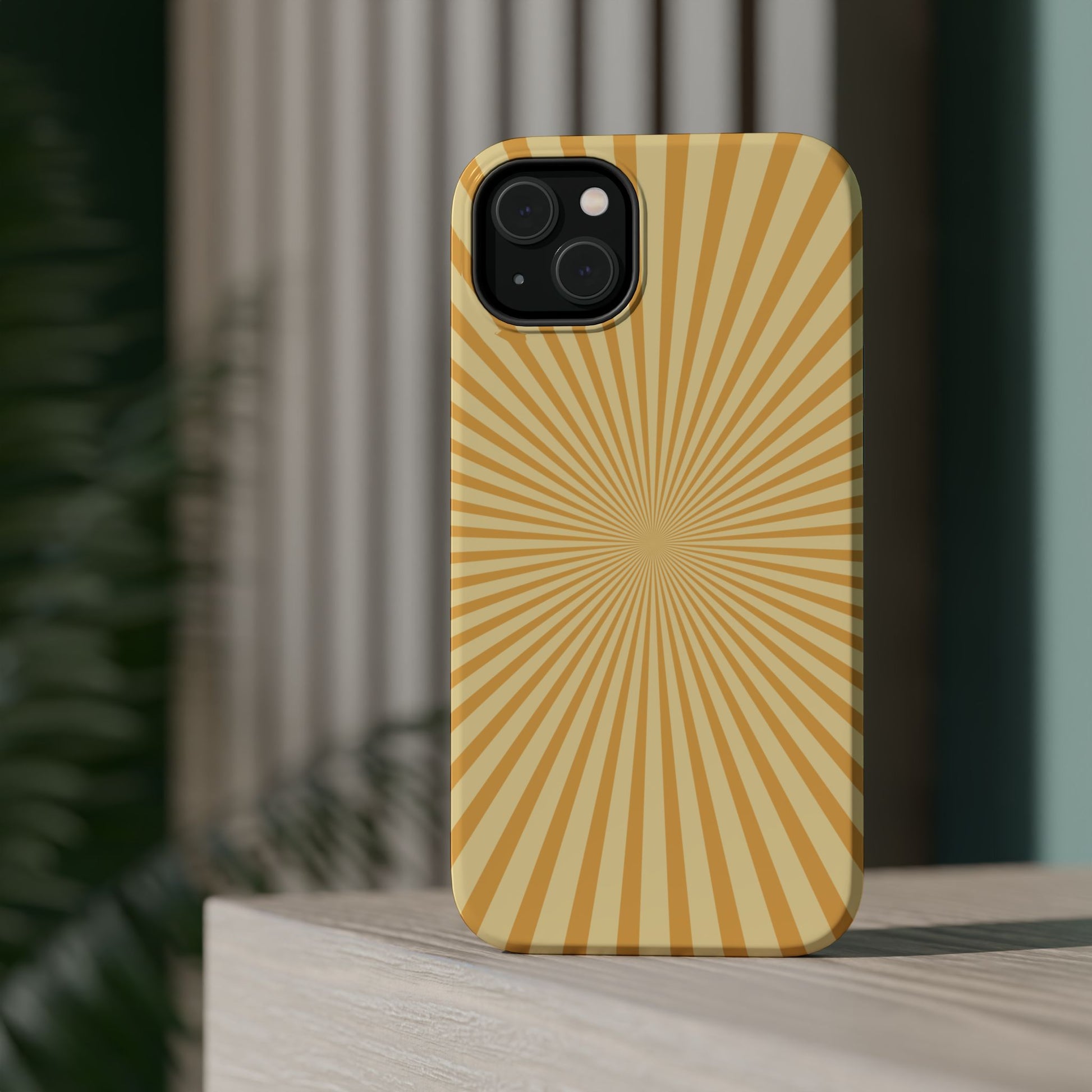 Golden Sunburst MagSafe iPhone Case – Retro Radiant Design with Dual-Layer Protection