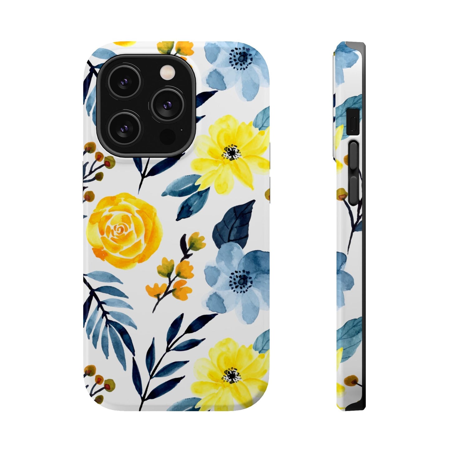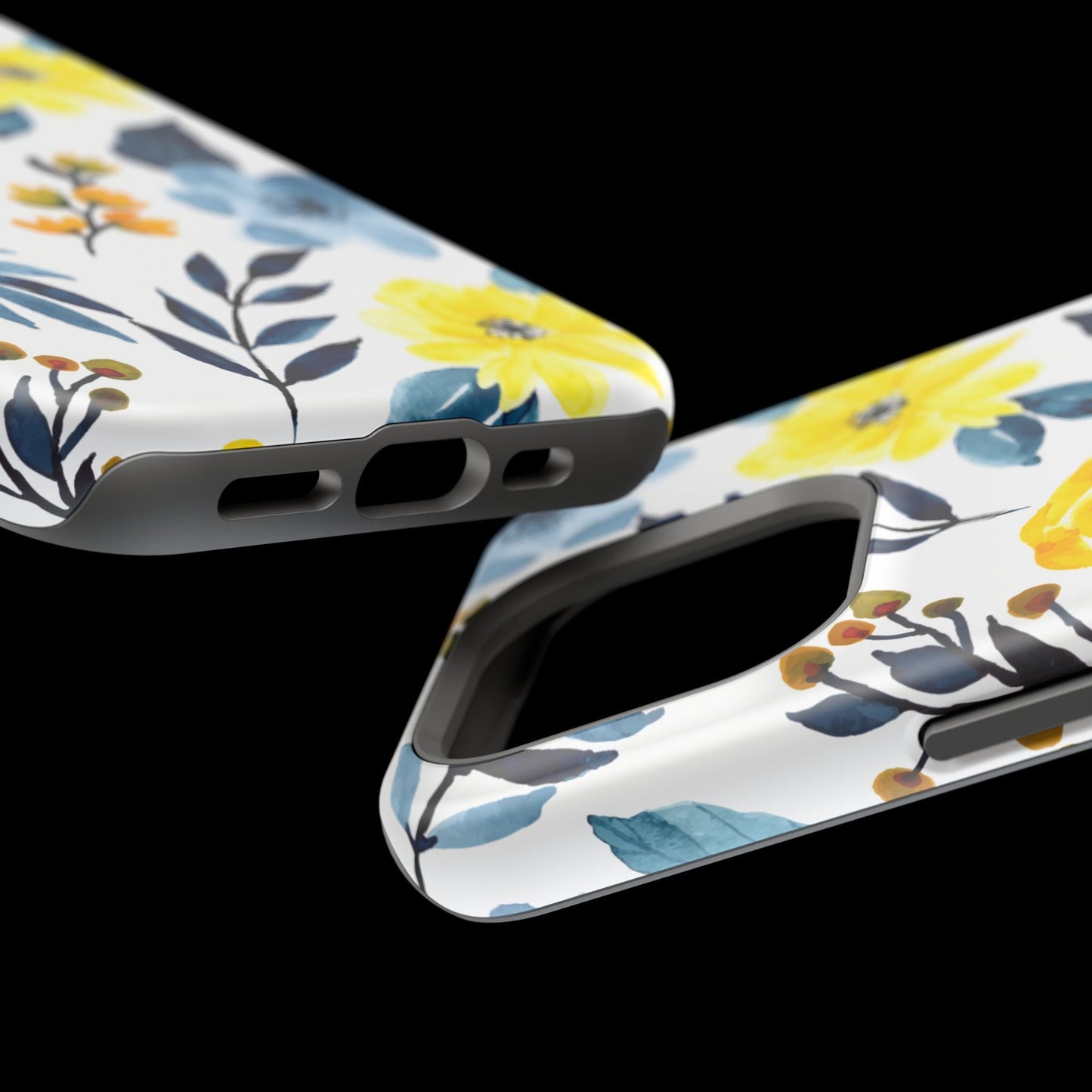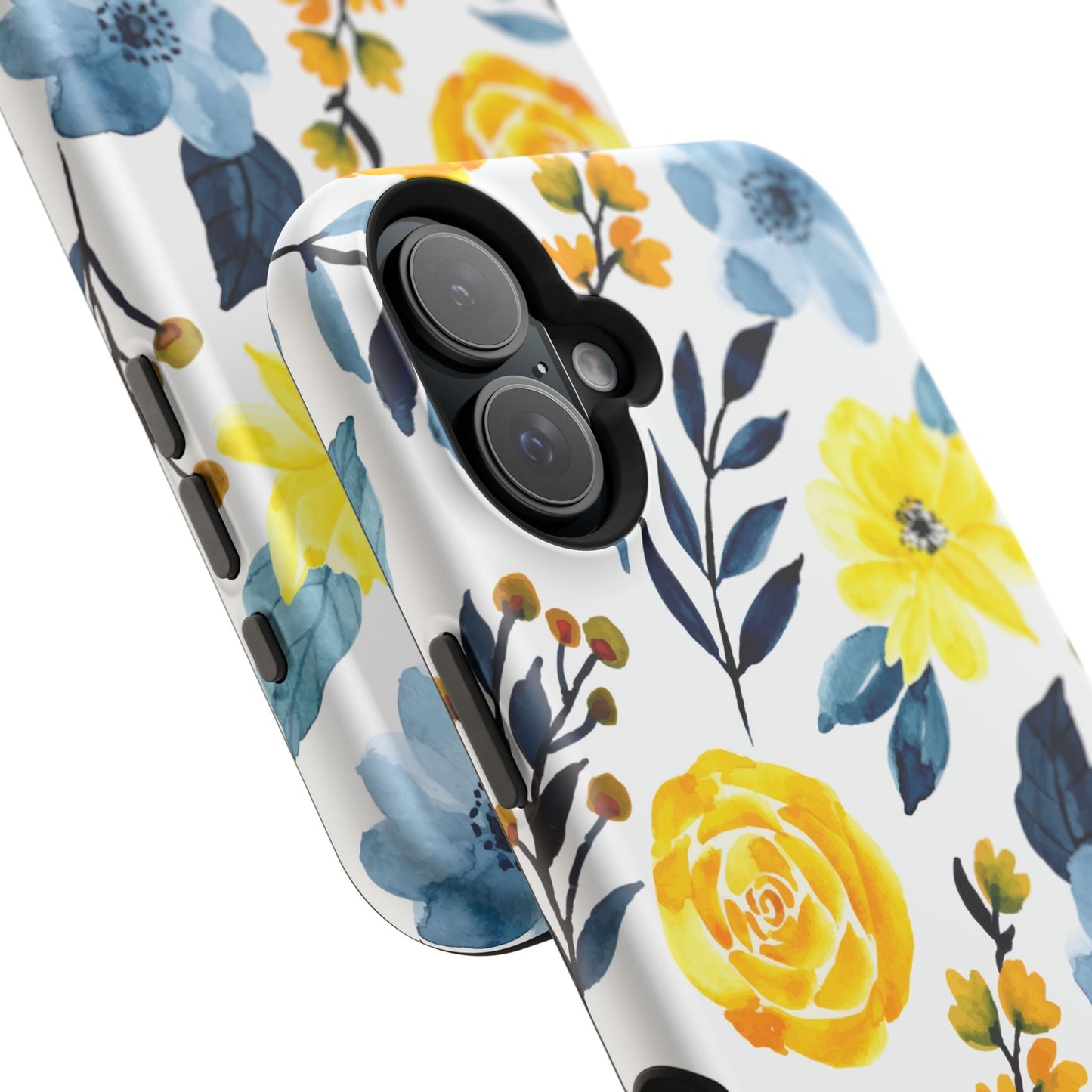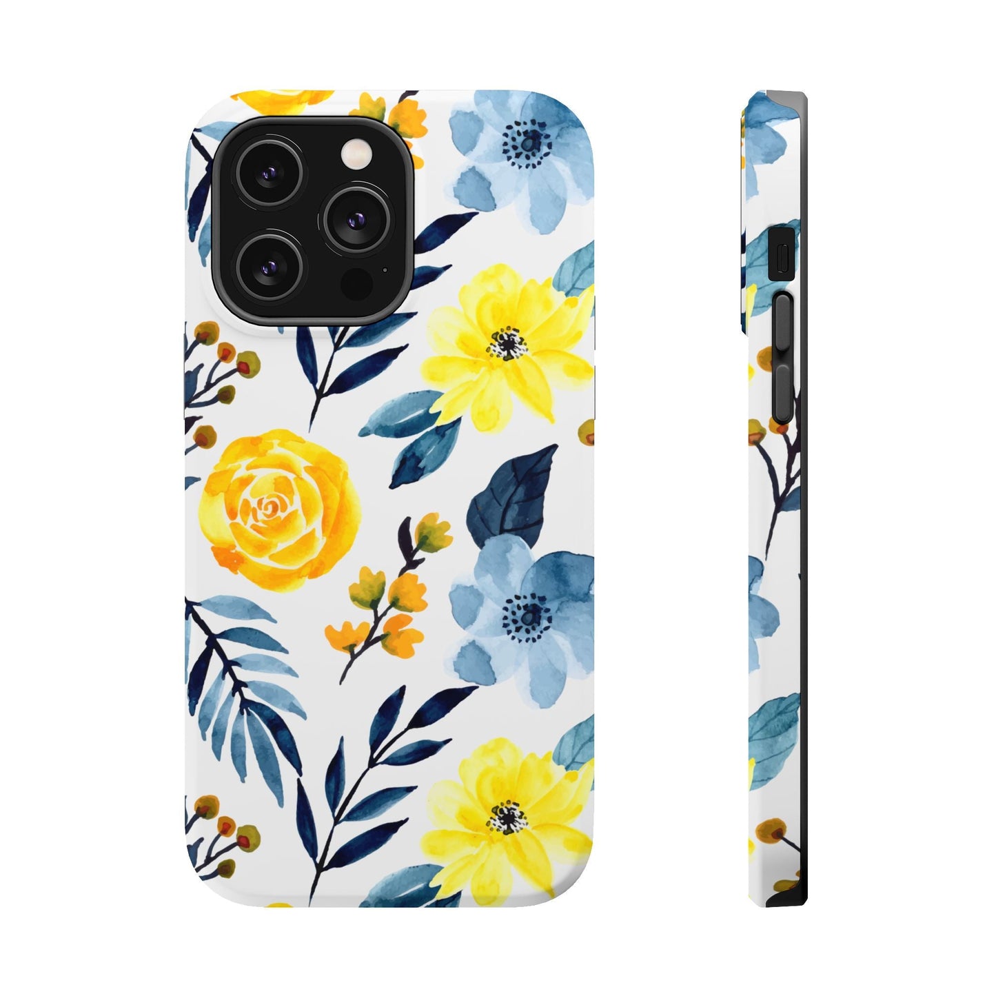 Golden Yellow & Sky Blue Floral – Watercolor Botanical MagSafe iPhone Case