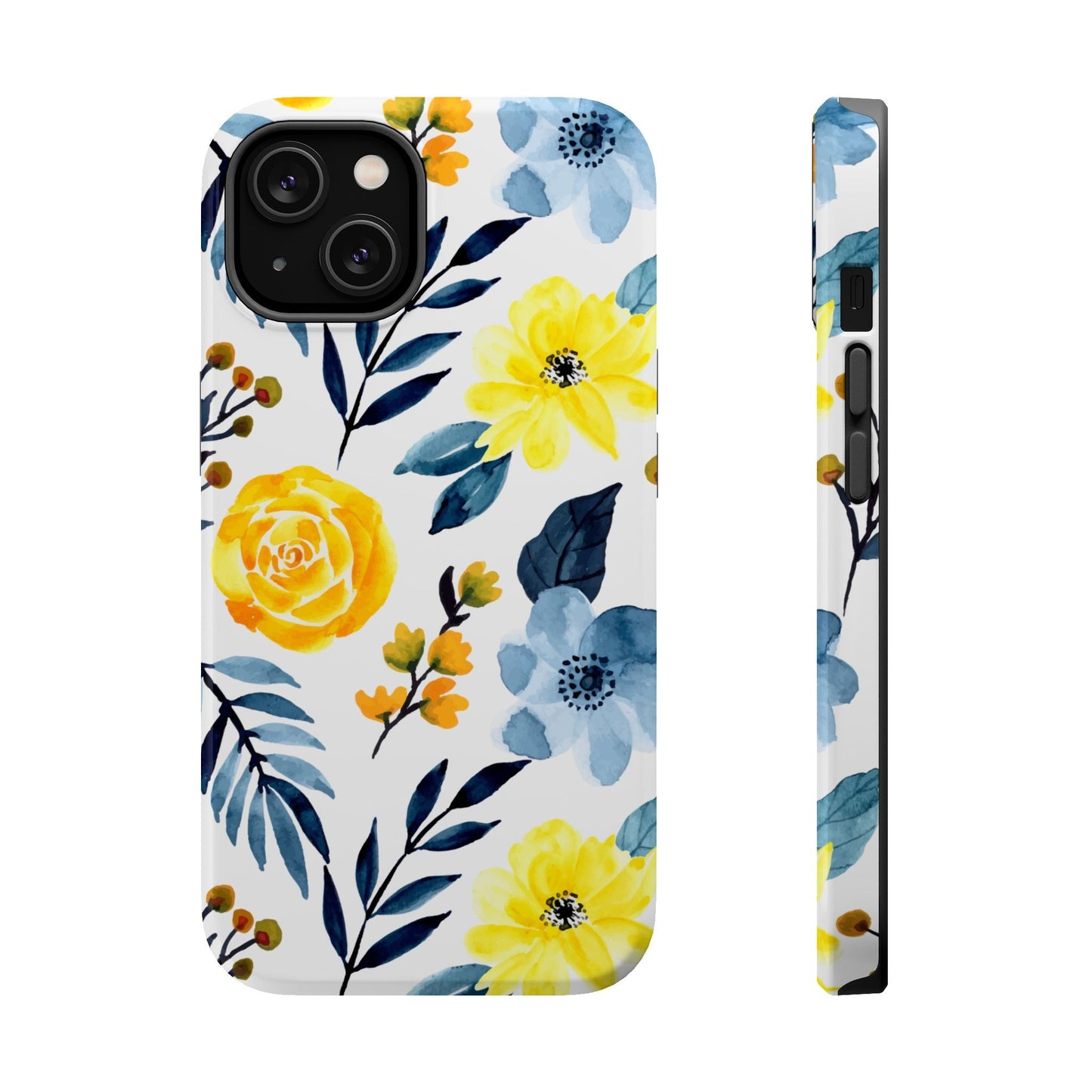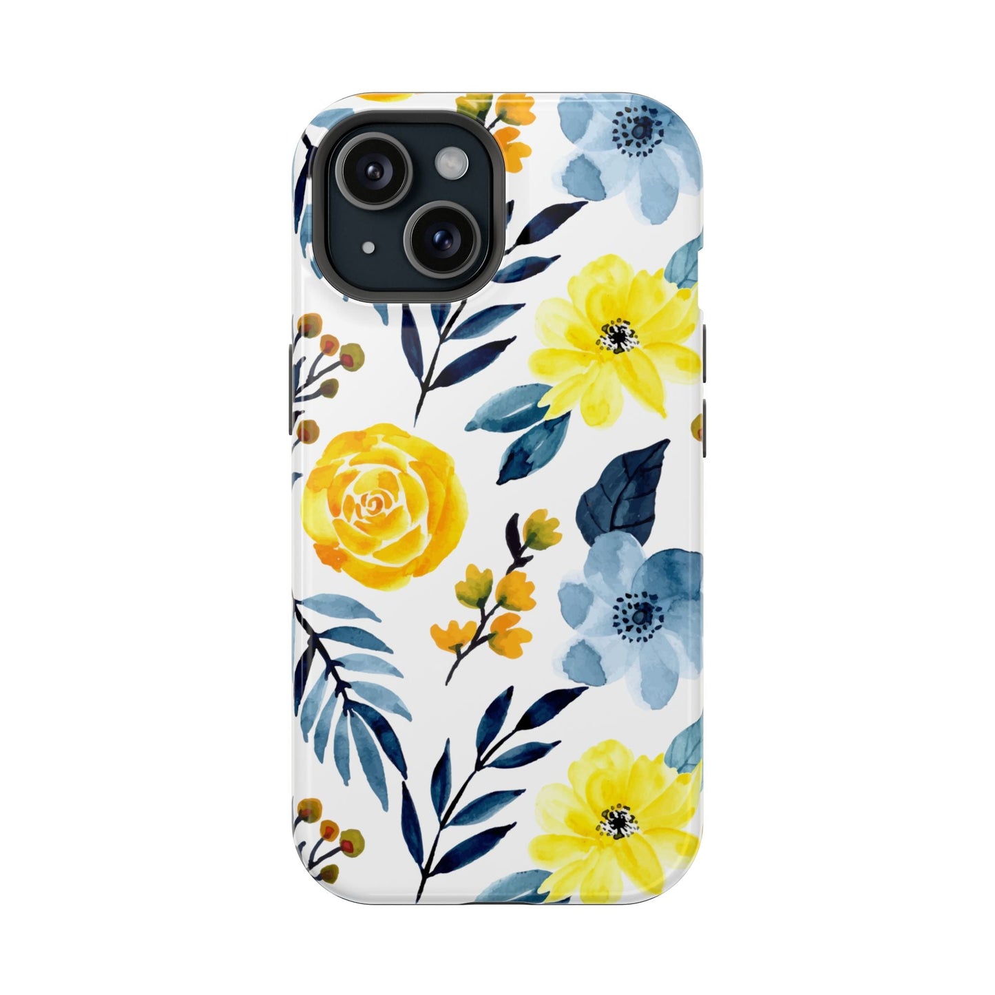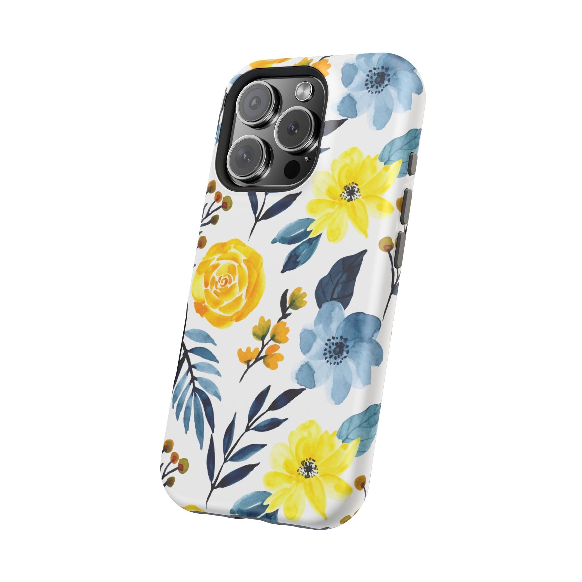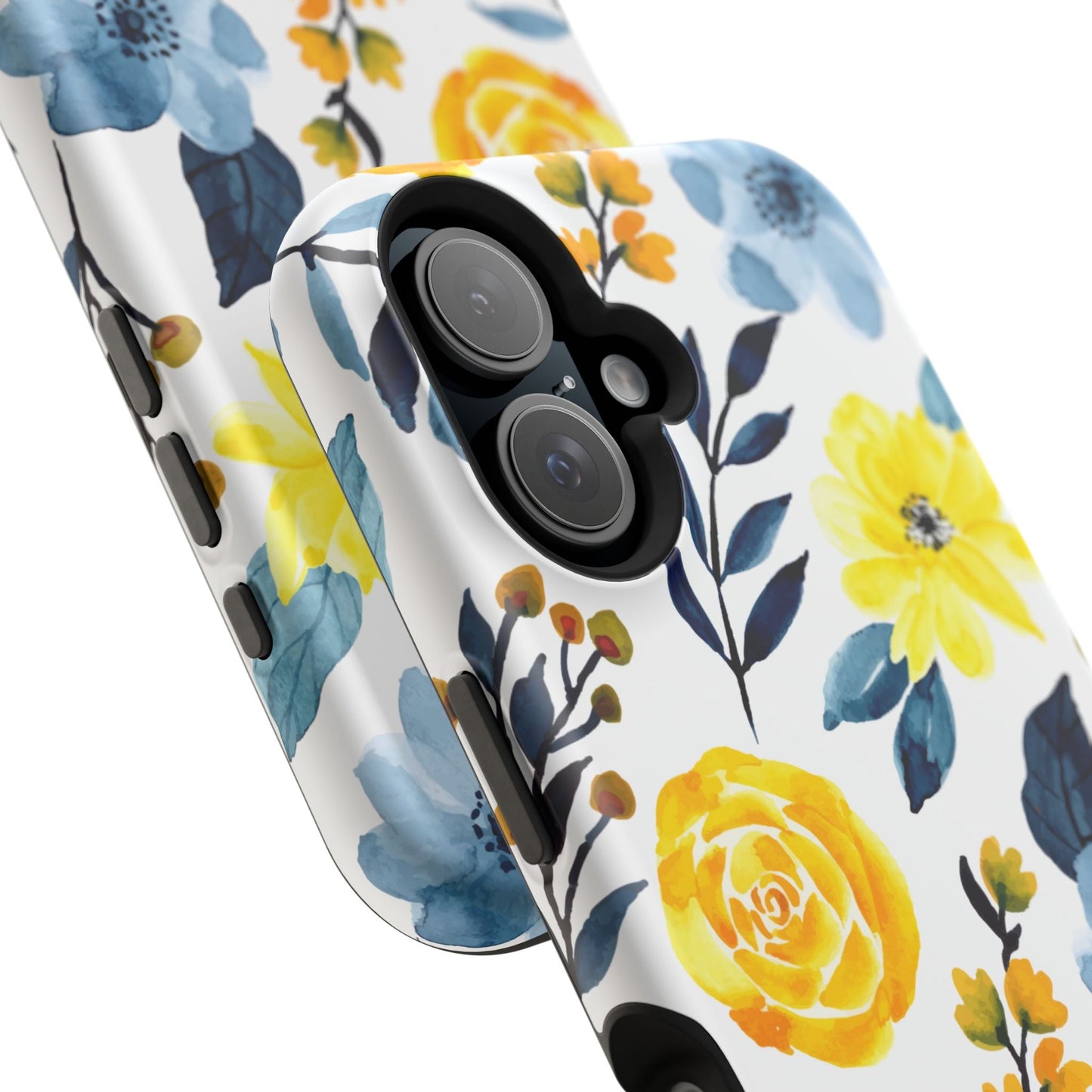 Golden Yellow & Sky Blue Floral – Watercolor Botanical MagSafe iPhone Case