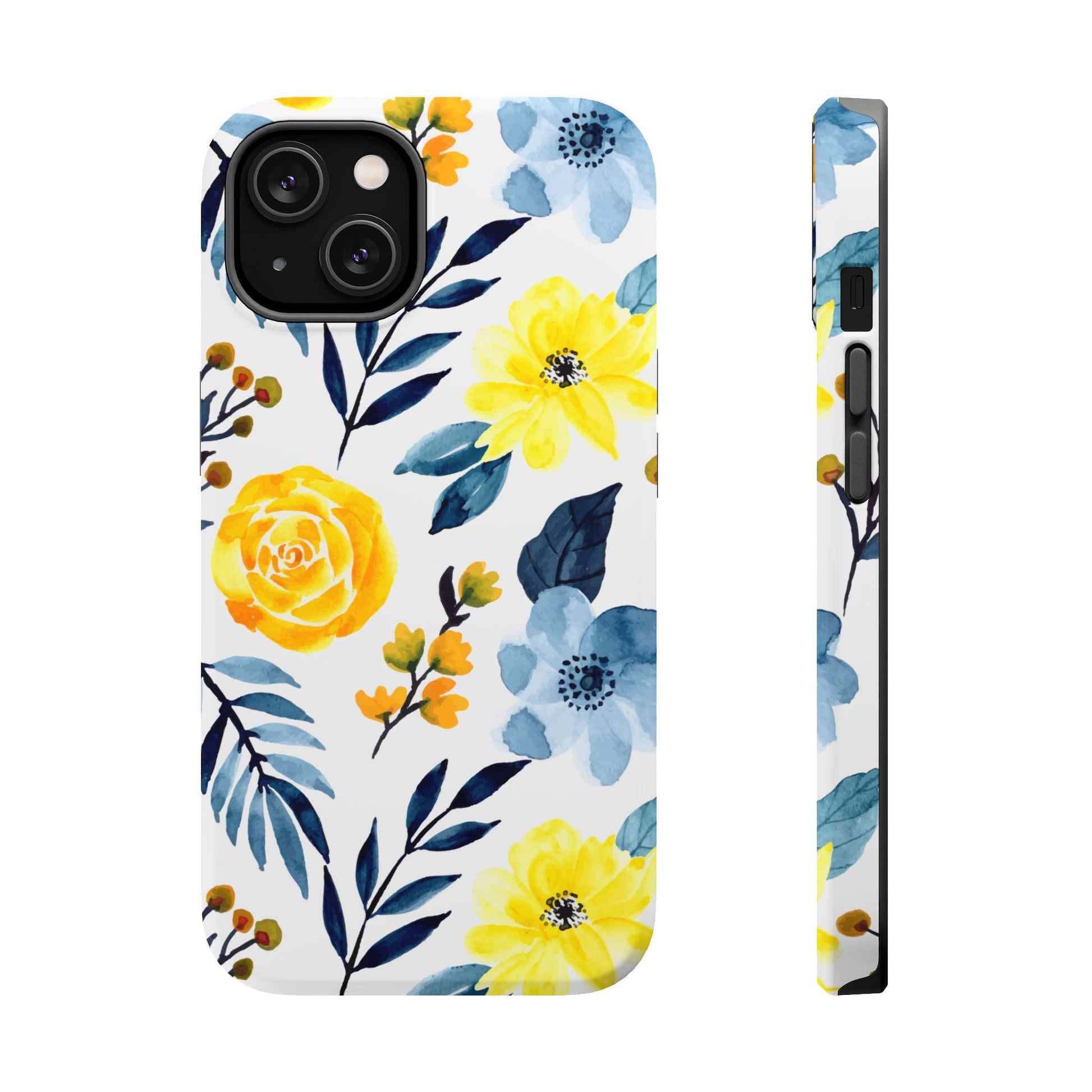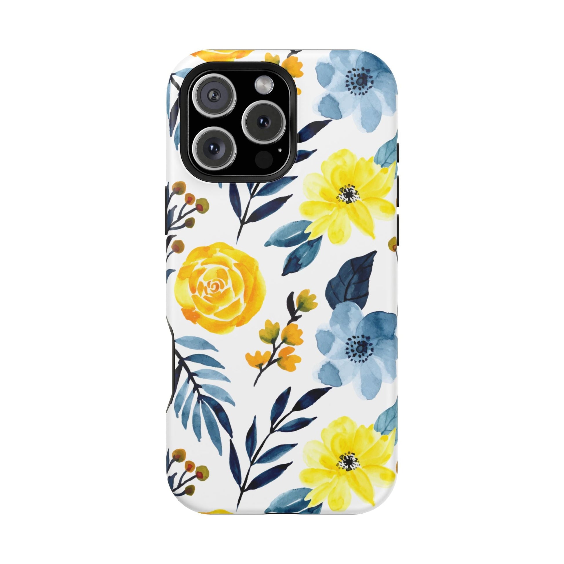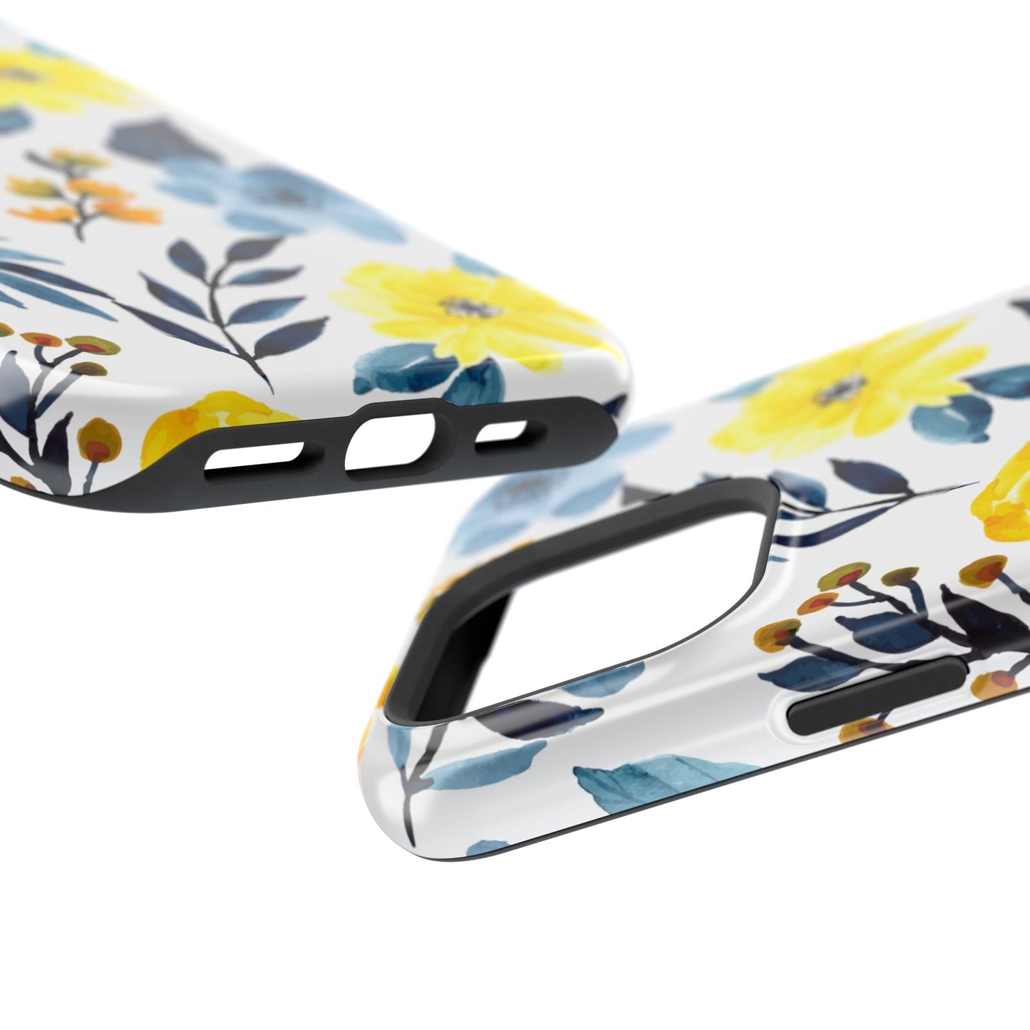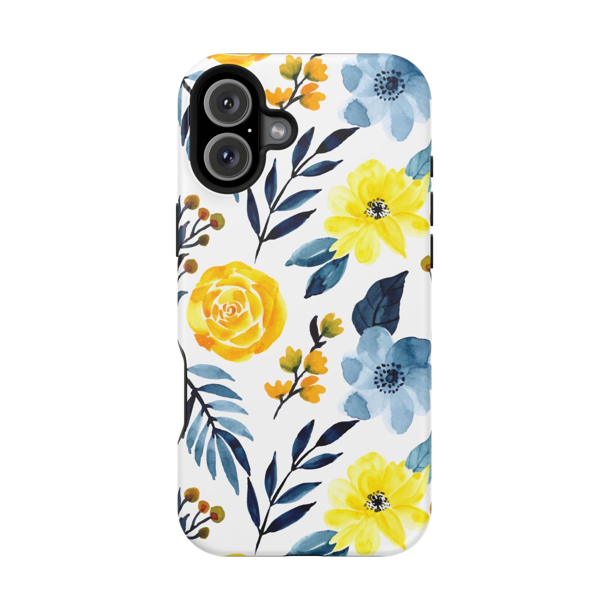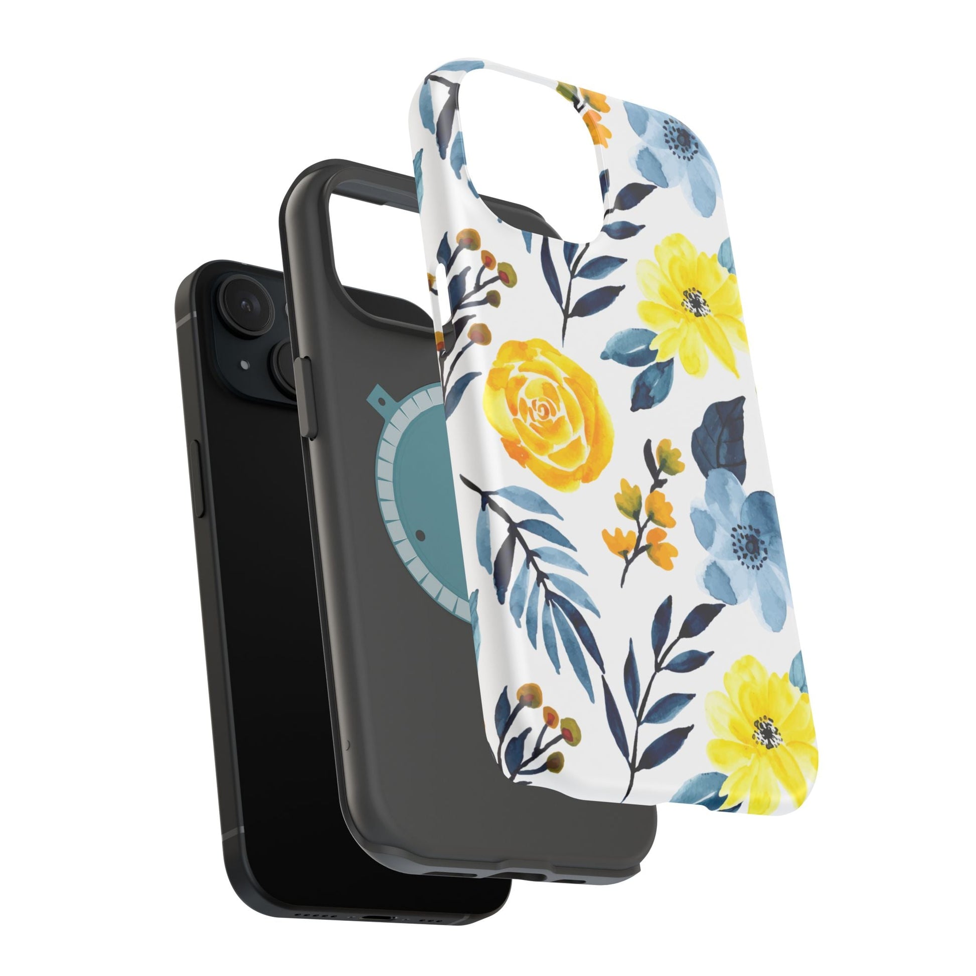 Golden Yellow & Sky Blue Floral – Watercolor Botanical MagSafe iPhone Case