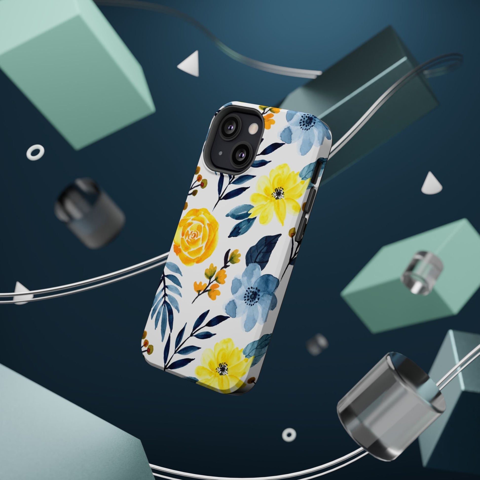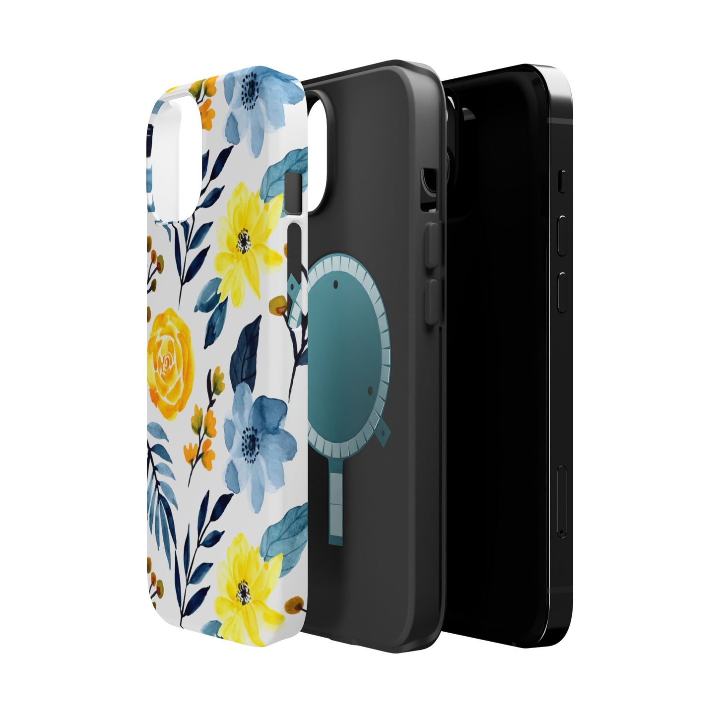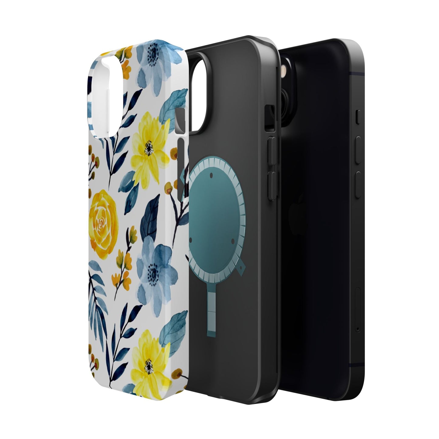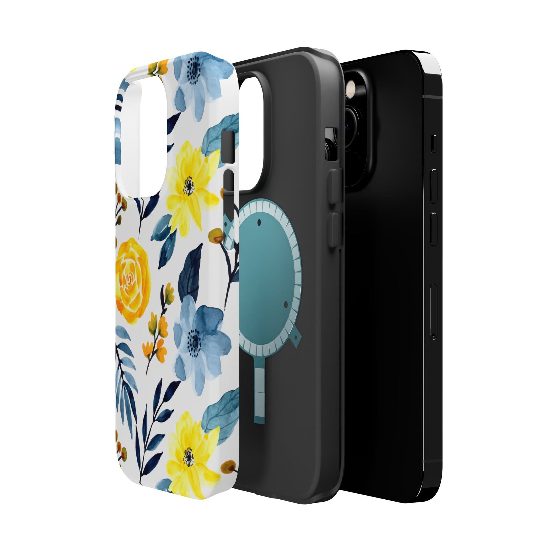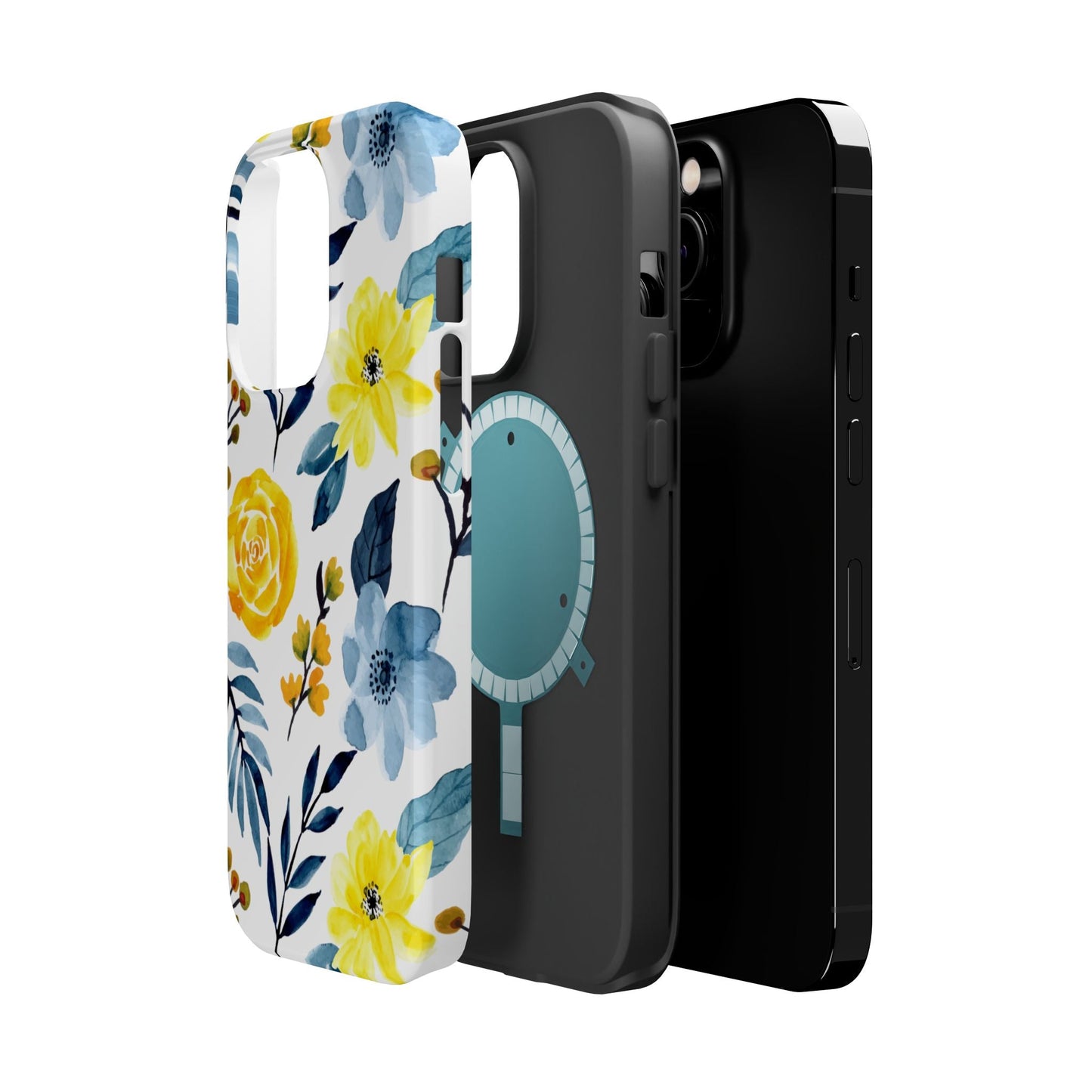 Golden Yellow & Sky Blue Floral – Watercolor Botanical MagSafe iPhone Case
