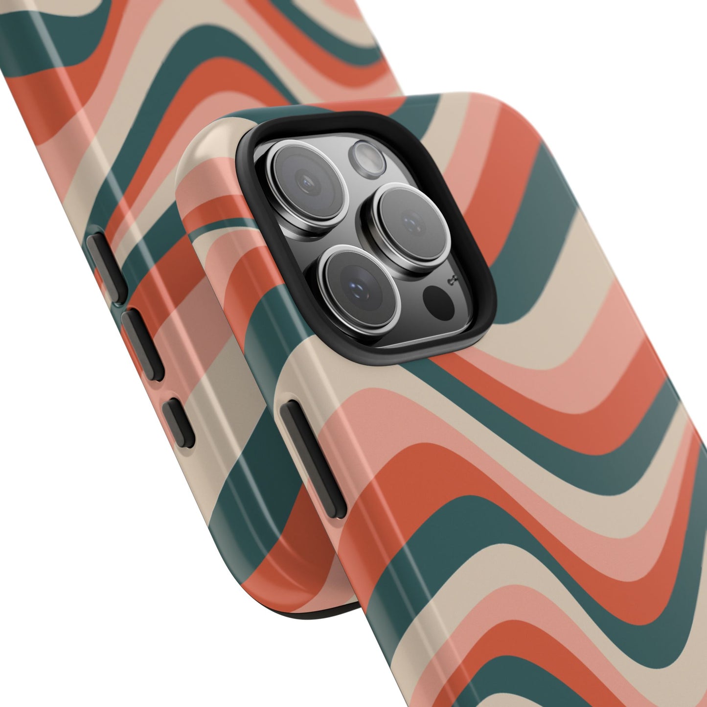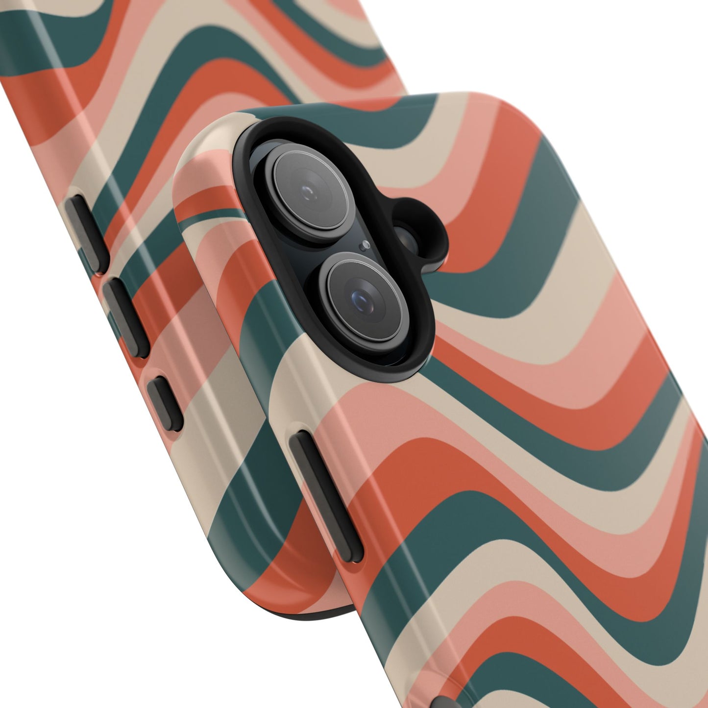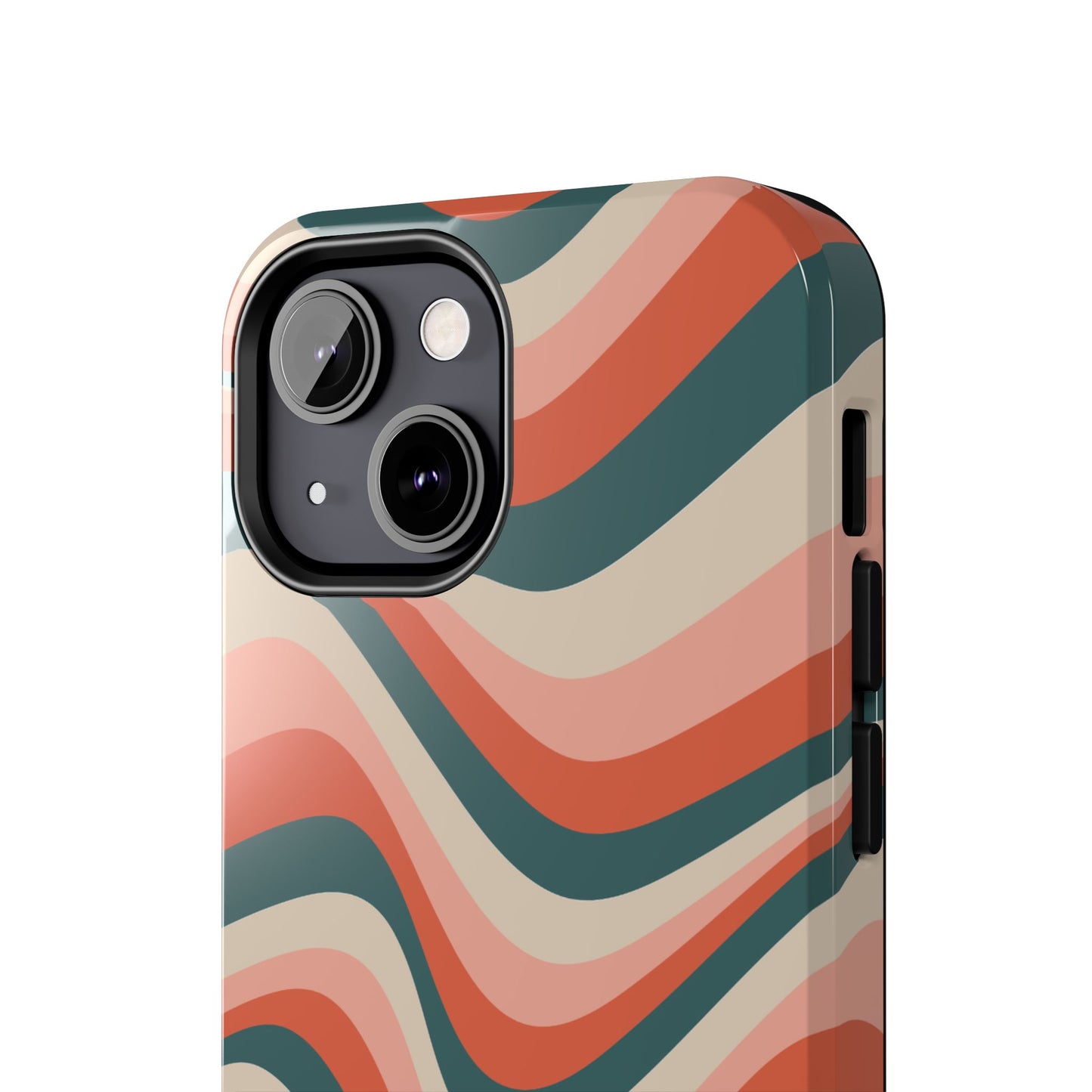 Groovy Waves iPhone Case – Retro 70s-Inspired Stripes in Coral, Cream, and Teal
