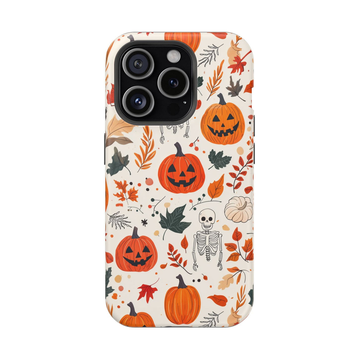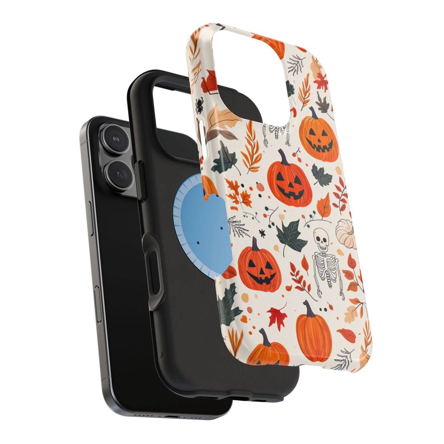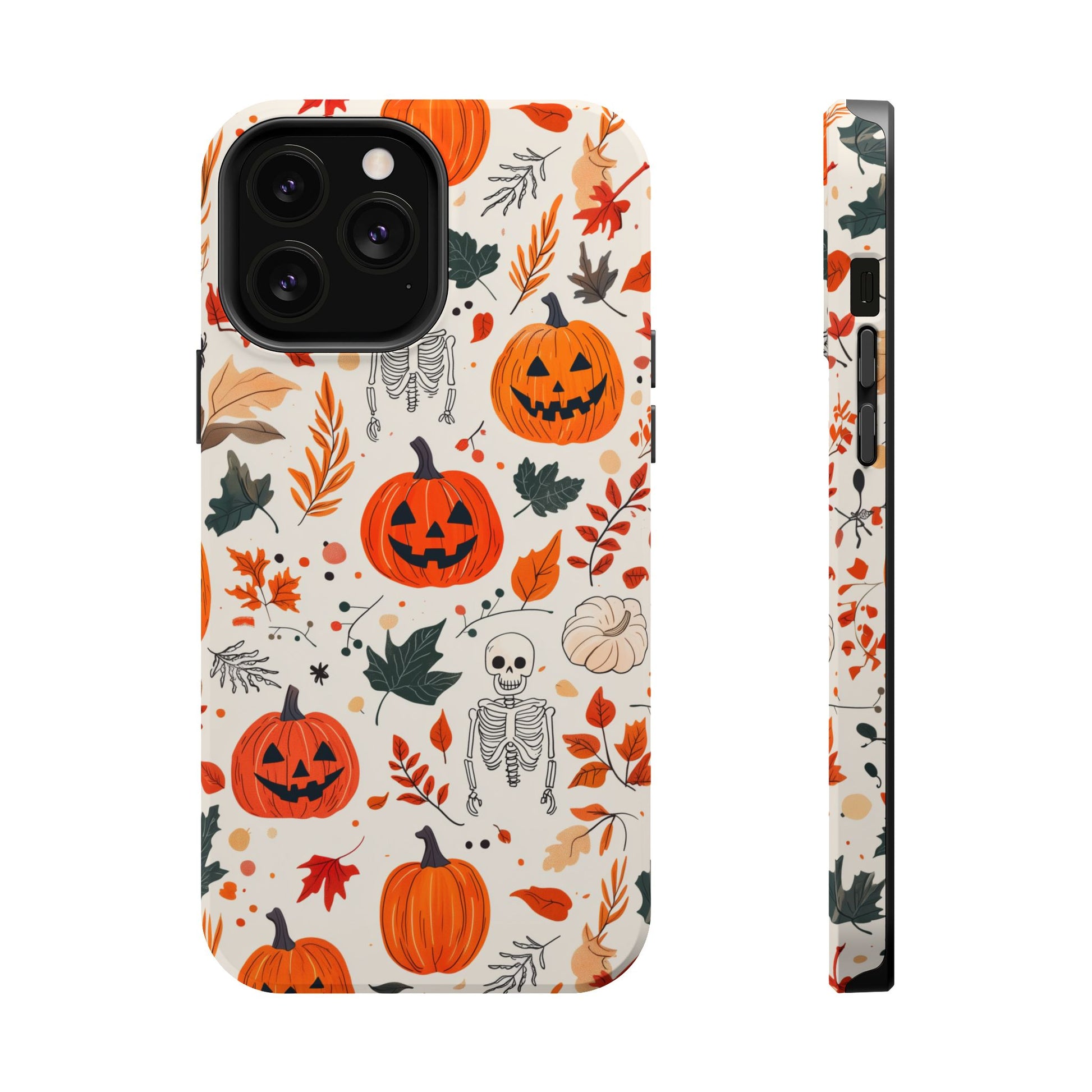 Halloween Pumpkin & Skeleton MagSafe iPhone Case – Spooky Autumn Design