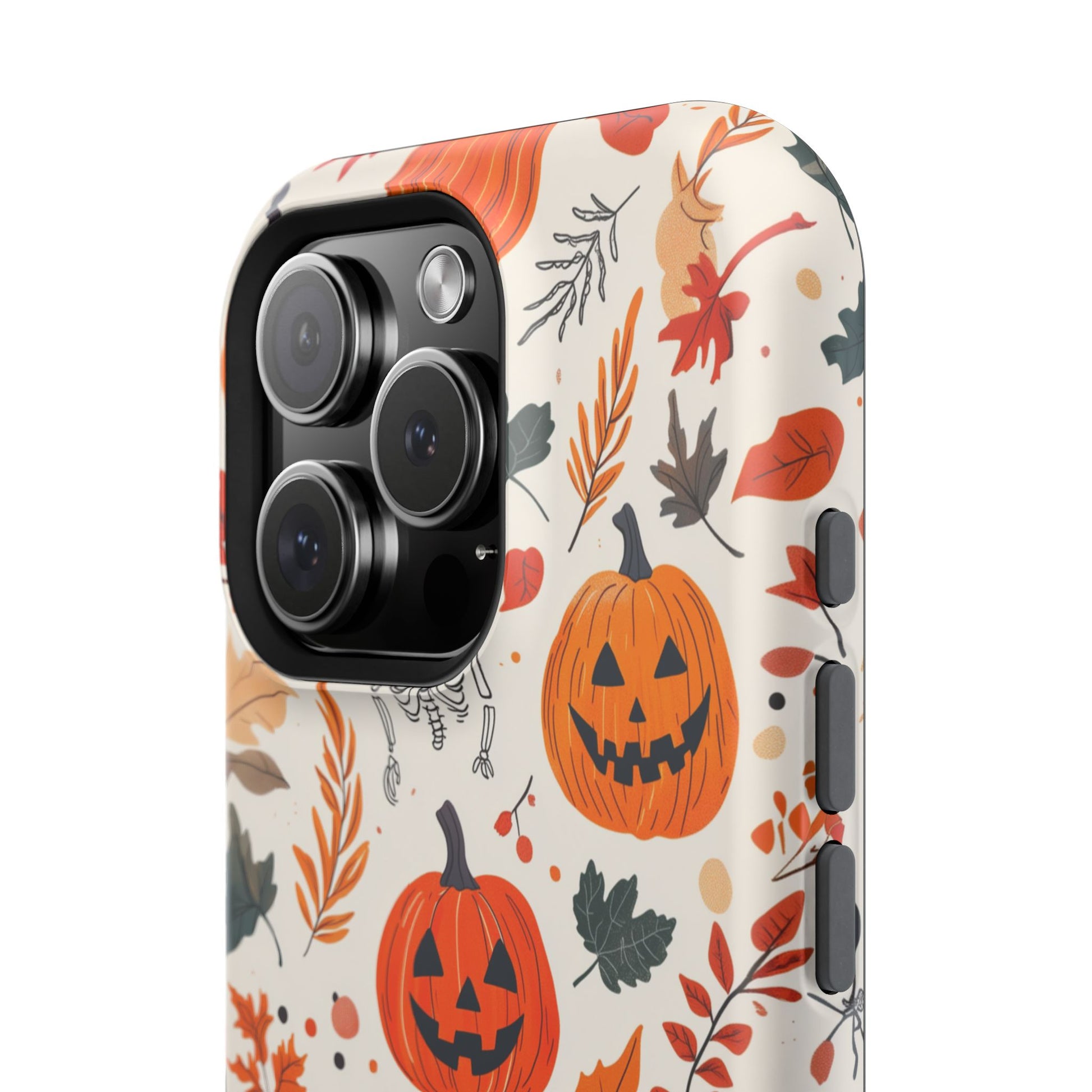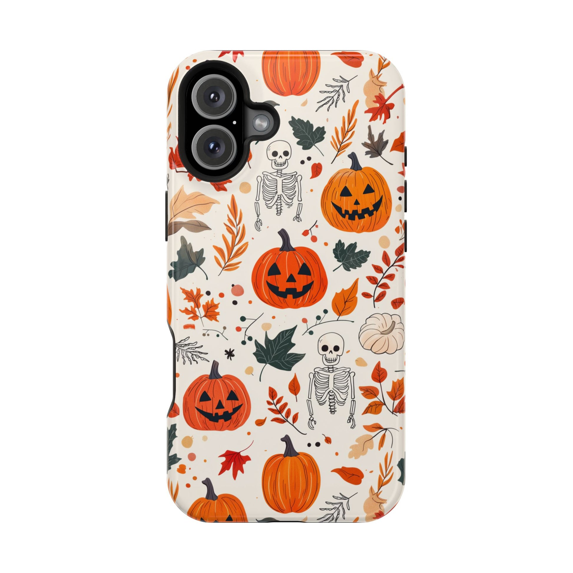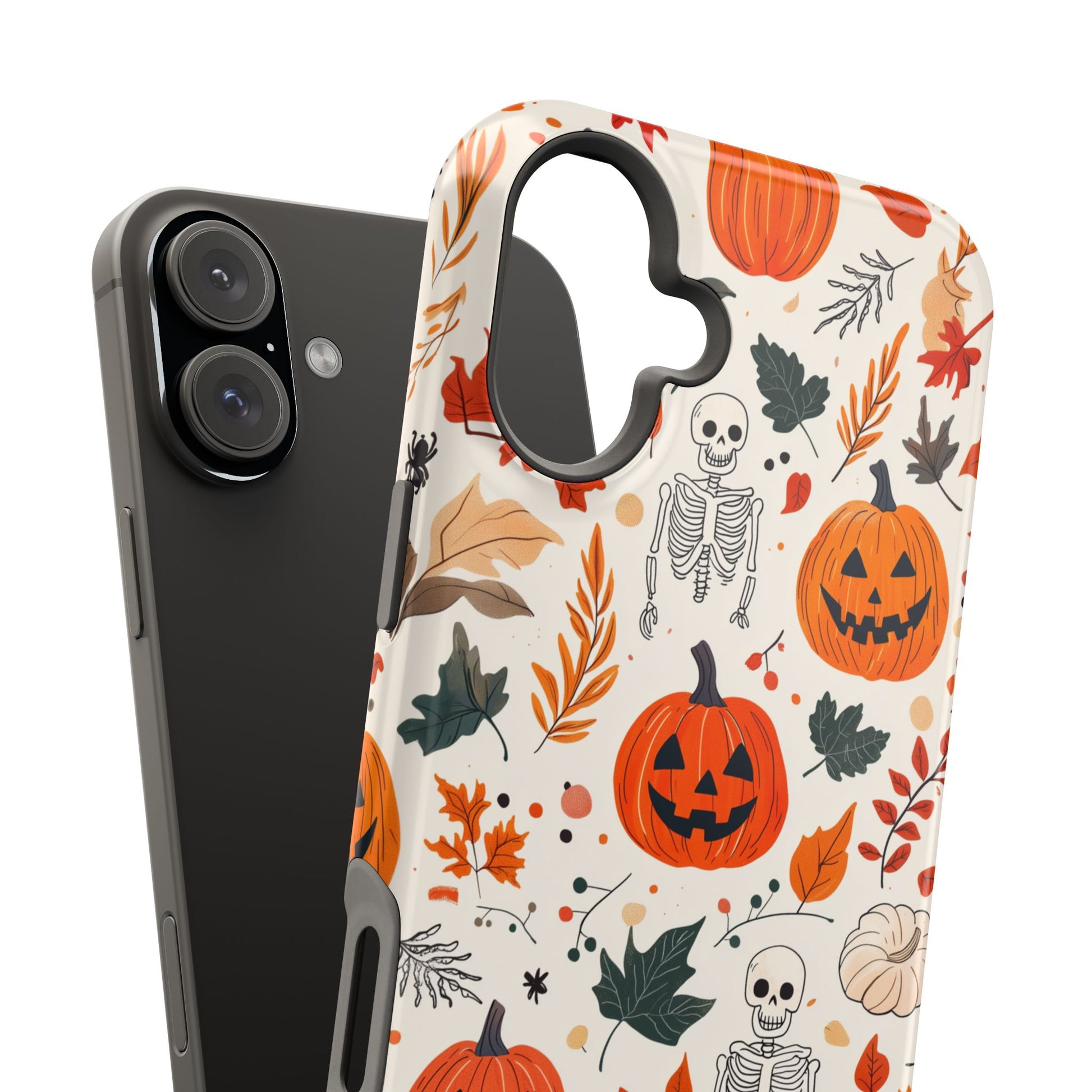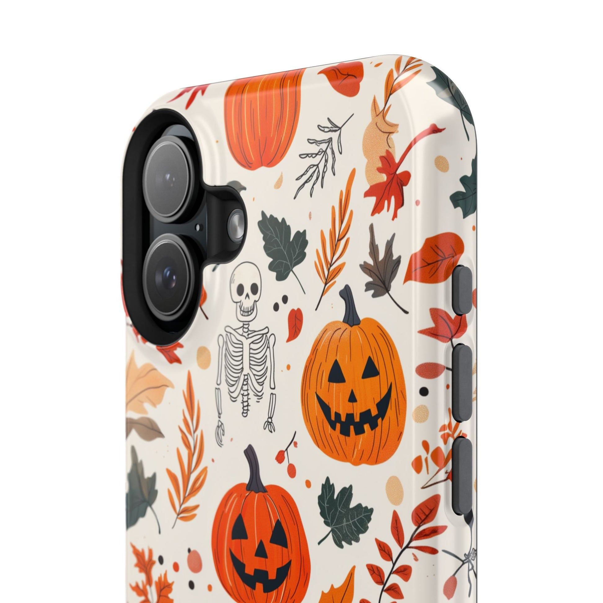 Halloween Pumpkin & Skeleton MagSafe iPhone Case – Spooky Autumn Design