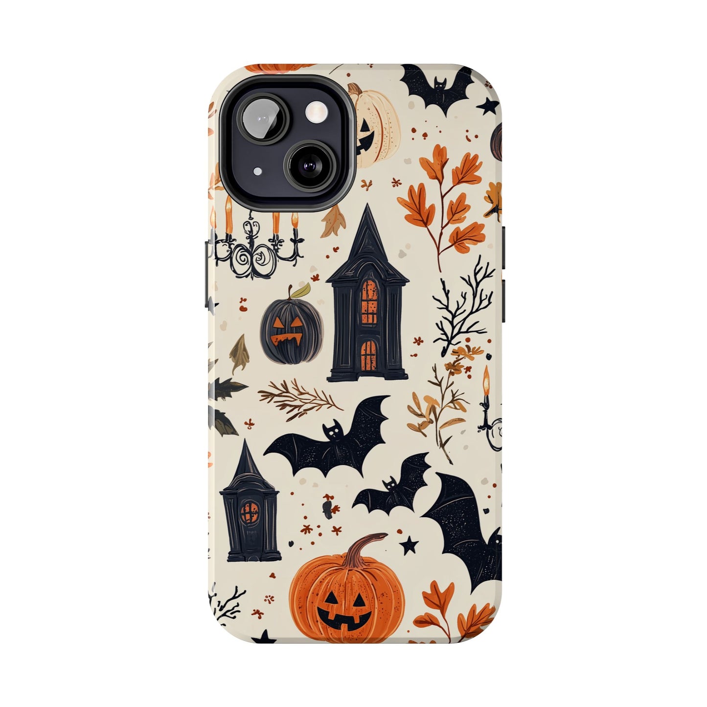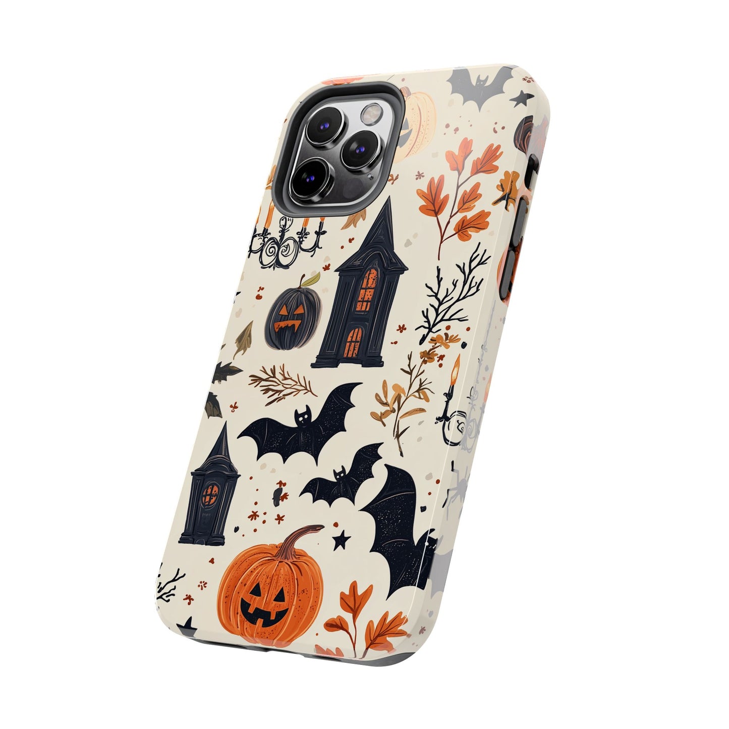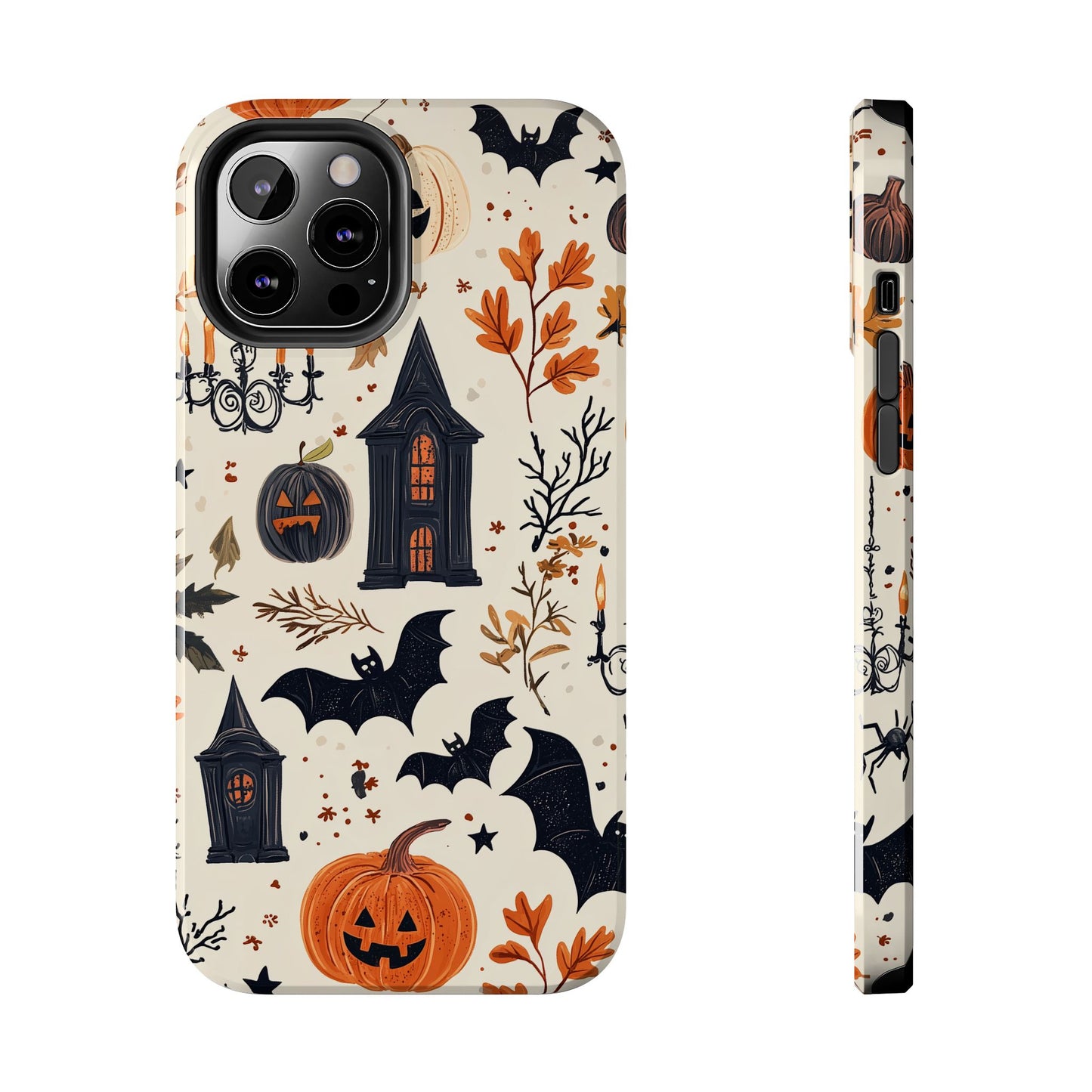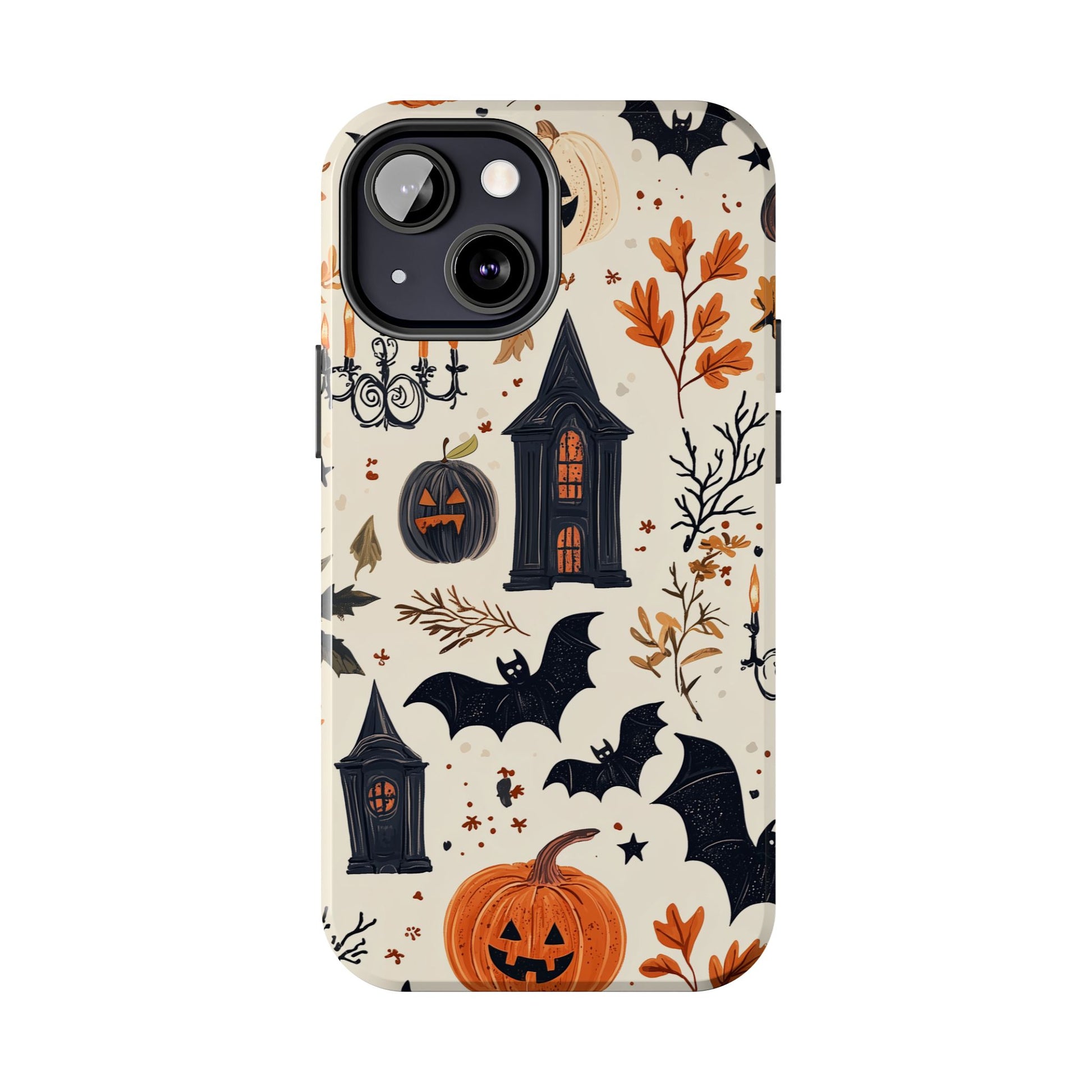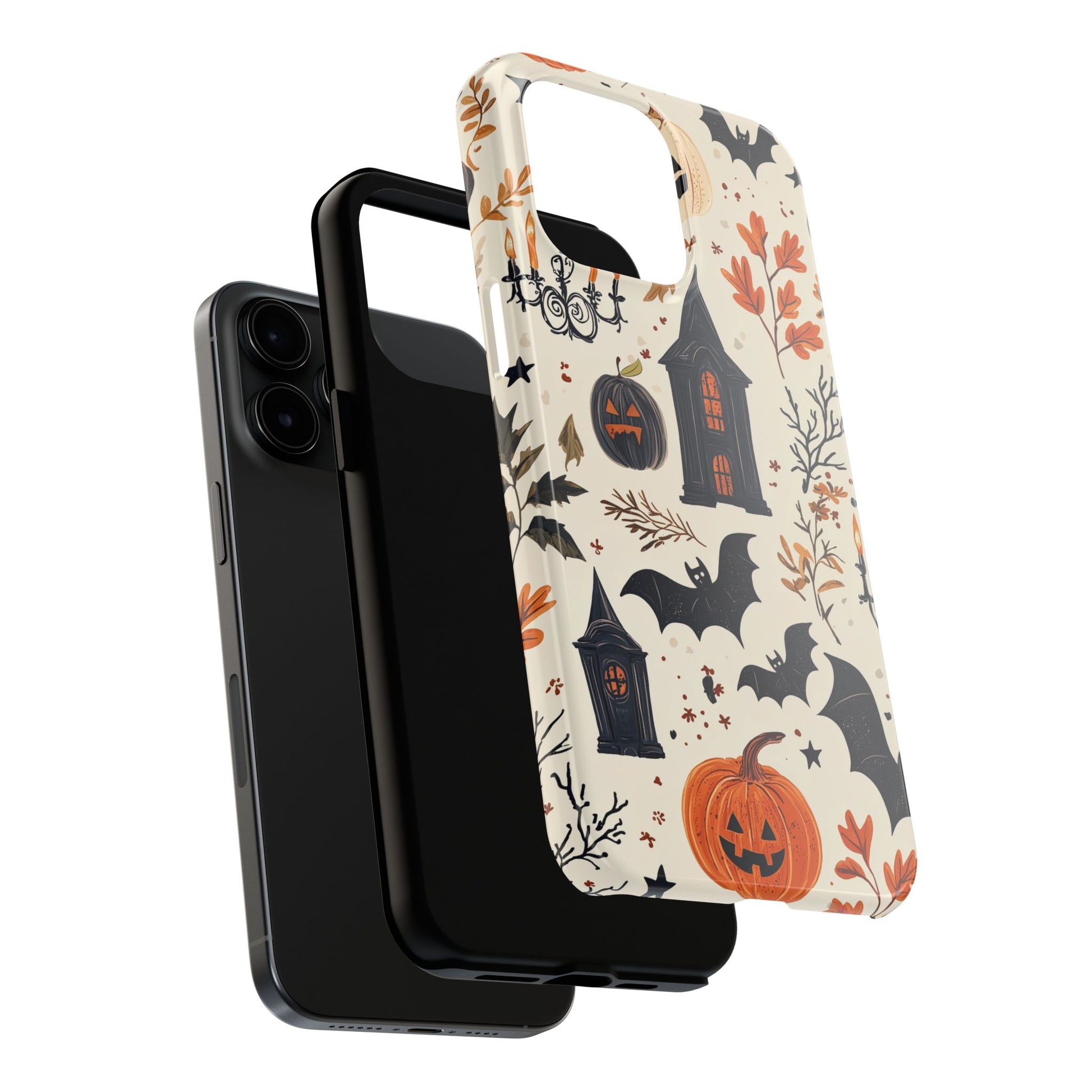 Haunted Halloween iPhone Case – Haunted House, Bats, and Pumpkins Design