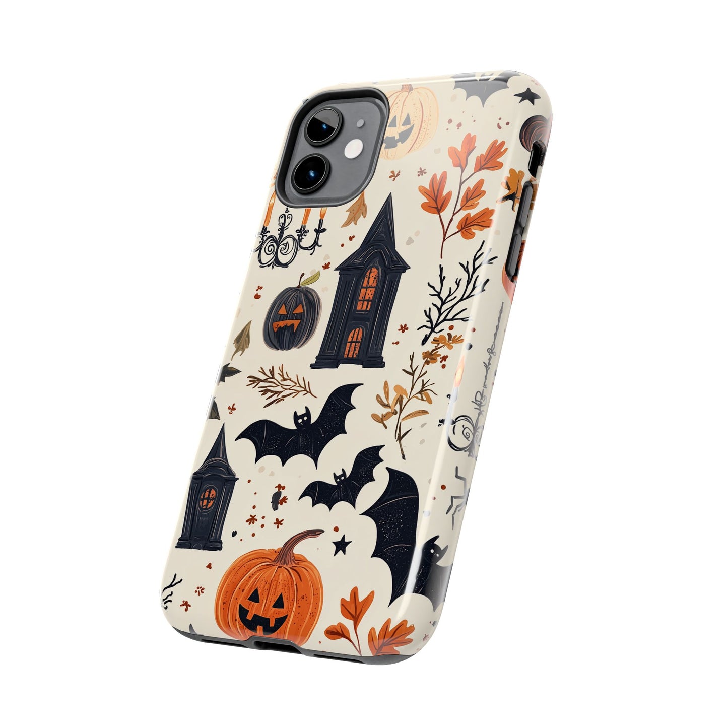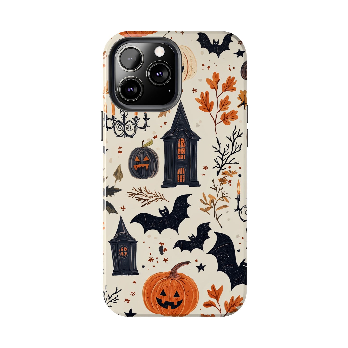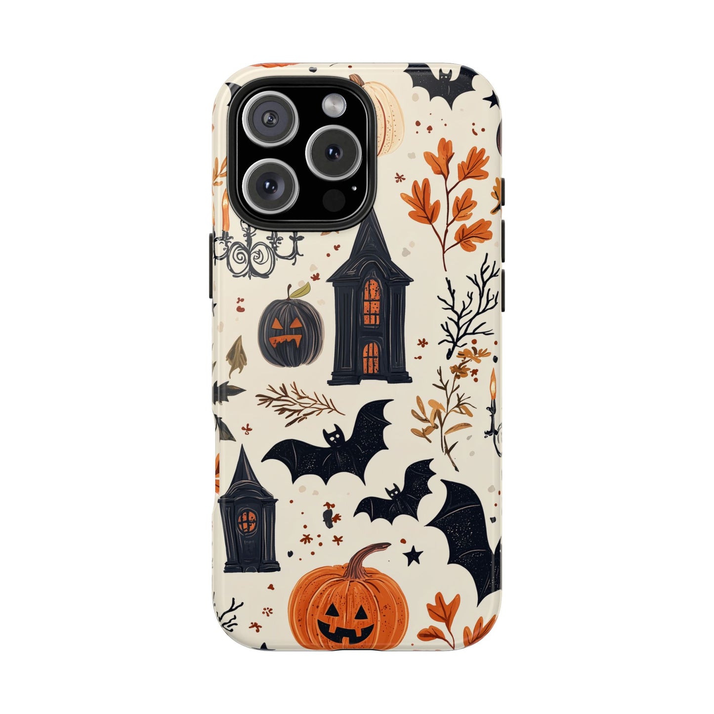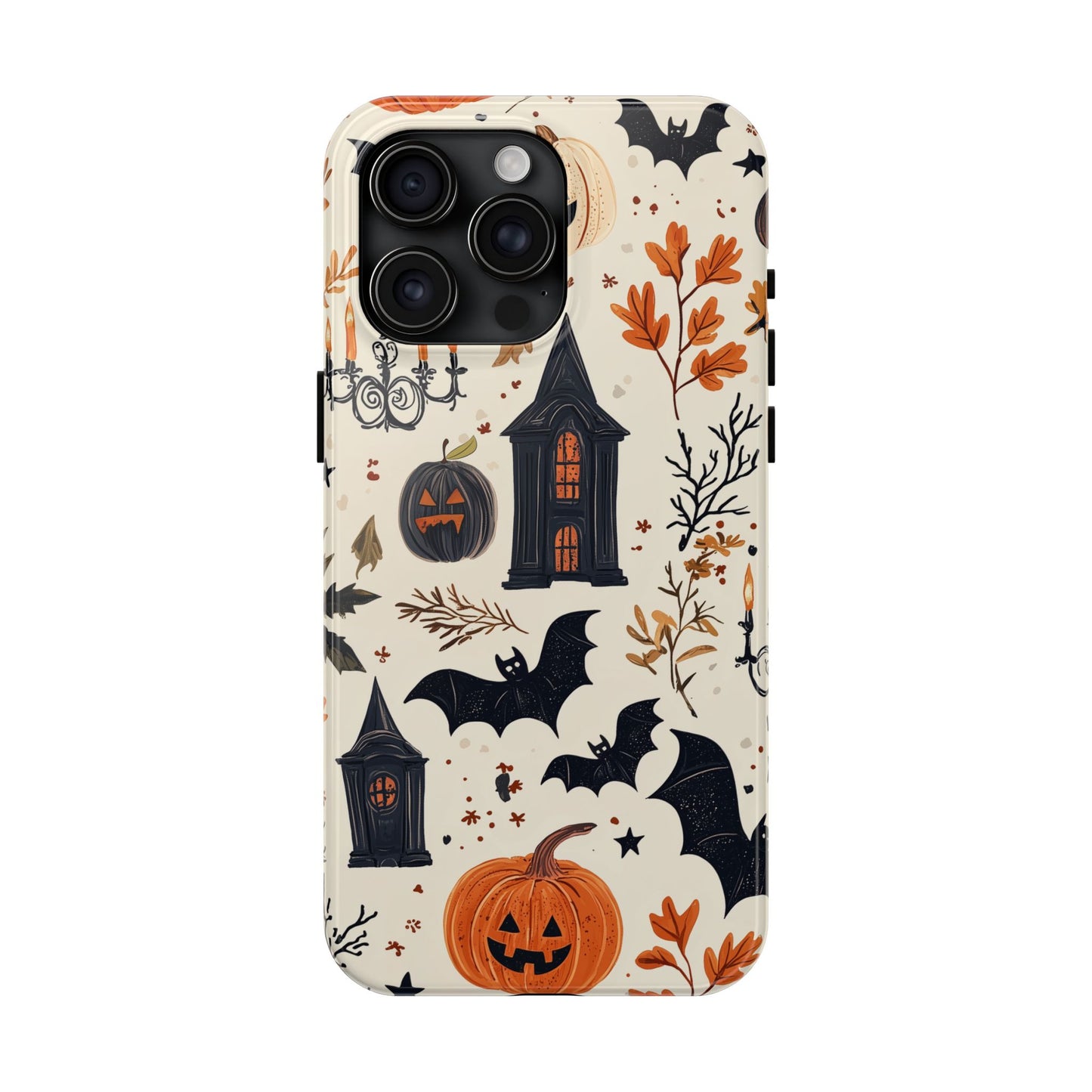 Haunted Halloween iPhone Case – Haunted House, Bats, and Pumpkins Design