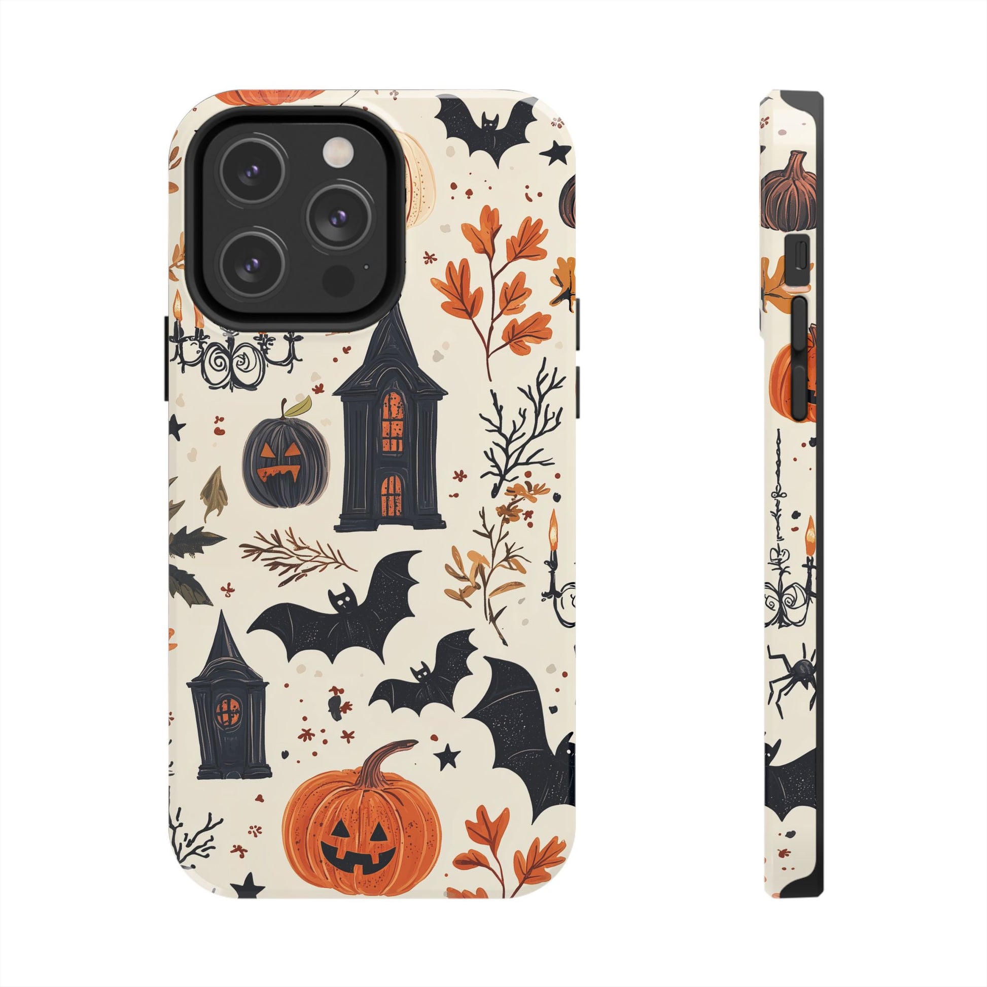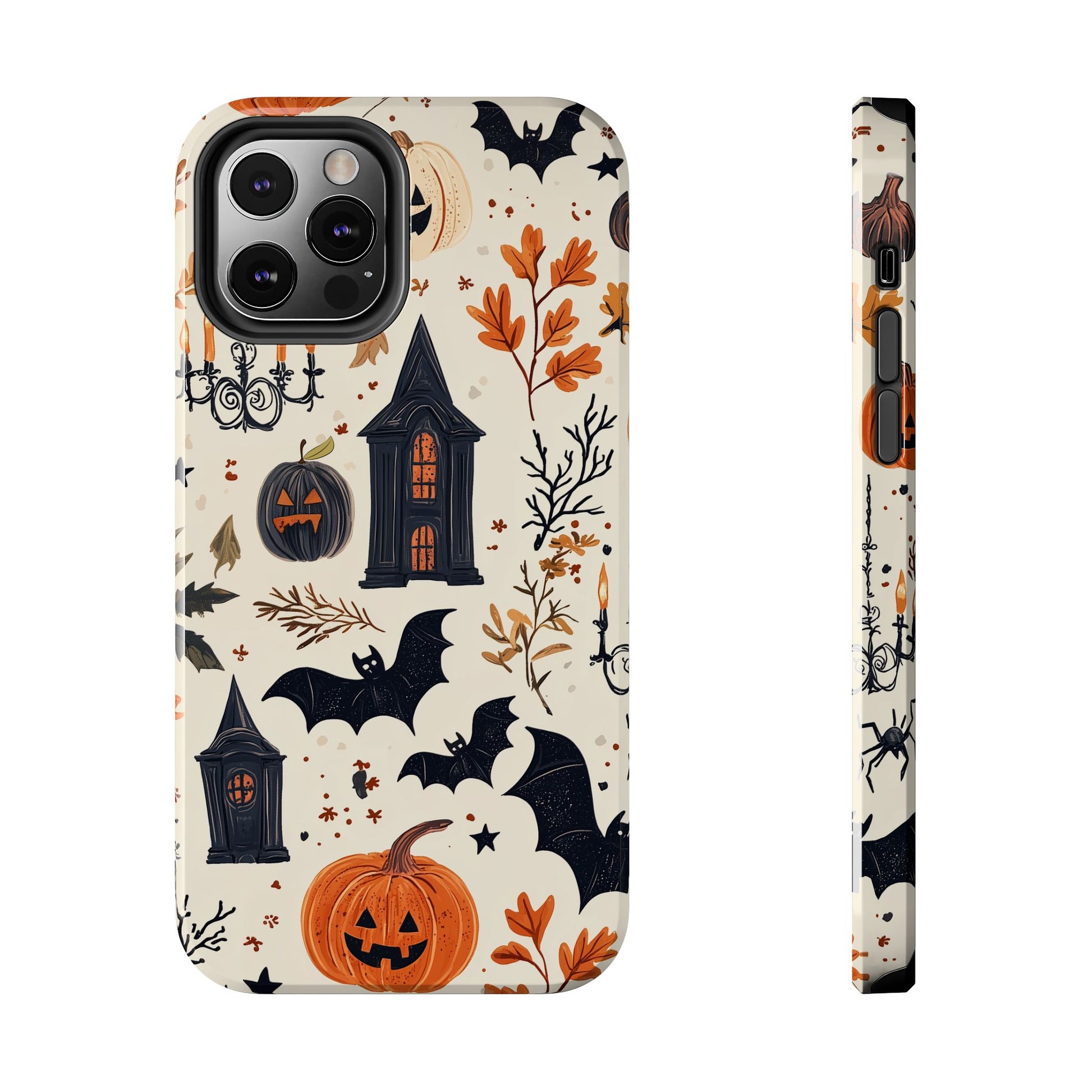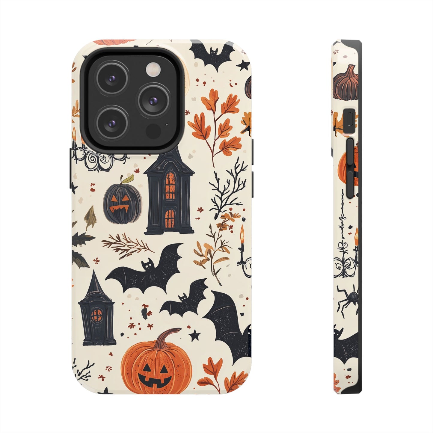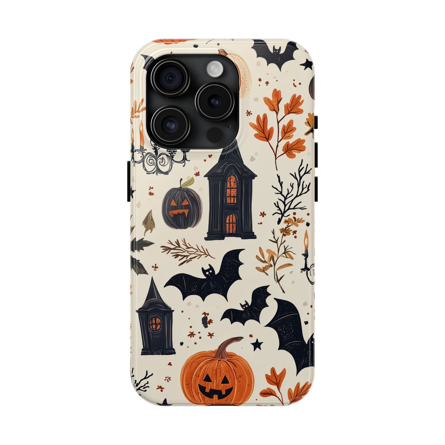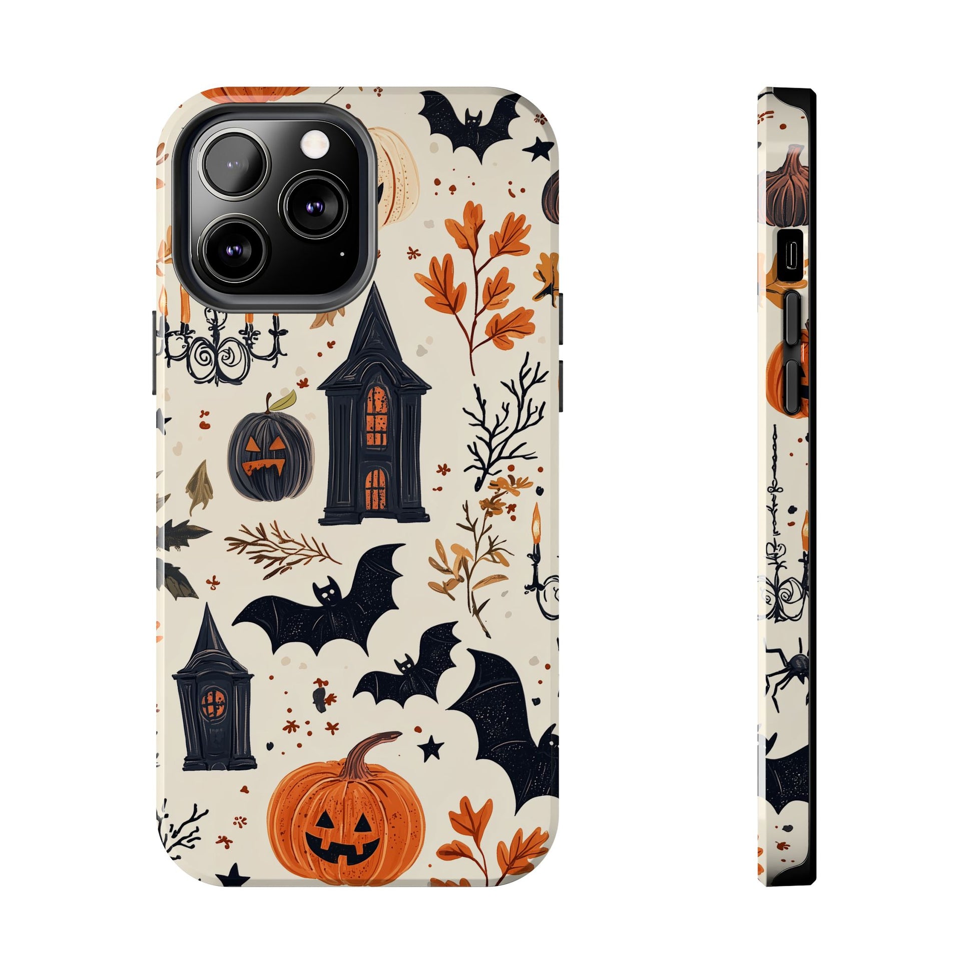 Haunted Halloween iPhone Case – Haunted House, Bats, and Pumpkins Design