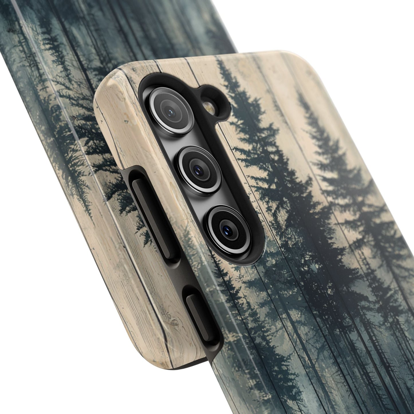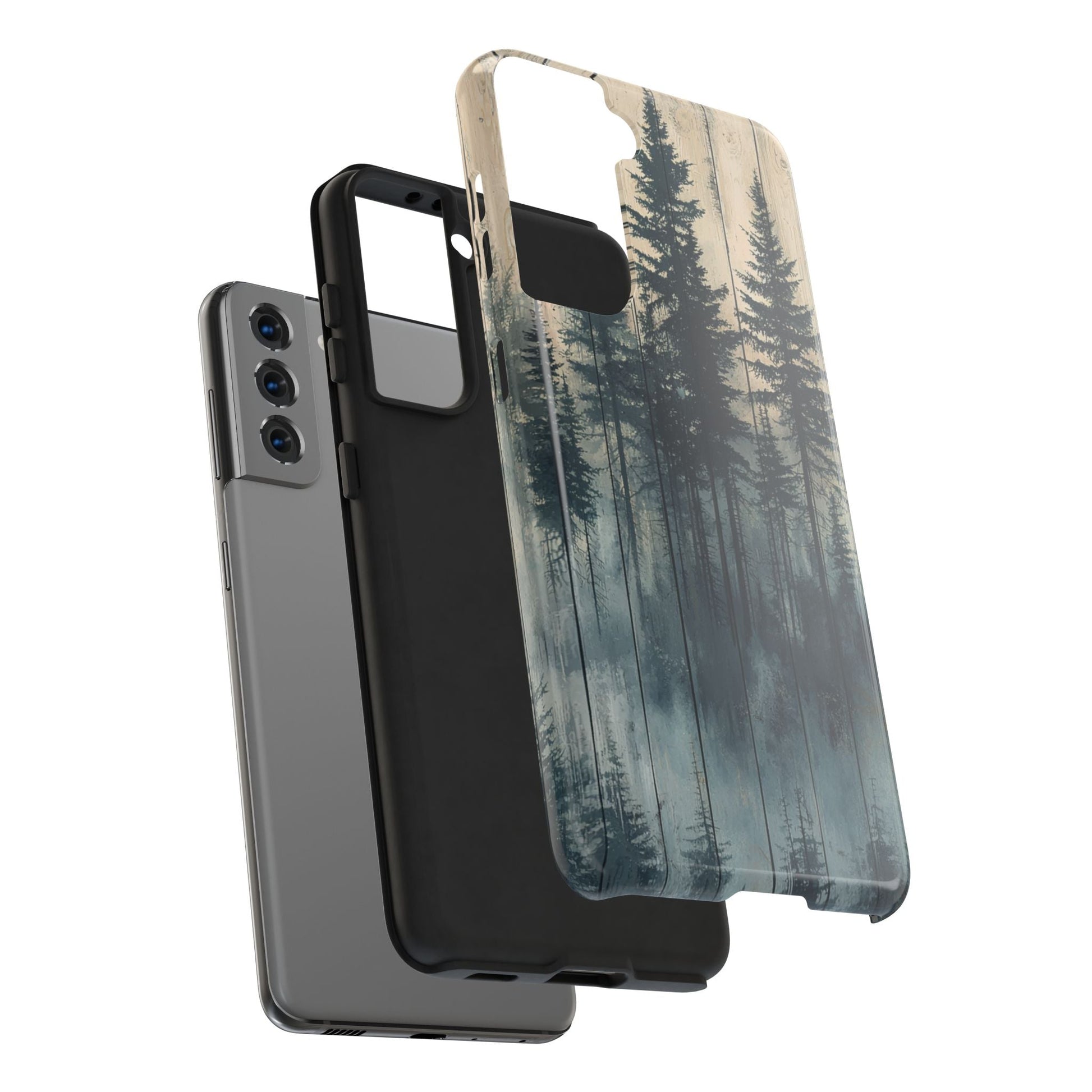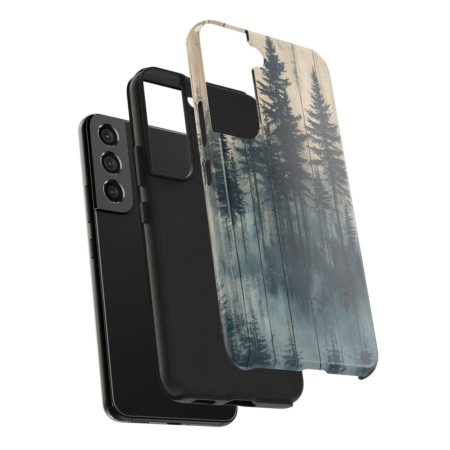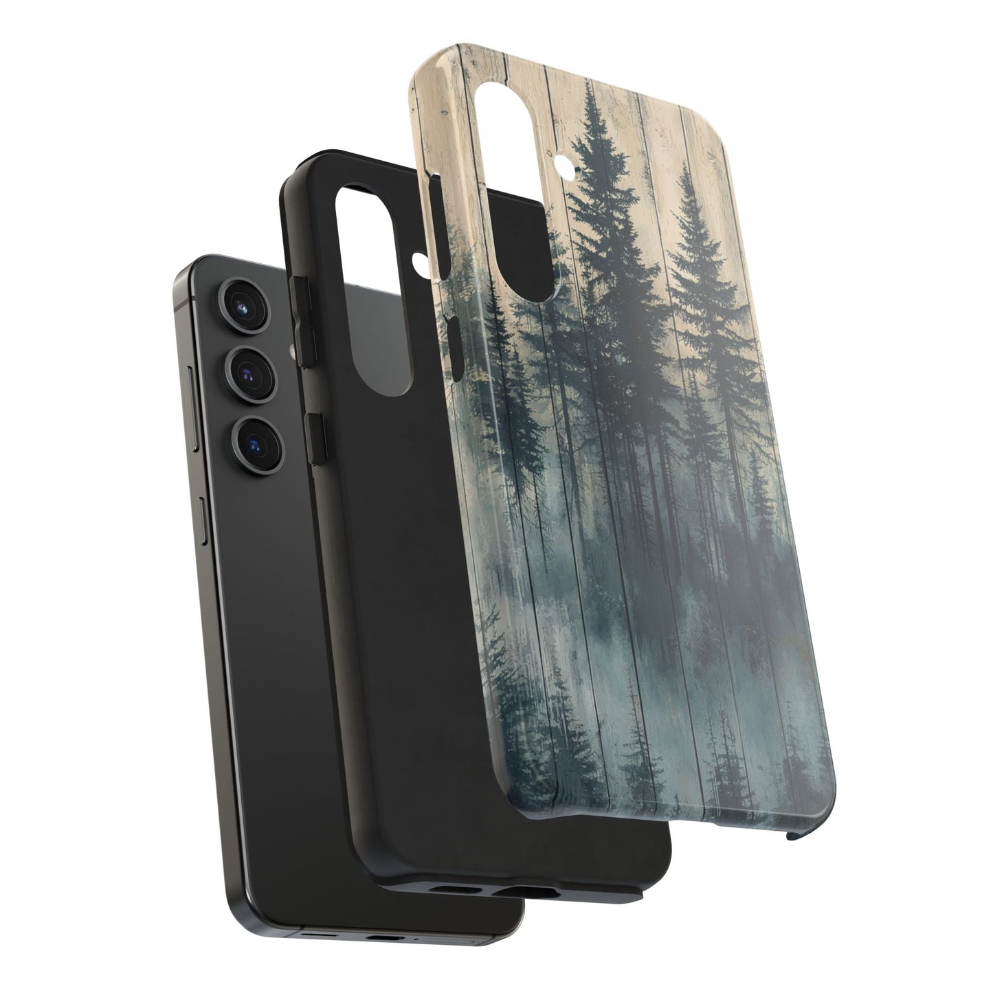 Immerse your Samsung Galaxy in the calm of nature with our Misty Forest Case! This case showcases a peaceful pine forest scene enveloped in mist, set against a vintage, wood-textured backdrop. Perfect for nature lovers and those seeking a rustic yet stylish phone accessory.