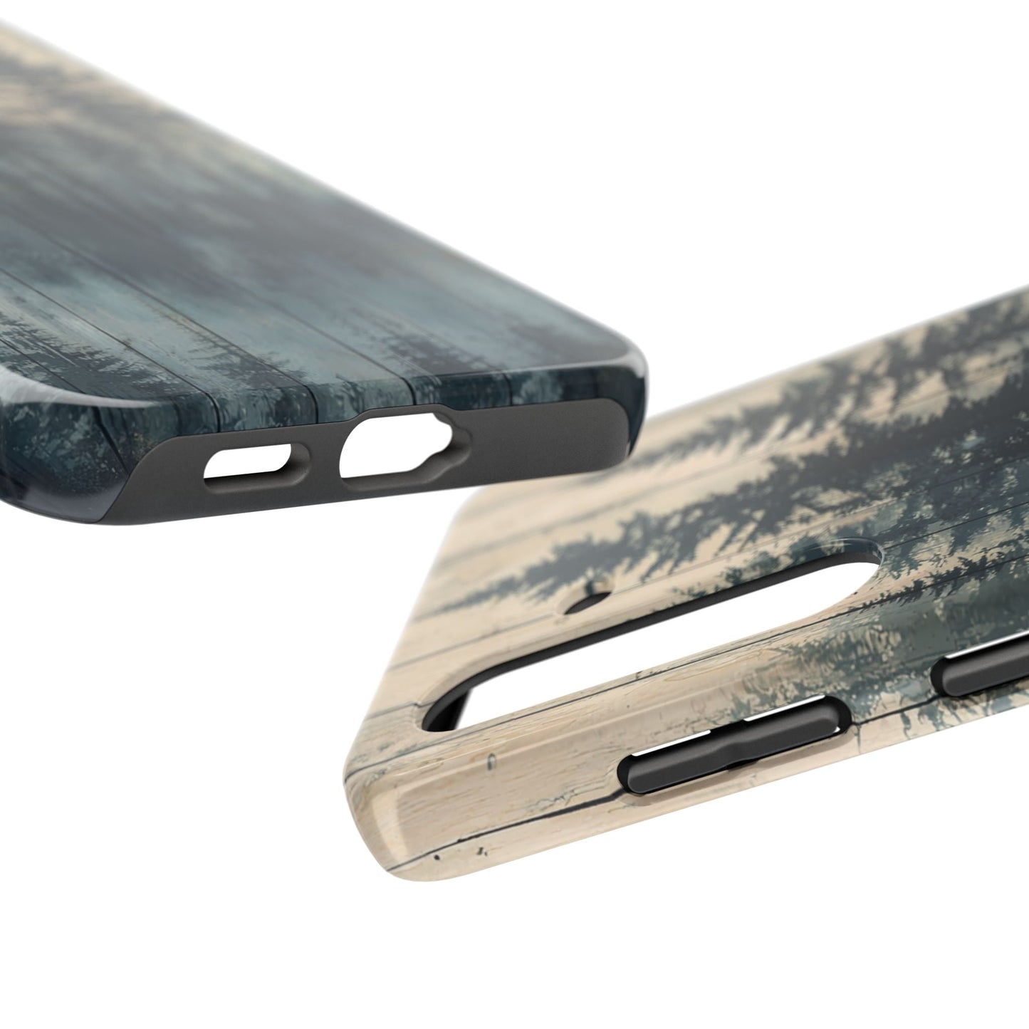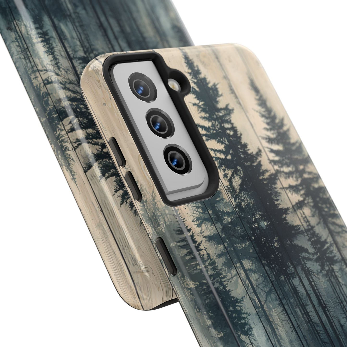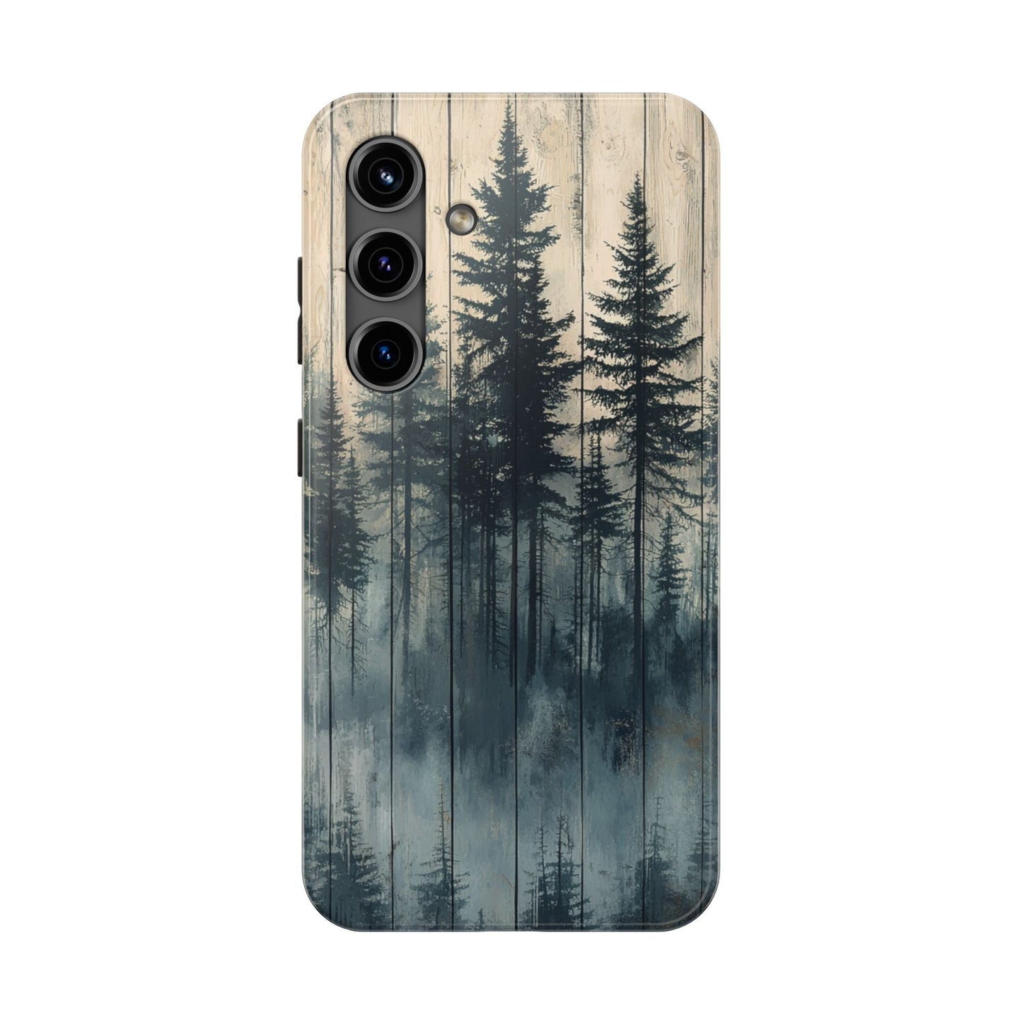 Immerse your Samsung Galaxy in the calm of nature with our Misty Forest Case! This case showcases a peaceful pine forest scene enveloped in mist, set against a vintage, wood-textured backdrop. Perfect for nature lovers and those seeking a rustic yet stylish phone accessory.
