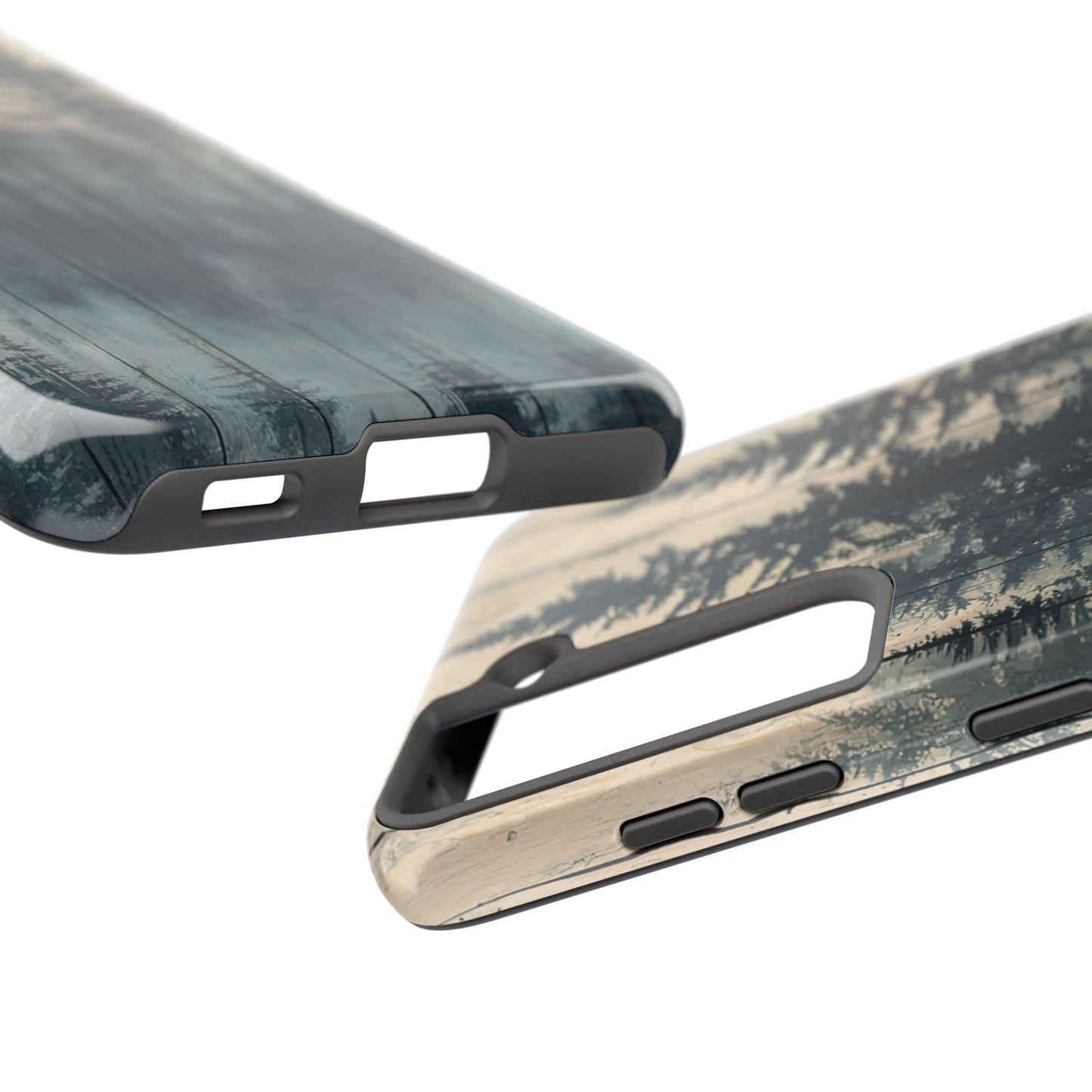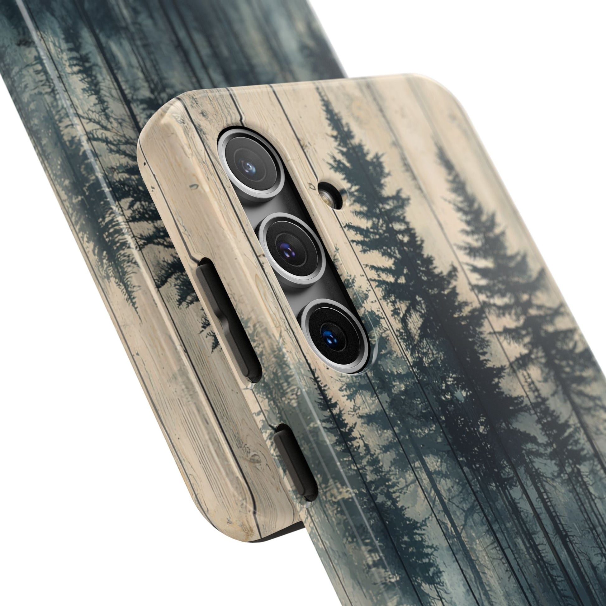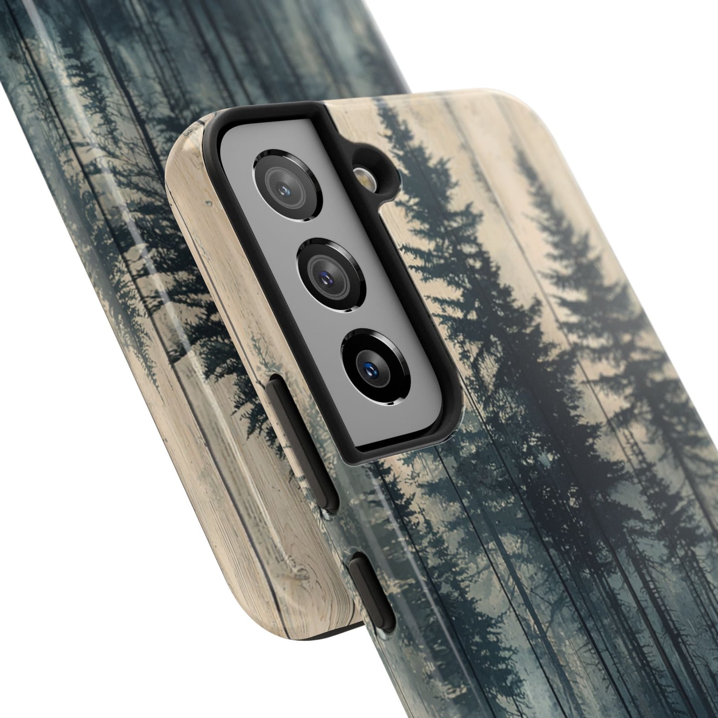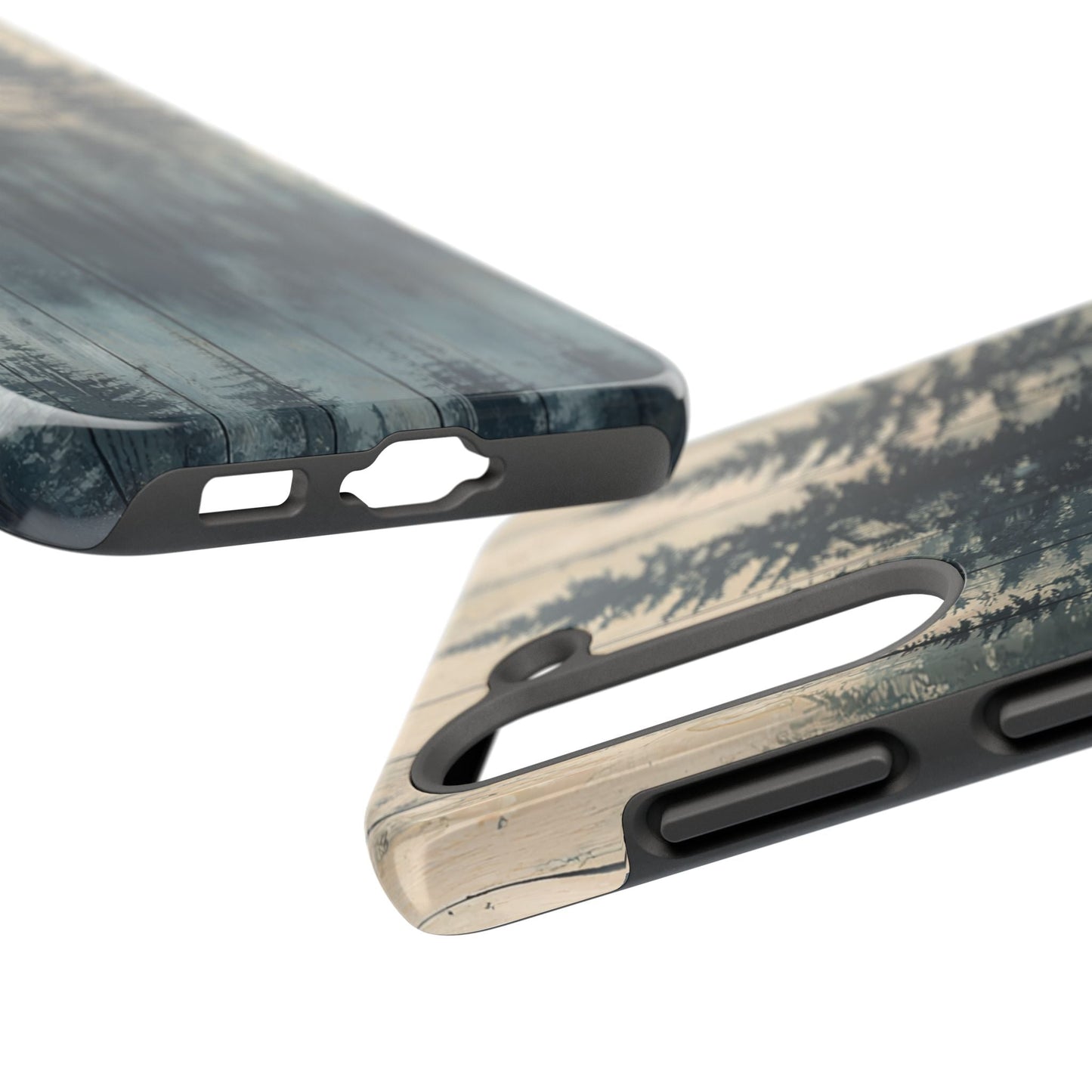 Immerse your Samsung Galaxy in the calm of nature with our Misty Forest Case! This case showcases a peaceful pine forest scene enveloped in mist, set against a vintage, wood-textured backdrop. Perfect for nature lovers and those seeking a rustic yet stylish phone accessory.