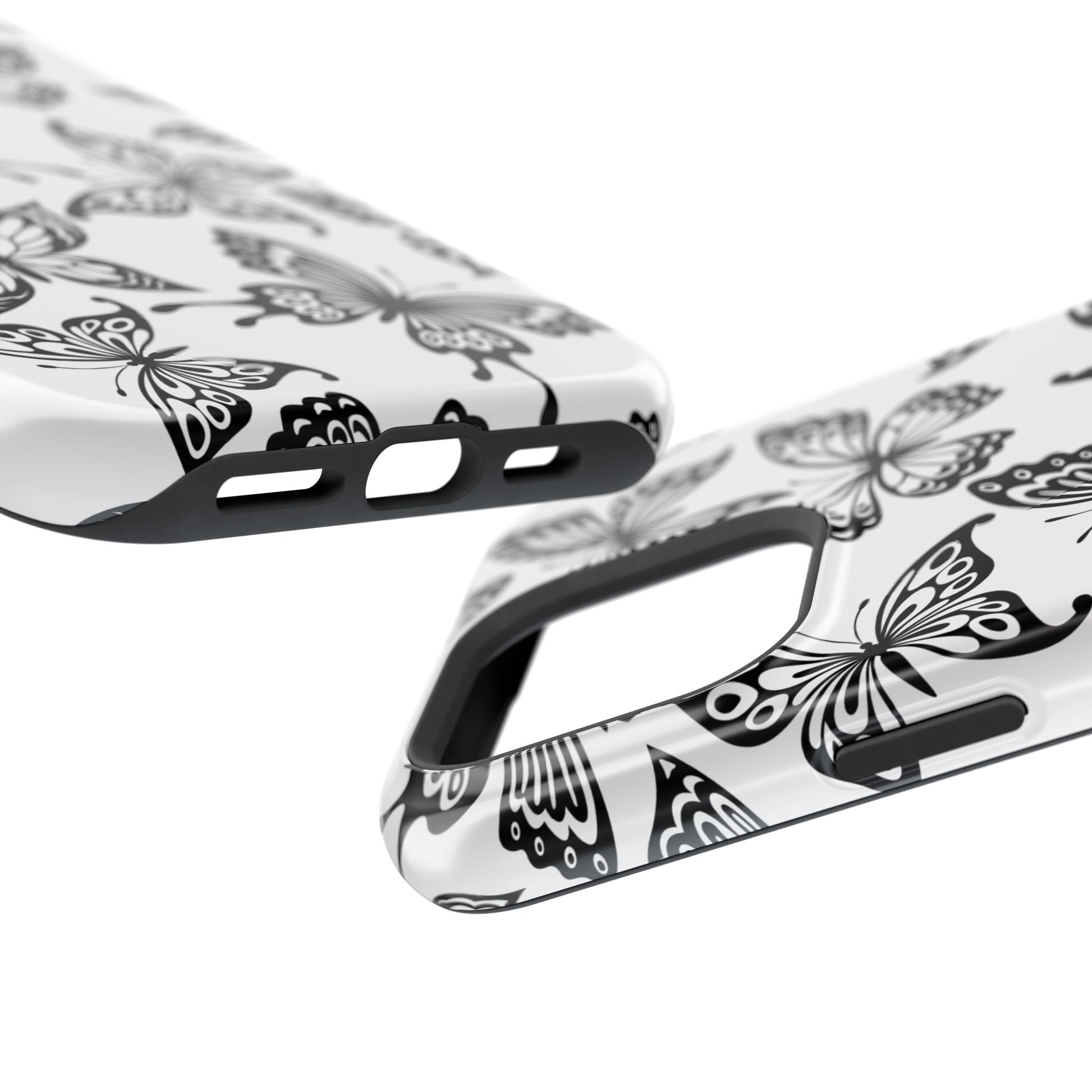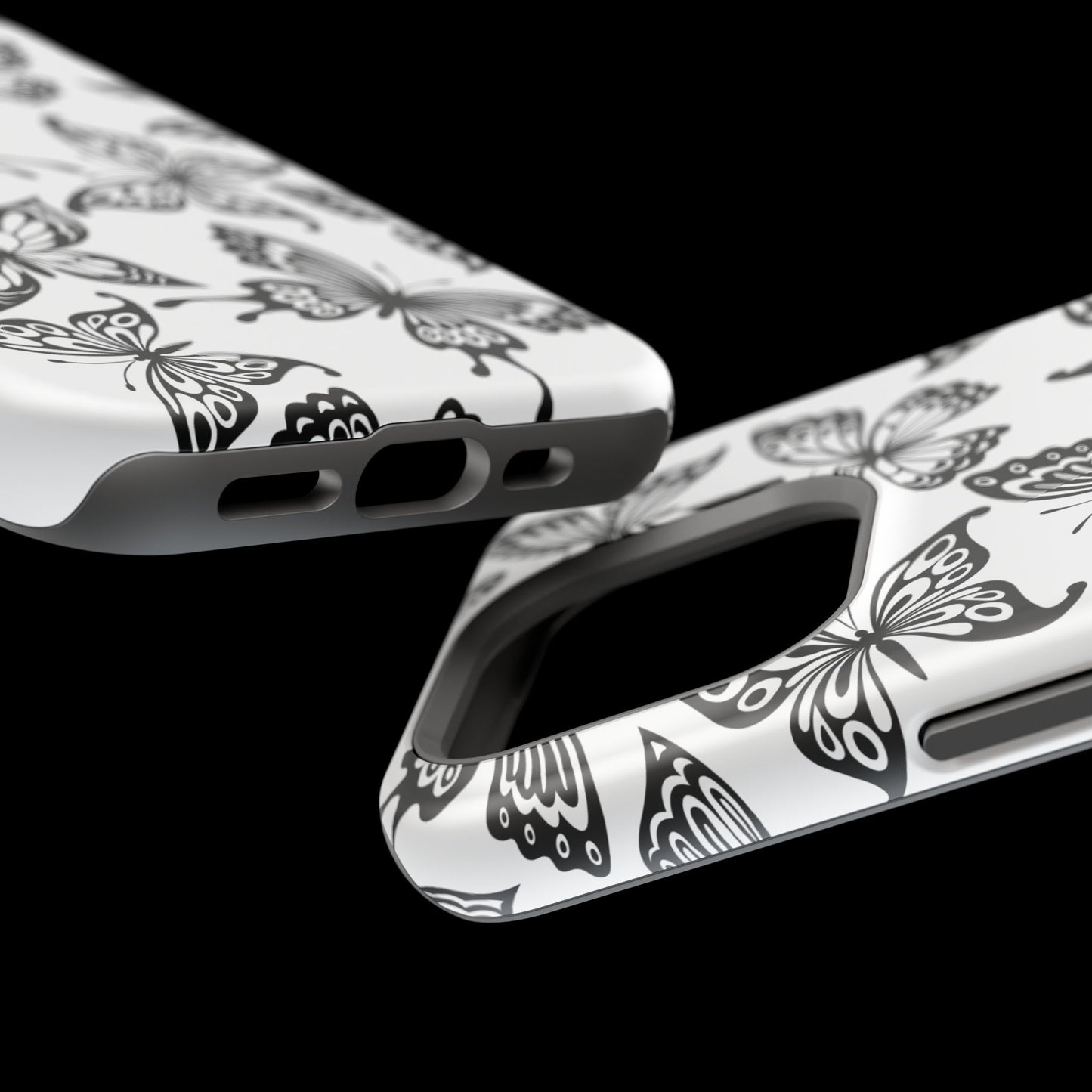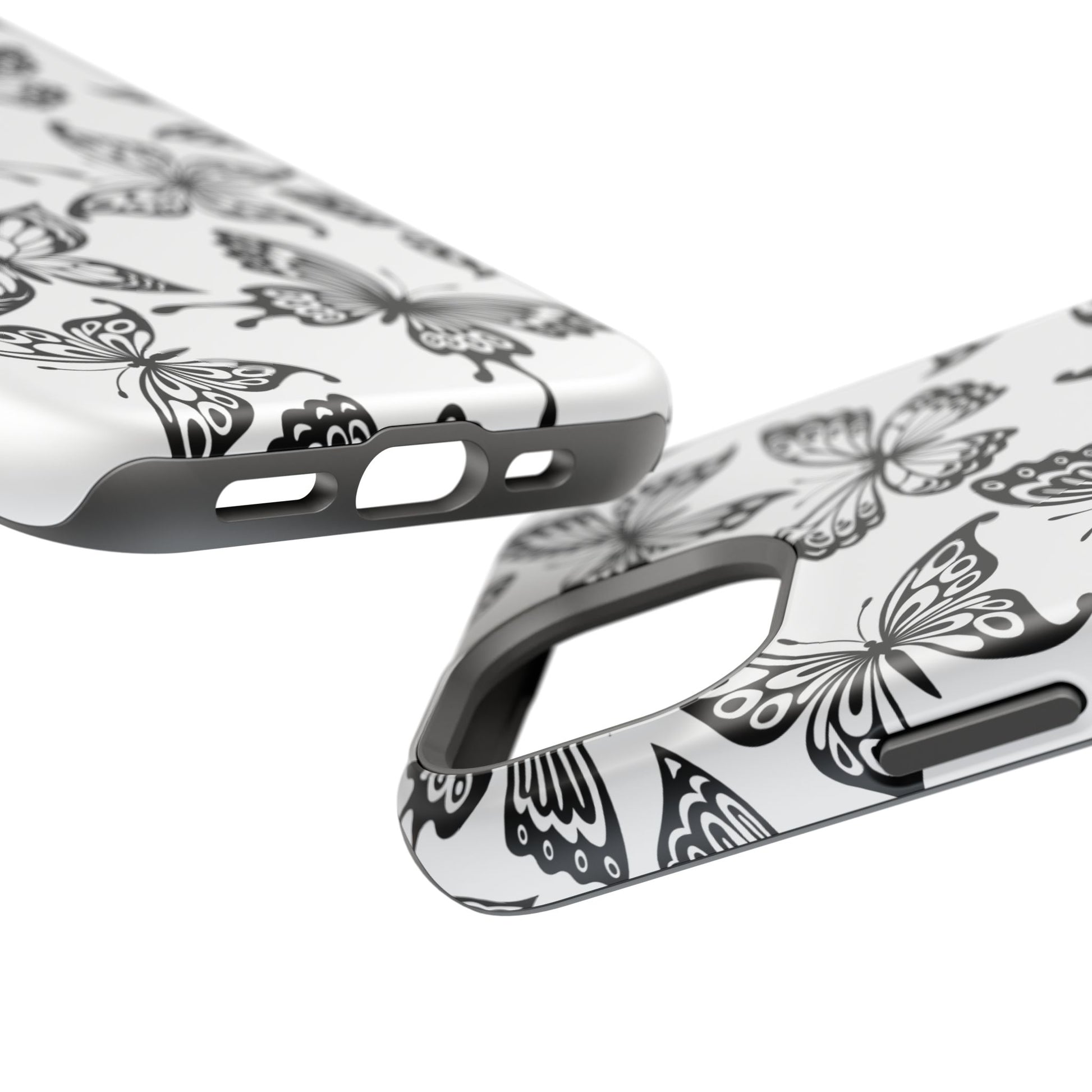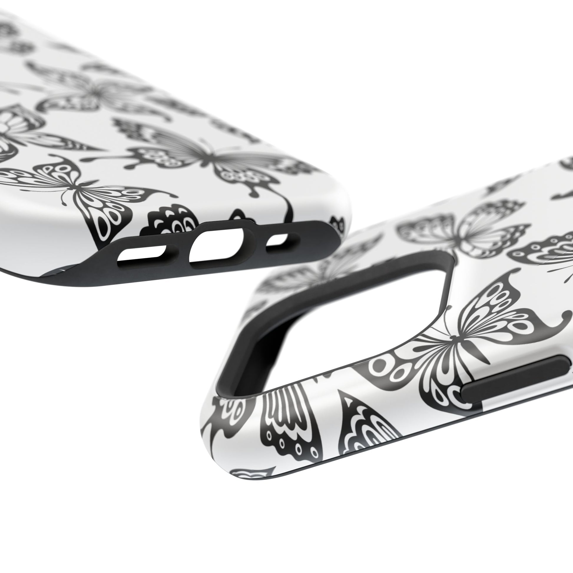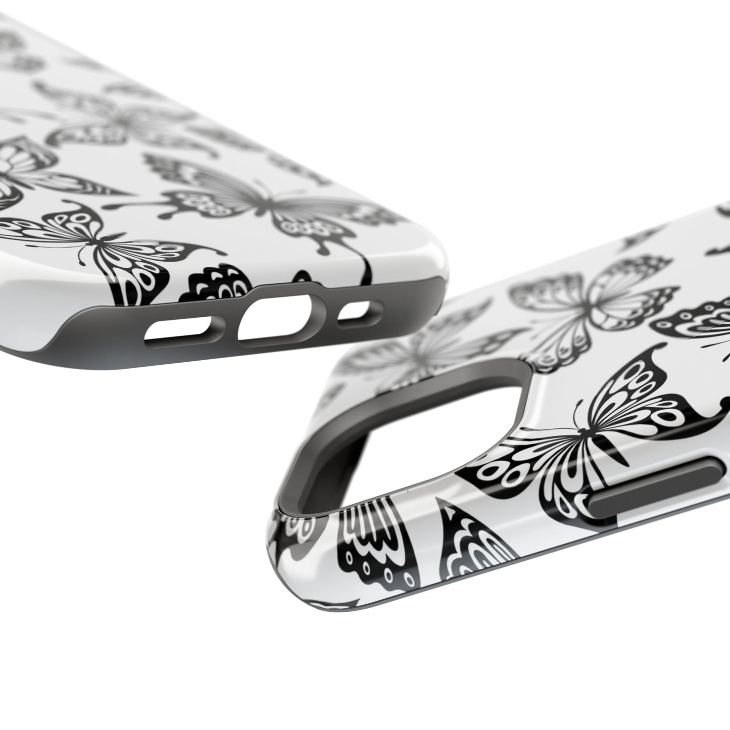 Monochrome Butterfly Pattern Tough MagSafe Case – Dual-Layer Protection with Matte Finish