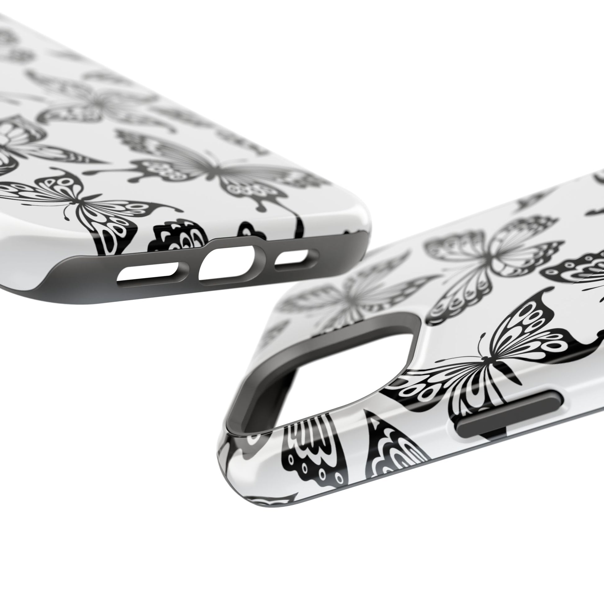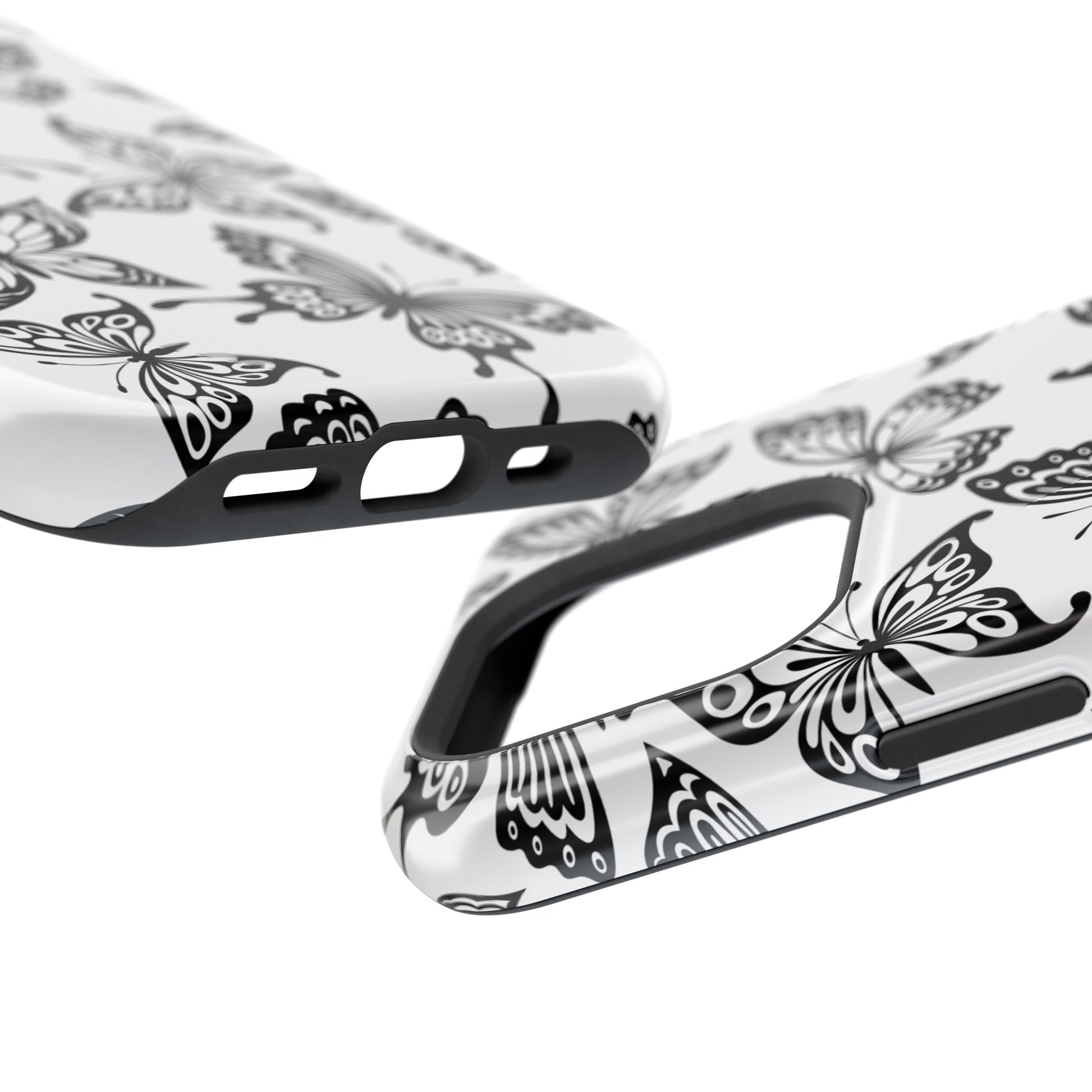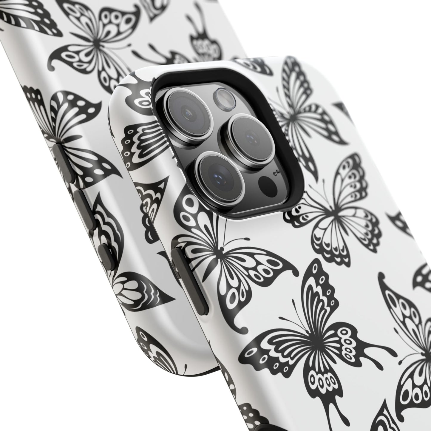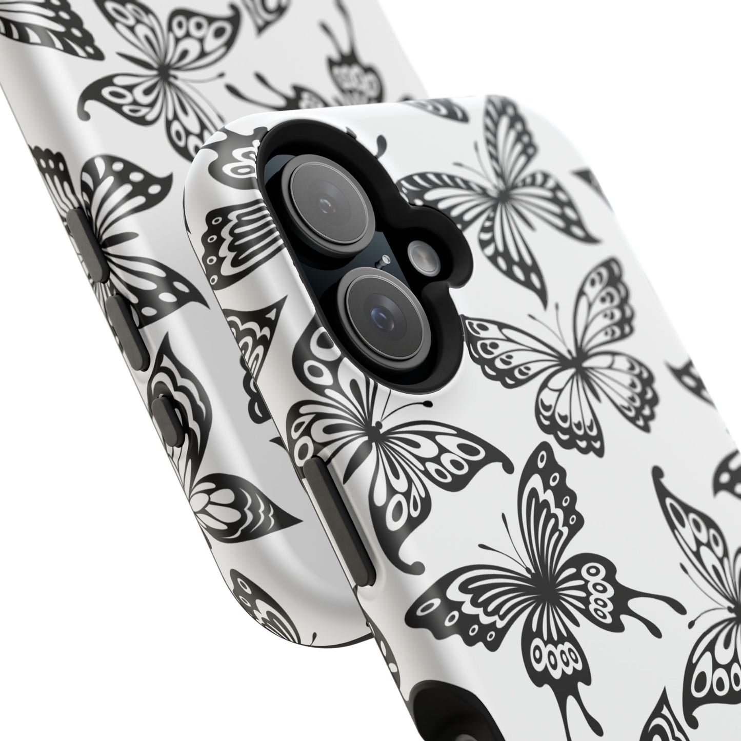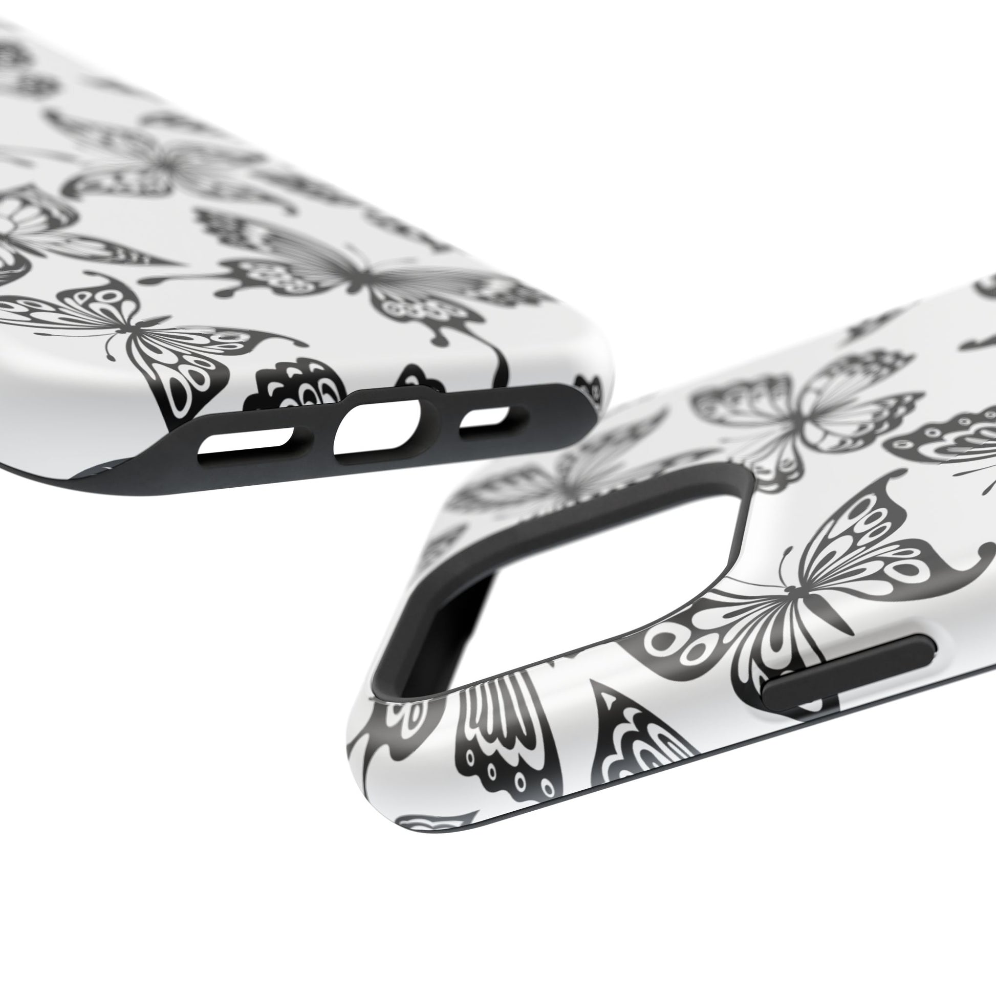 Monochrome Butterfly Pattern Tough MagSafe Case – Dual-Layer Protection with Matte Finish