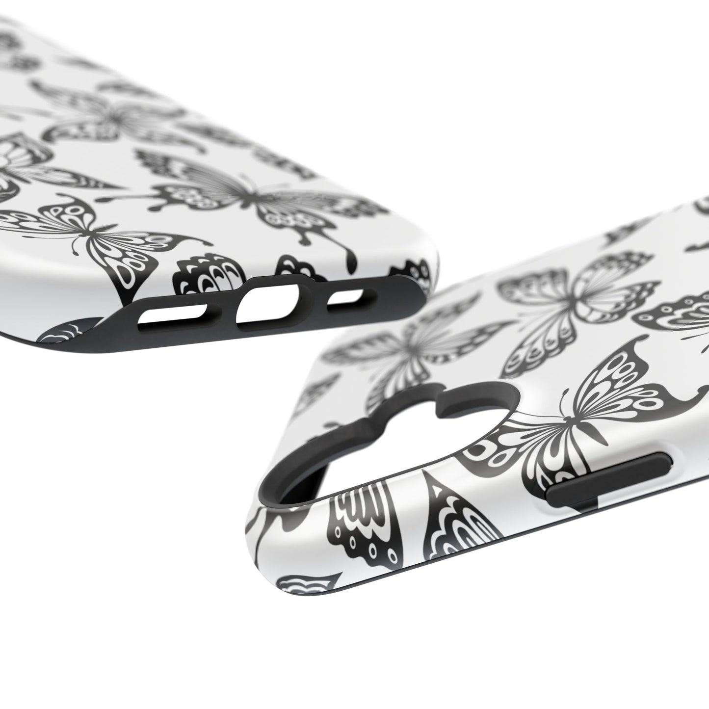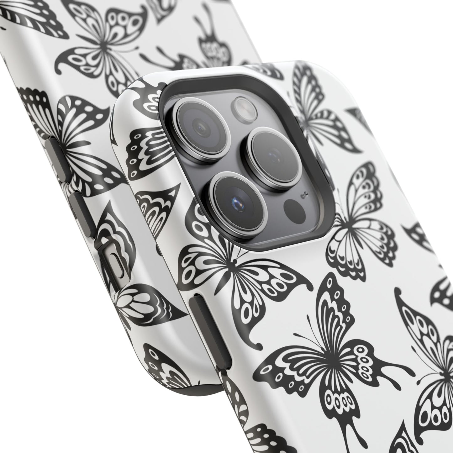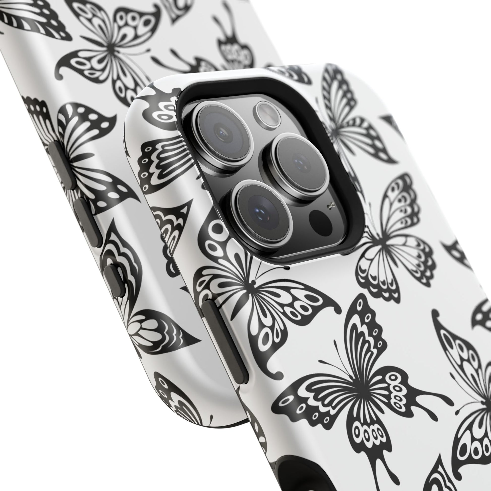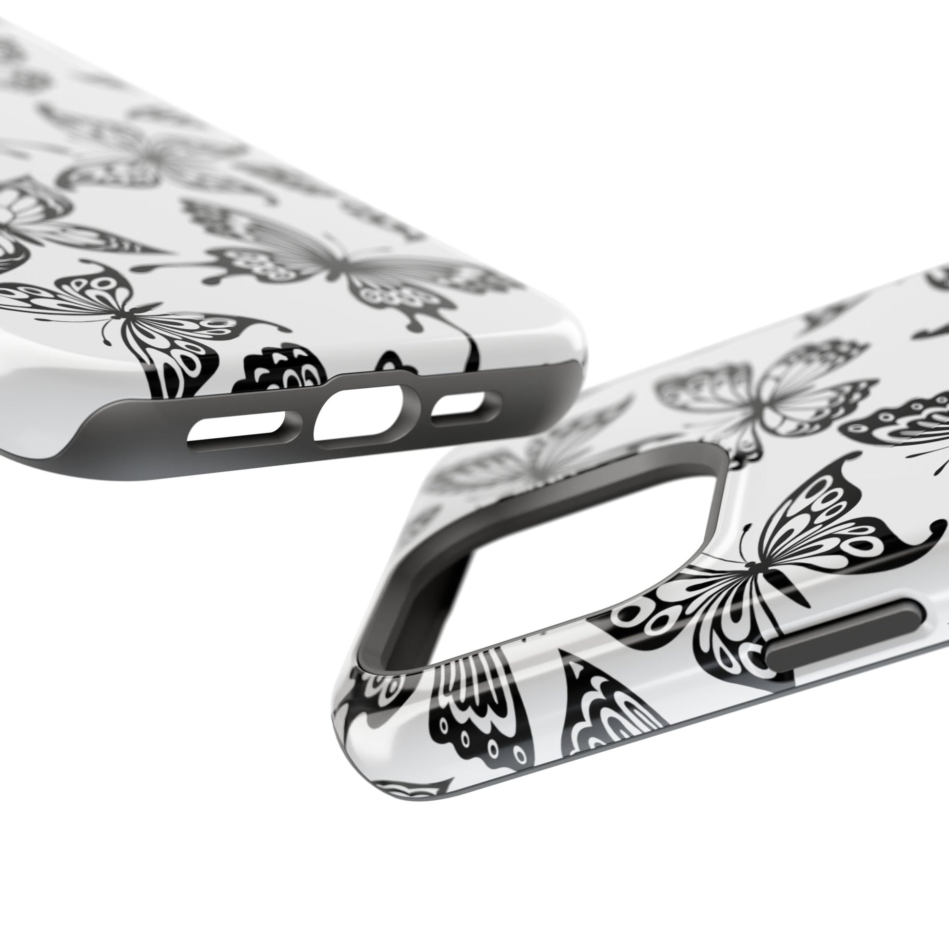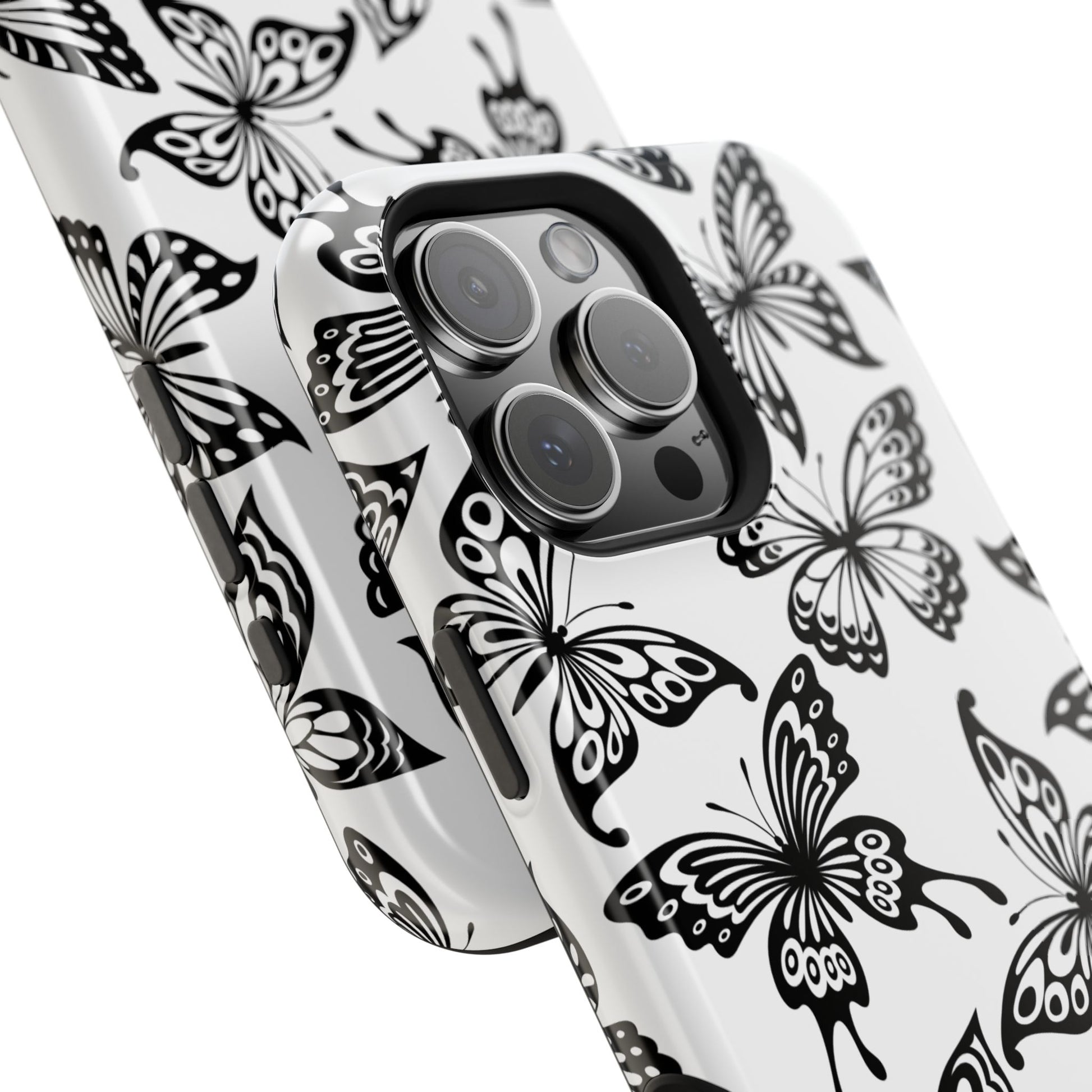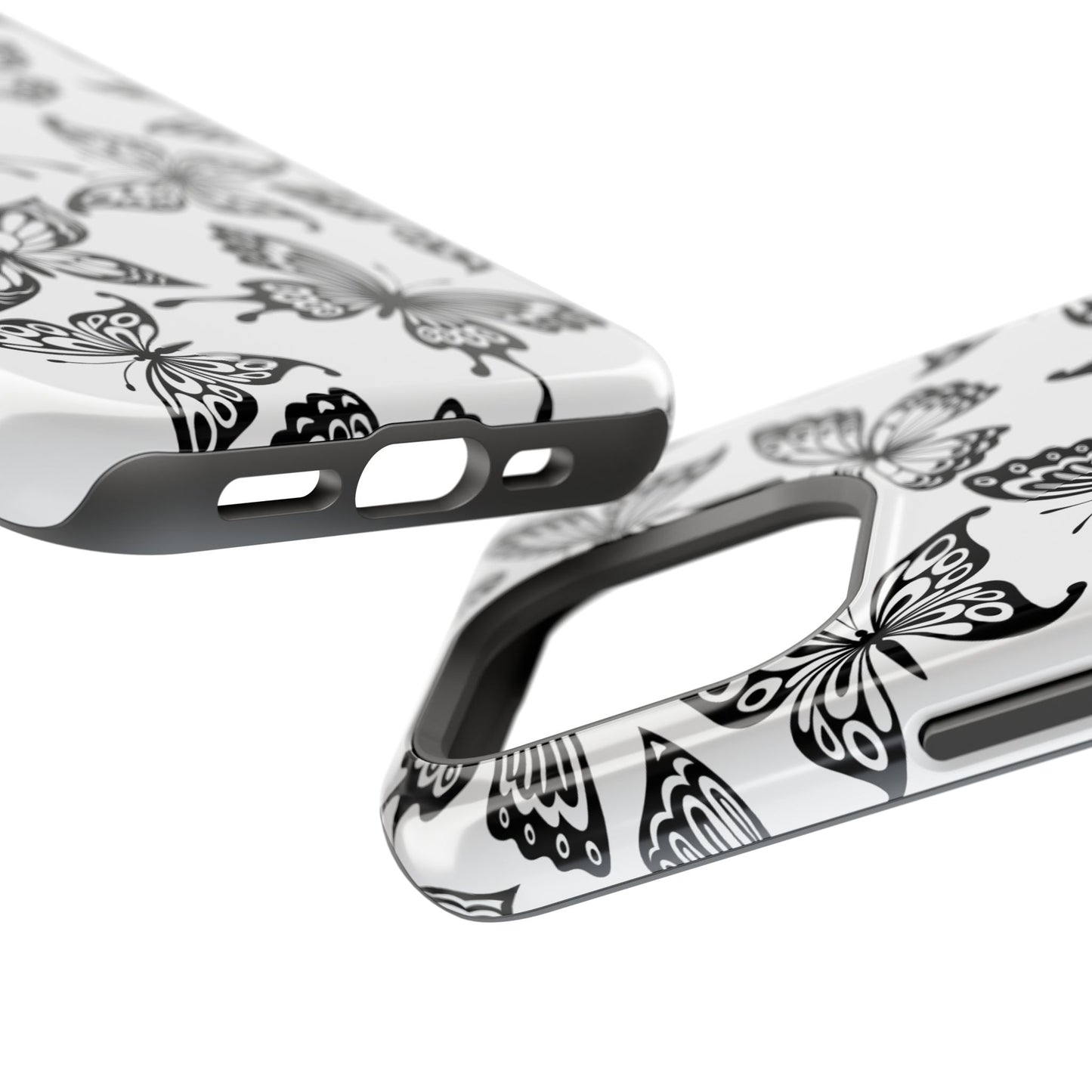Monochrome Butterfly Pattern Tough MagSafe Case – Dual-Layer Protection with Matte Finish