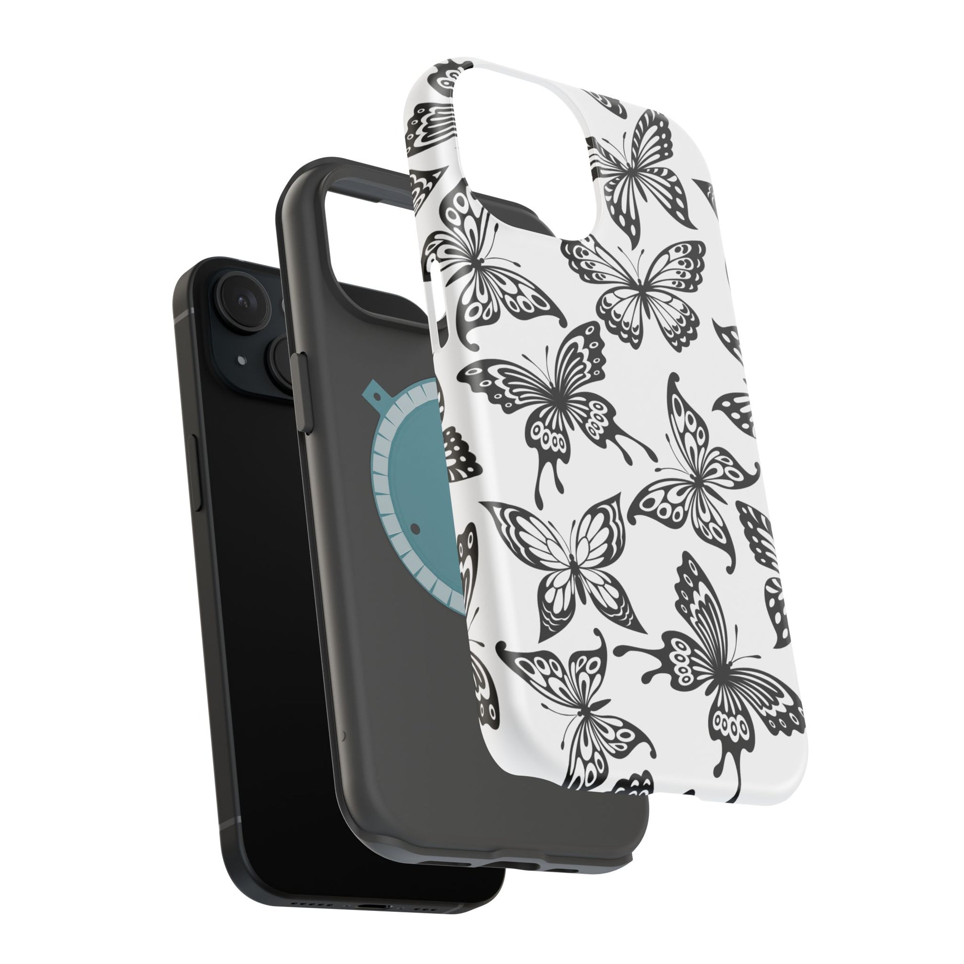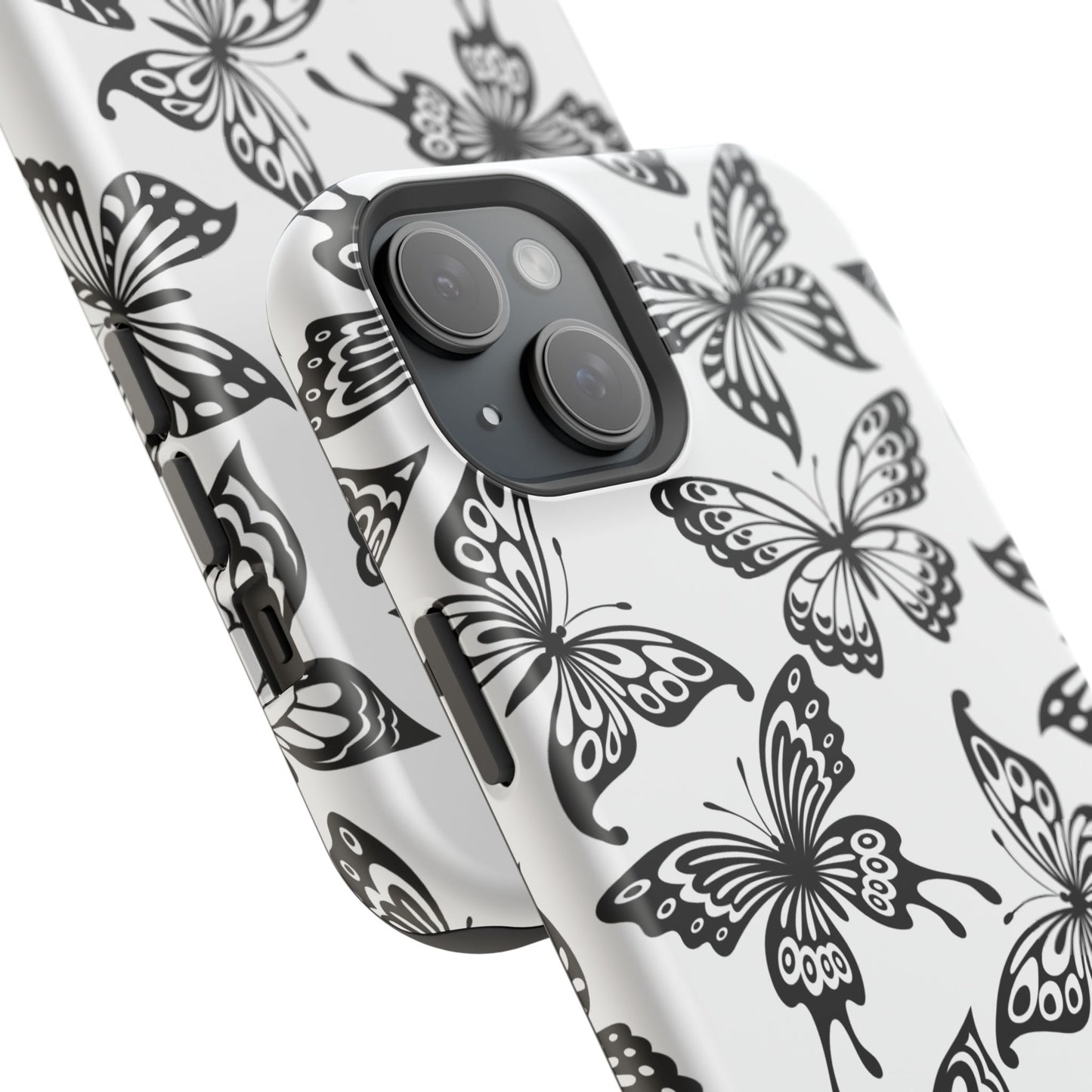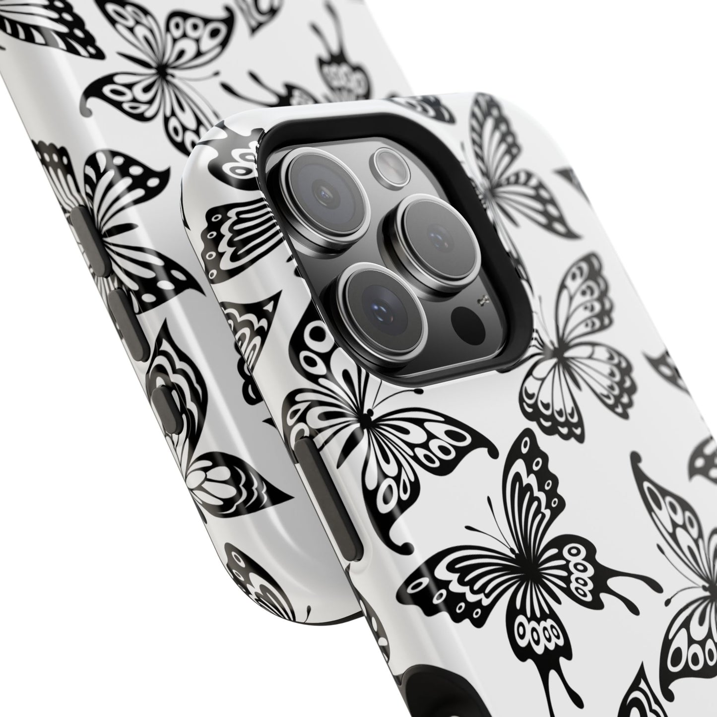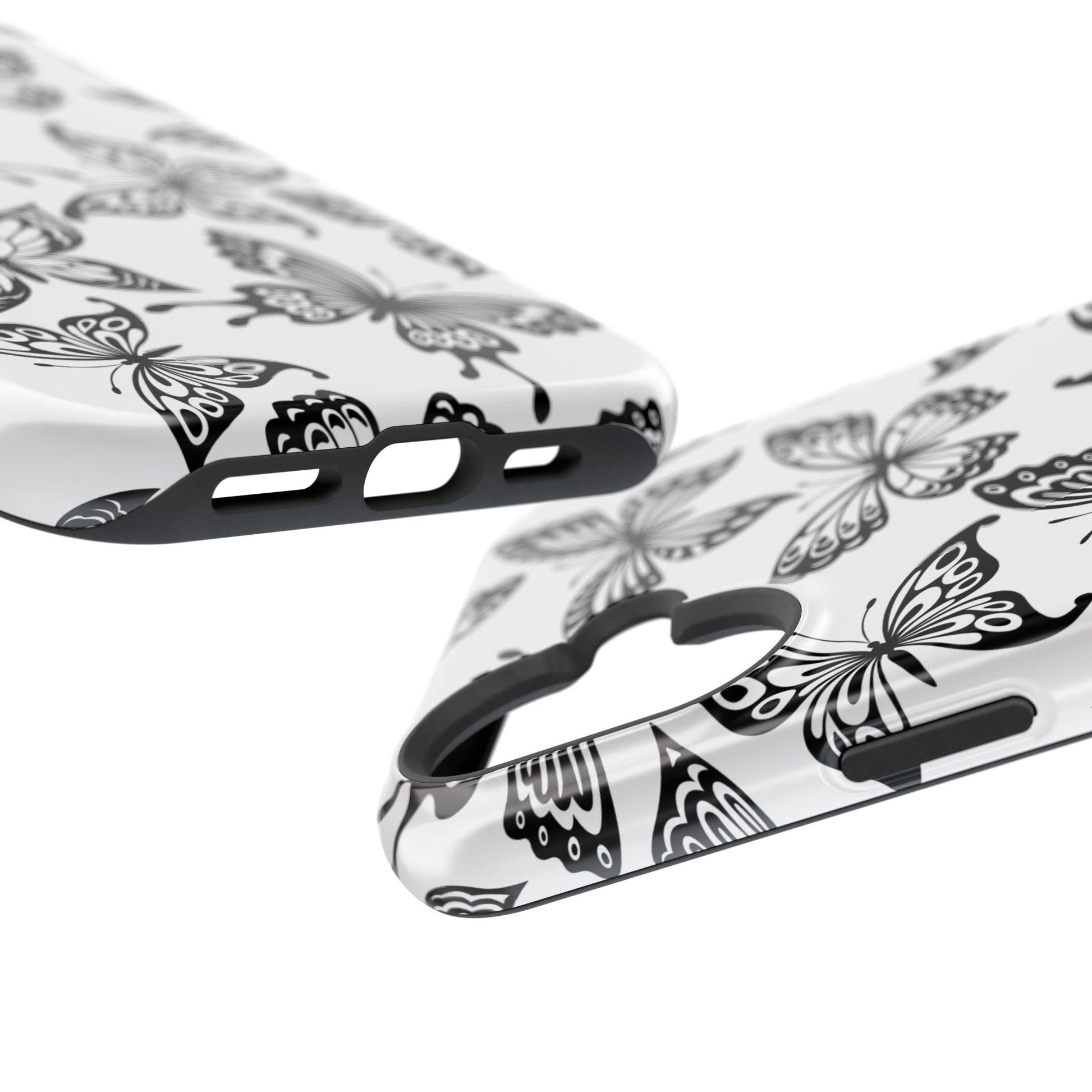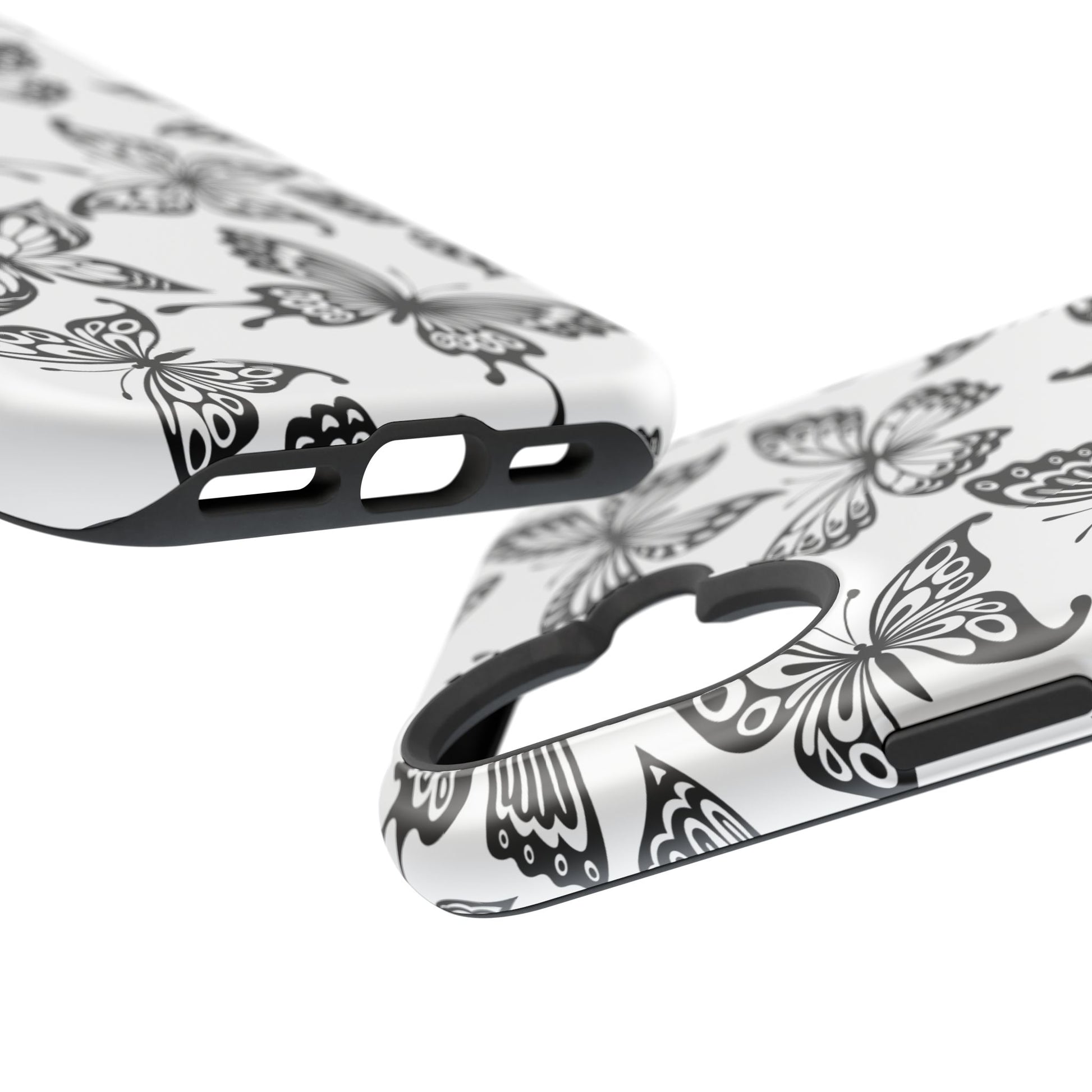 Monochrome Butterfly Pattern Tough MagSafe Case – Dual-Layer Protection with Matte Finish
