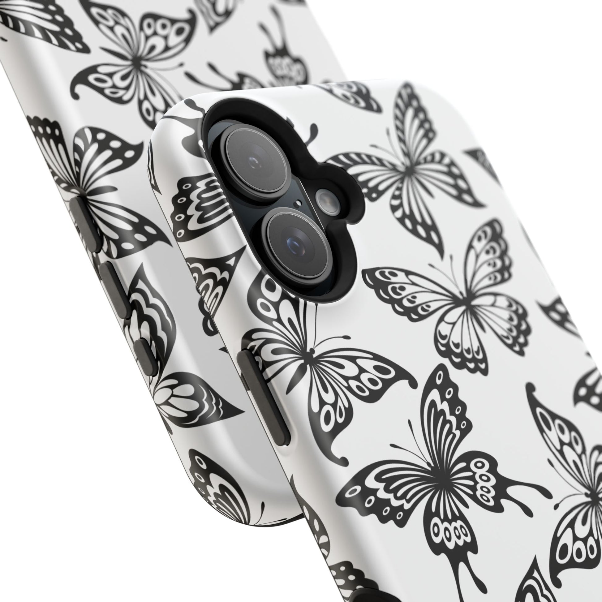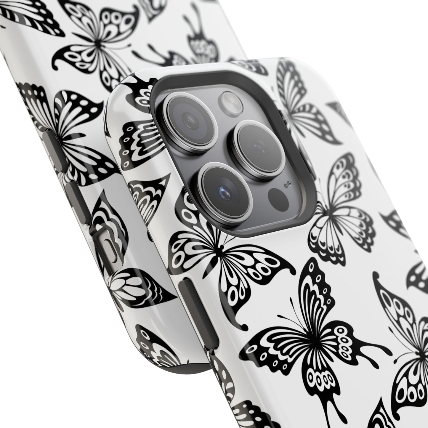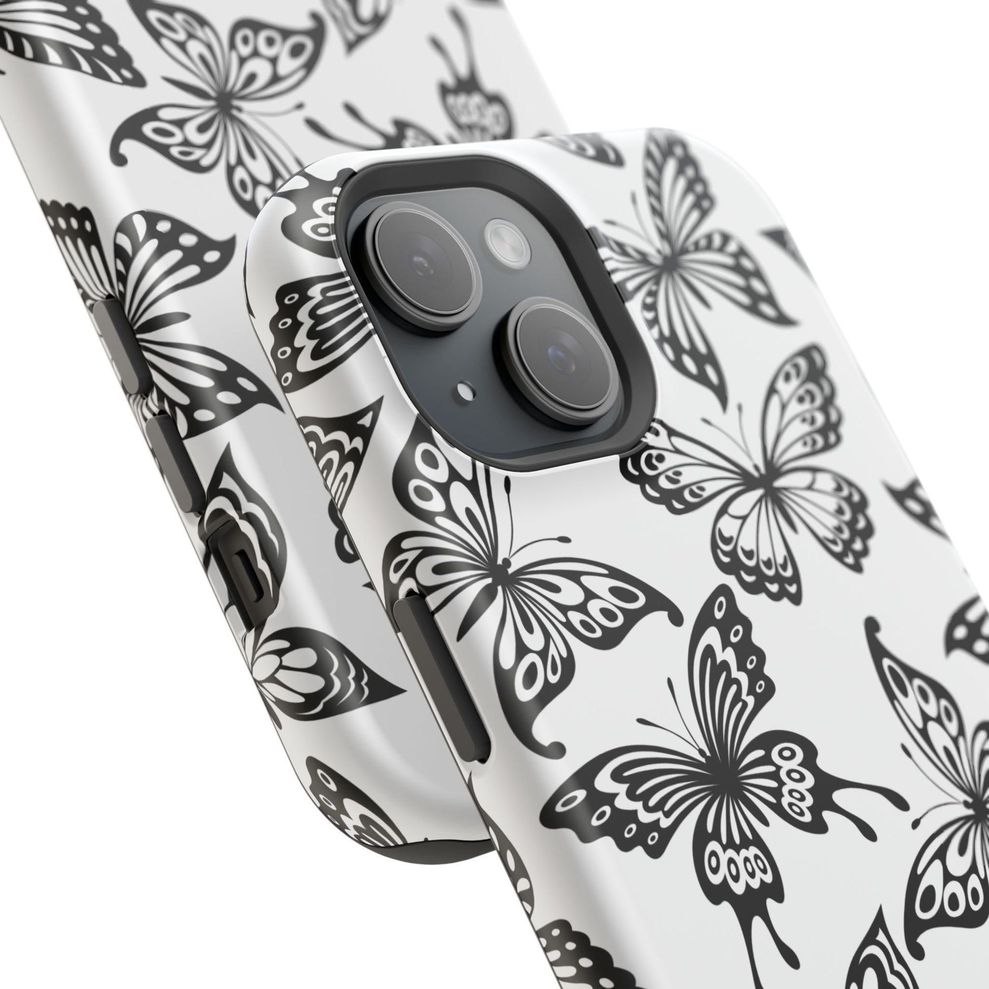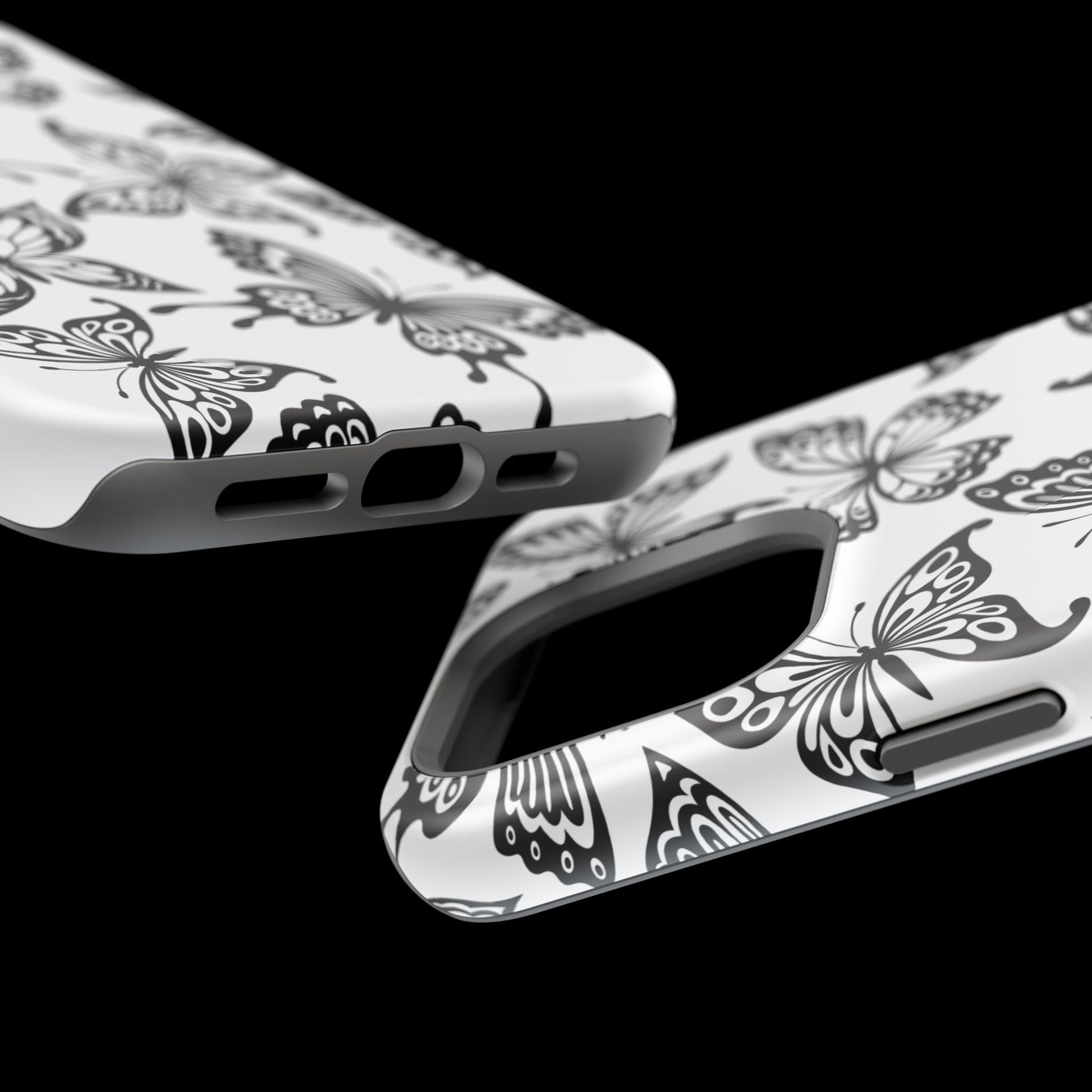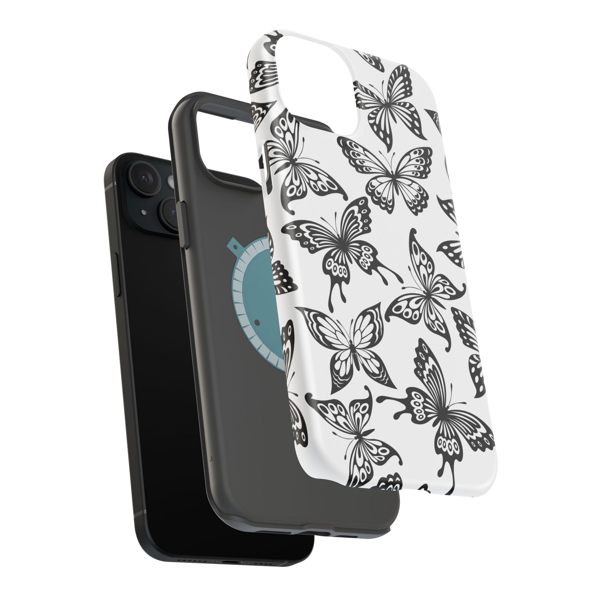 Monochrome Butterfly Pattern Tough MagSafe Case – Dual-Layer Protection with Matte Finish